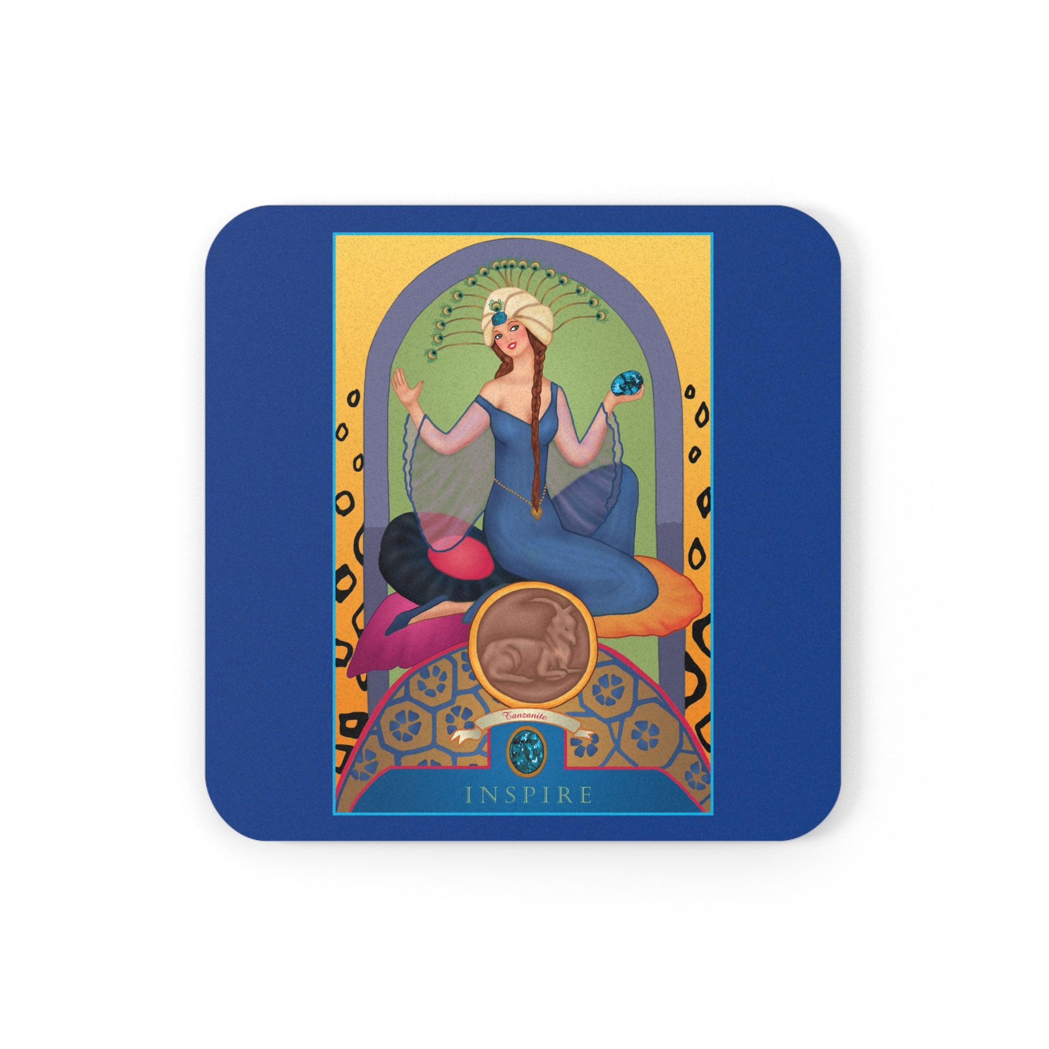 The artwork, “December & Tanzanite” by Sofia Chiostri, belongs to her celebrated Astrology Gem Series, where each month’s birthstone is reinterpreted through the lens of vintage Art Deco artistry. In this composition, cool indigo and violet hues capture the ethereal depth of tanzanite, reflecting introspection and renewal. The poised female figure conveys grace and resilience—qualities long associated with Capricorn’s steadfast nature. As the daughter of the renowned illustrator Carlo Chiostri, Sofia inherited a mastery of color, form, and emotion, weaving them together in this luminous zodiac portrait.