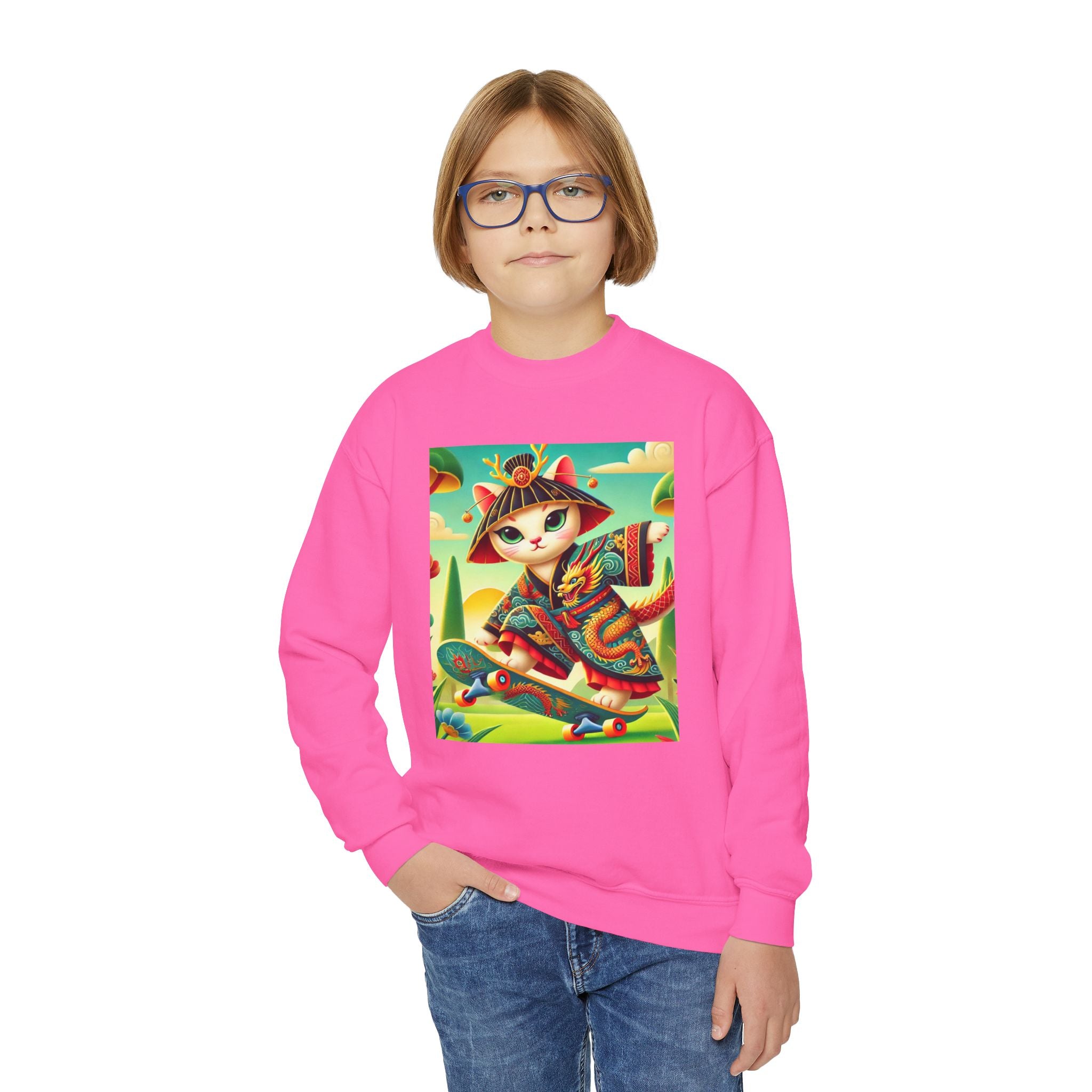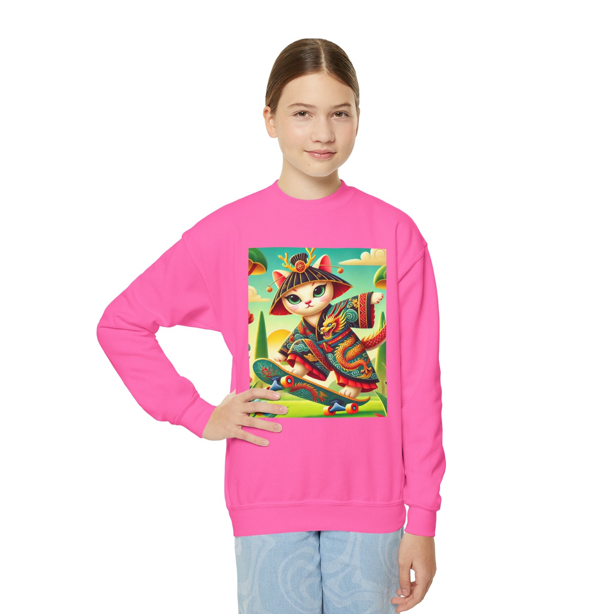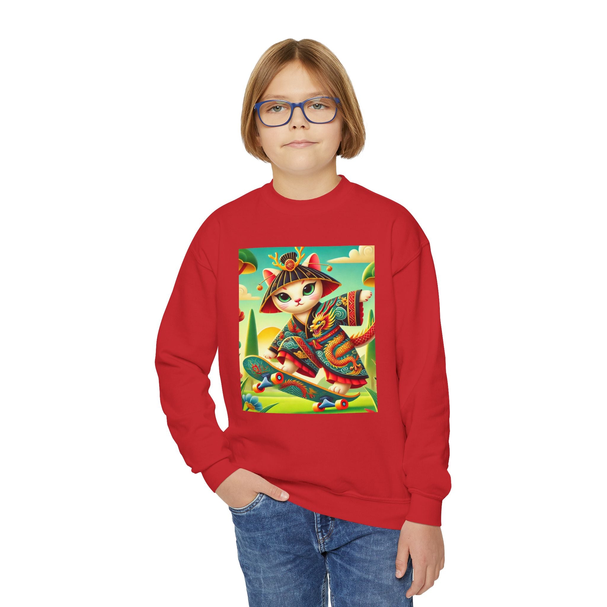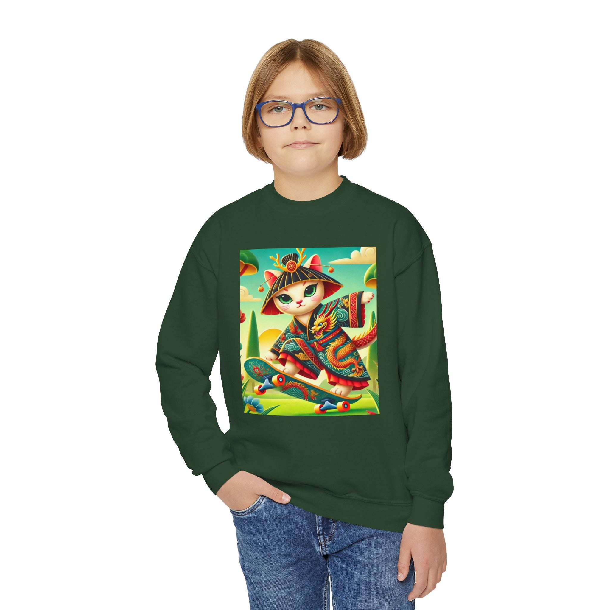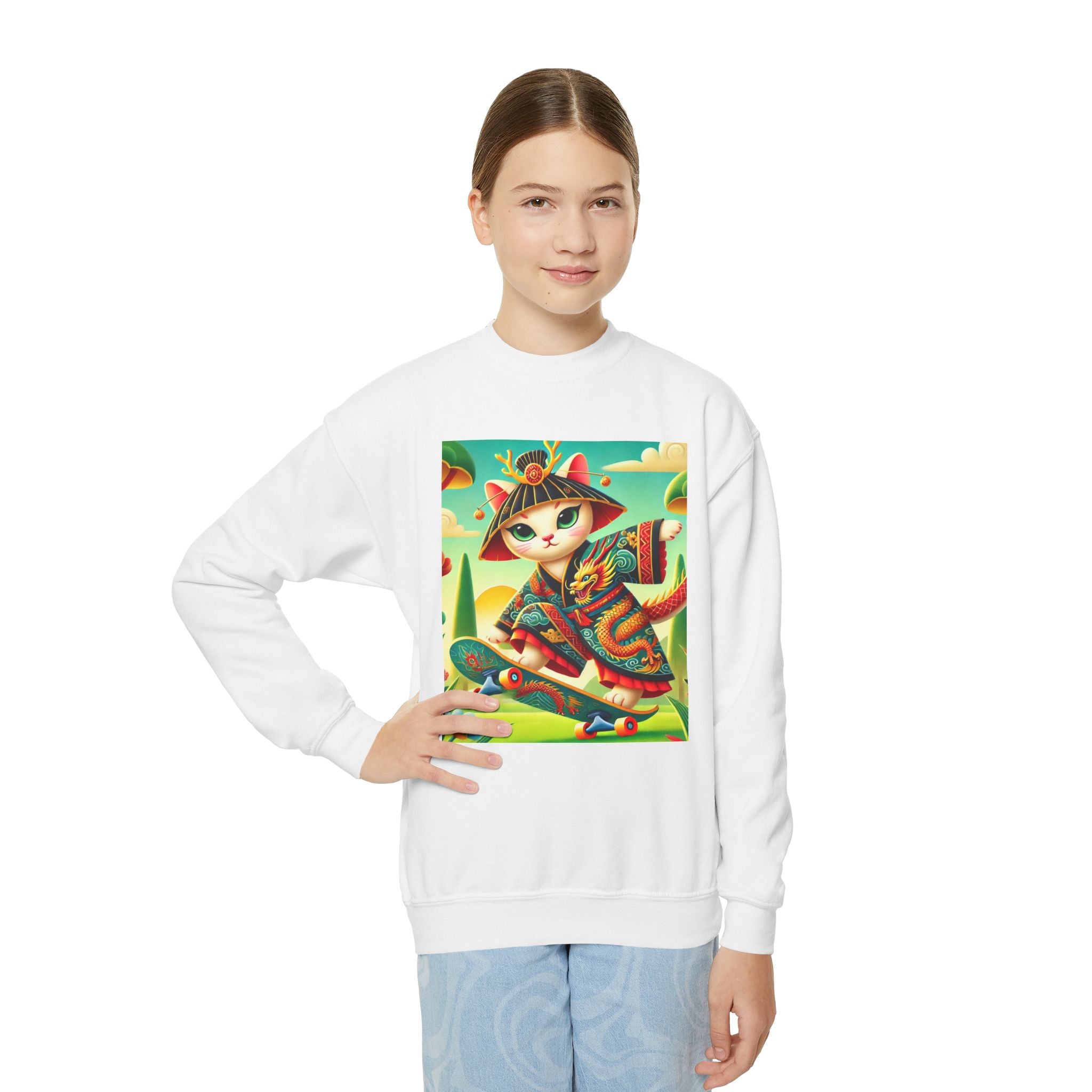 Dragon Dance on Wheels Youth Crewneck Sweatshirt infuses classic comfort with bold, imaginative flair. Made from a balanced blend of 50% cotton and 50% polyester, this Gildan 18000B sweatshirt provides a cozy, medium-heavy feel perfect for school, play, or relaxing in style. Its loose fit ensures all-day comfort and easy movement. Please note: due to the fabric properties, the White color variant may appear slightly off-white.