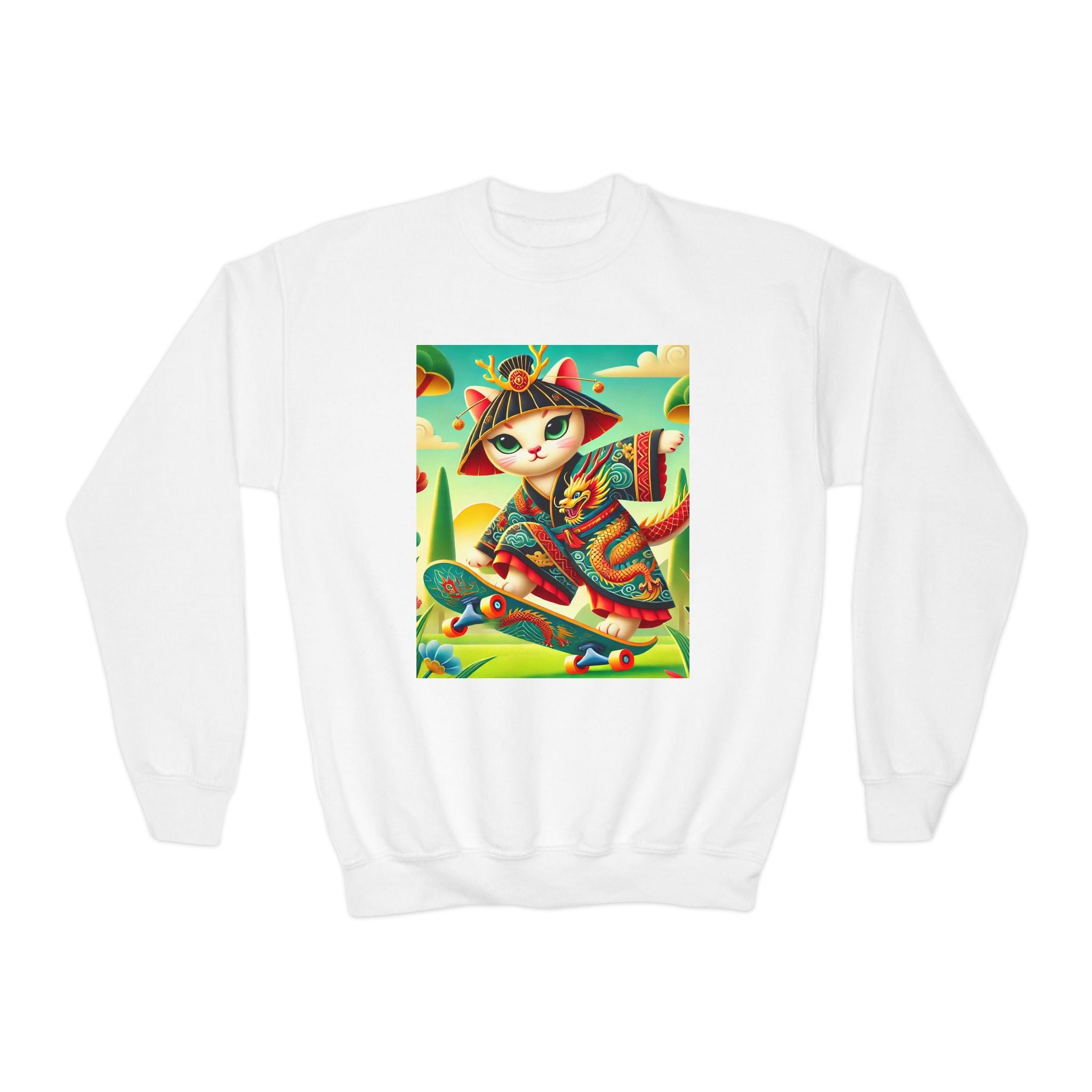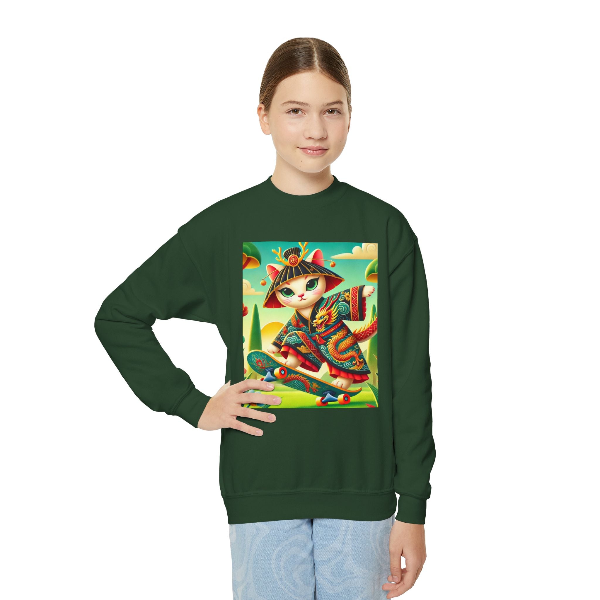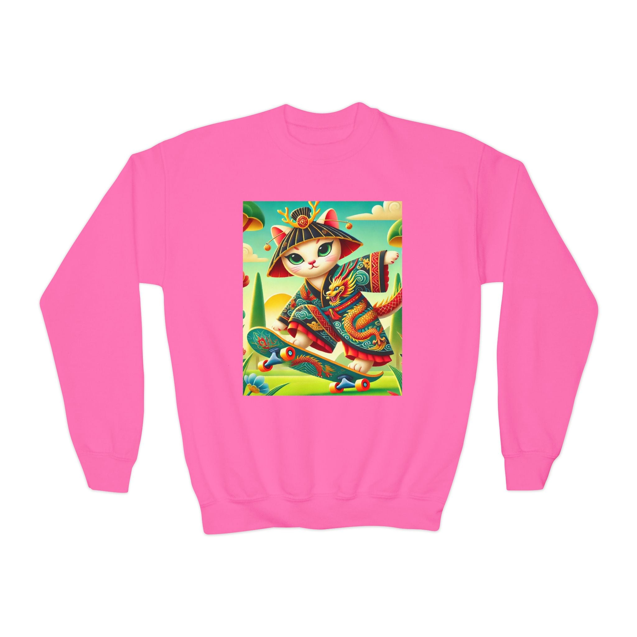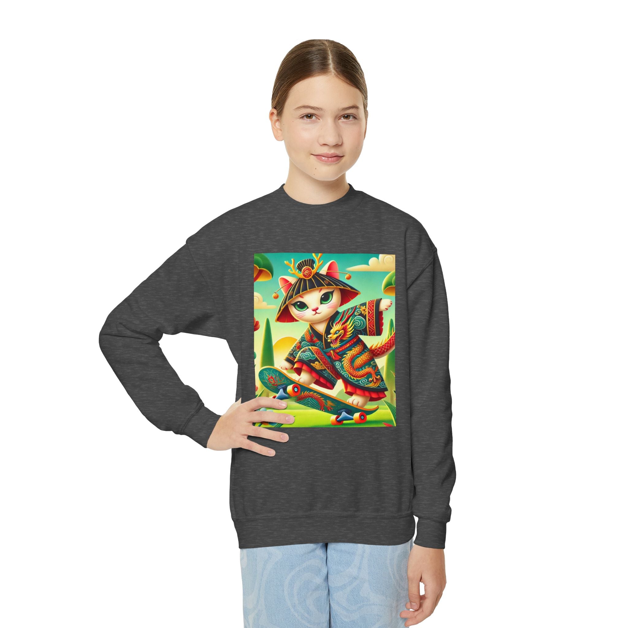 Dragon Dance on Wheels Youth Crewneck Sweatshirt infuses classic comfort with bold, imaginative flair. Made from a balanced blend of 50% cotton and 50% polyester, this Gildan 18000B sweatshirt provides a cozy, medium-heavy feel perfect for school, play, or relaxing in style. Its loose fit ensures all-day comfort and easy movement. Please note: due to the fabric properties, the White color variant may appear slightly off-white.