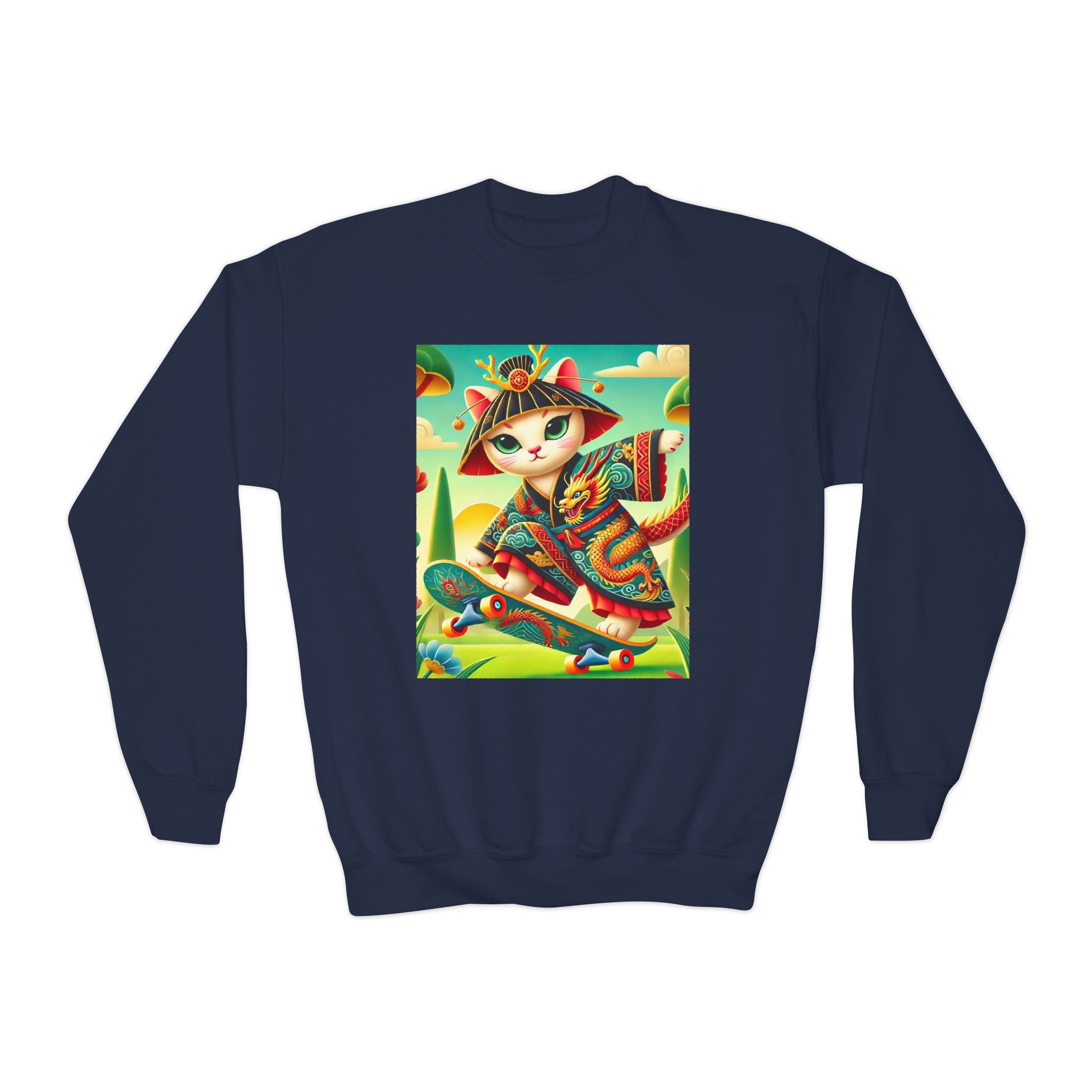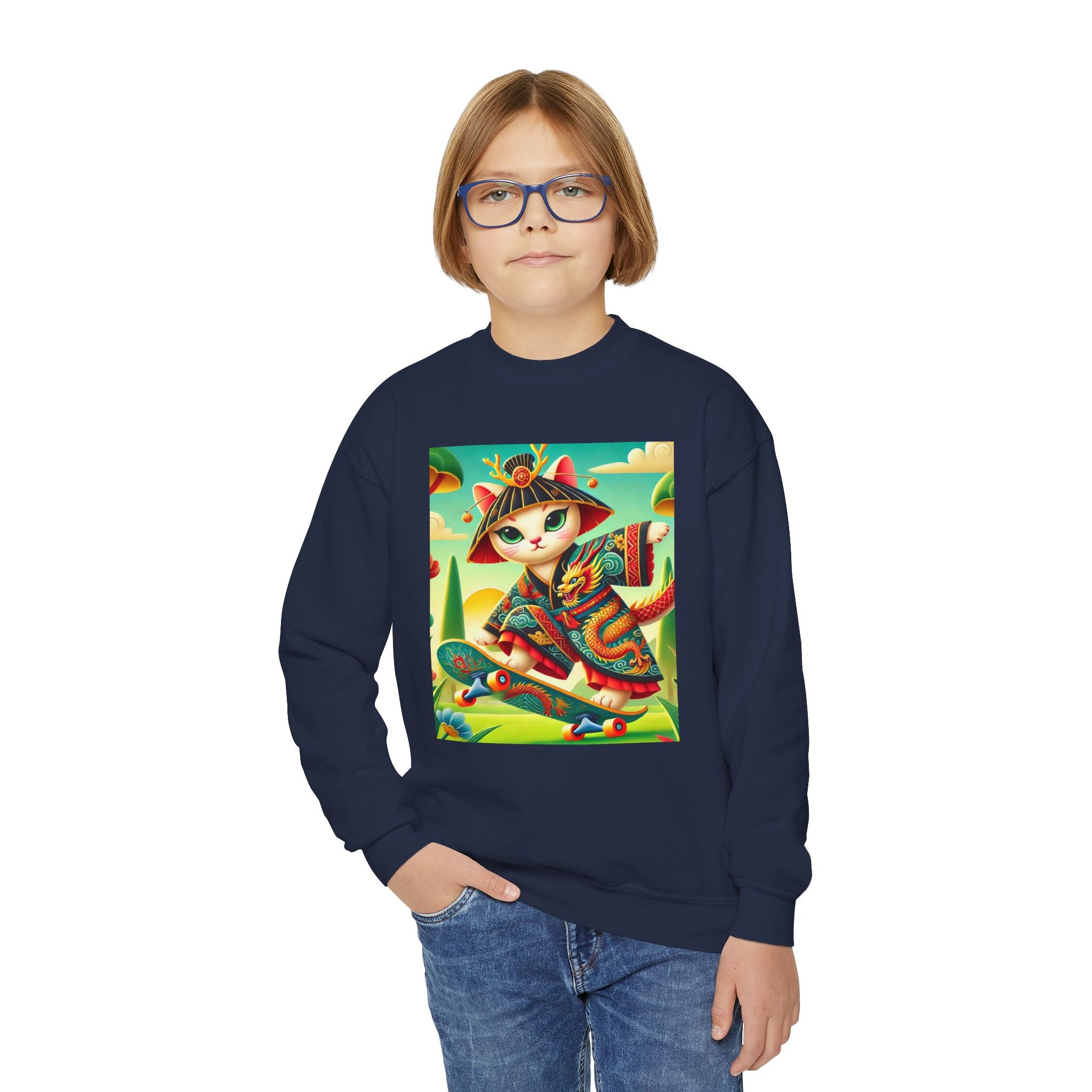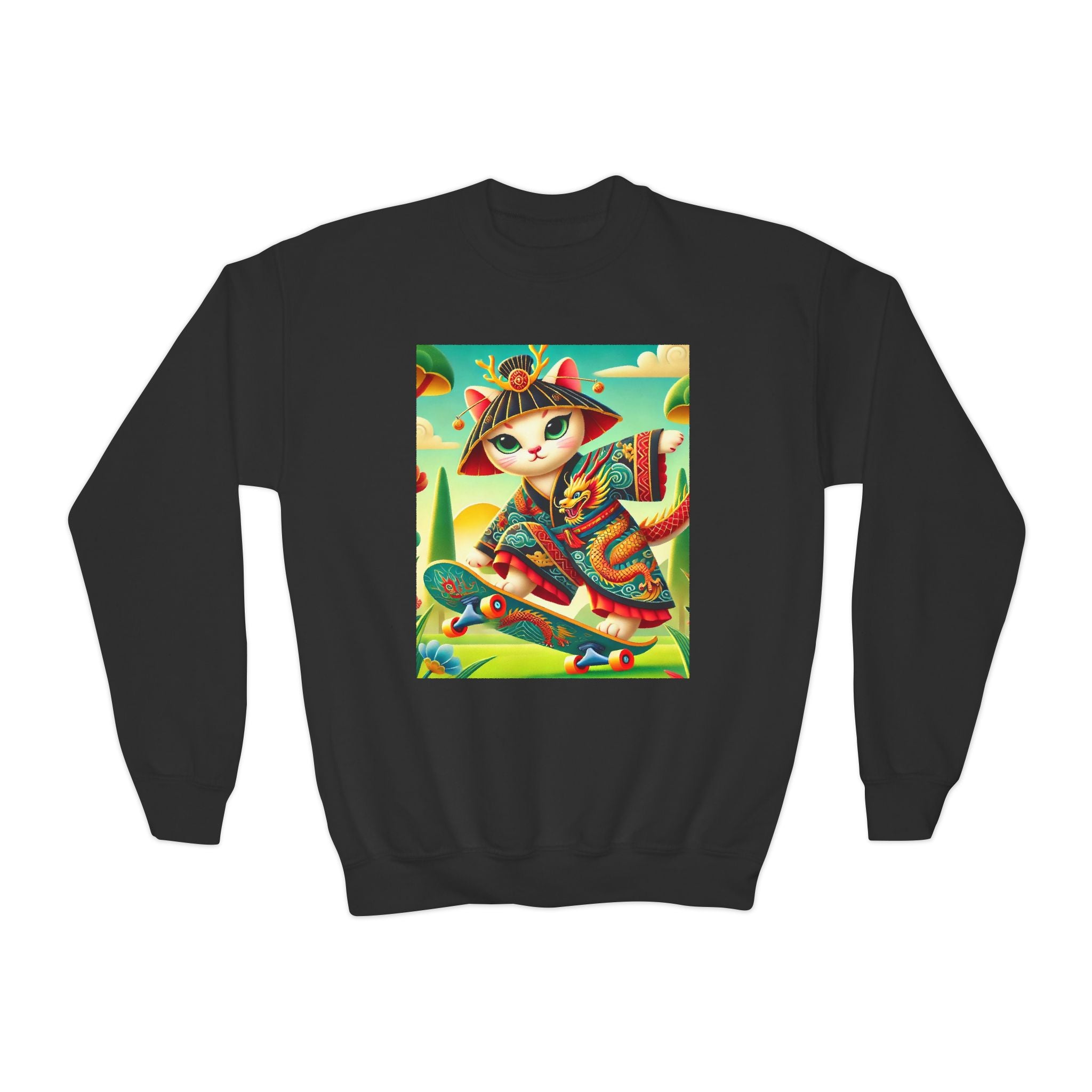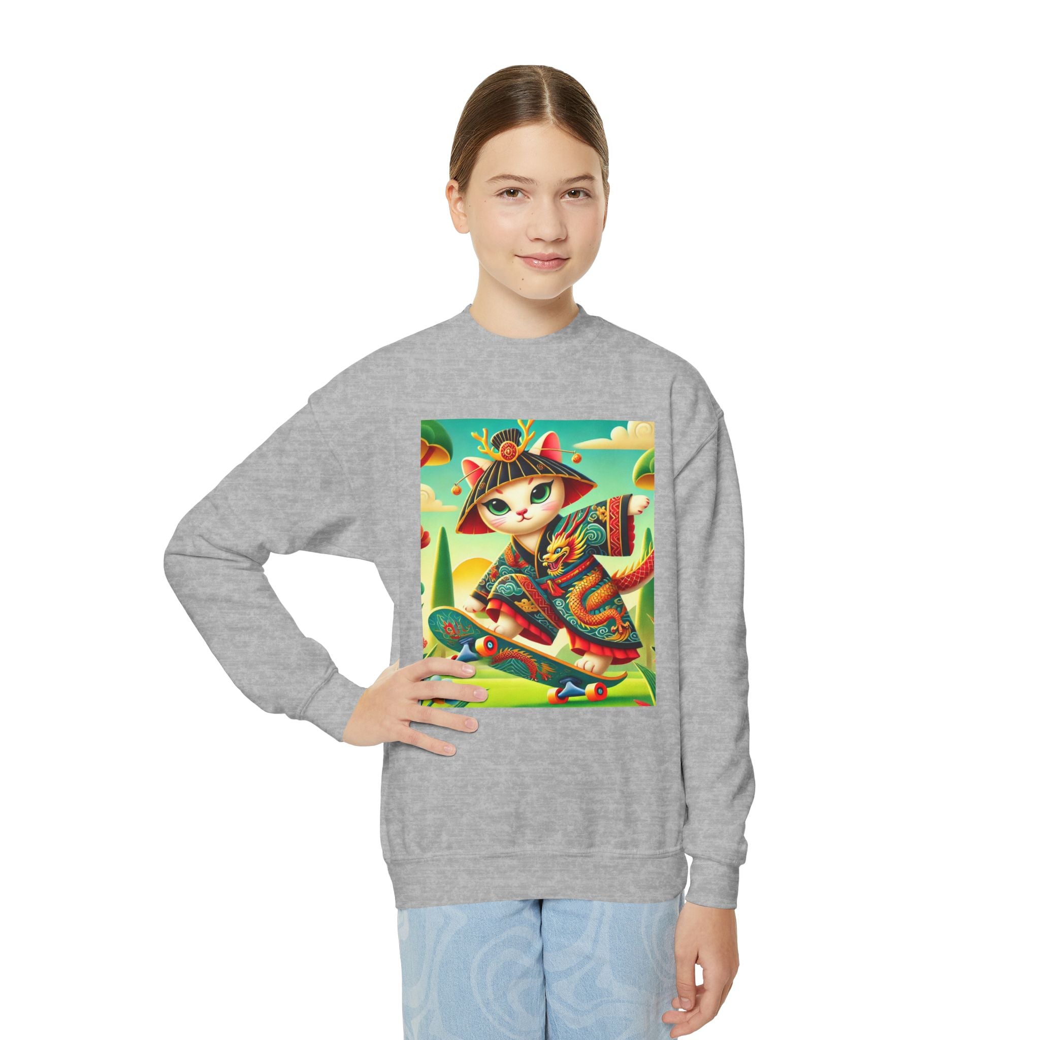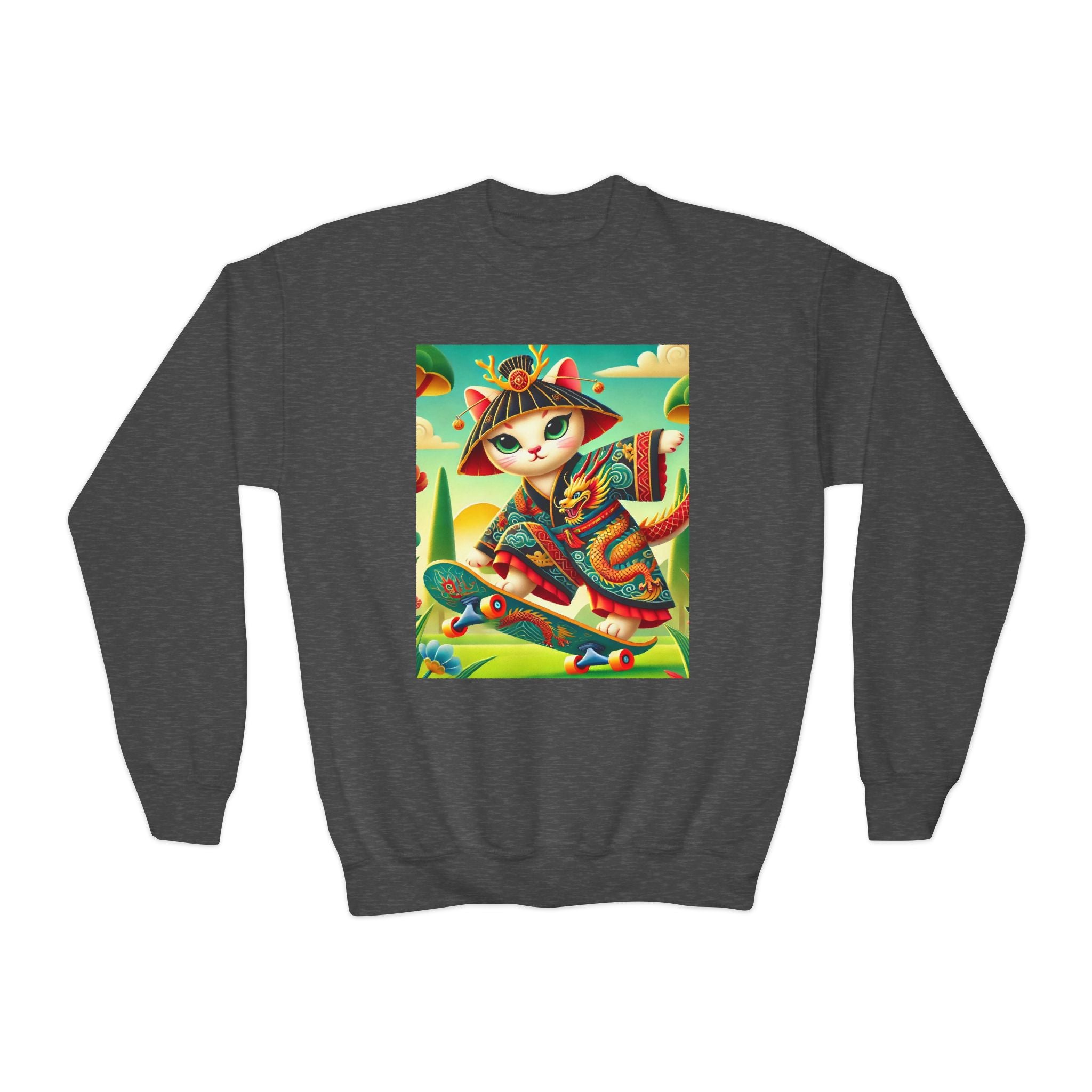 Dragon Dance on Wheels Youth Crewneck Sweatshirt infuses classic comfort with bold, imaginative flair. Made from a balanced blend of 50% cotton and 50% polyester, this Gildan 18000B sweatshirt provides a cozy, medium-heavy feel perfect for school, play, or relaxing in style. Its loose fit ensures all-day comfort and easy movement. Please note: due to the fabric properties, the White color variant may appear slightly off-white.