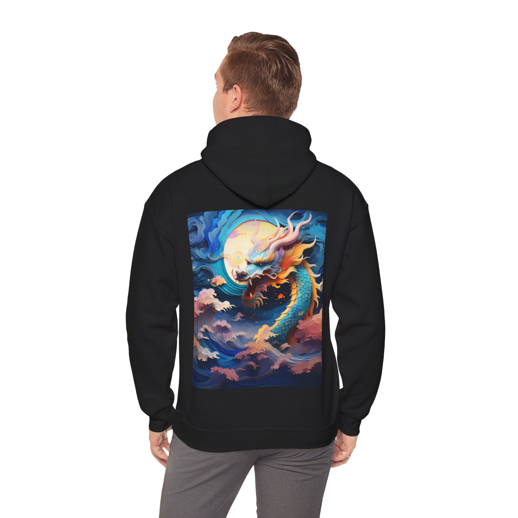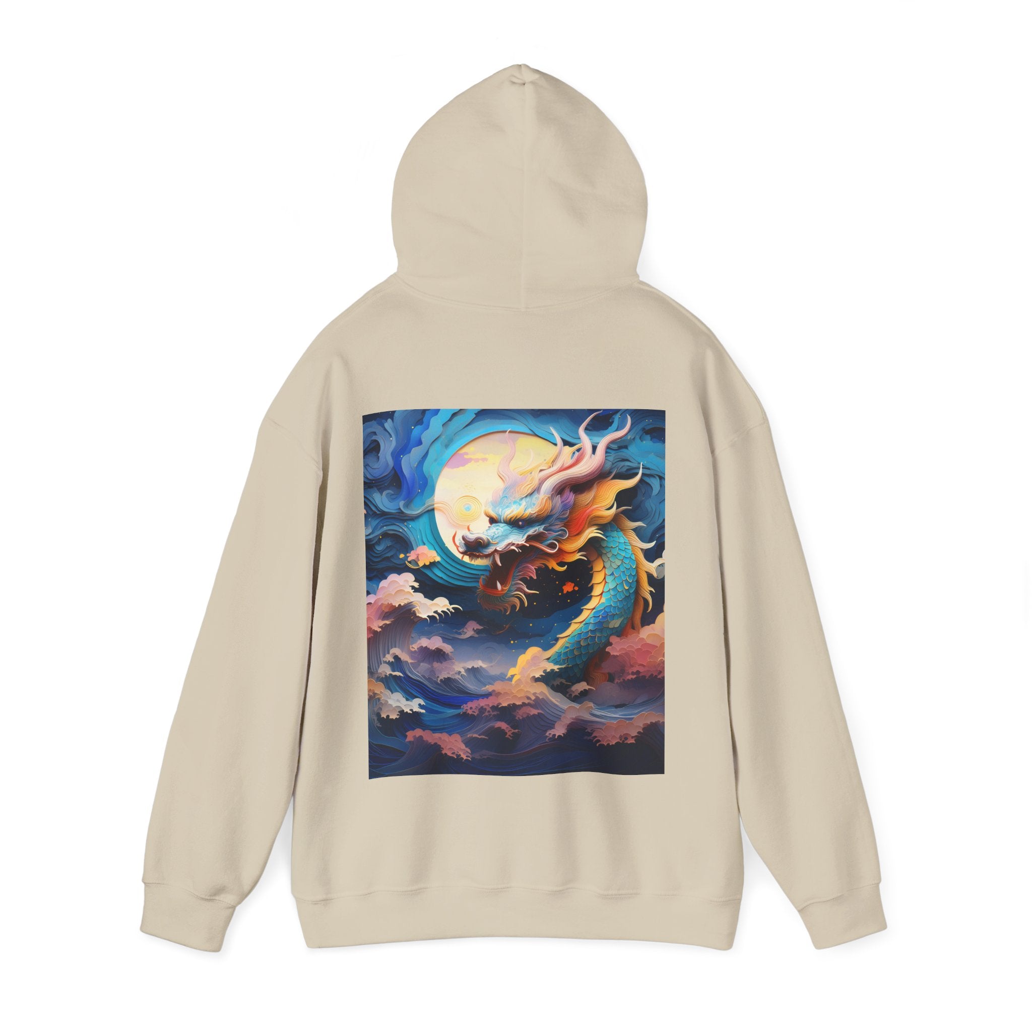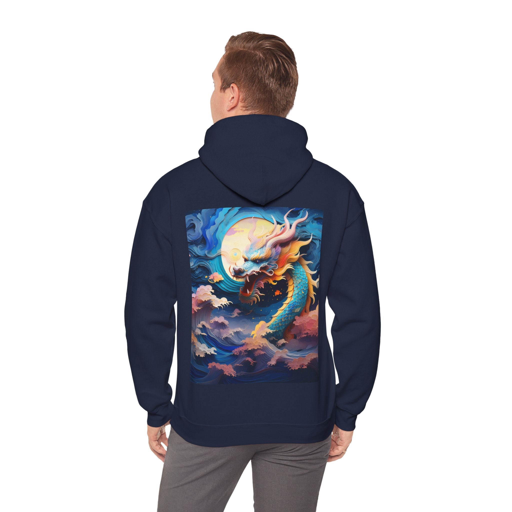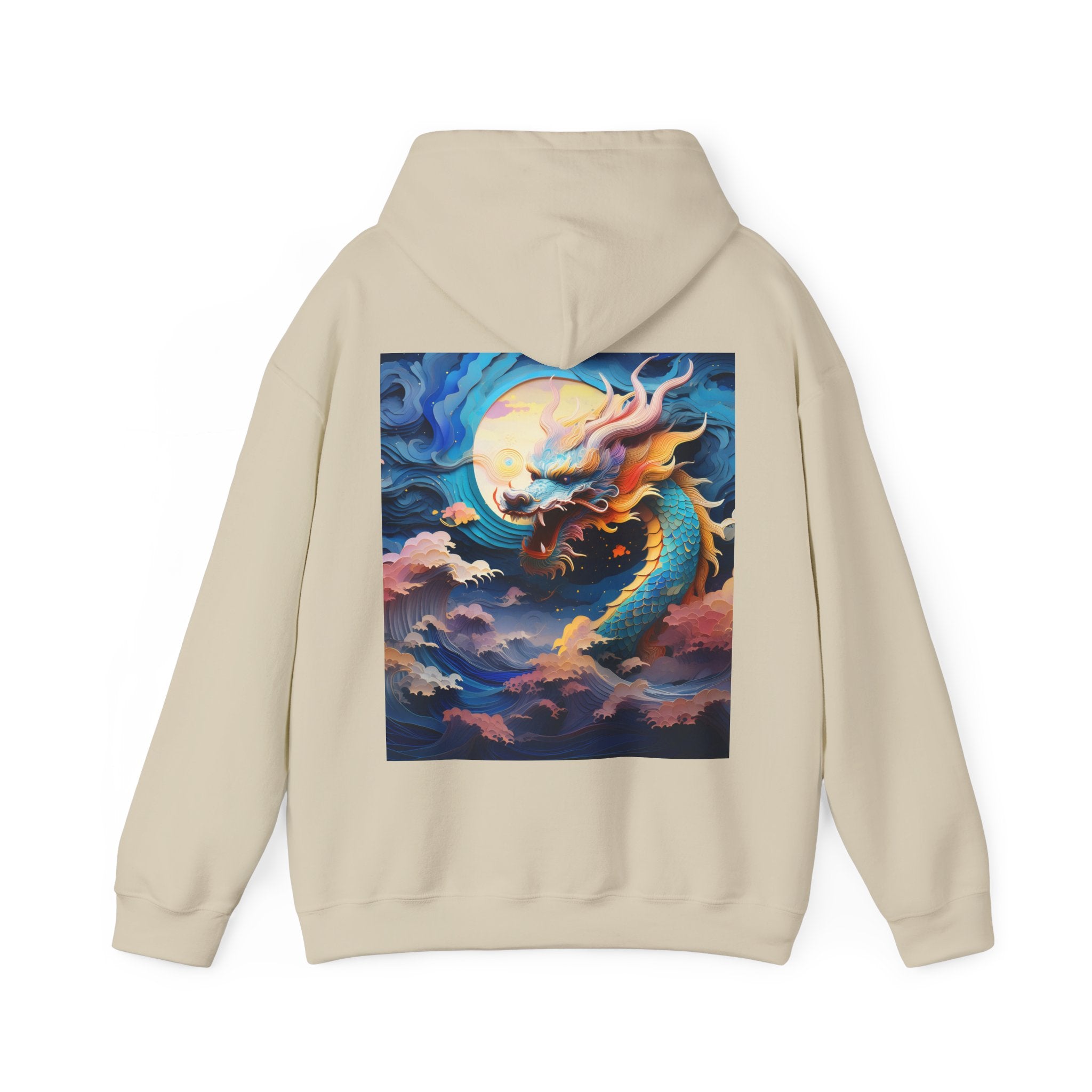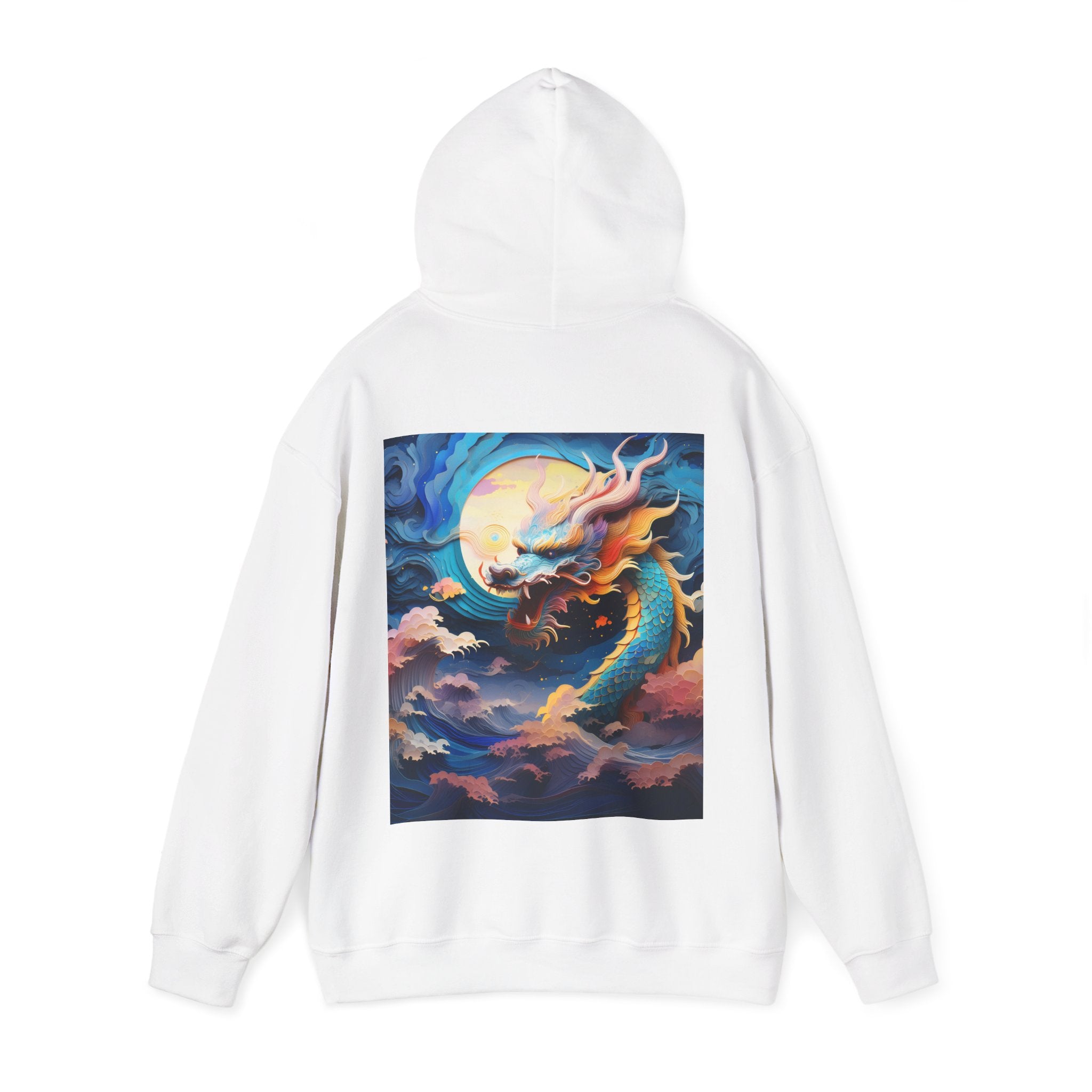 Dragon of the Tempest – Heavy Blend™ Hooded Sweatshirt brings the raw force of a storm and the timeless power of a dragon into one striking design. The artwork shows a mighty dragon soaring through a storm-tossed sky, its scales lit by flashes of light as waves crash and clouds swirl beneath it. Moving as one with the tempest, the creature becomes part of the chaos and the beauty, while a distant sun breaks softly through the storm—symbolizing resilience, renewal, and the ancient bond between nature’s power and mythic legend. The result is a vivid, energetic scene that turns the hoodie into wearable storytelling.