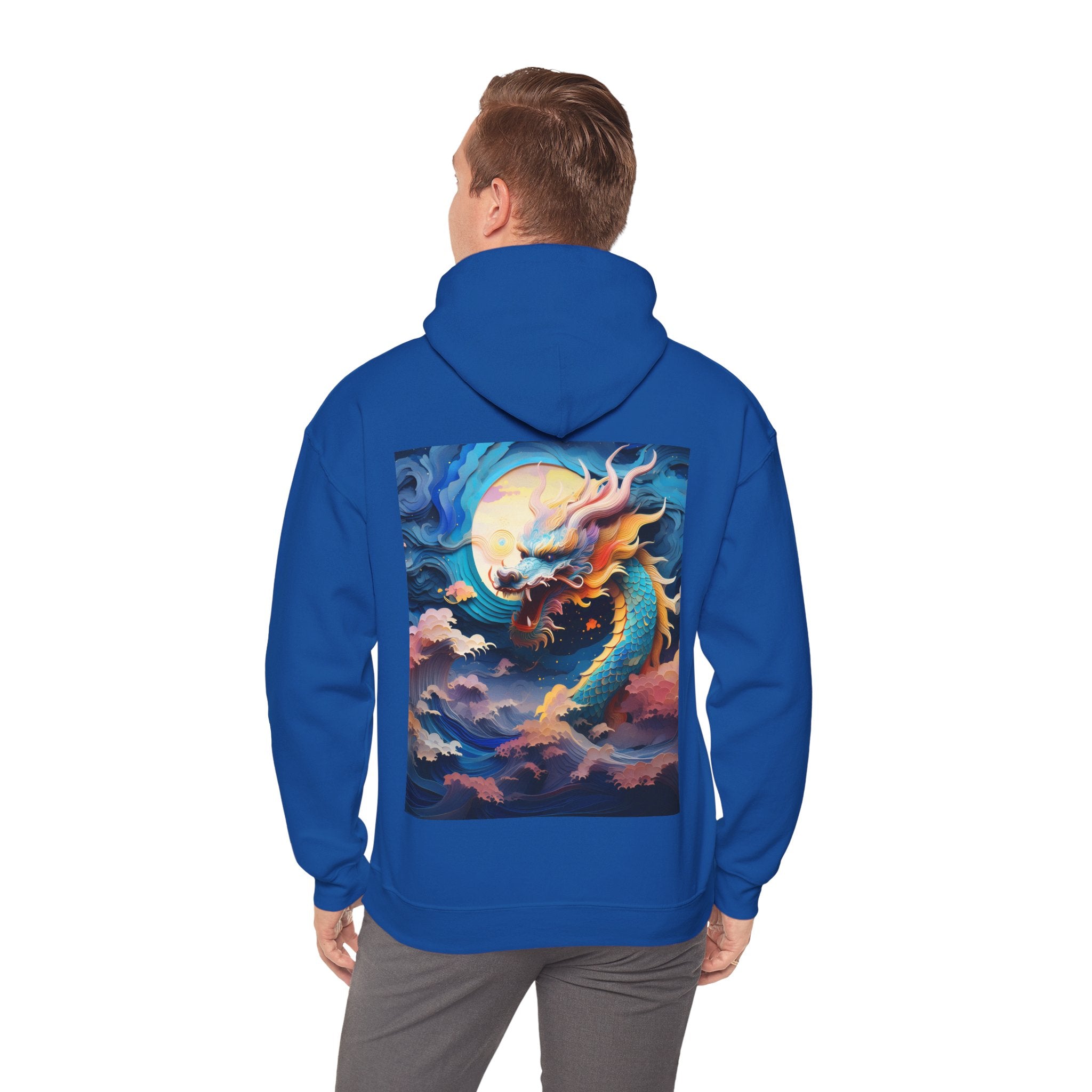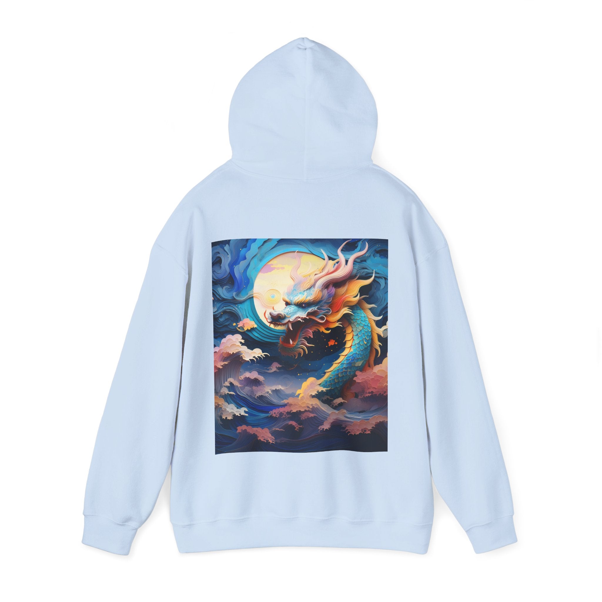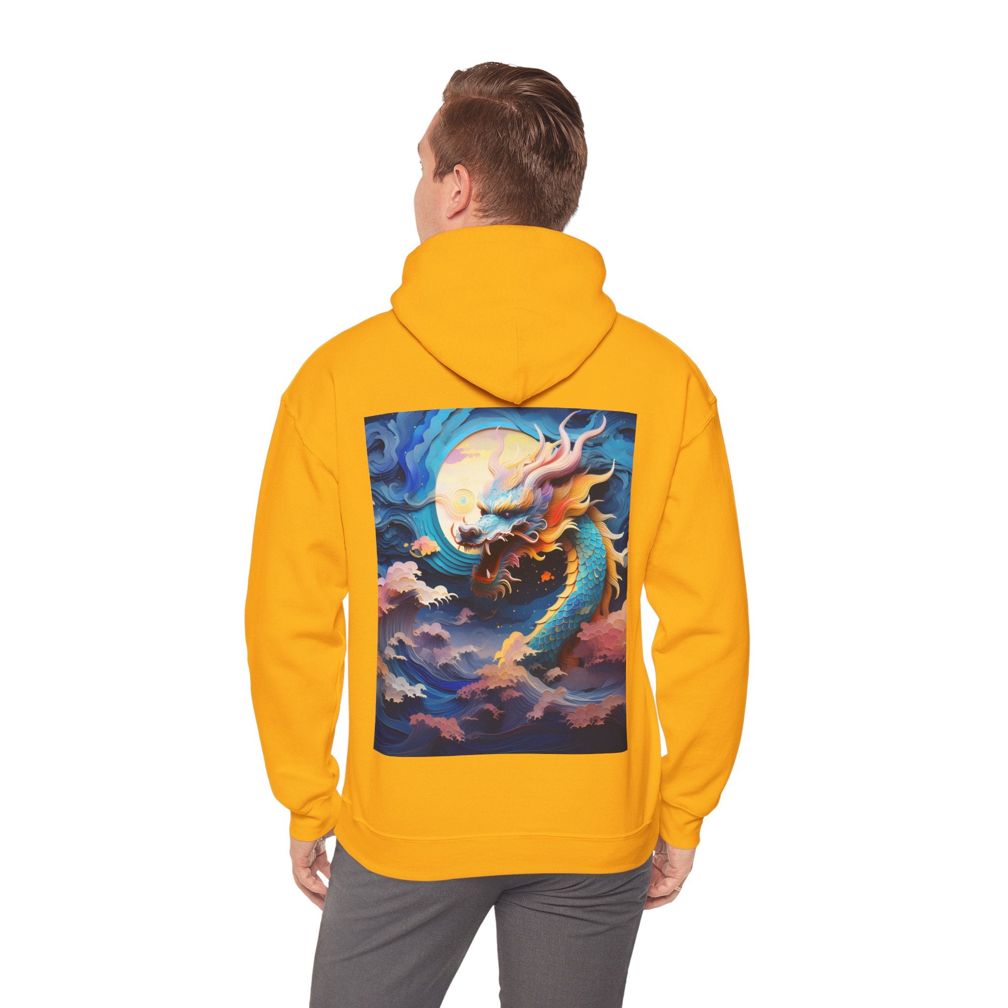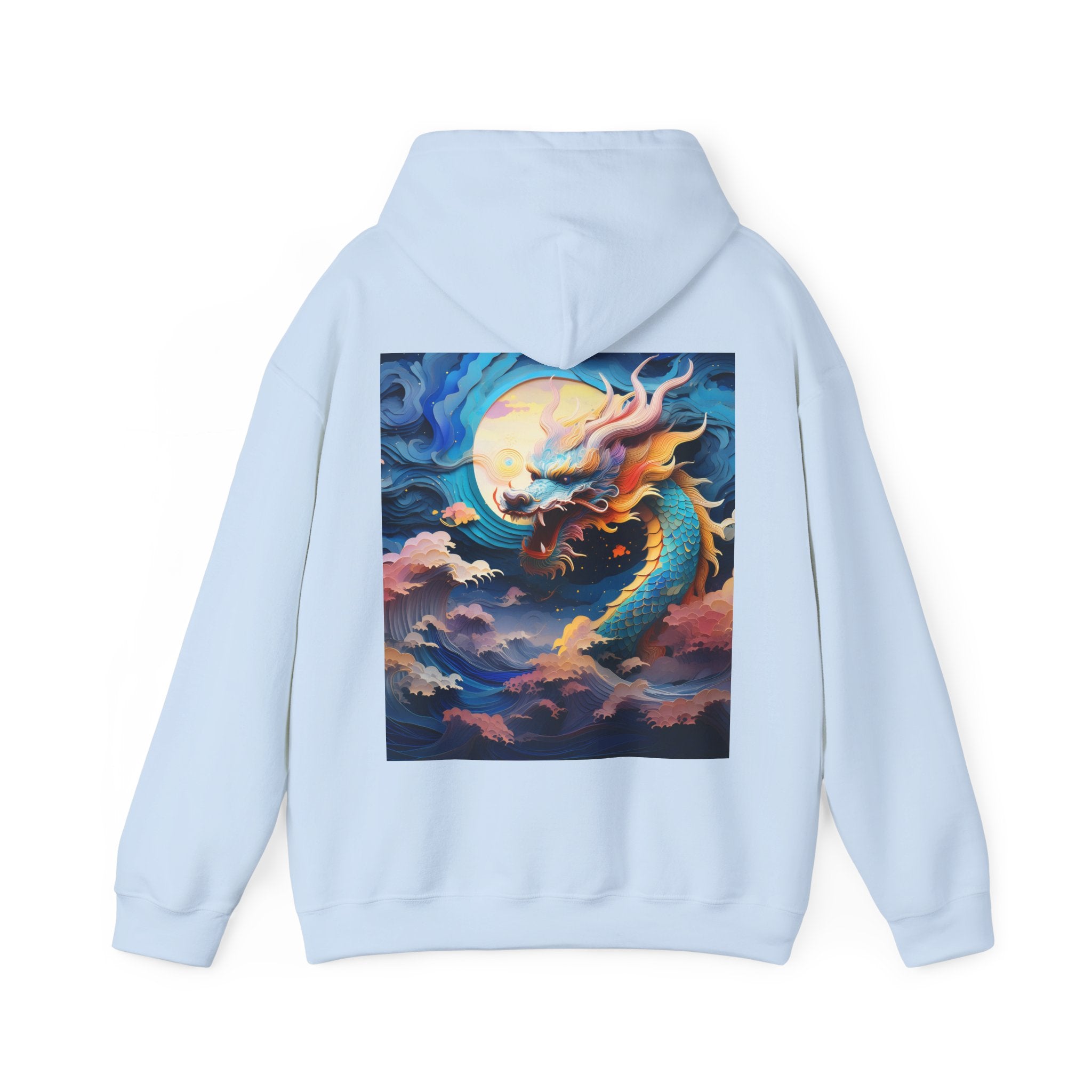 Dragon of the Tempest – Heavy Blend™ Hooded Sweatshirt brings the raw force of a storm and the timeless power of a dragon into one striking design. The artwork shows a mighty dragon soaring through a storm-tossed sky, its scales lit by flashes of light as waves crash and clouds swirl beneath it. Moving as one with the tempest, the creature becomes part of the chaos and the beauty, while a distant sun breaks softly through the storm—symbolizing resilience, renewal, and the ancient bond between nature’s power and mythic legend. The result is a vivid, energetic scene that turns the hoodie into wearable storytelling.