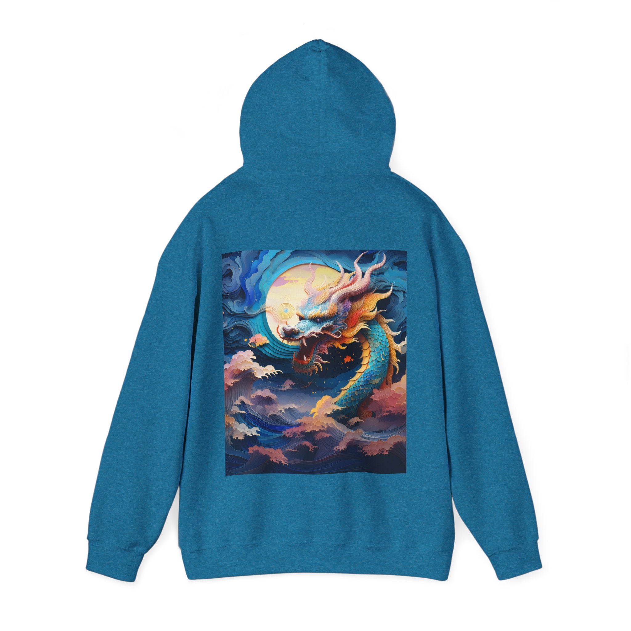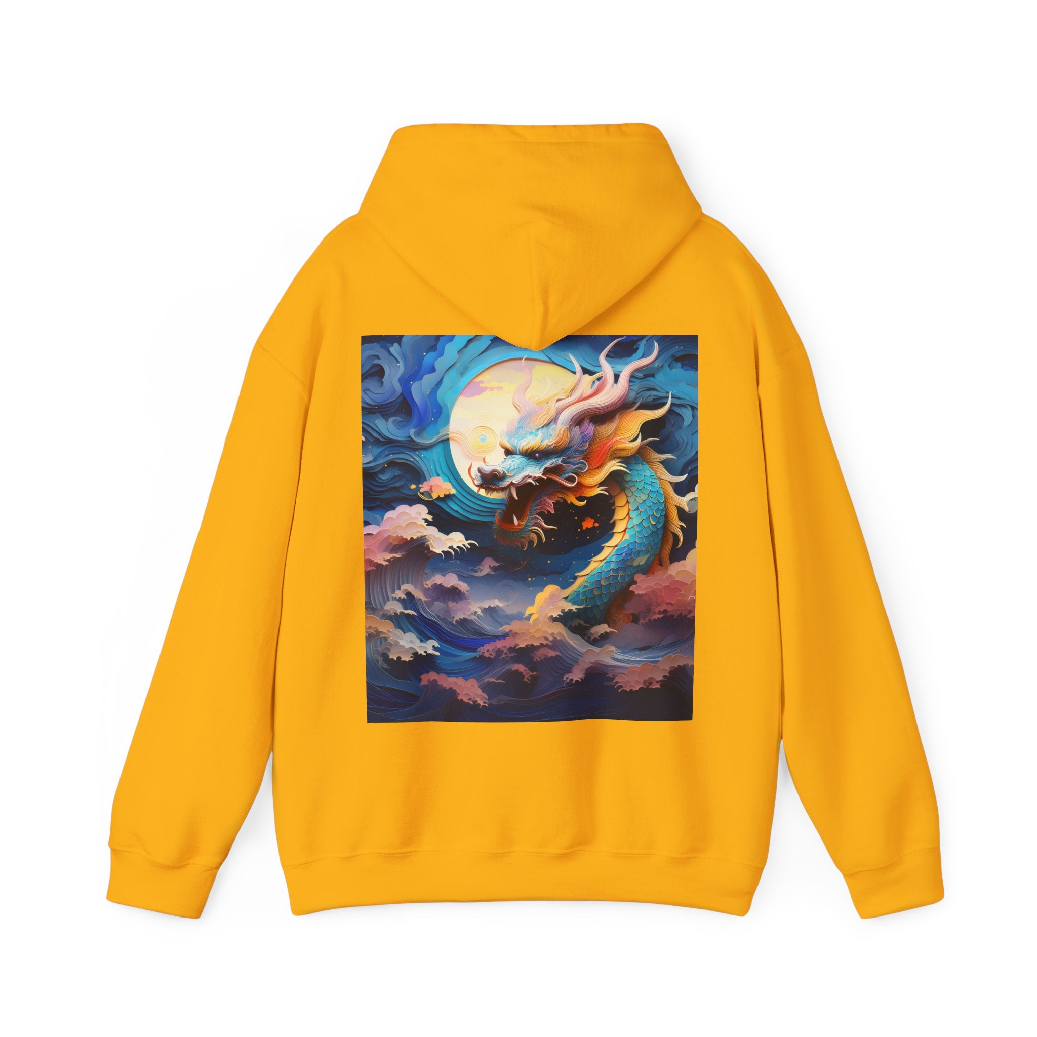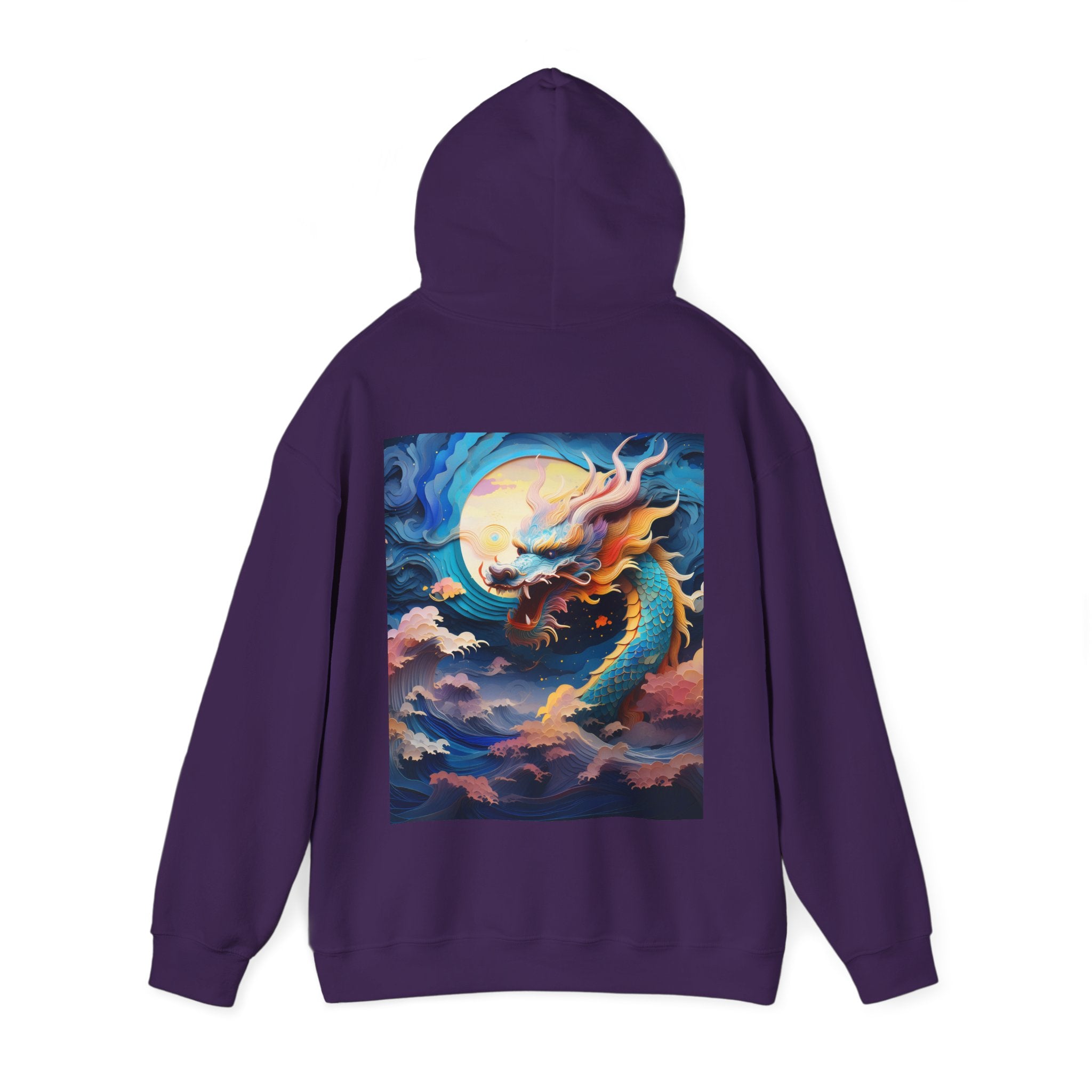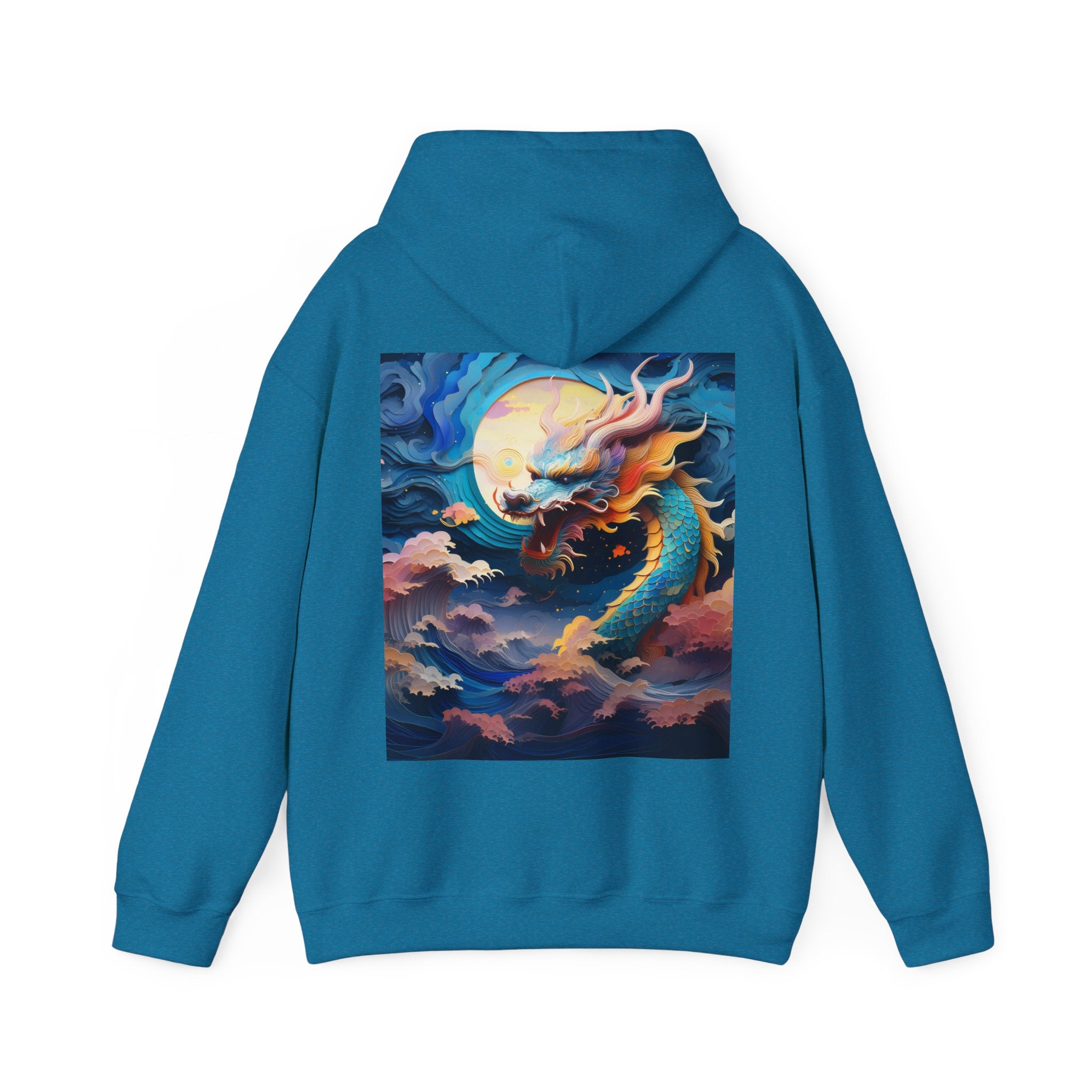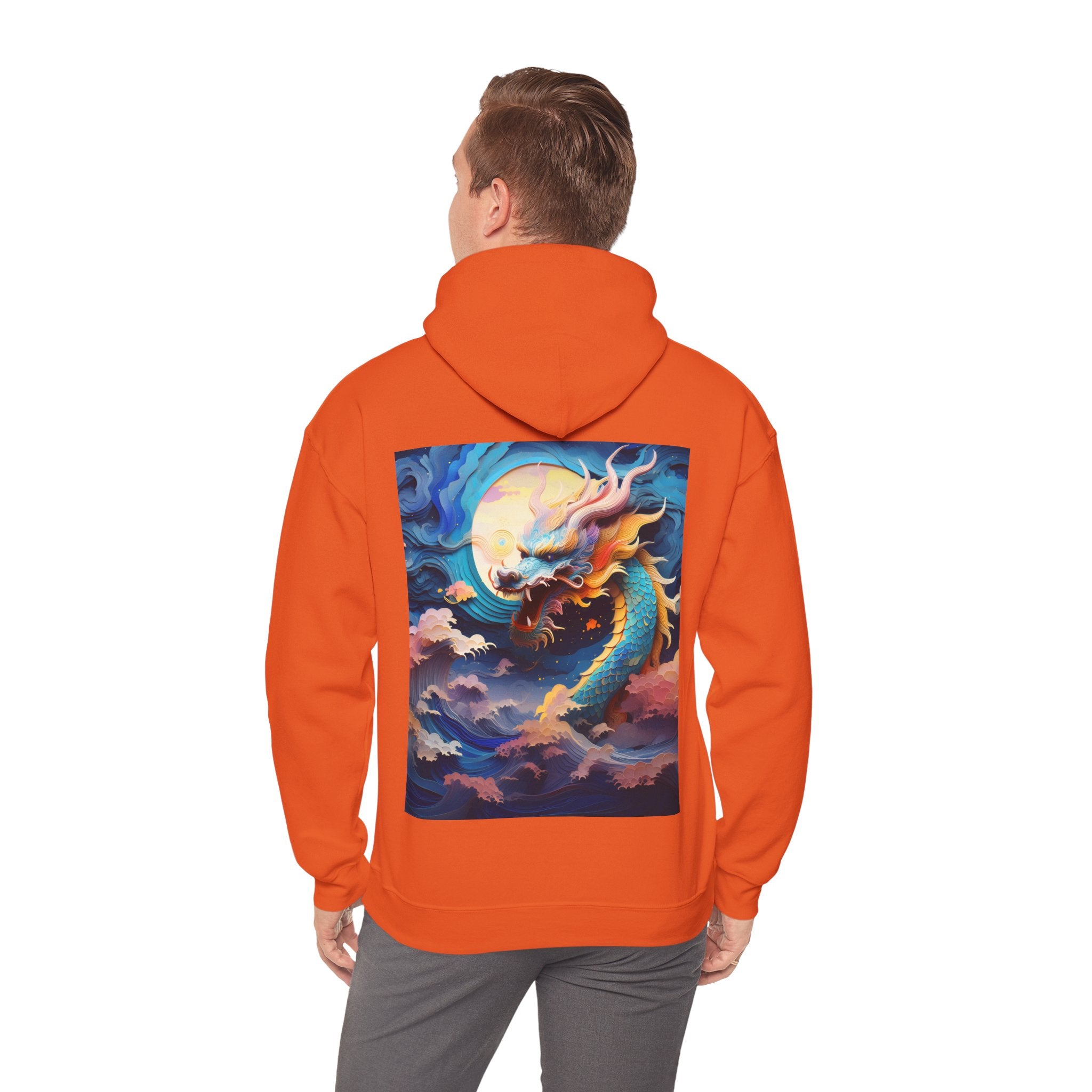 Dragon of the Tempest – Heavy Blend™ Hooded Sweatshirt brings the raw force of a storm and the timeless power of a dragon into one striking design. The artwork shows a mighty dragon soaring through a storm-tossed sky, its scales lit by flashes of light as waves crash and clouds swirl beneath it. Moving as one with the tempest, the creature becomes part of the chaos and the beauty, while a distant sun breaks softly through the storm—symbolizing resilience, renewal, and the ancient bond between nature’s power and mythic legend. The result is a vivid, energetic scene that turns the hoodie into wearable storytelling.
