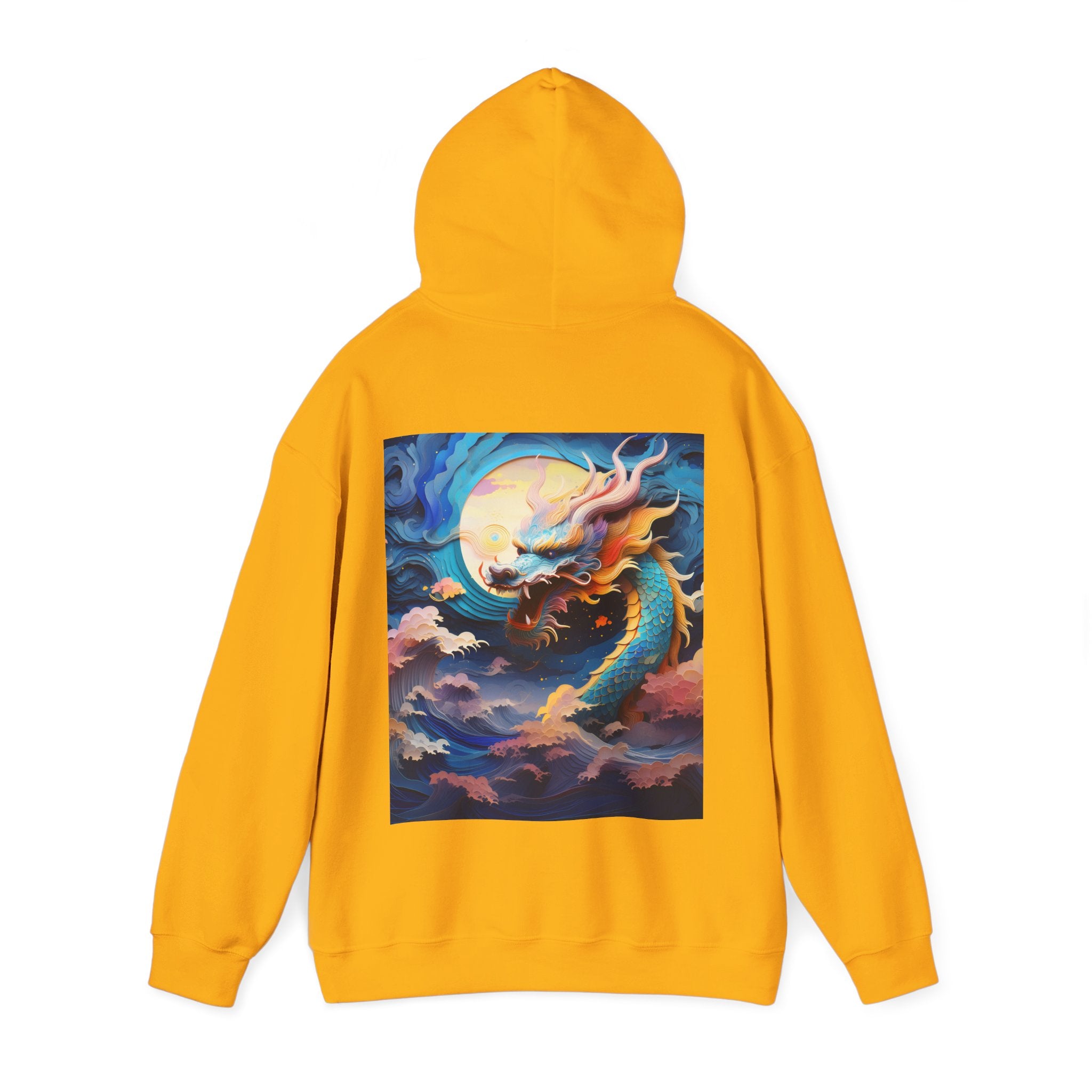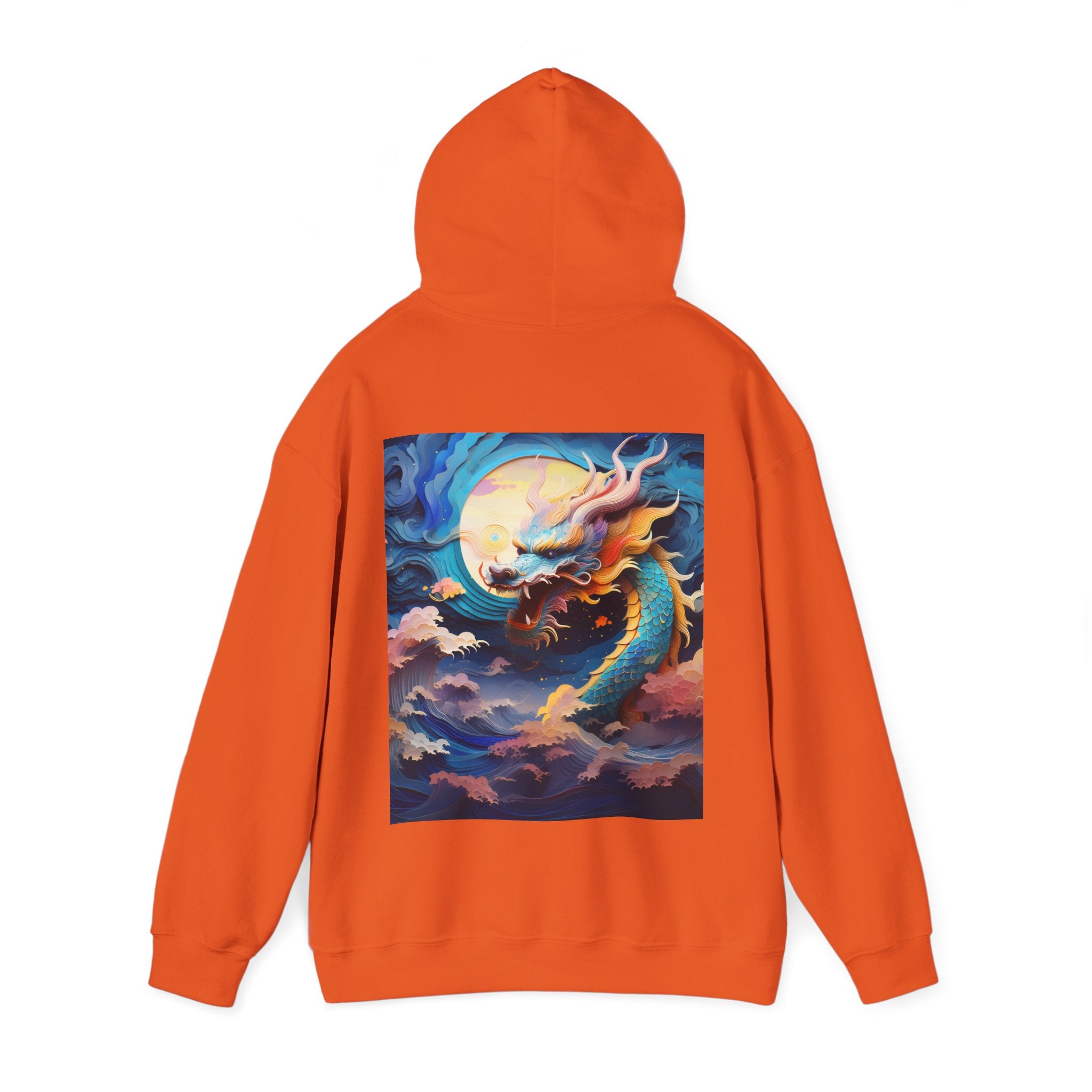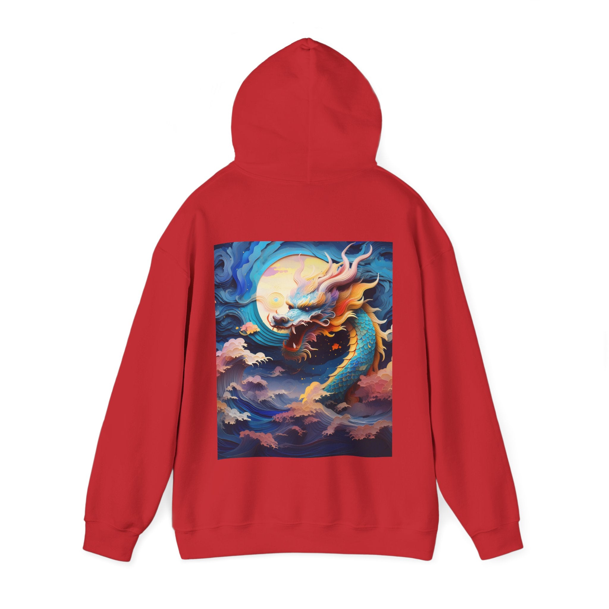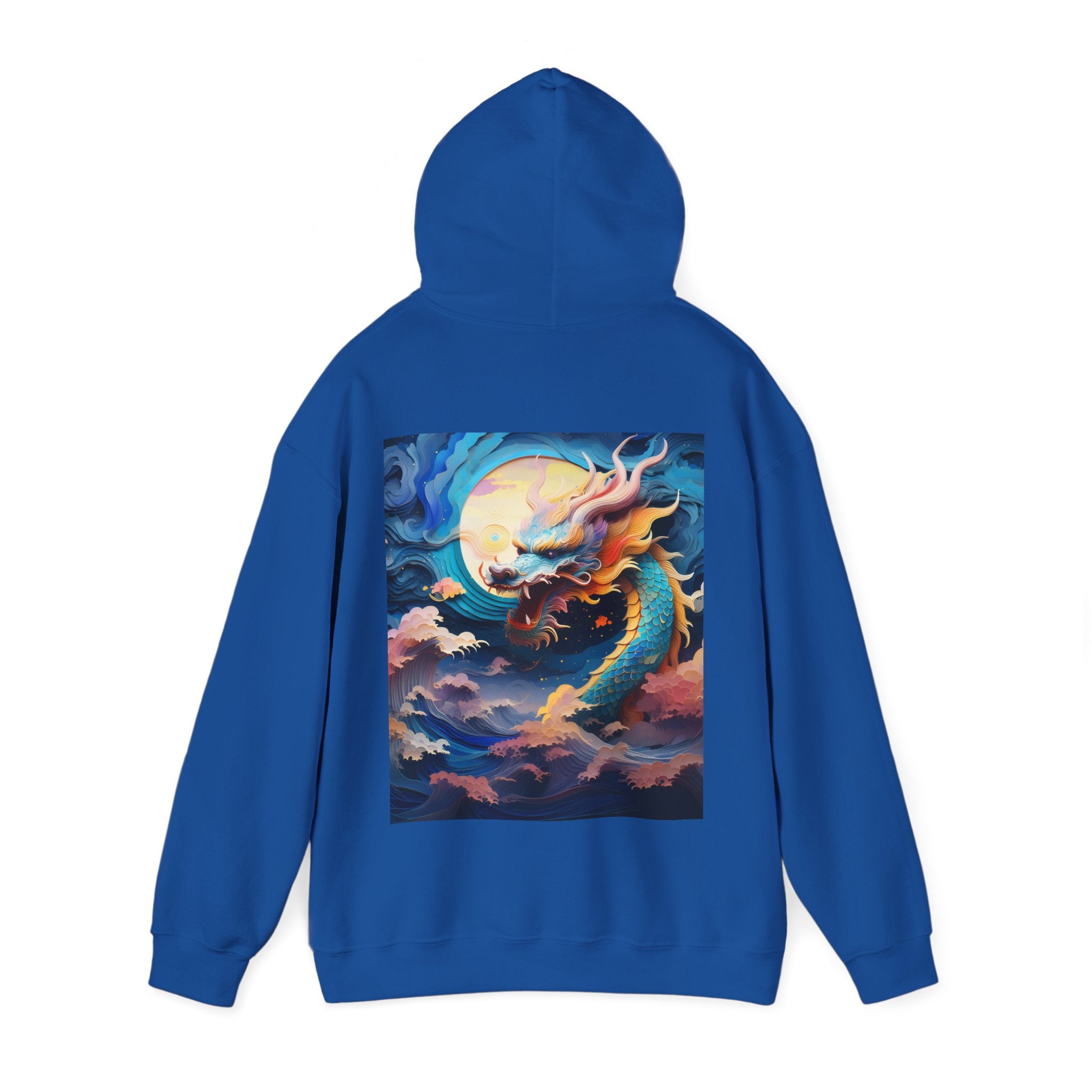 Dragon of the Tempest – Heavy Blend™ Hooded Sweatshirt brings the raw force of a storm and the timeless power of a dragon into one striking design. The artwork shows a mighty dragon soaring through a storm-tossed sky, its scales lit by flashes of light as waves crash and clouds swirl beneath it. Moving as one with the tempest, the creature becomes part of the chaos and the beauty, while a distant sun breaks softly through the storm—symbolizing resilience, renewal, and the ancient bond between nature’s power and mythic legend. The result is a vivid, energetic scene that turns the hoodie into wearable storytelling.