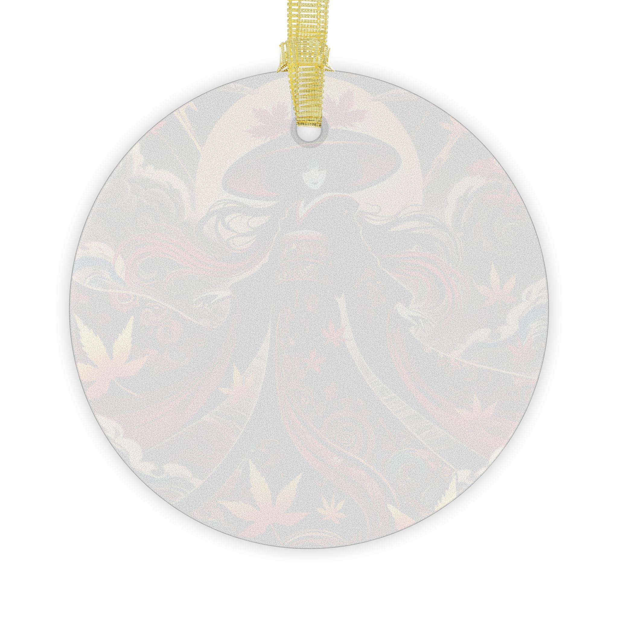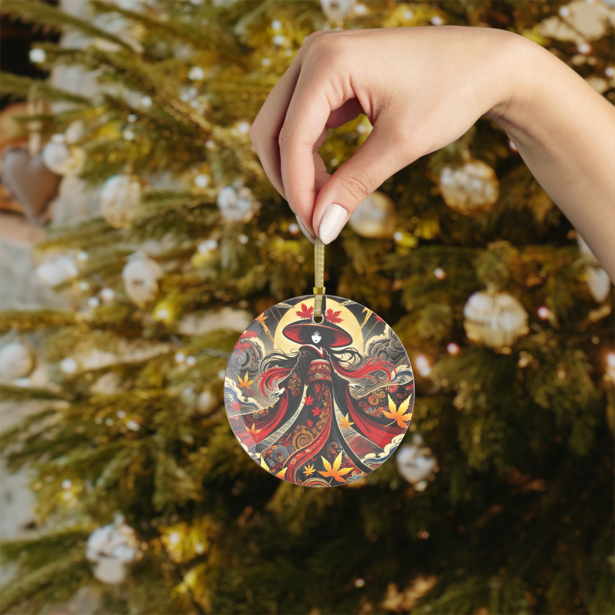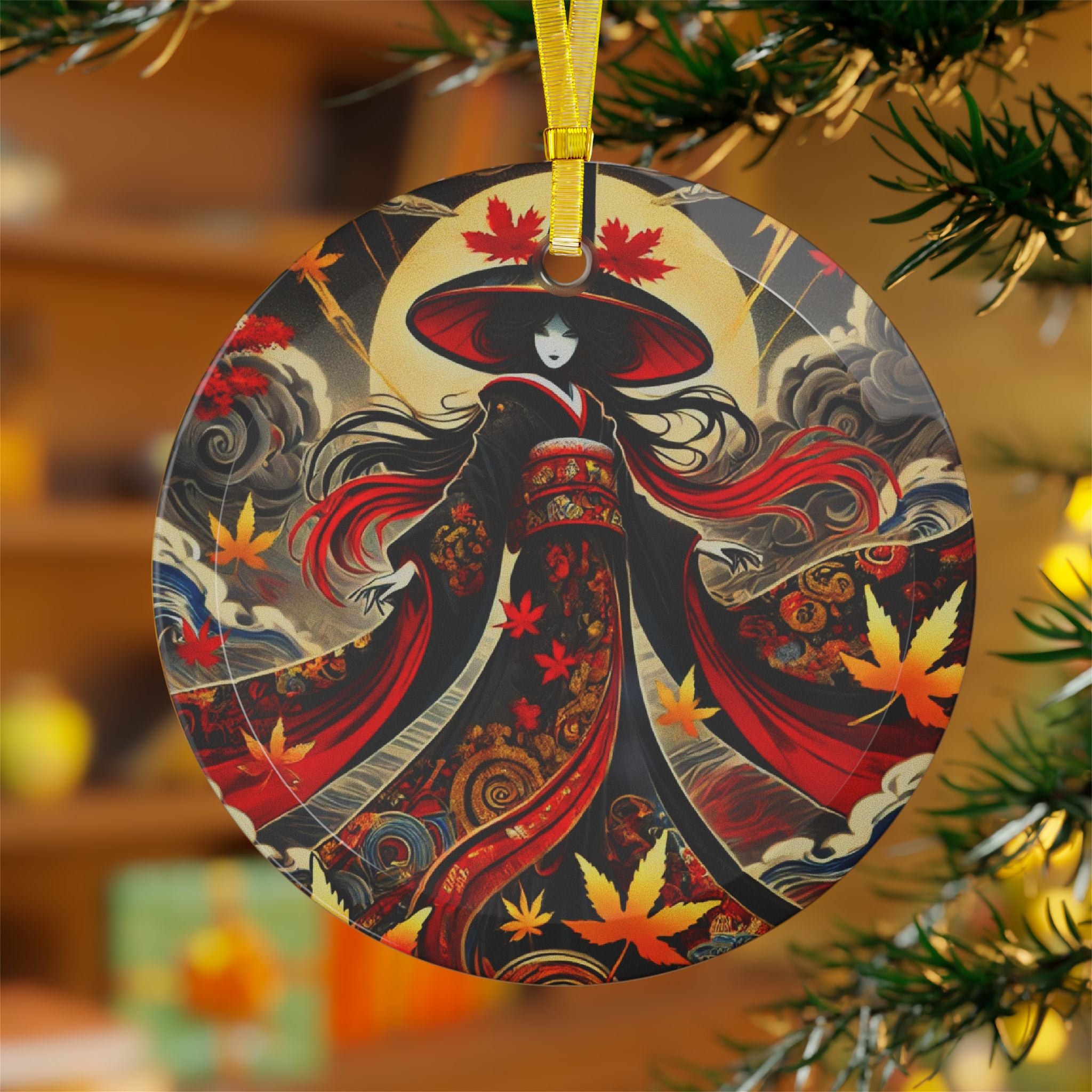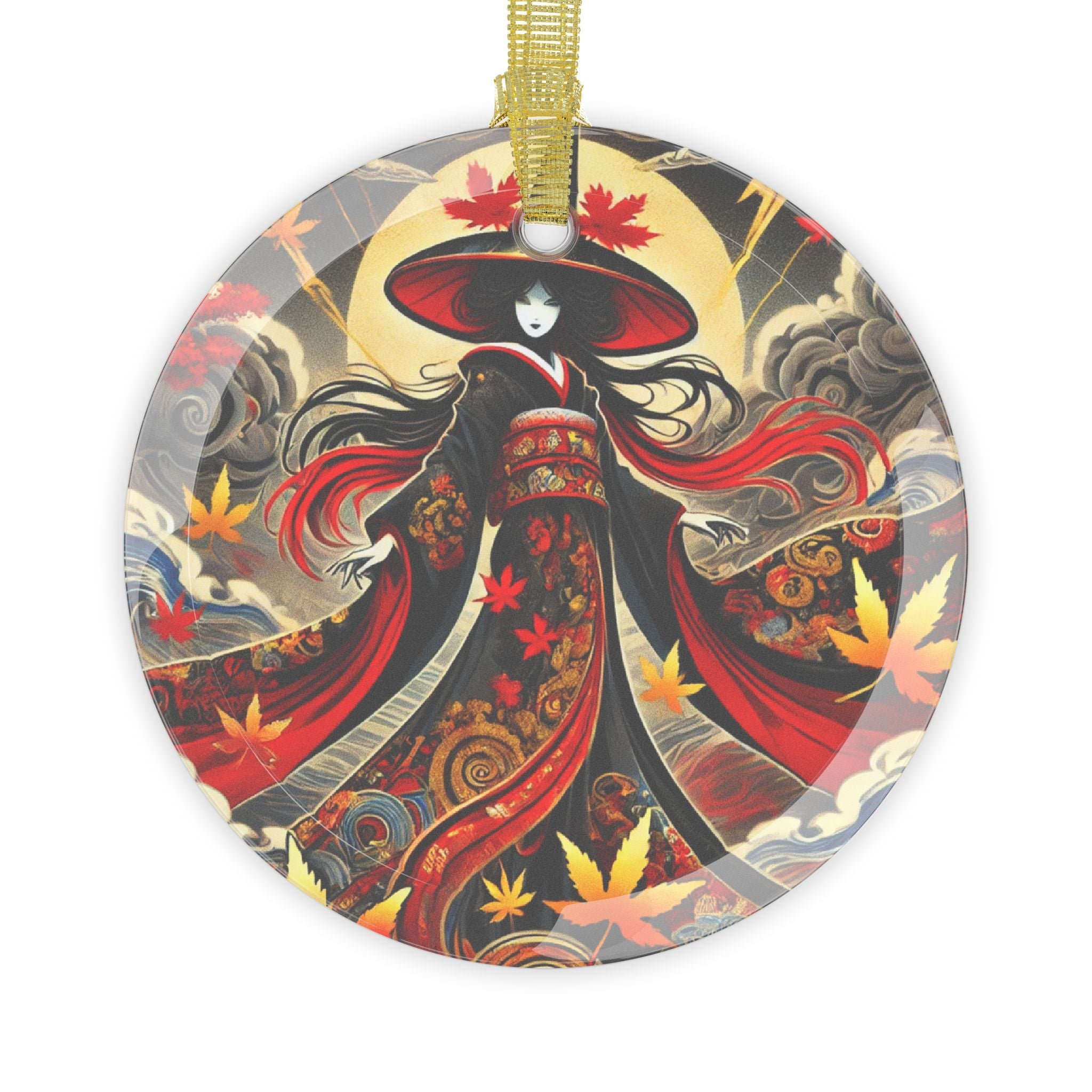 Bring Halloween drama to your décor with this striking glass ornament. It features a Kabuki witch with a towering red... Read more