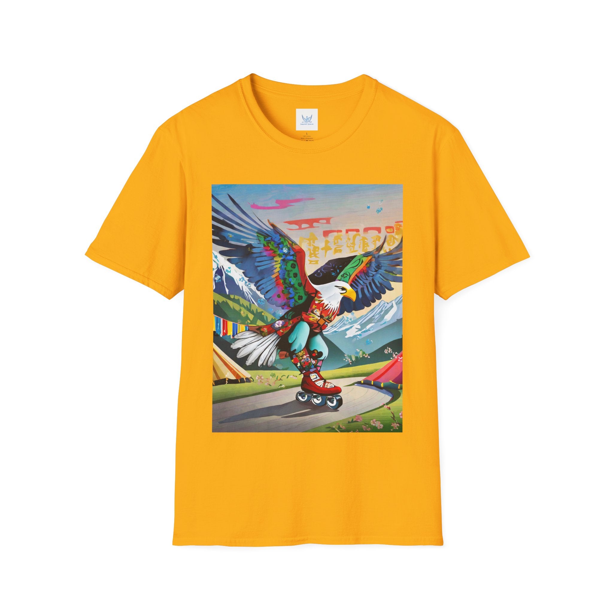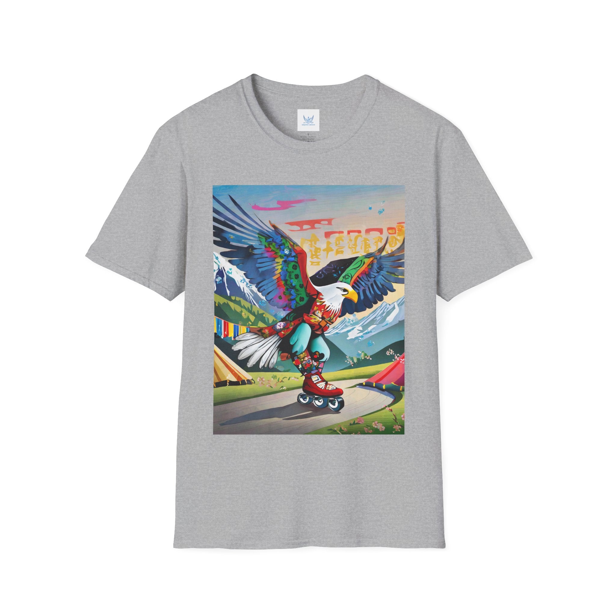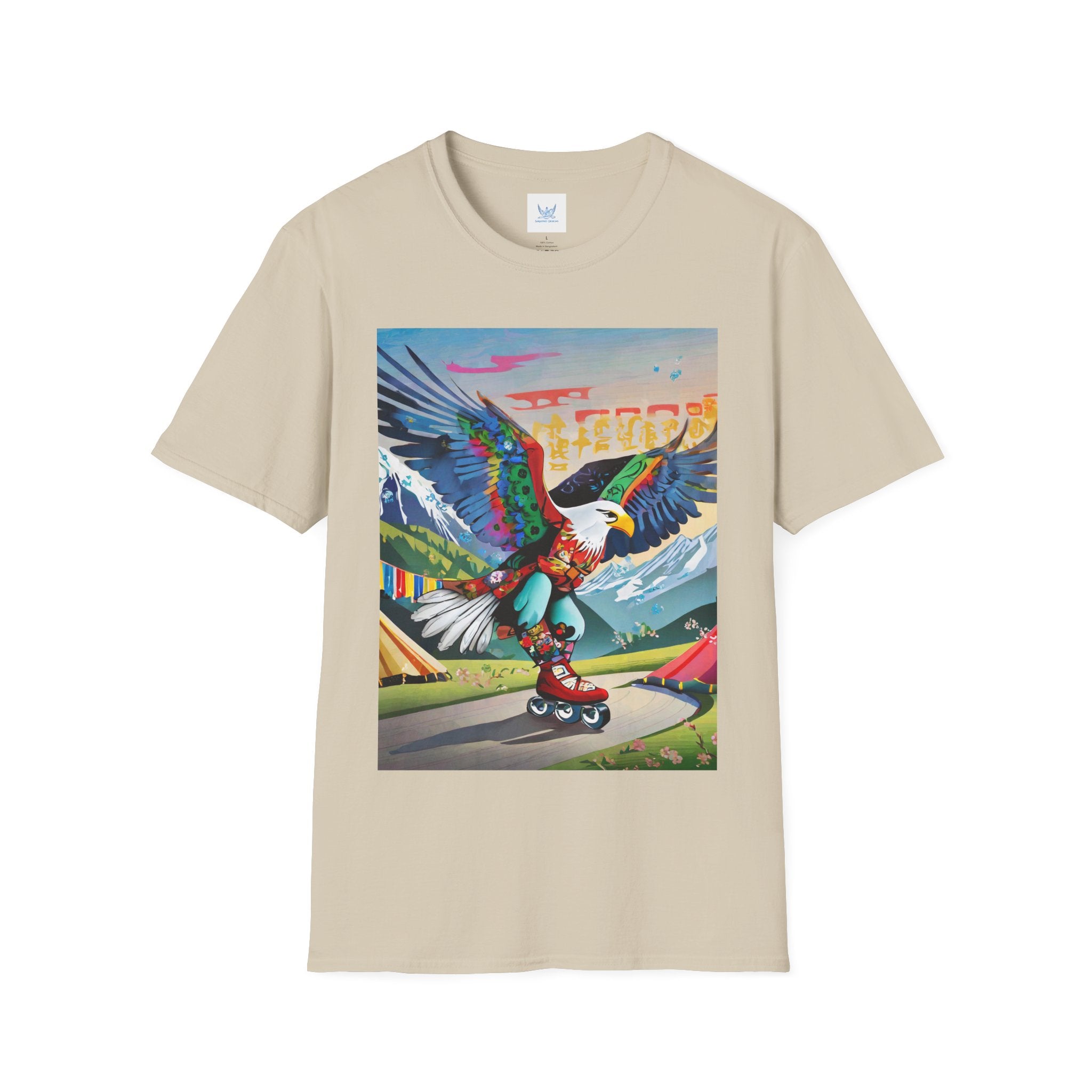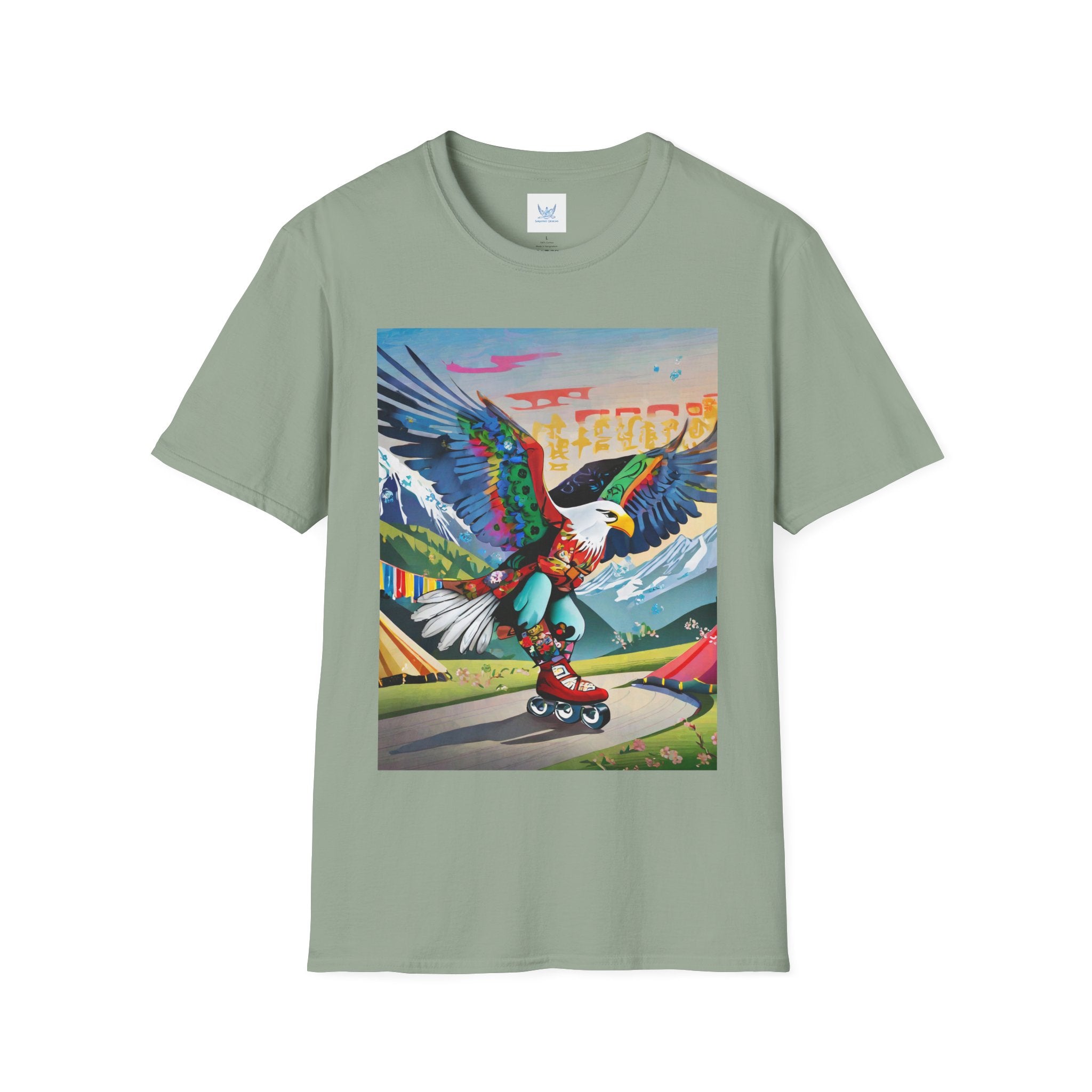 Eagle Skater Softstyle T-Shirt combines comfort, quality, and playful artistry in one standout piece. Made from the premium Gildan Softstyle® 64000 fabric, this shirt features a modern cut and a luxuriously soft texture perfect for everyday wear. Solid colors are crafted from 100% cotton, while heathers and sport grey incorporate polyester blends for added durability. Reinforced shoulders, a seamless design, and a ribbed-knit collar ensure long-lasting comfort and a smooth fit.