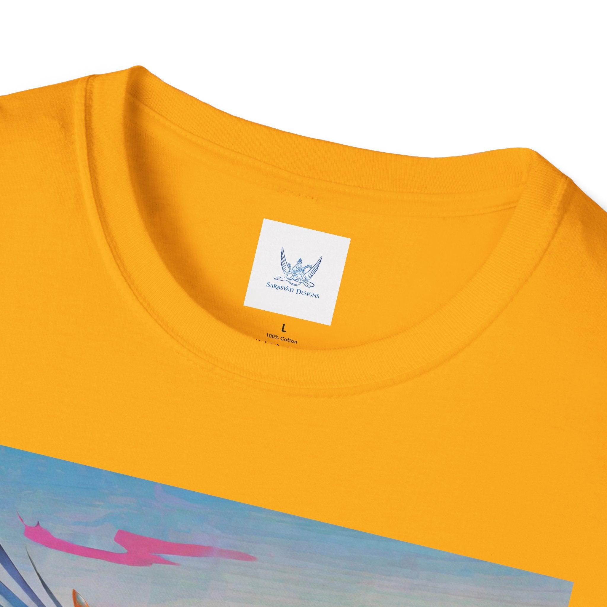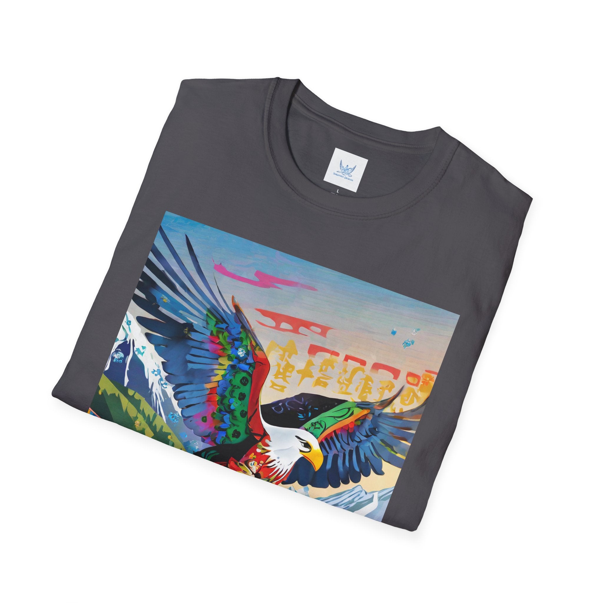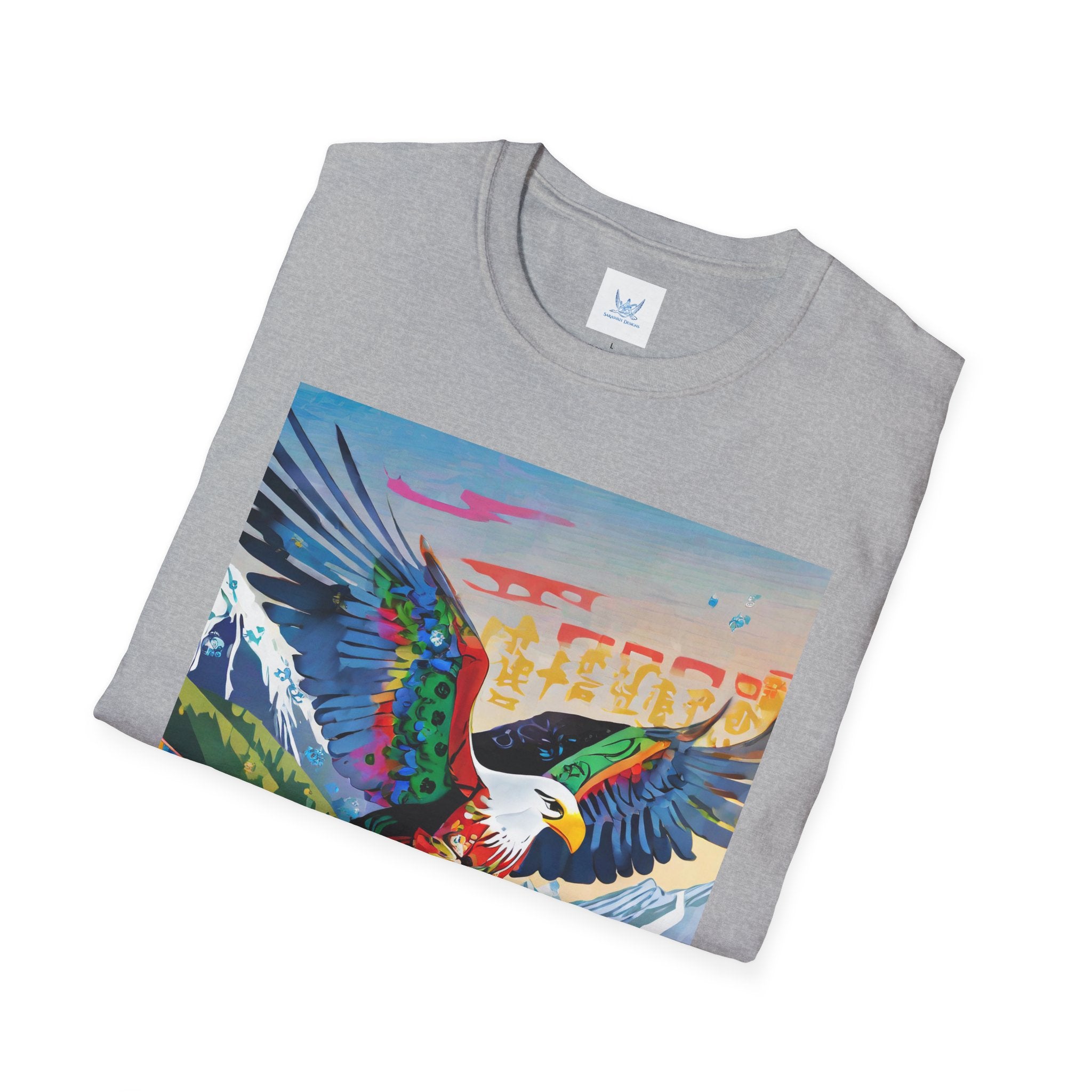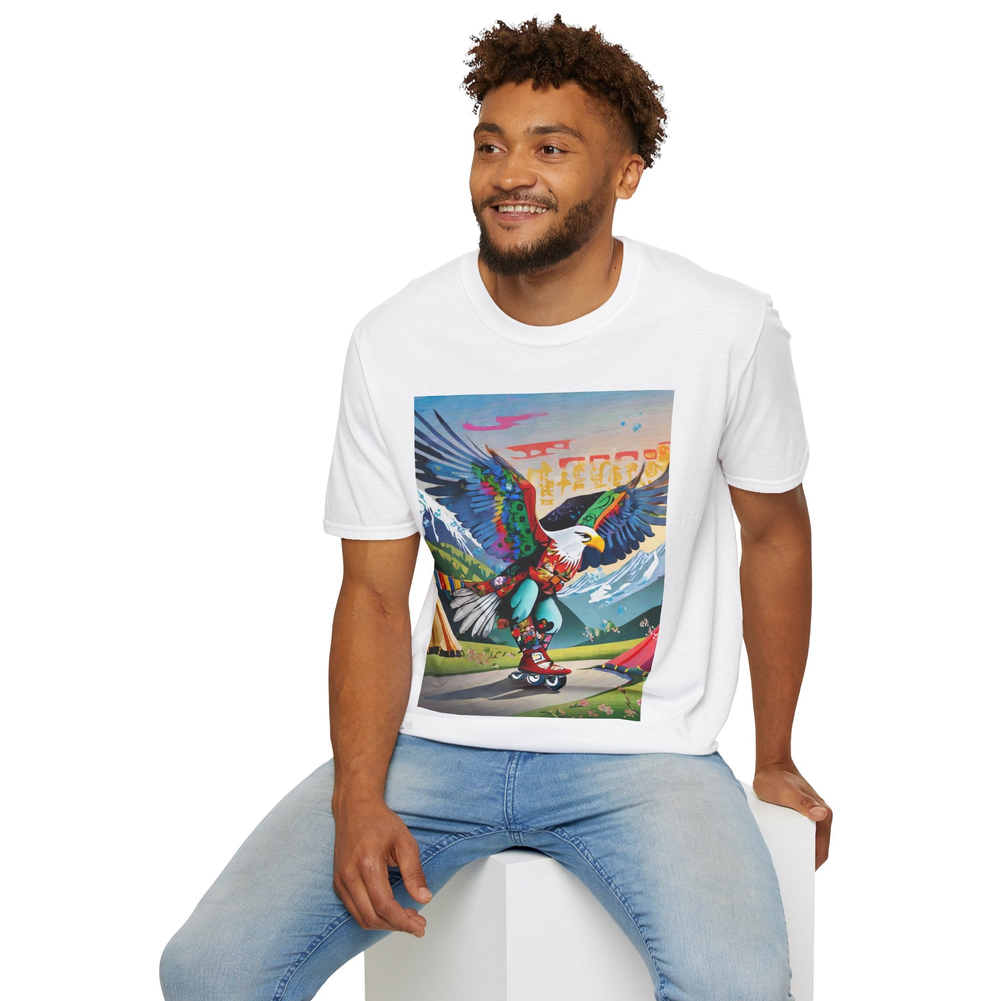 Eagle Skater Softstyle T-Shirt combines comfort, quality, and playful artistry in one standout piece. Made from the premium Gildan Softstyle® 64000 fabric, this shirt features a modern cut and a luxuriously soft texture perfect for everyday wear. Solid colors are crafted from 100% cotton, while heathers and sport grey incorporate polyester blends for added durability. Reinforced shoulders, a seamless design, and a ribbed-knit collar ensure long-lasting comfort and a smooth fit.