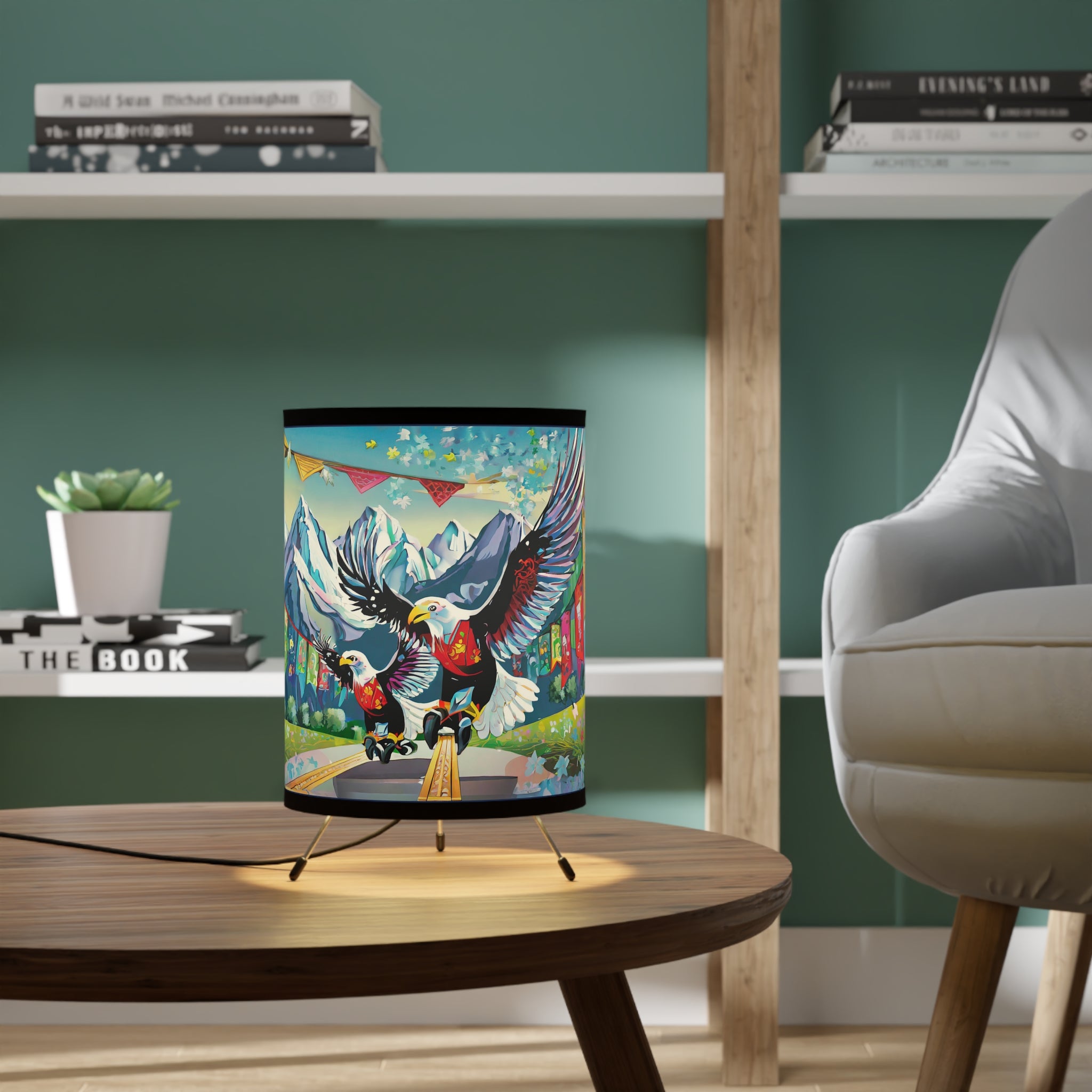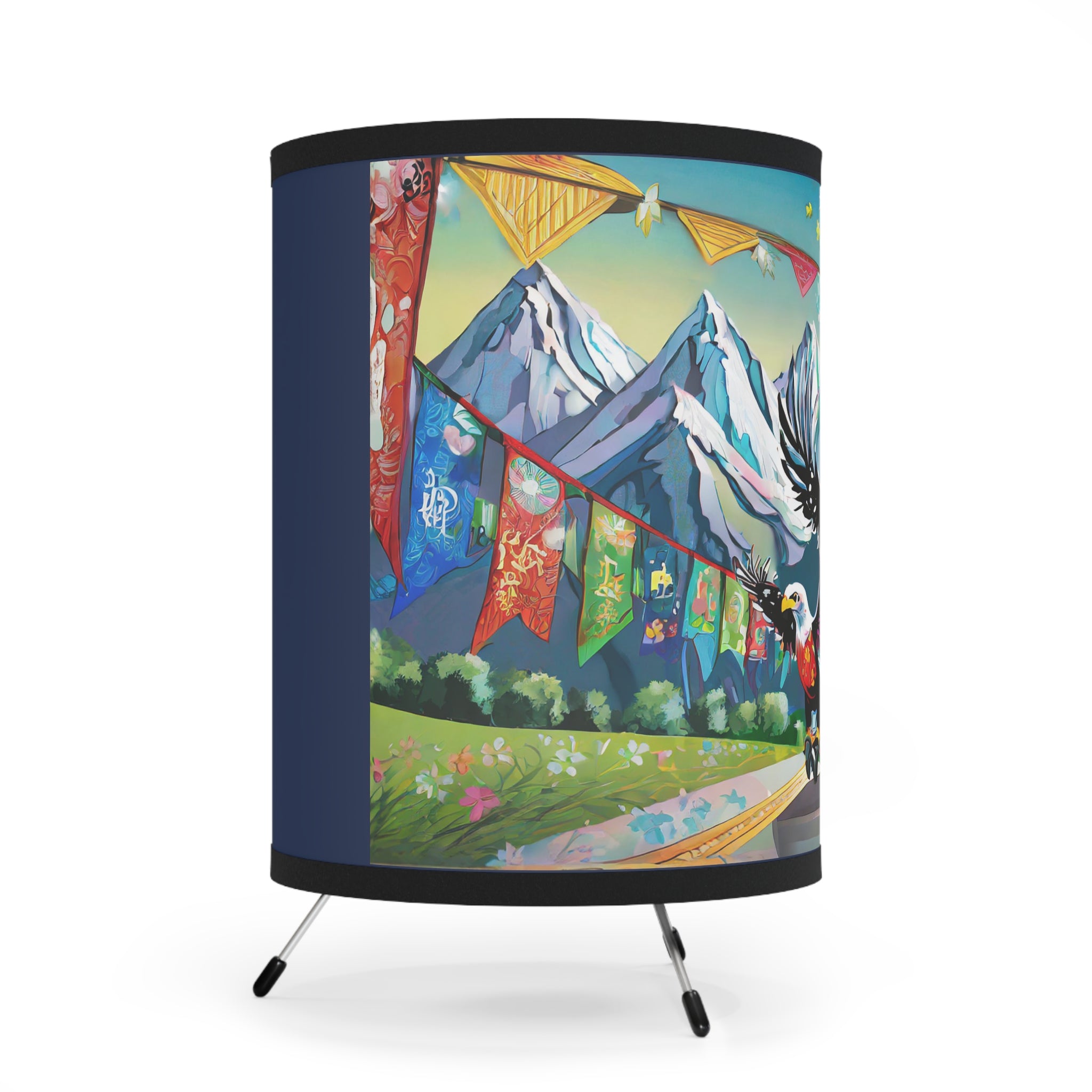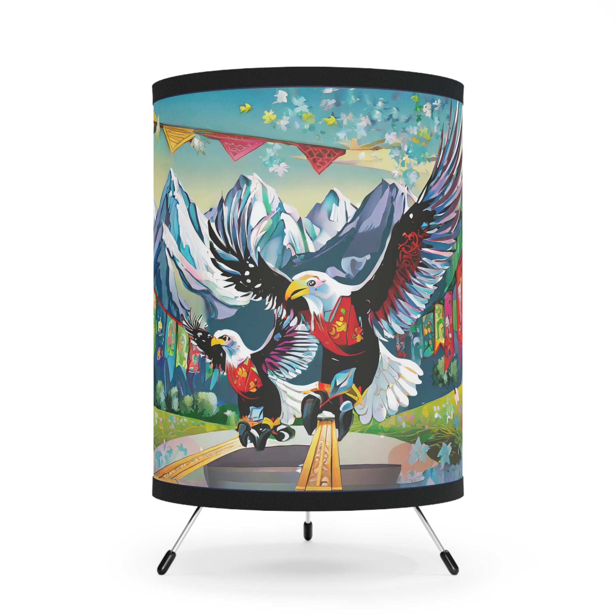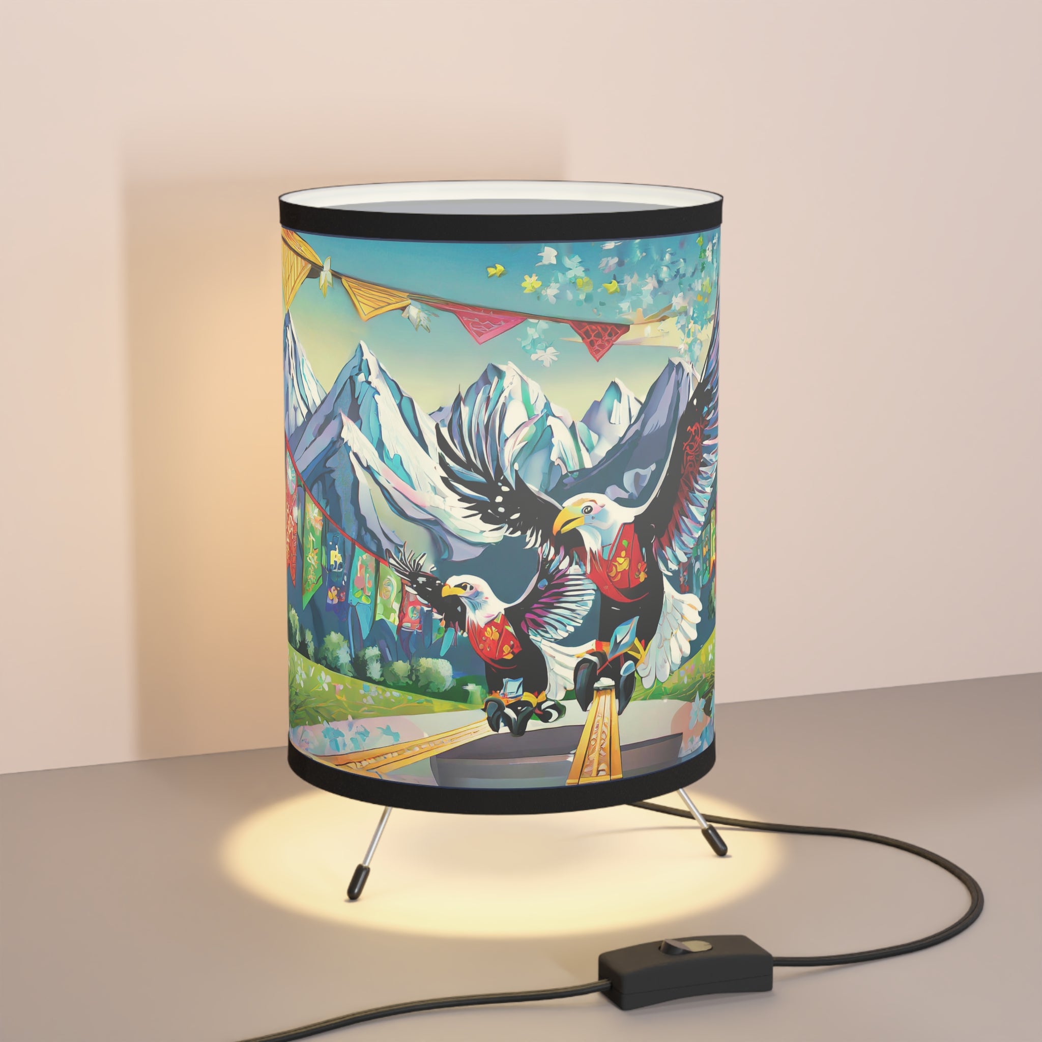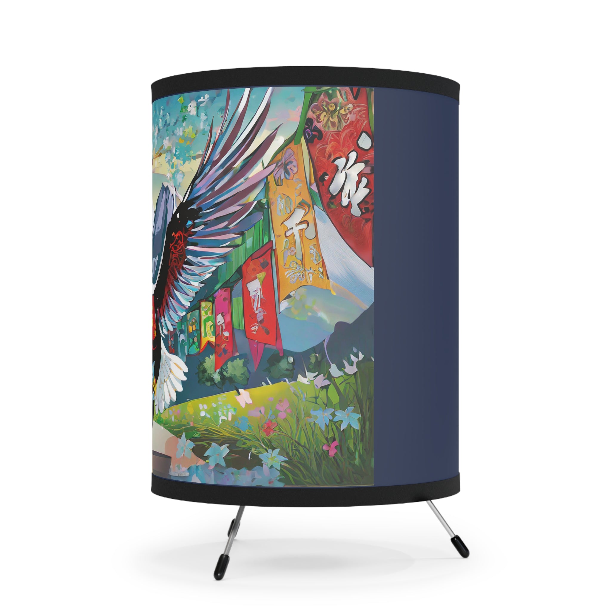 Transform your room with this epic tripod lamp! This sturdy lamp has a cool metal base, and the best part? It comes with an awesome pre-designed artwork for the shade! The high-resolution image is super vibrant, so your favorite design will light up your space in style. This lamp isn't just for lighting, it's a statement piece that lets you show off your personality. Light up your room and your imagination with this must-have lamp!