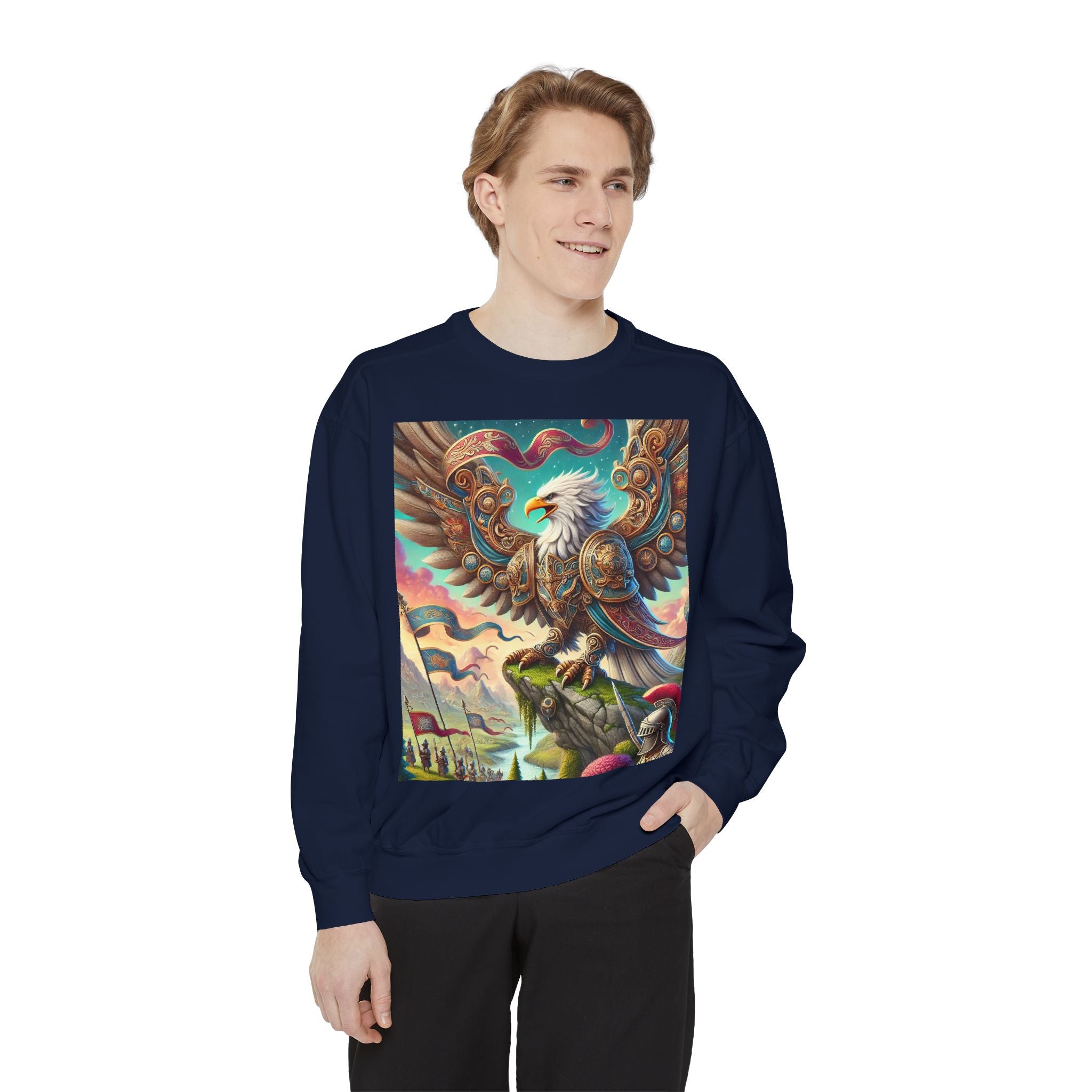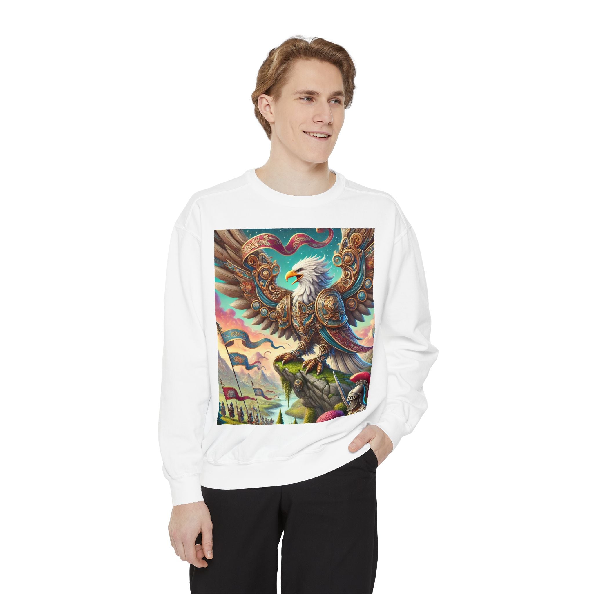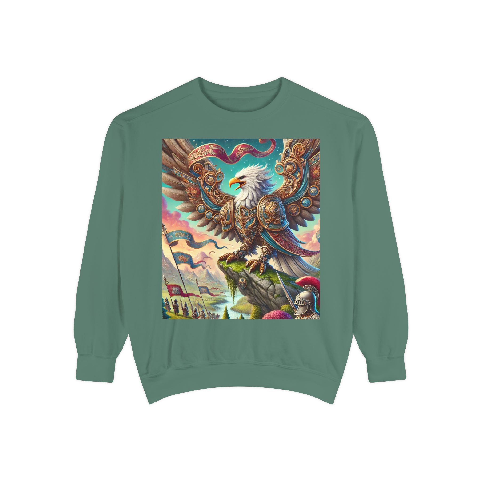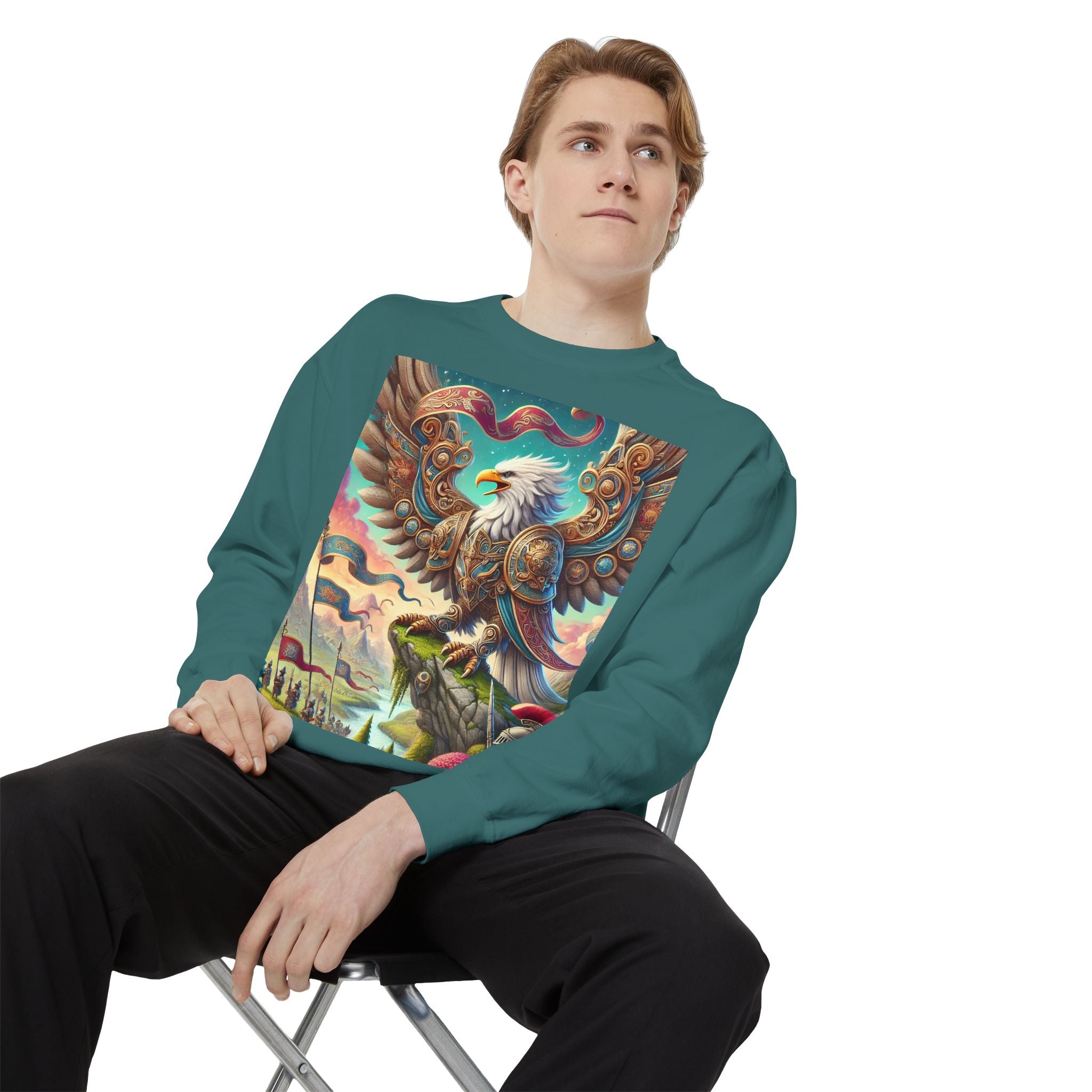 Eagle Warrior's Watch Sweatshirt blends luxurious comfort with commanding artistry. Crafted from 80% ring-spun cotton and 20% polyester, this unisex garment-dyed sweatshirt delivers both durability and an irresistibly soft feel. The 3-end, color-blast fleece gives each piece a distinctive, lived-in texture, while its relaxed fit and rolled-forward shoulders provide timeless comfort and effortless sophistication.