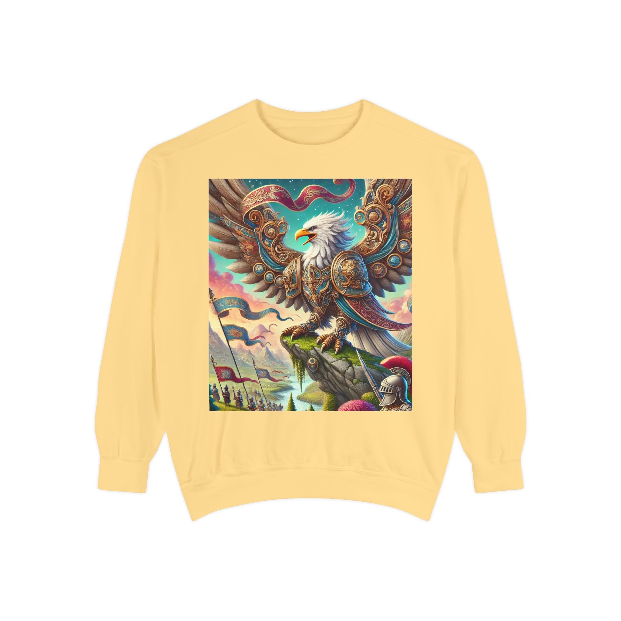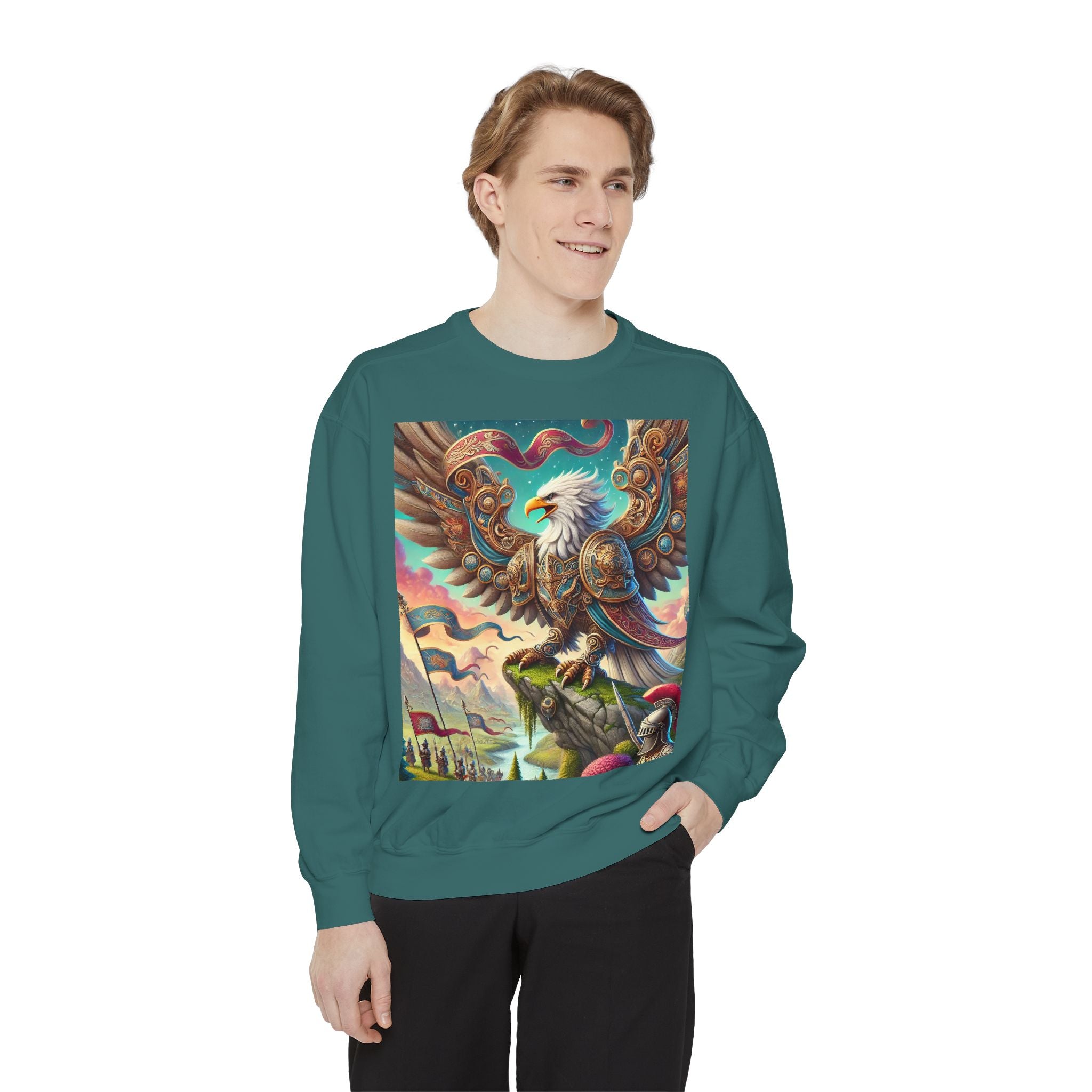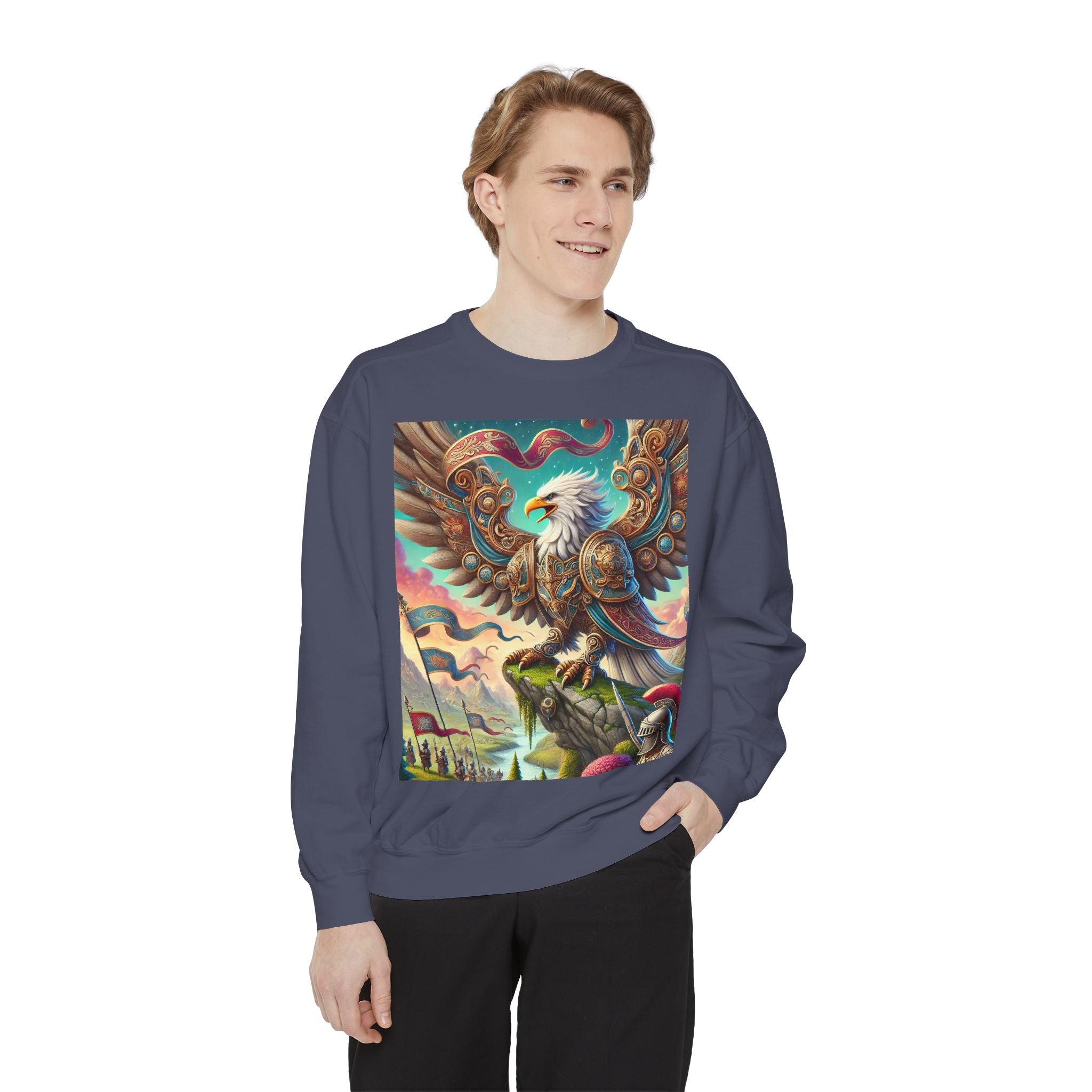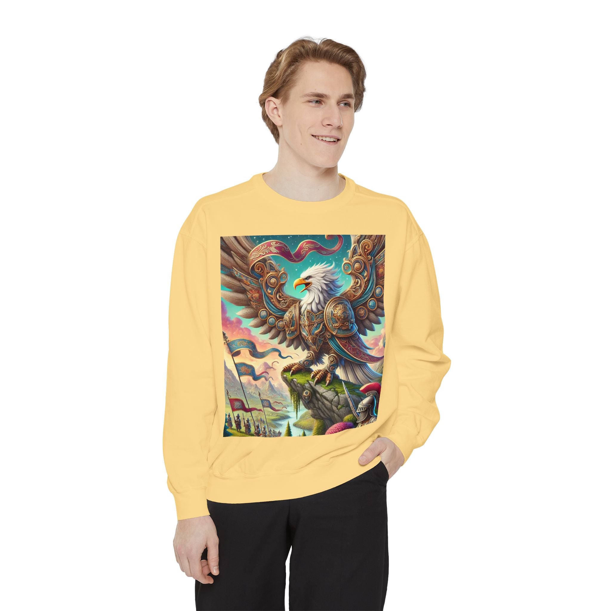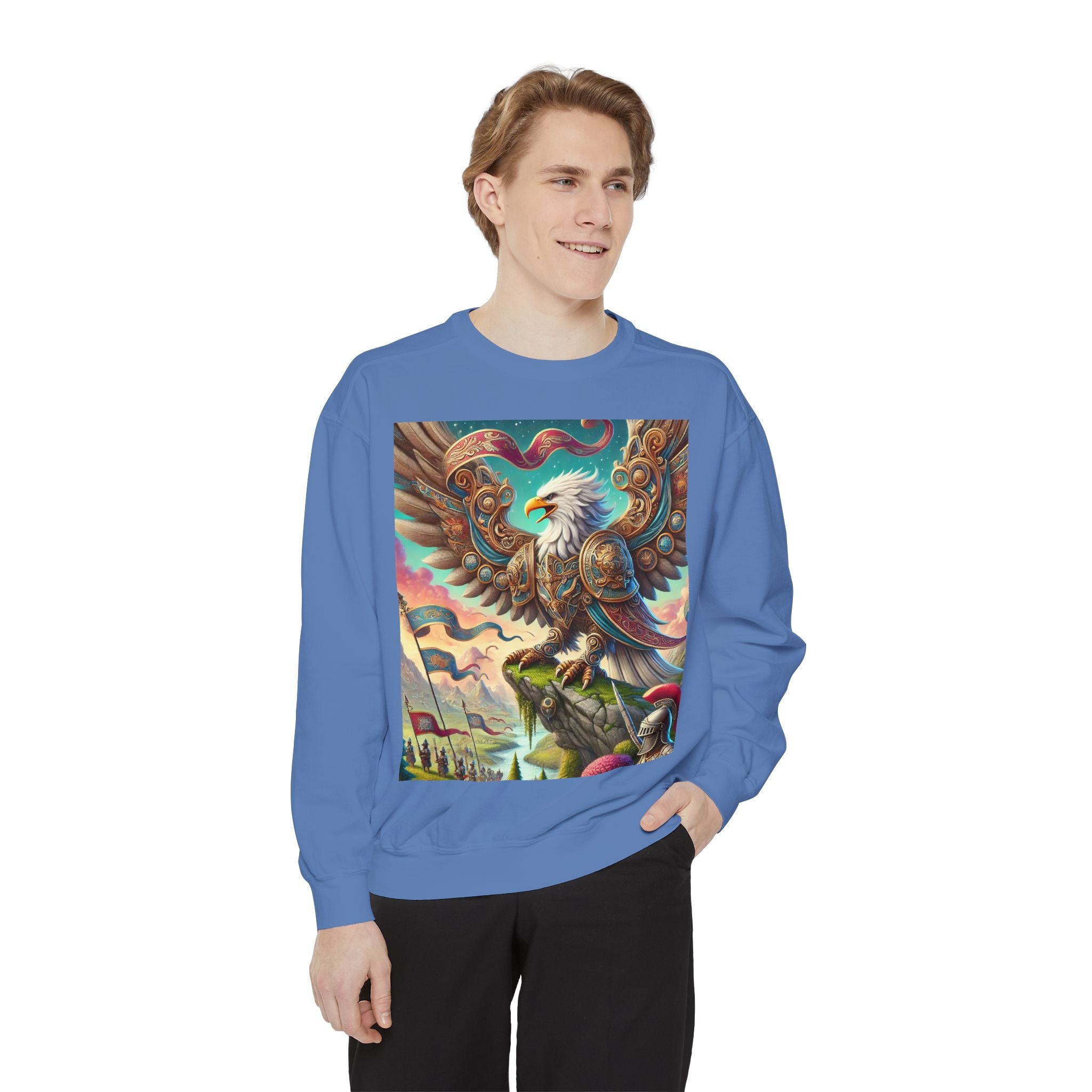 Eagle Warrior's Watch Sweatshirt blends luxurious comfort with commanding artistry. Crafted from 80% ring-spun cotton and 20% polyester, this unisex garment-dyed sweatshirt delivers both durability and an irresistibly soft feel. The 3-end, color-blast fleece gives each piece a distinctive, lived-in texture, while its relaxed fit and rolled-forward shoulders provide timeless comfort and effortless sophistication.