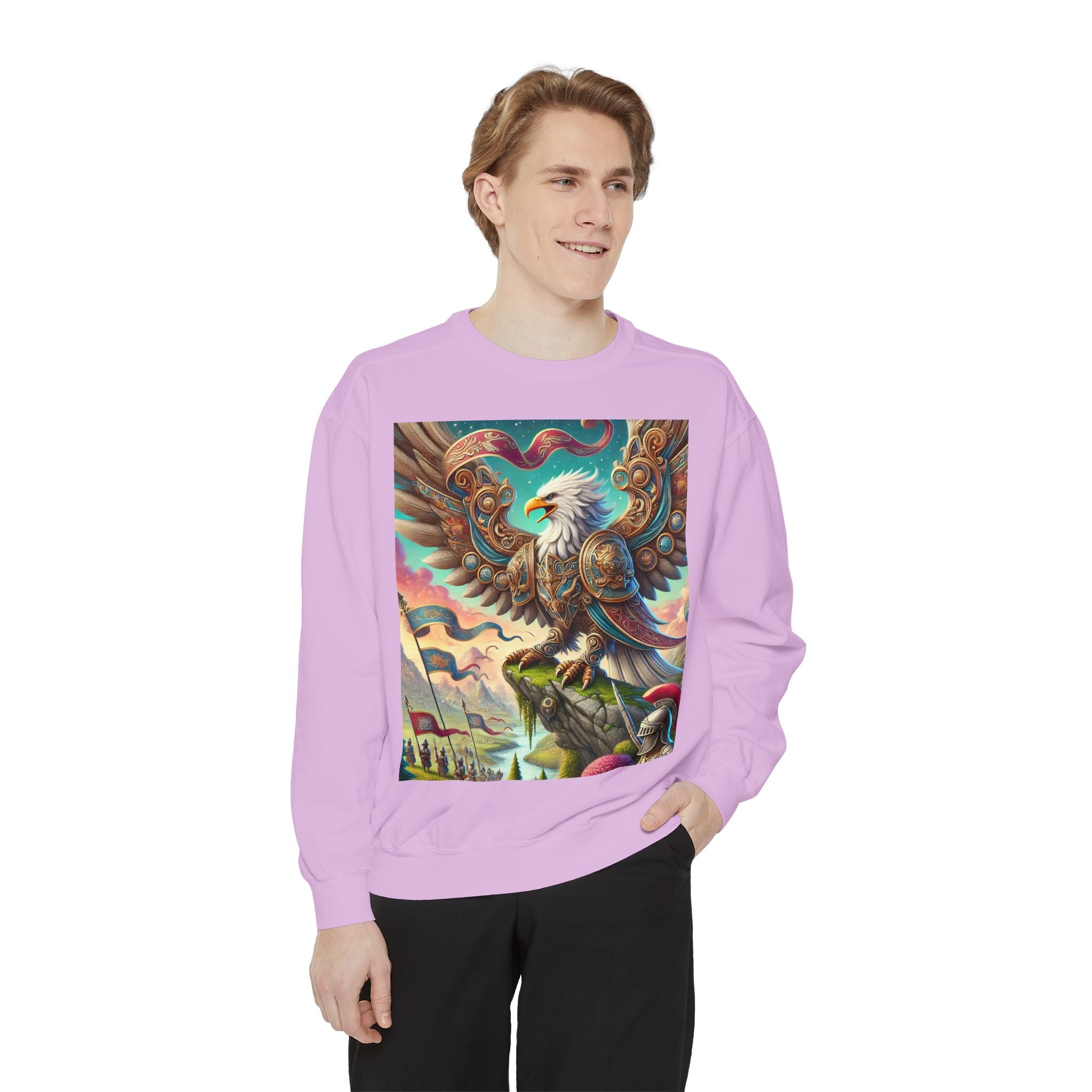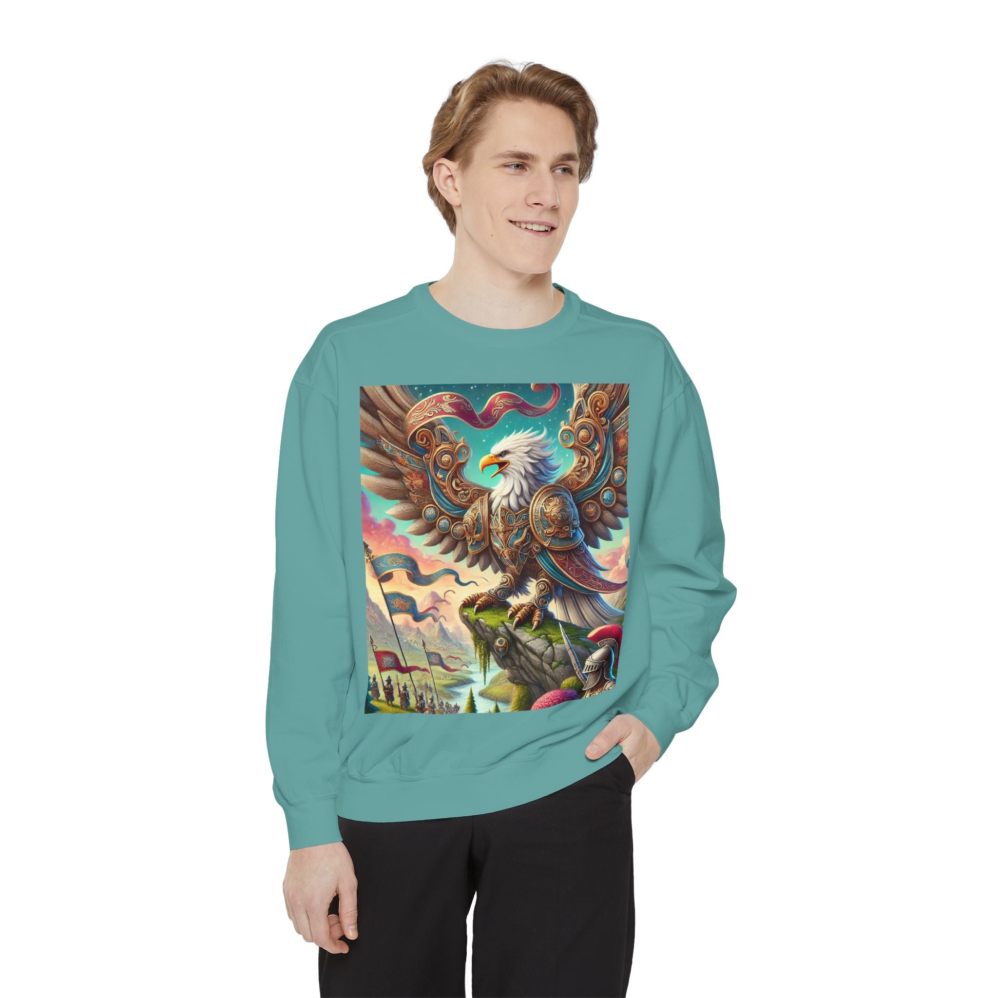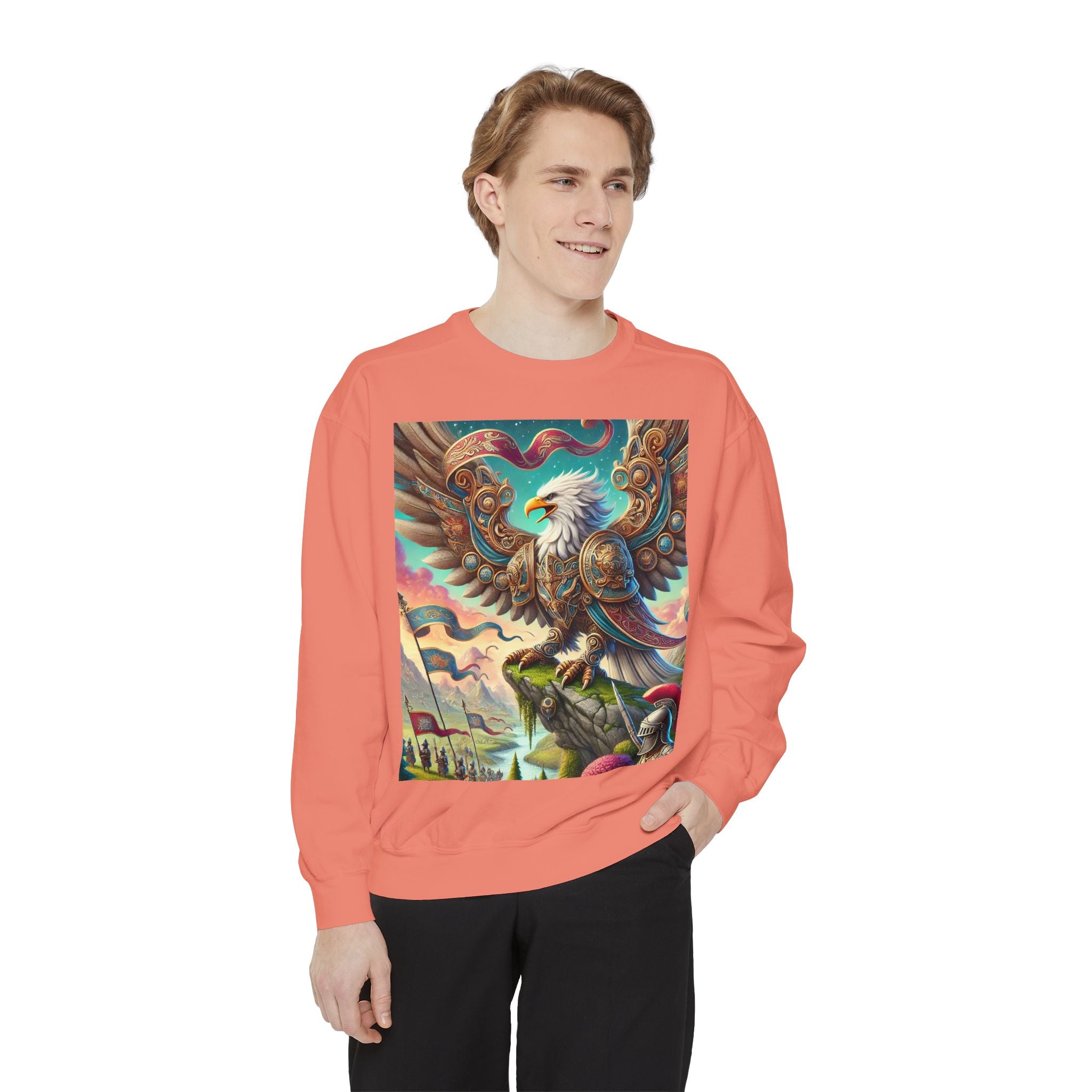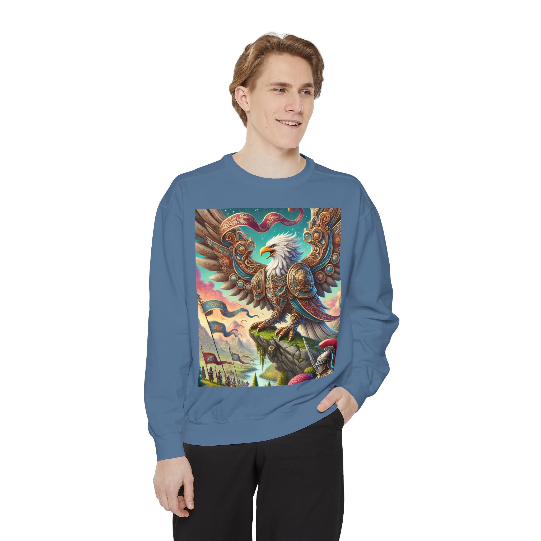 Eagle Warrior's Watch Sweatshirt blends luxurious comfort with commanding artistry. Crafted from 80% ring-spun cotton and 20% polyester, this unisex garment-dyed sweatshirt delivers both durability and an irresistibly soft feel. The 3-end, color-blast fleece gives each piece a distinctive, lived-in texture, while its relaxed fit and rolled-forward shoulders provide timeless comfort and effortless sophistication.