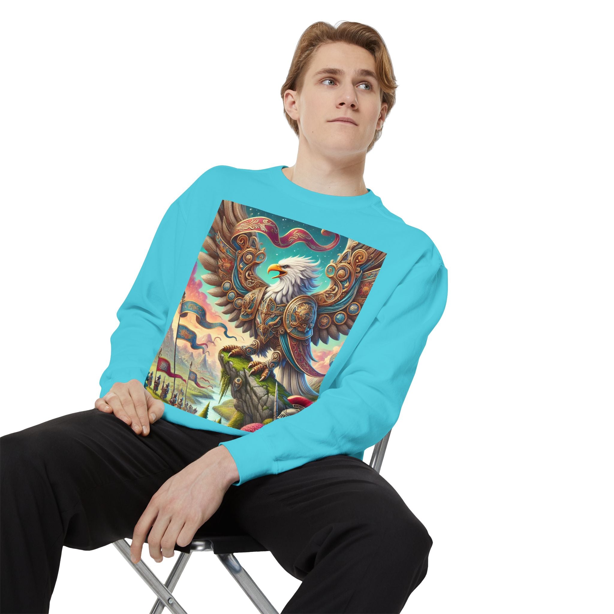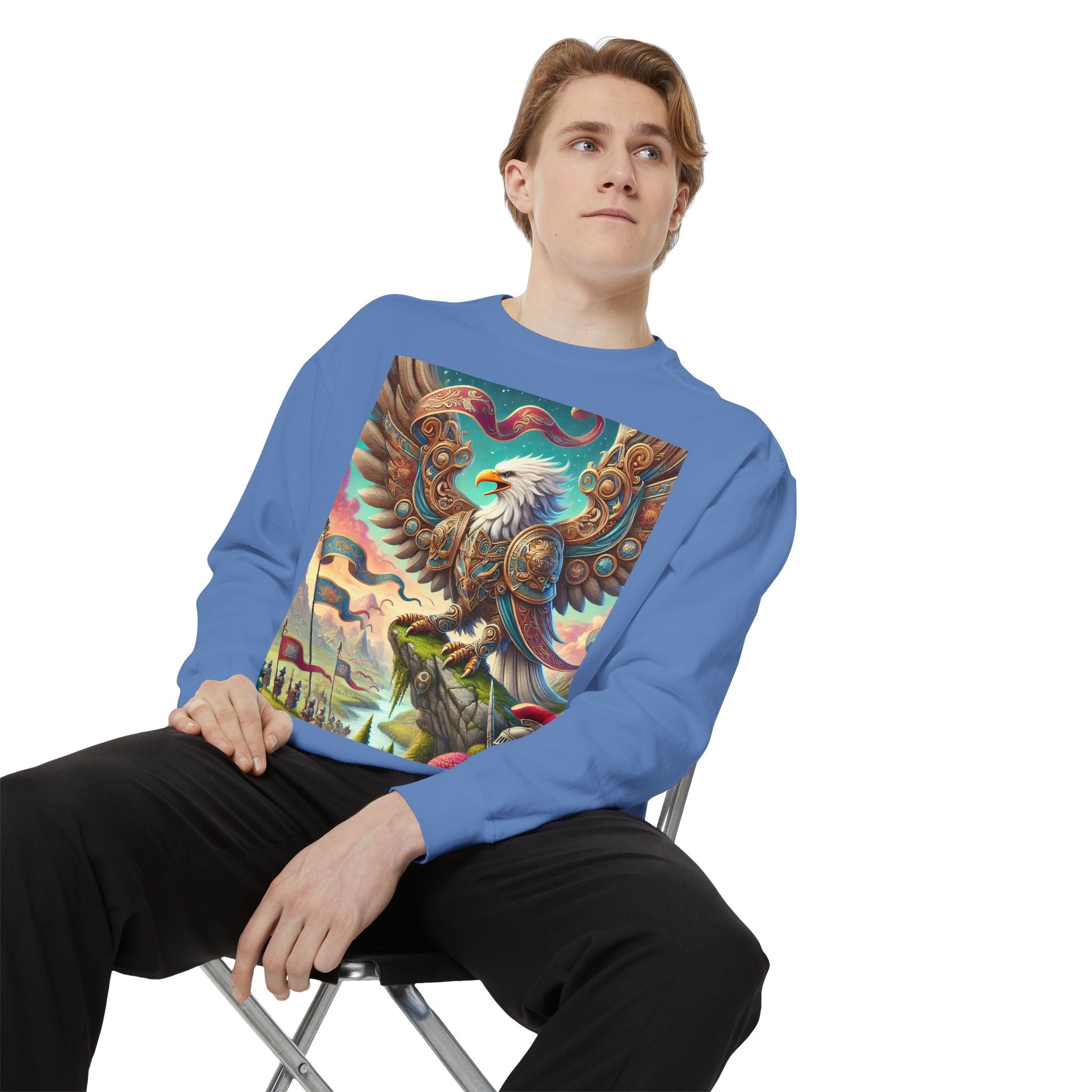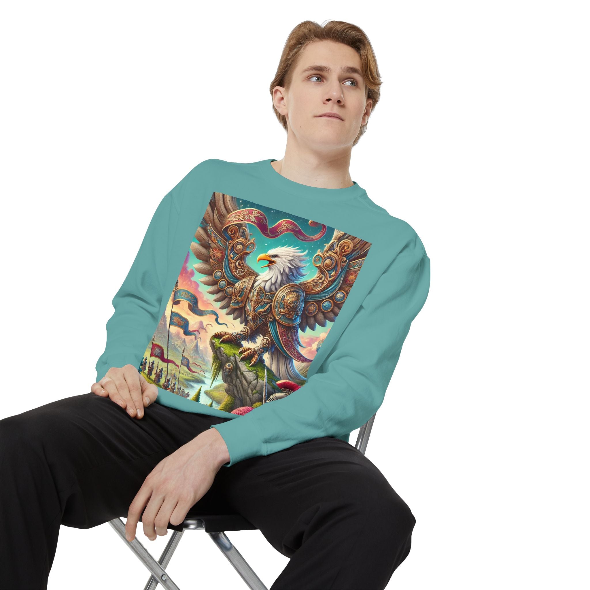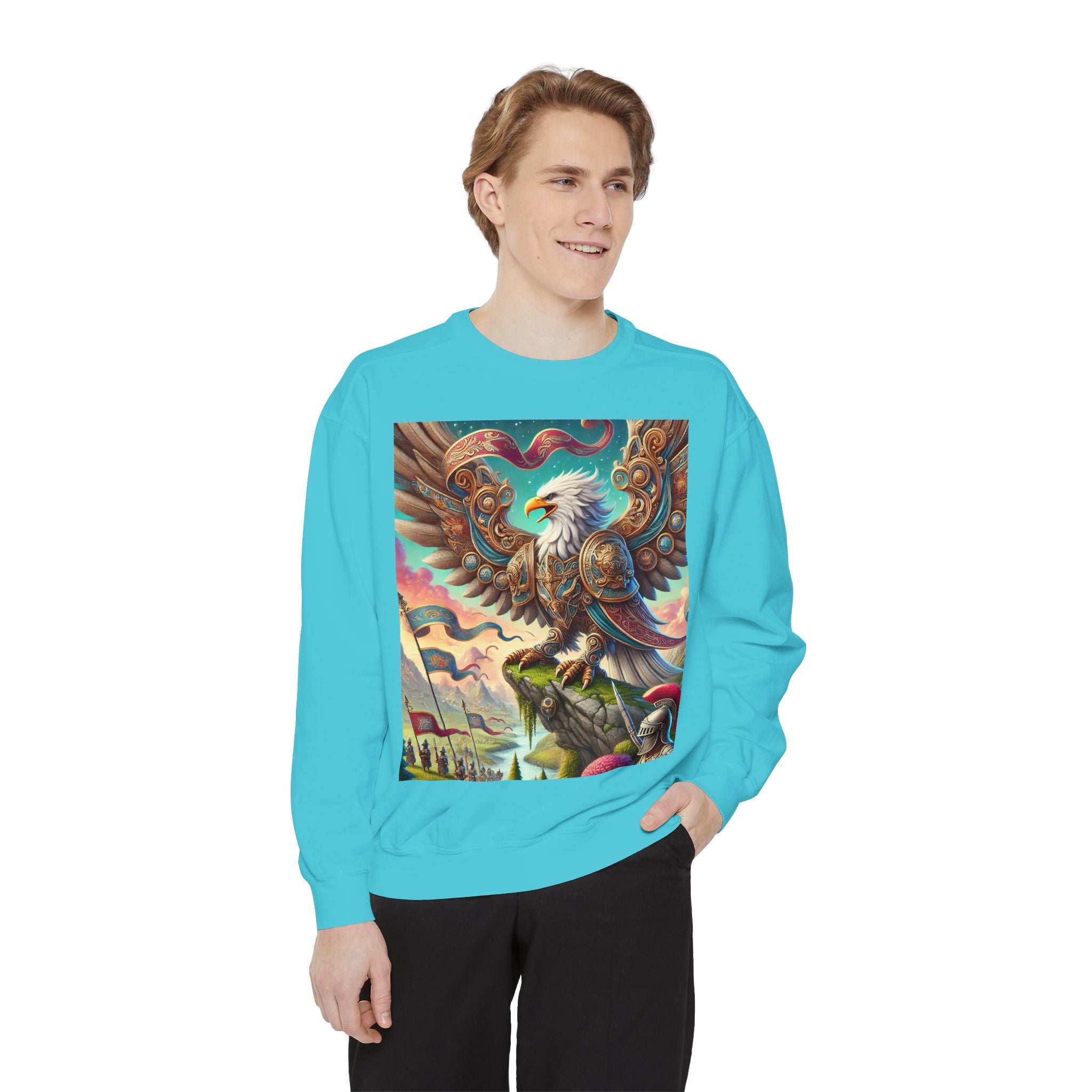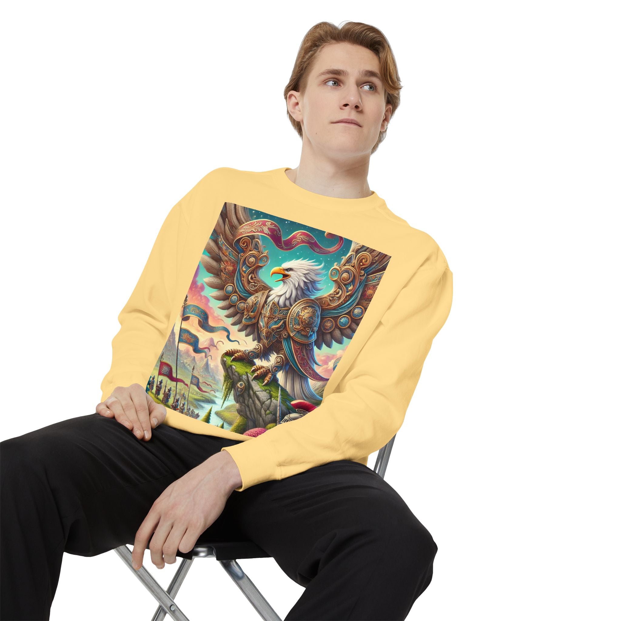 Eagle Warrior's Watch Sweatshirt blends luxurious comfort with commanding artistry. Crafted from 80% ring-spun cotton and 20% polyester, this unisex garment-dyed sweatshirt delivers both durability and an irresistibly soft feel. The 3-end, color-blast fleece gives each piece a distinctive, lived-in texture, while its relaxed fit and rolled-forward shoulders provide timeless comfort and effortless sophistication.