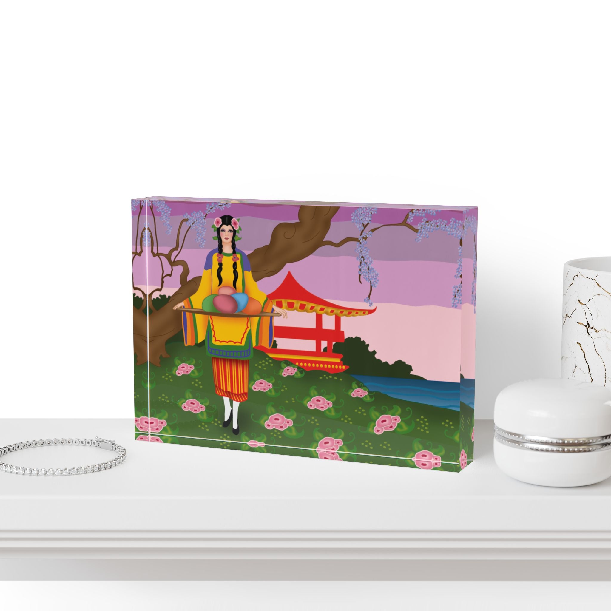 A stunning fusion of artistry and durability, this acrylic art block brings vintage elegance to any space. Made using the AcryliPrint®HD printing process, it offers high-end clarity and vivid color reproduction. Its sturdy, glossy finish makes it perfect for displaying on a fireplace mantel, desk, or wall, adding a refined touch to your home decor.