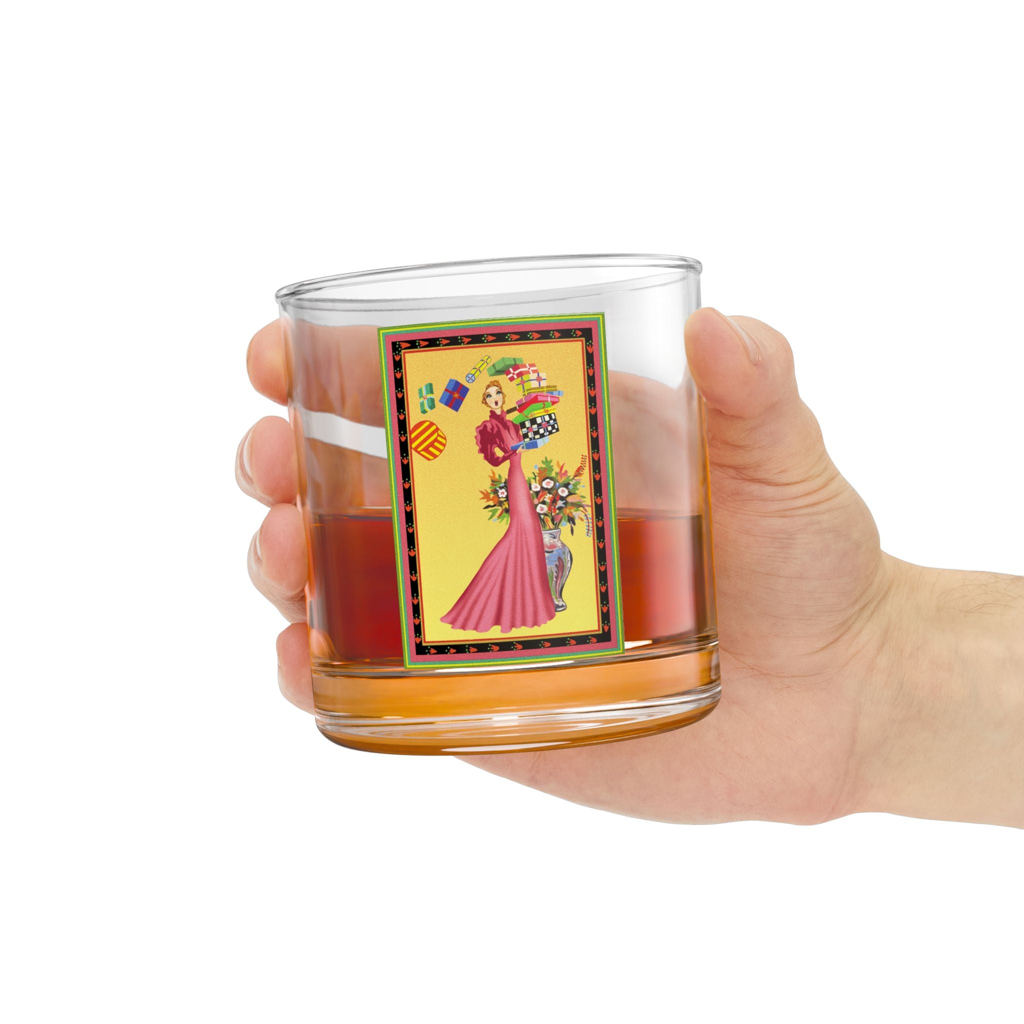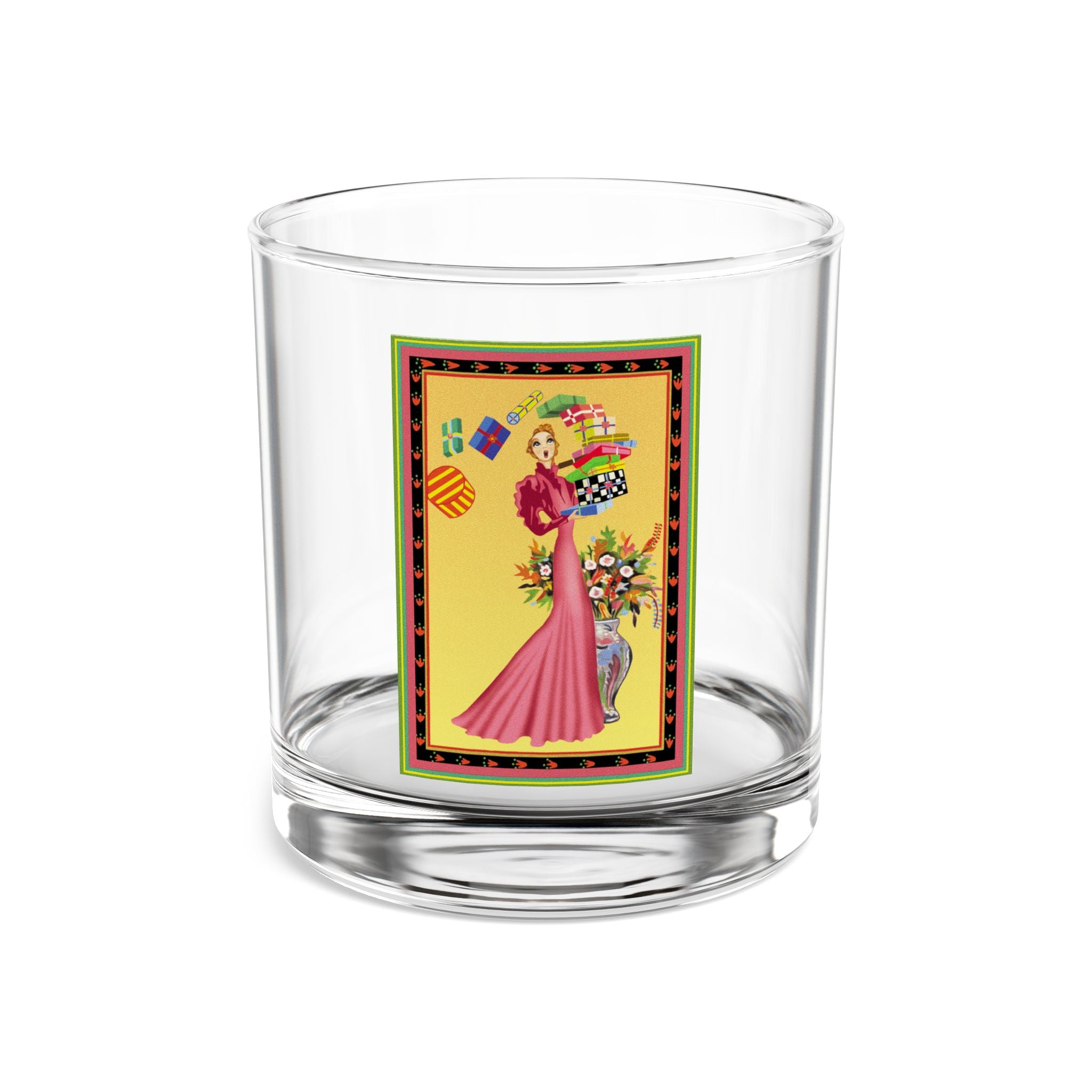 Elegant Holiday Woman with Gifts Rocks Glass, 10oz