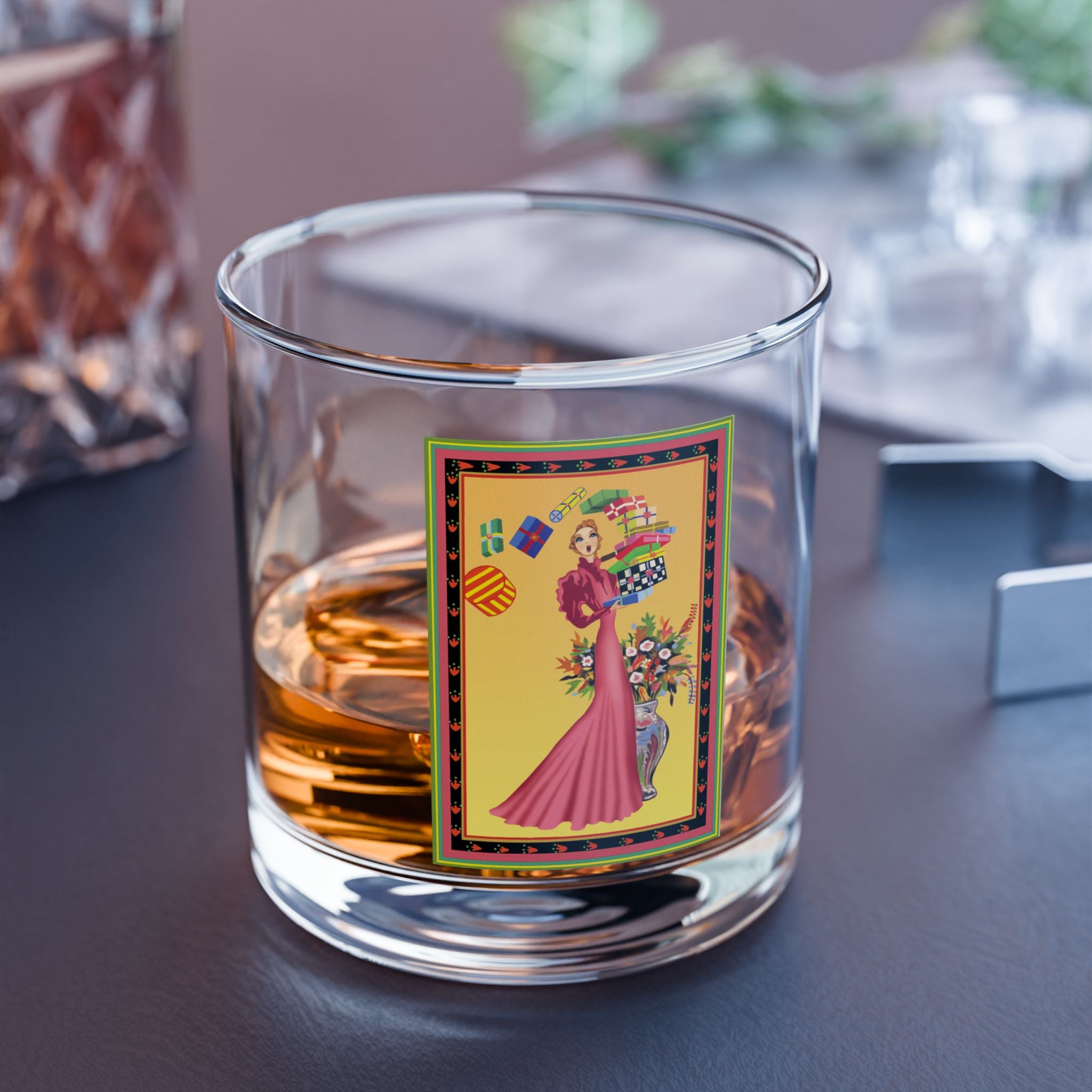 Sip in style with the Elegant Holiday Woman with Gifts Rocks Glass. A graceful woman in a rose-pink gown balances... Read more