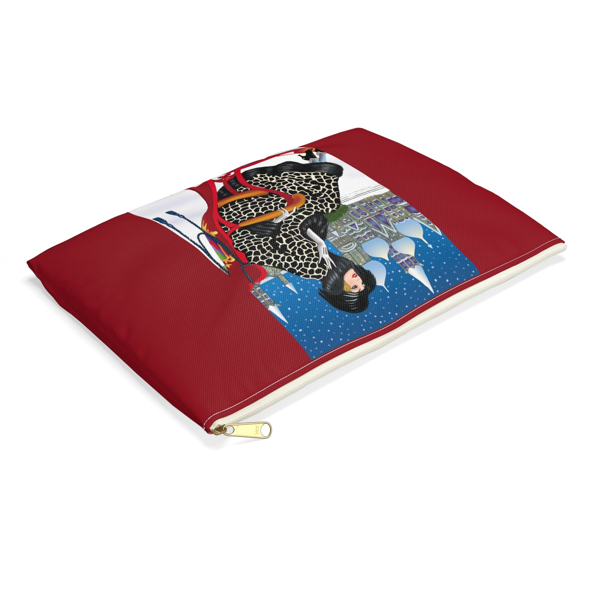 Carry holiday elegance wherever you go with the Elegant Winter Woman in Sleigh Accessory Pouch. Perfect as a pencil case, cosmetic bag, or travel pouch, it’s made from durable material with a secure zipper closure and comes in small and large sizes for versatile use.