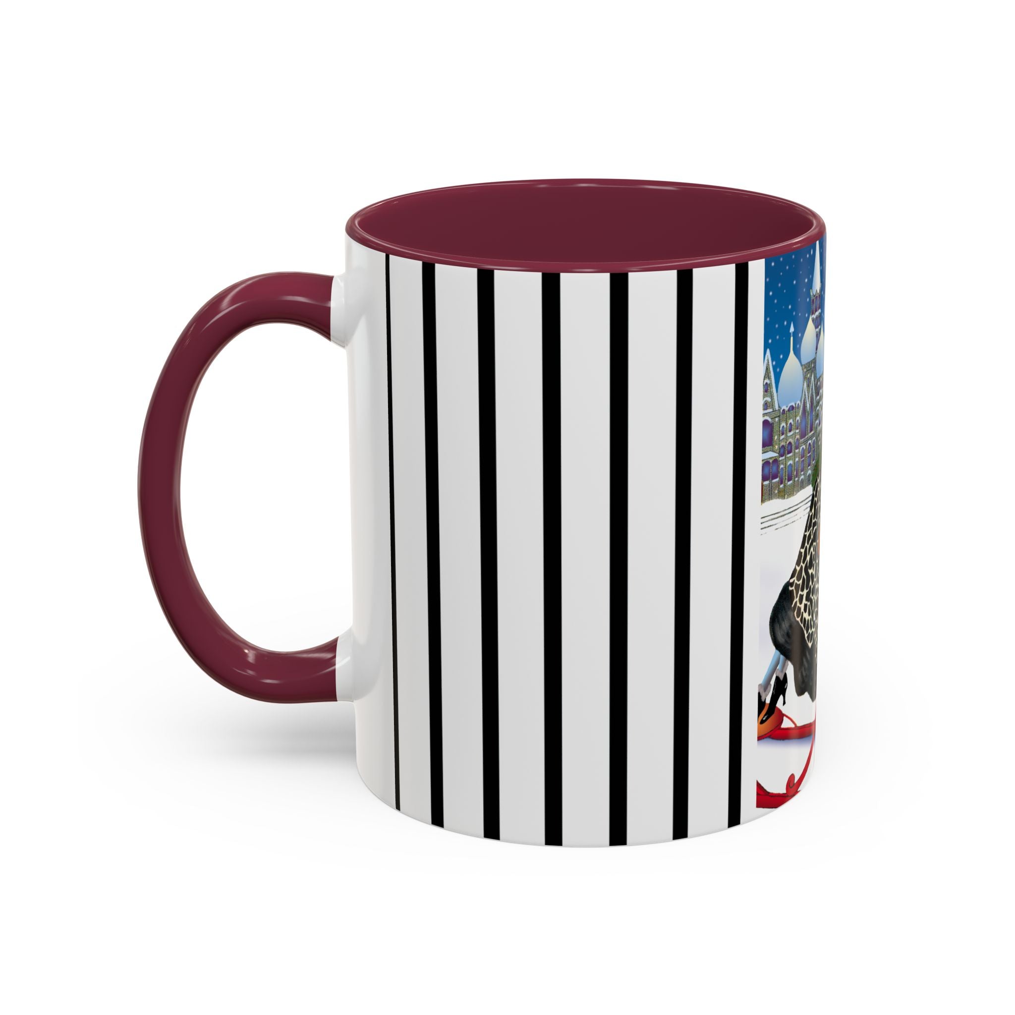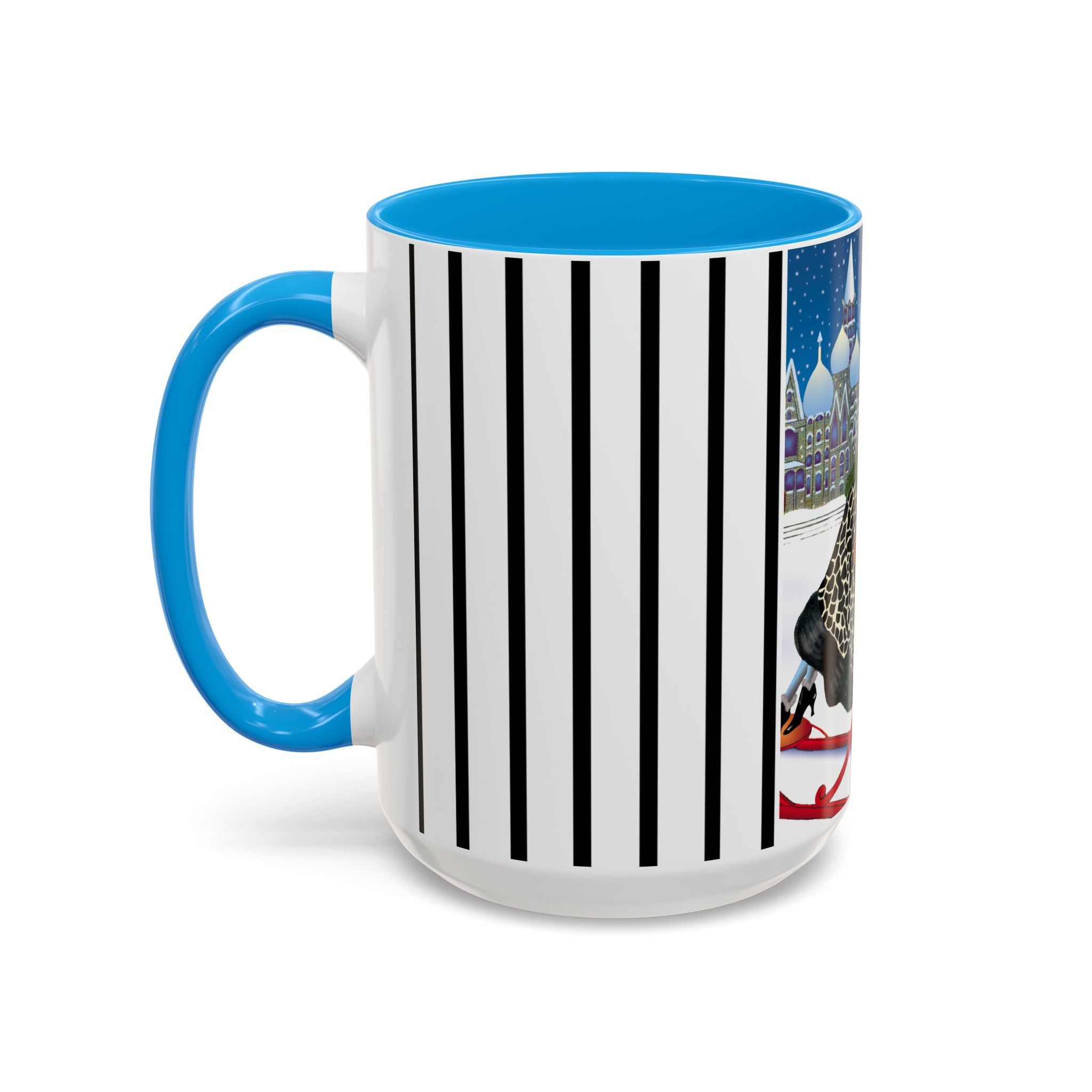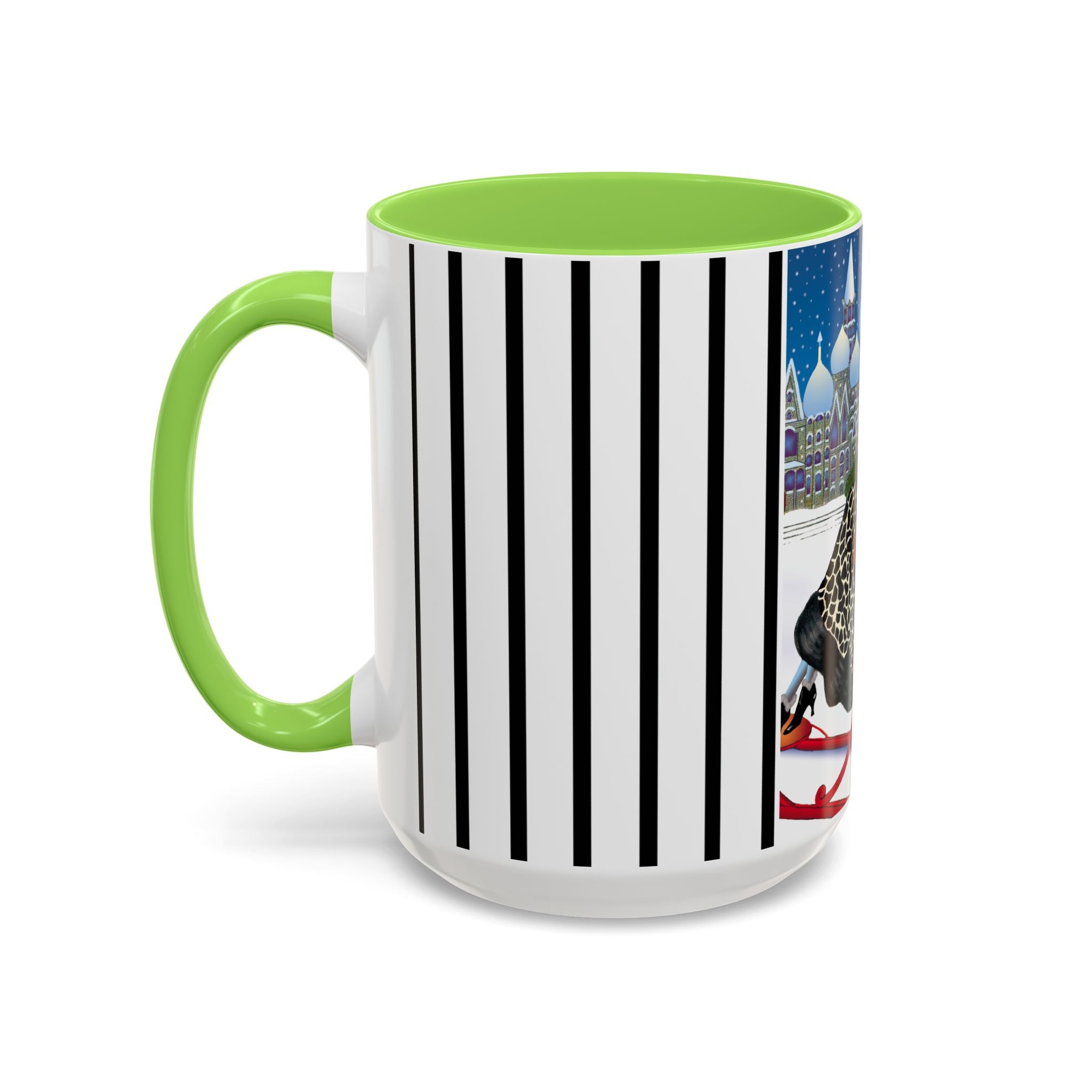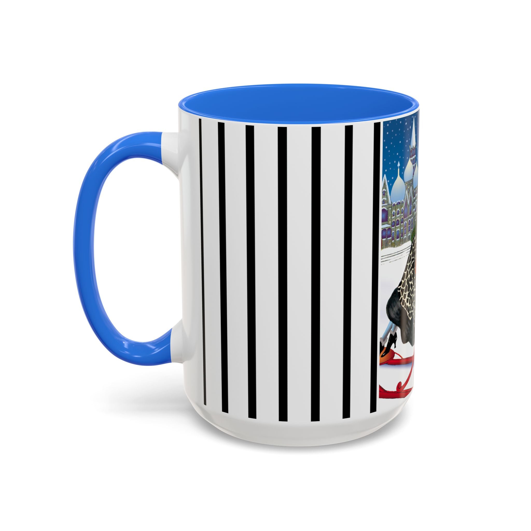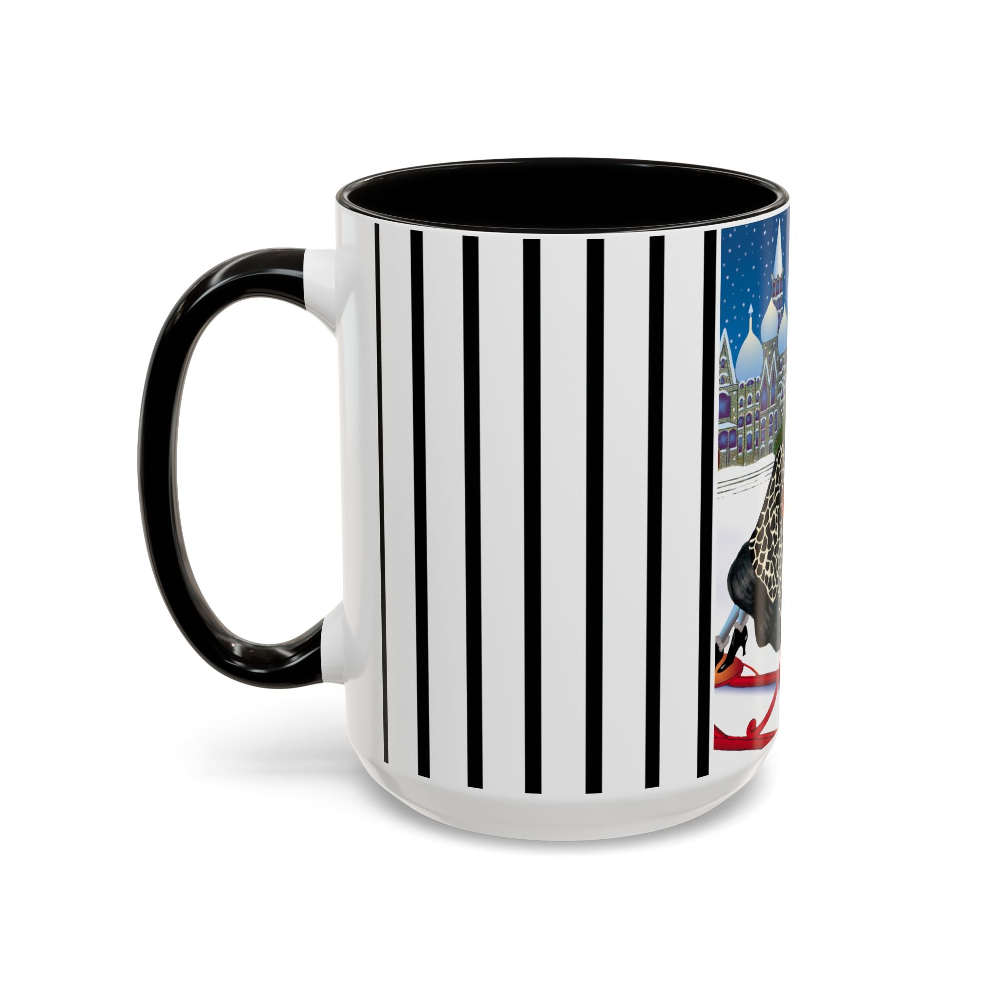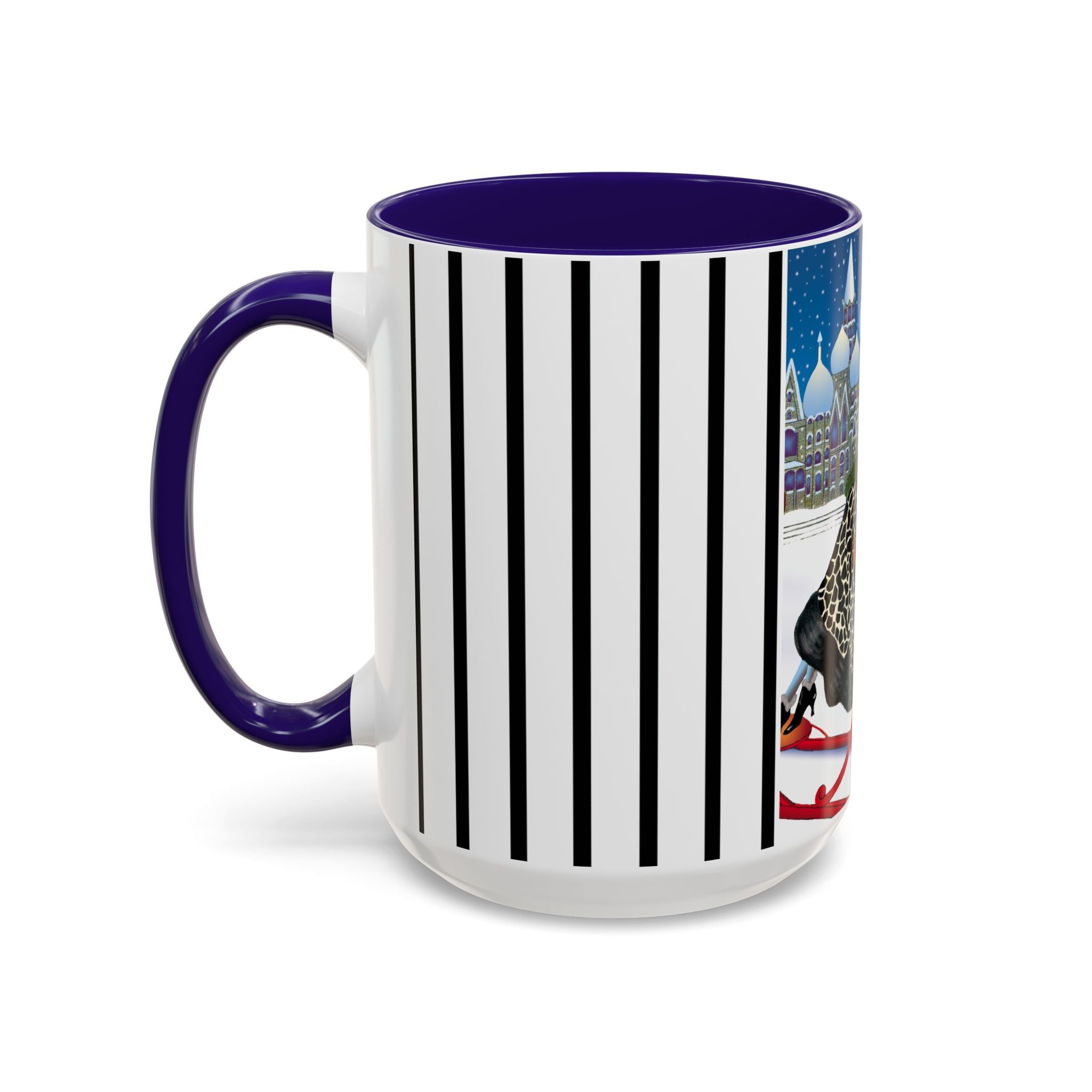 Available in 11oz and 15oz sizes and in 12 different color options, these mugs feature a colored handle and interior that accent the artwork beautifully. The glossy finish enhances the high-fidelity print, making every detail— from the shimmering skyline to the graceful winter figure—shine with vivid clarity. Durable, stylish, and practical, they’re perfect for coffee, tea, or cocoa on cozy winter mornings.