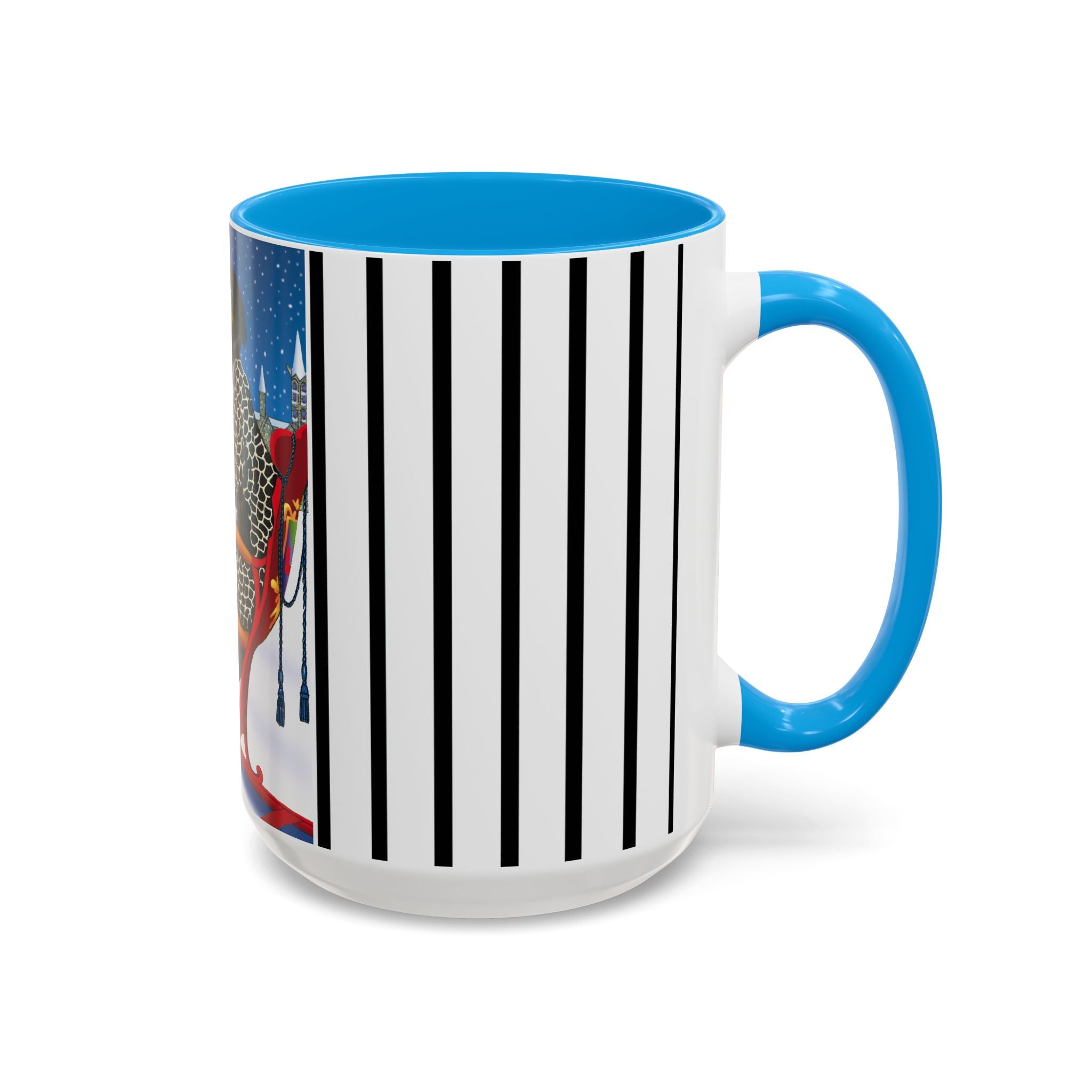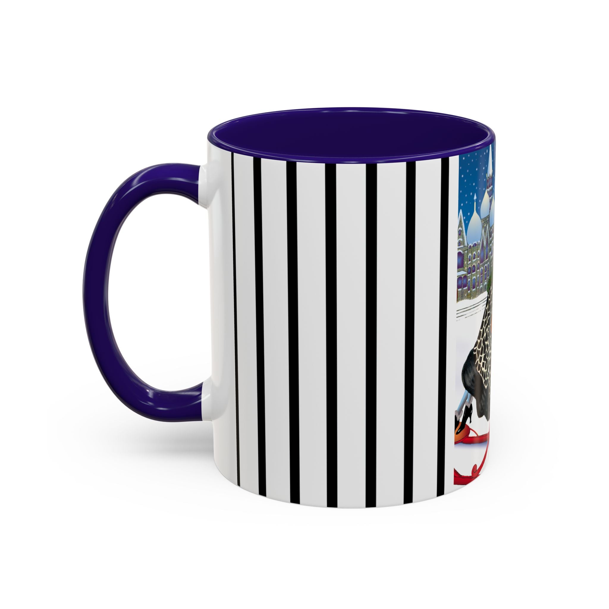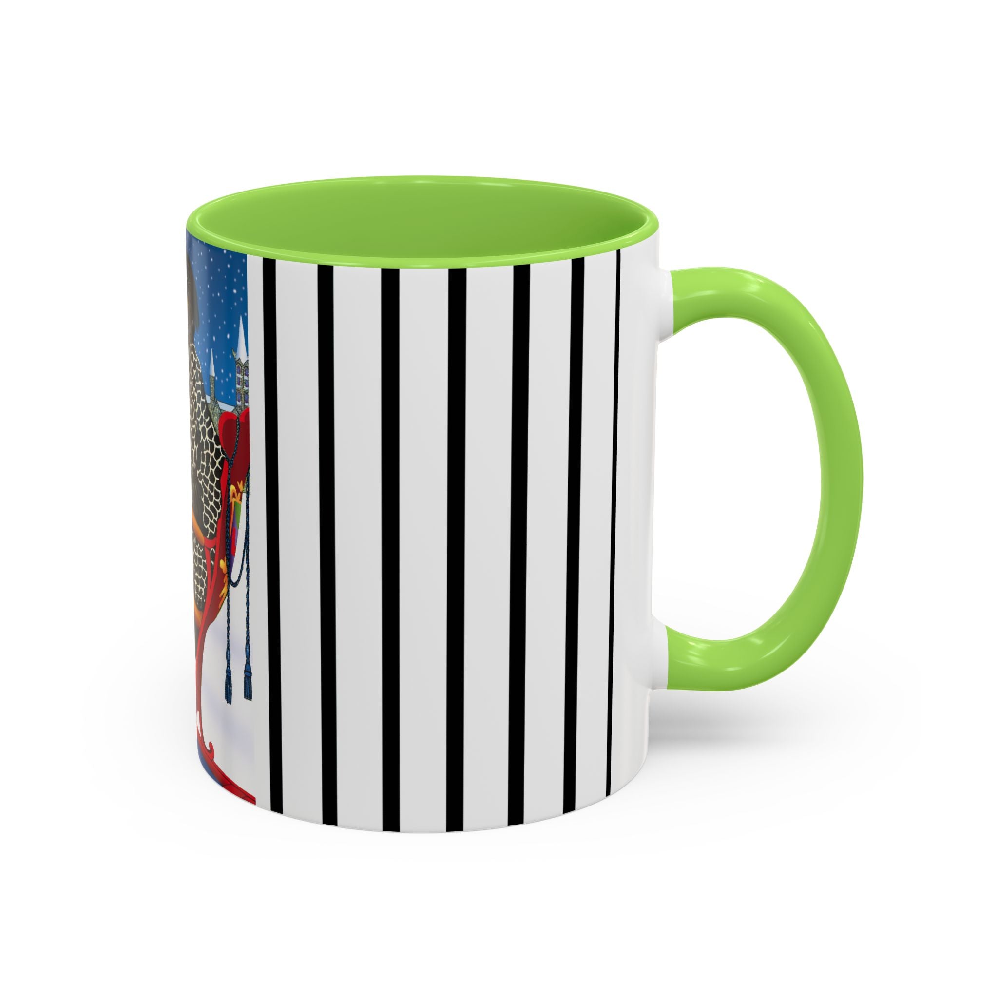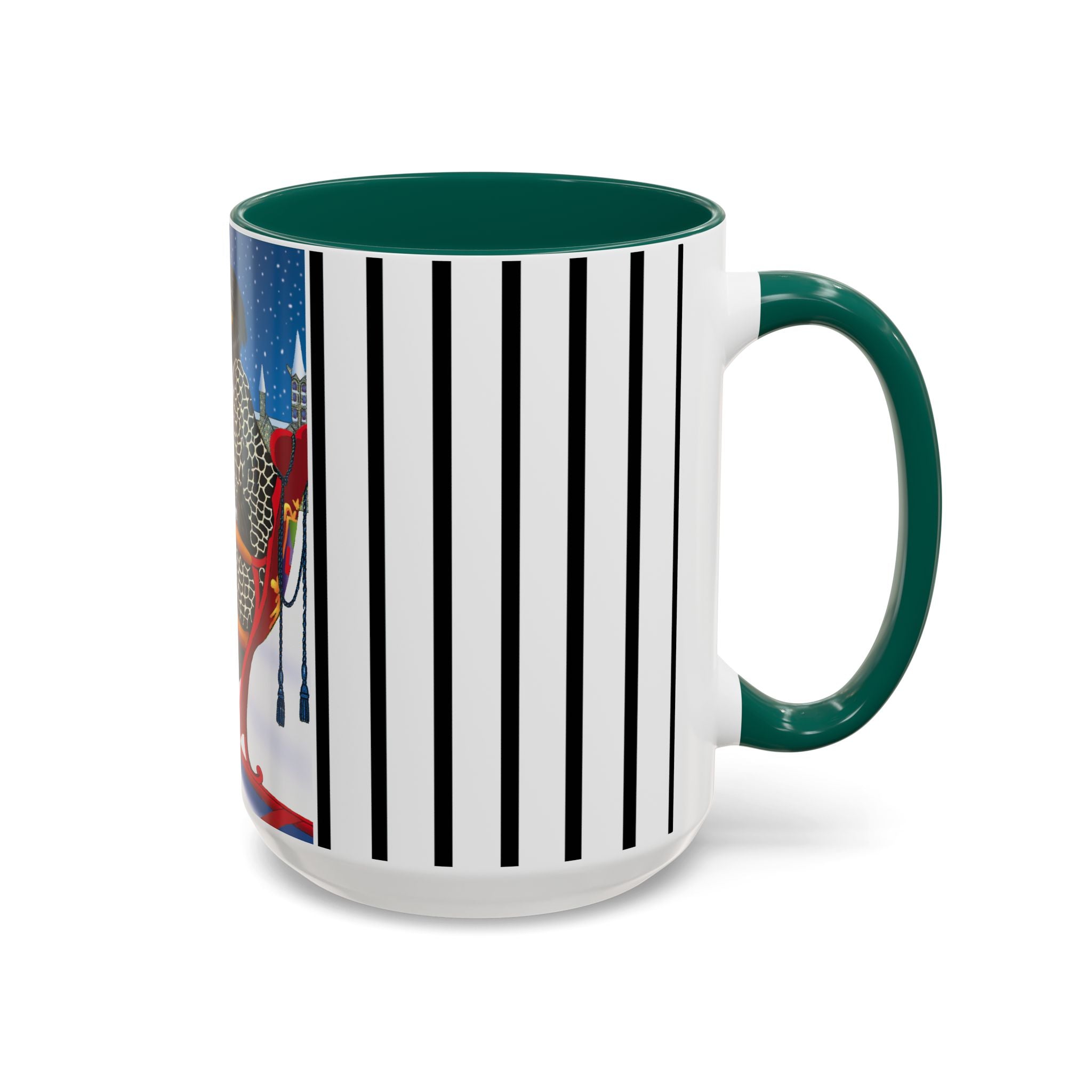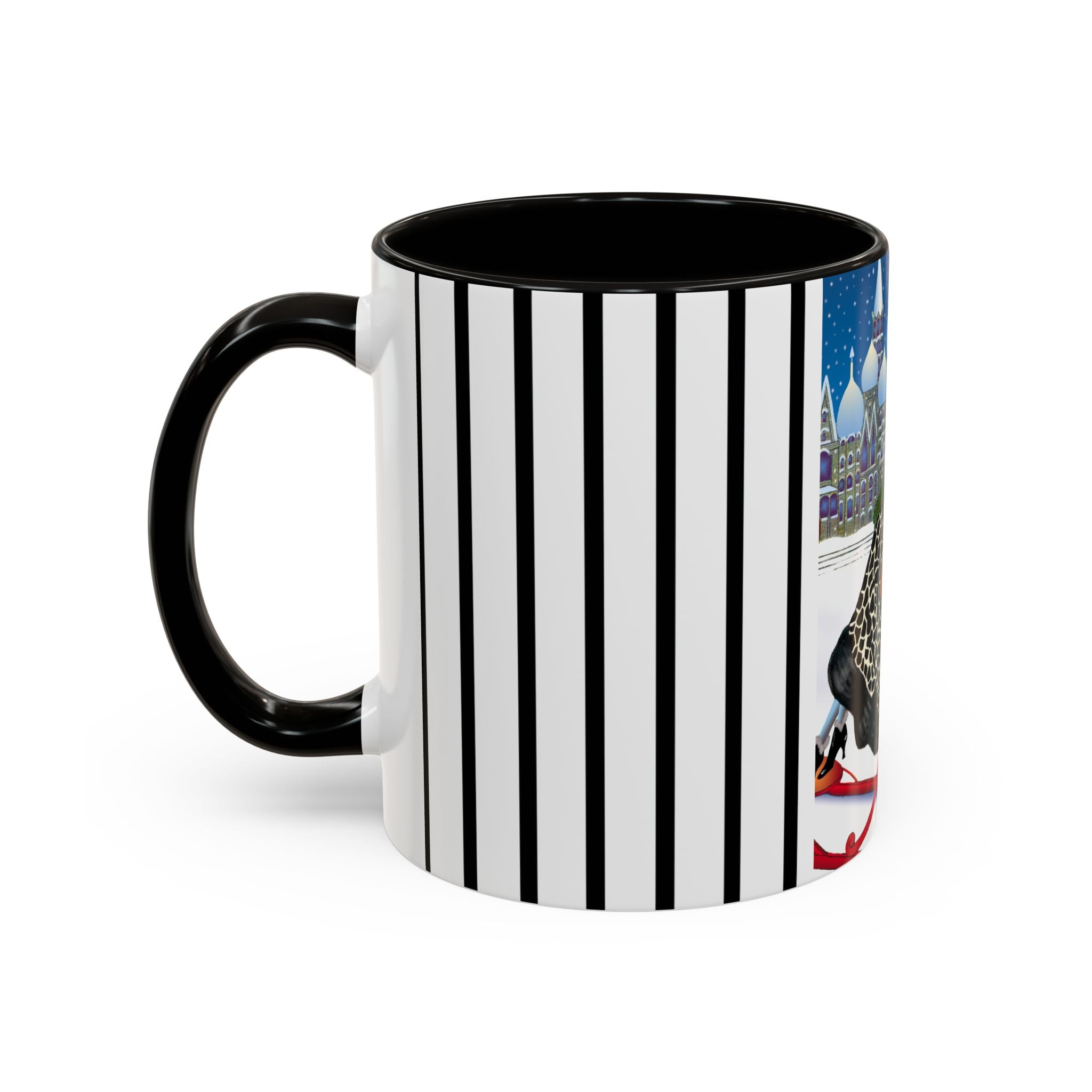 Available in 11oz and 15oz sizes and in 12 different color options, these mugs feature a colored handle and interior that accent the artwork beautifully. The glossy finish enhances the high-fidelity print, making every detail— from the shimmering skyline to the graceful winter figure—shine with vivid clarity. Durable, stylish, and practical, they’re perfect for coffee, tea, or cocoa on cozy winter mornings.