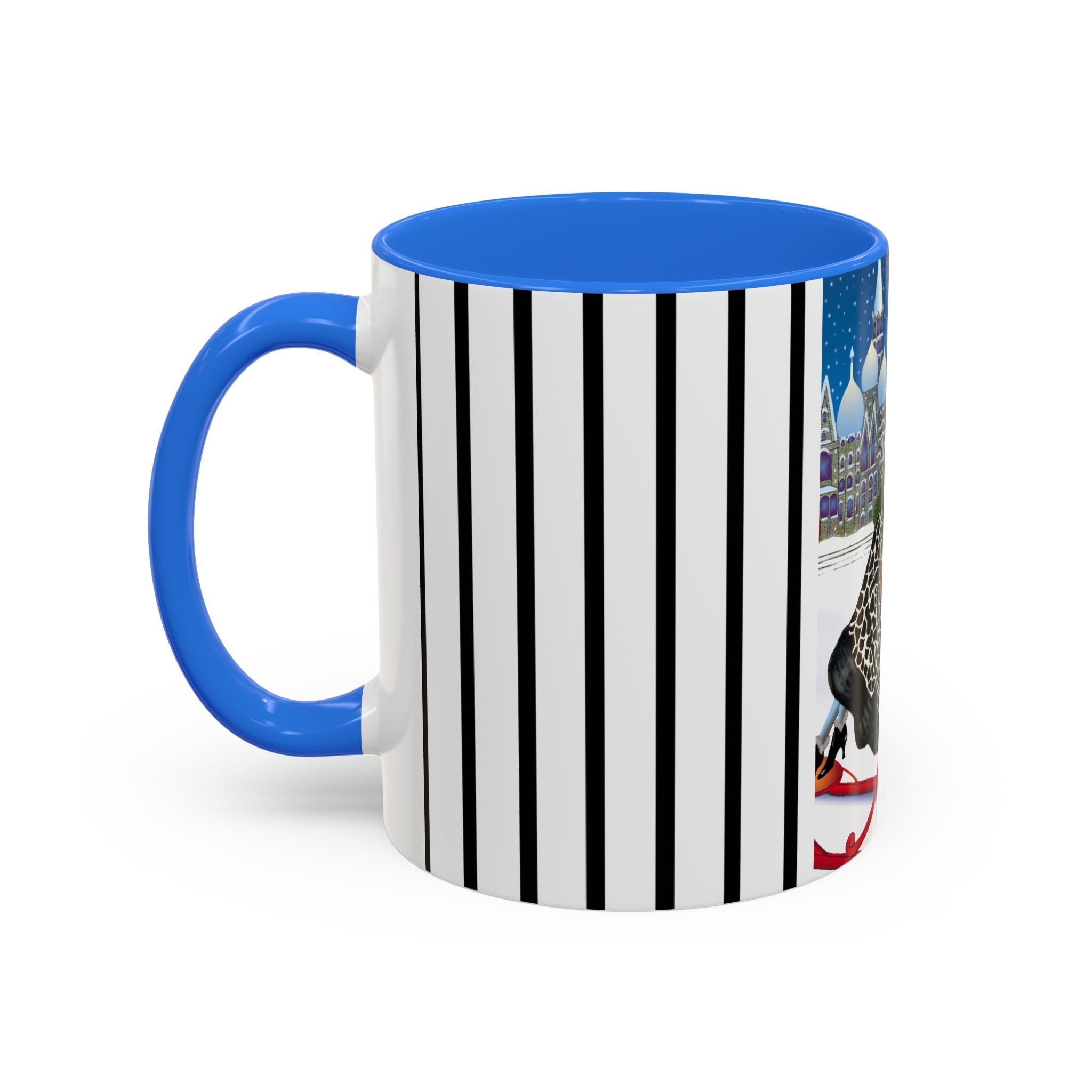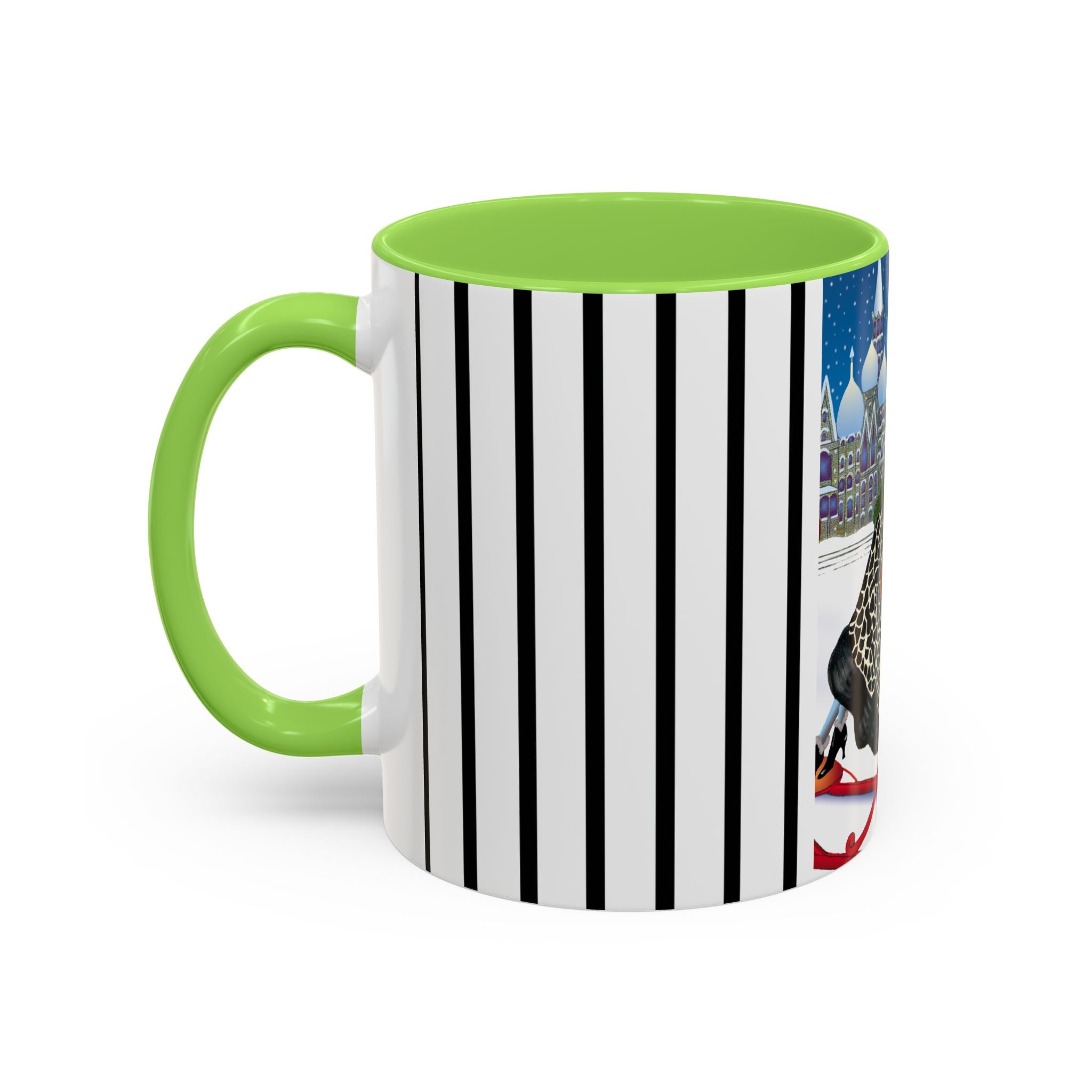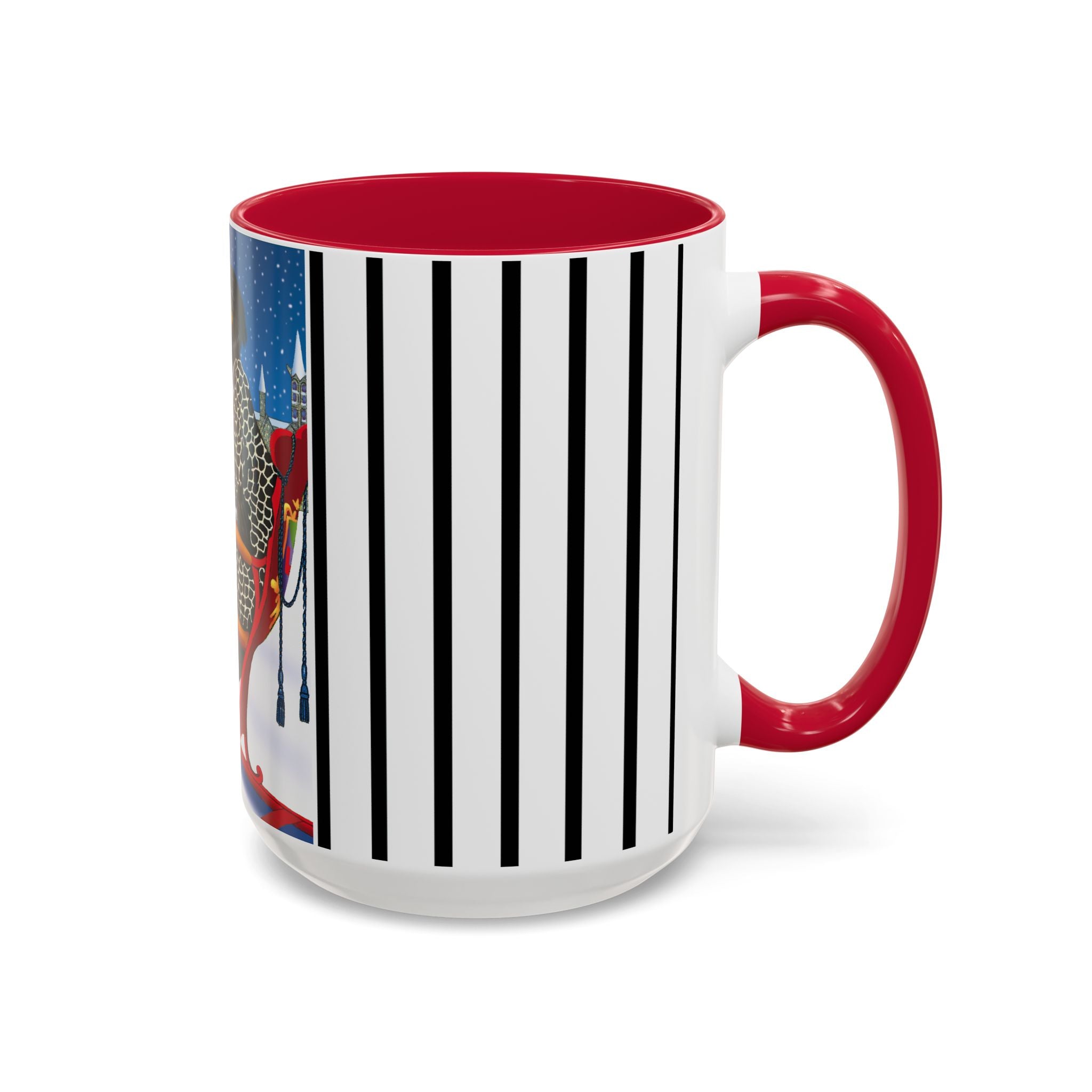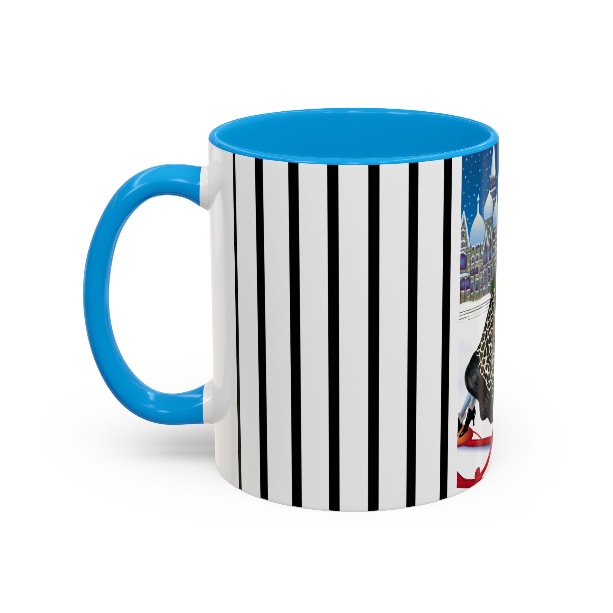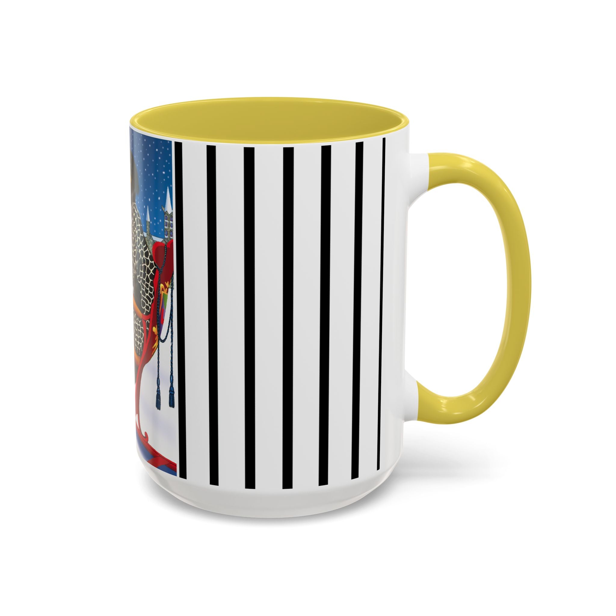 Available in 11oz and 15oz sizes and in 12 different color options, these mugs feature a colored handle and interior that accent the artwork beautifully. The glossy finish enhances the high-fidelity print, making every detail— from the shimmering skyline to the graceful winter figure—shine with vivid clarity. Durable, stylish, and practical, they’re perfect for coffee, tea, or cocoa on cozy winter mornings.