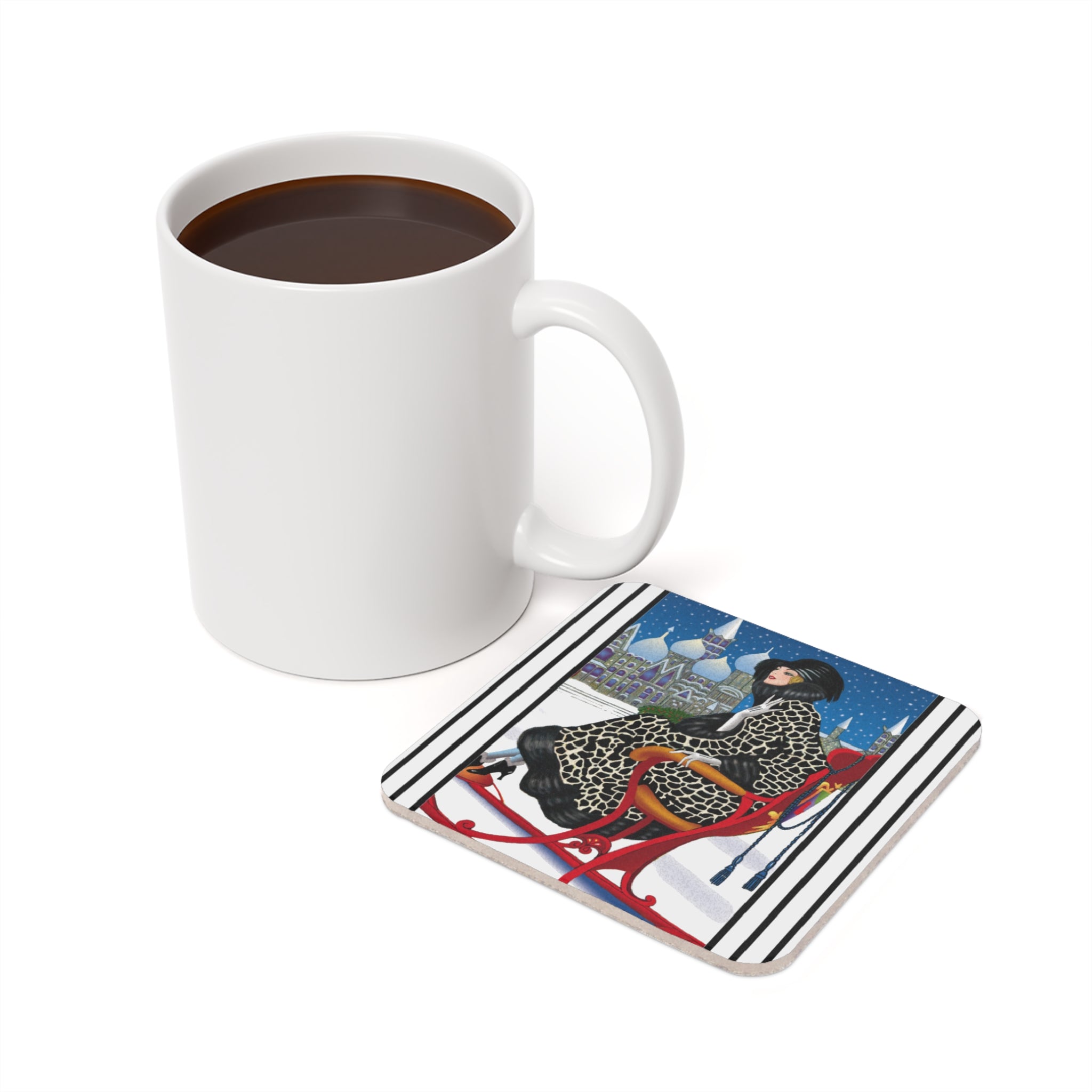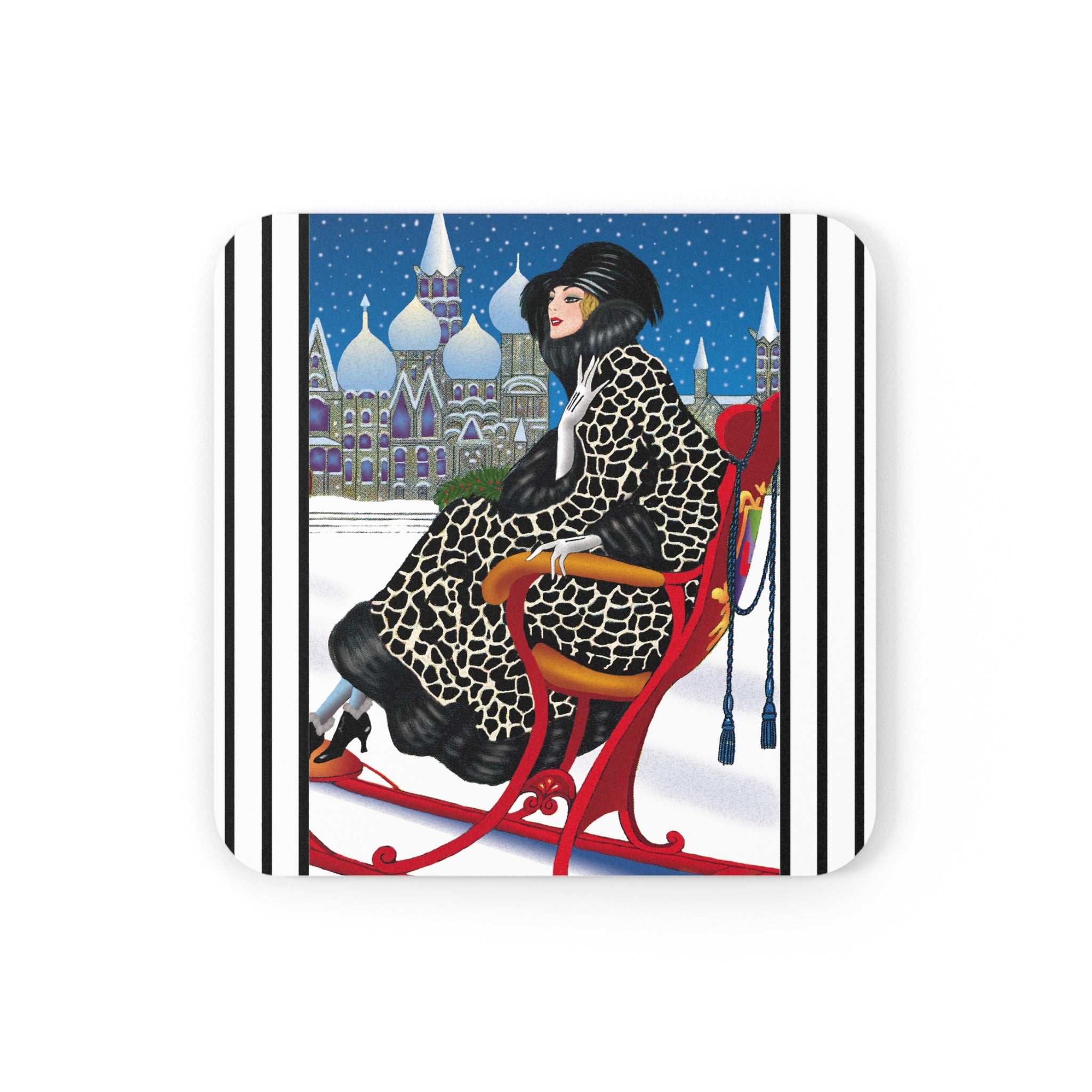 Protect your surfaces in style with the Elegant Winter Woman in Sleigh Cork Back Coaster. Each coaster is crafted with a high-gloss, polyester-coated hardboard top for vibrant, lasting prints and a genuine cork bottom to prevent sliding—making it both practical and elegant.