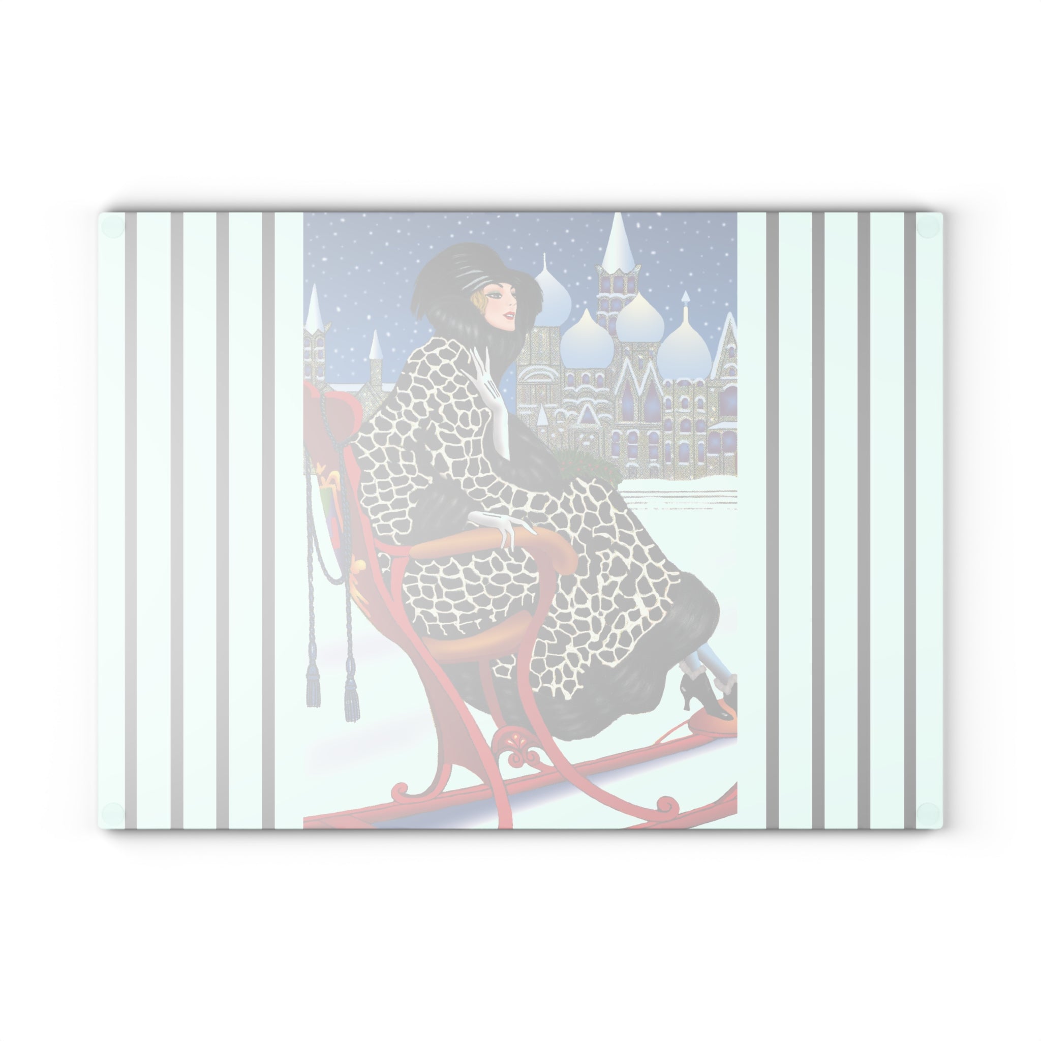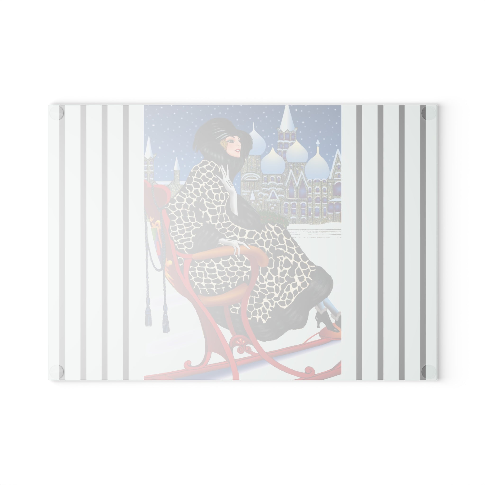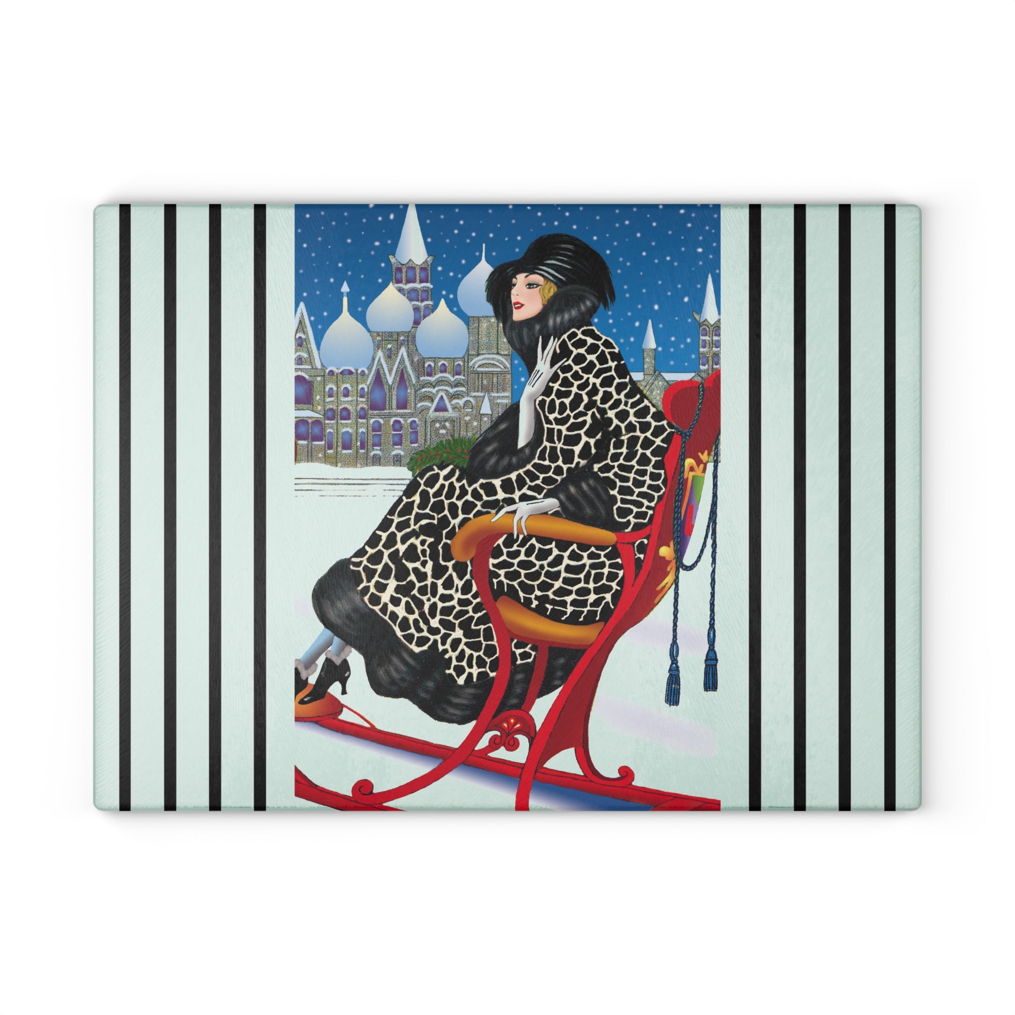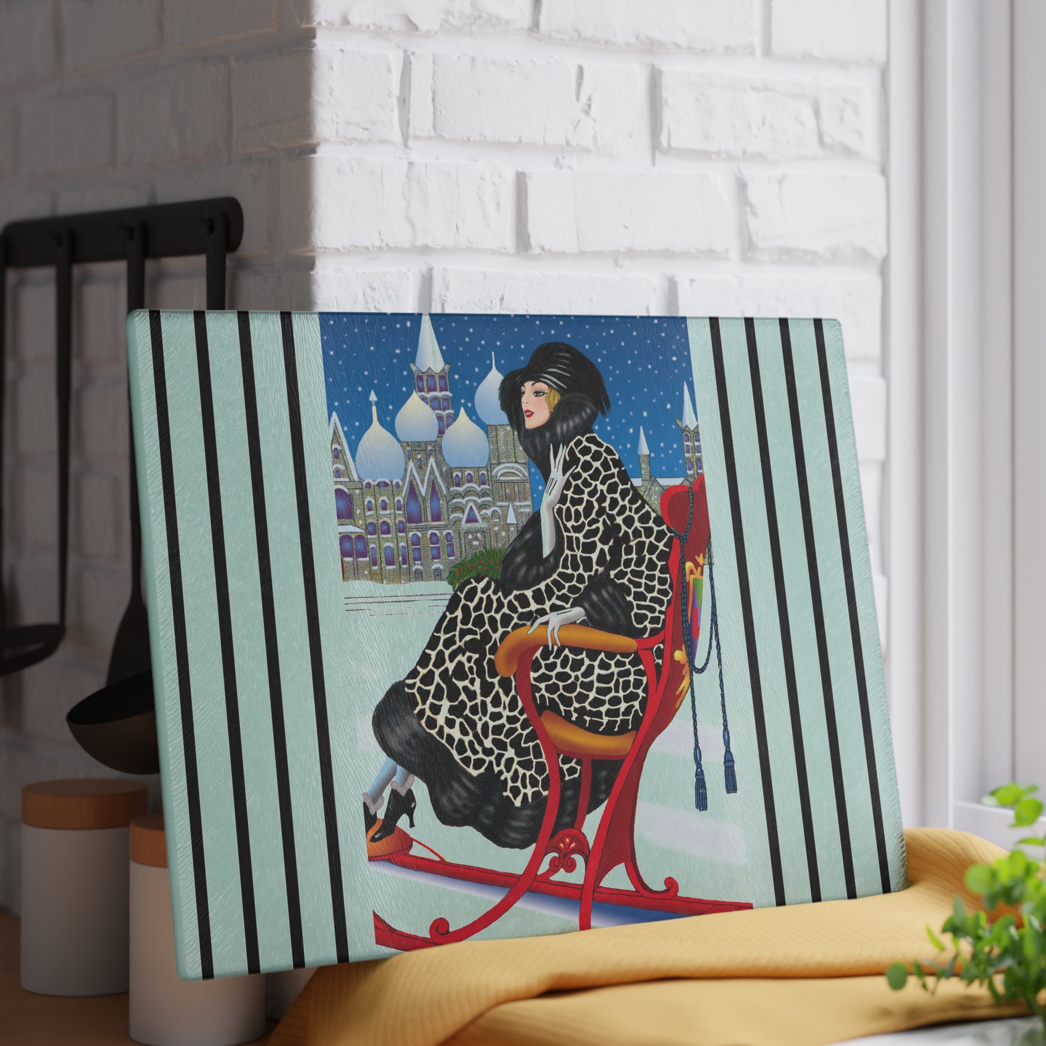 Bring style and strength to your kitchen with the Elegant Winter Woman in Sleigh Glass Cutting Board. Made from tempered glass for lasting durability, this board features a textured surface that’s perfect for chopping, slicing, and dicing. Available in two sizes (8" × 11" and 11" × 15"), it blends everyday function with festive artistry.