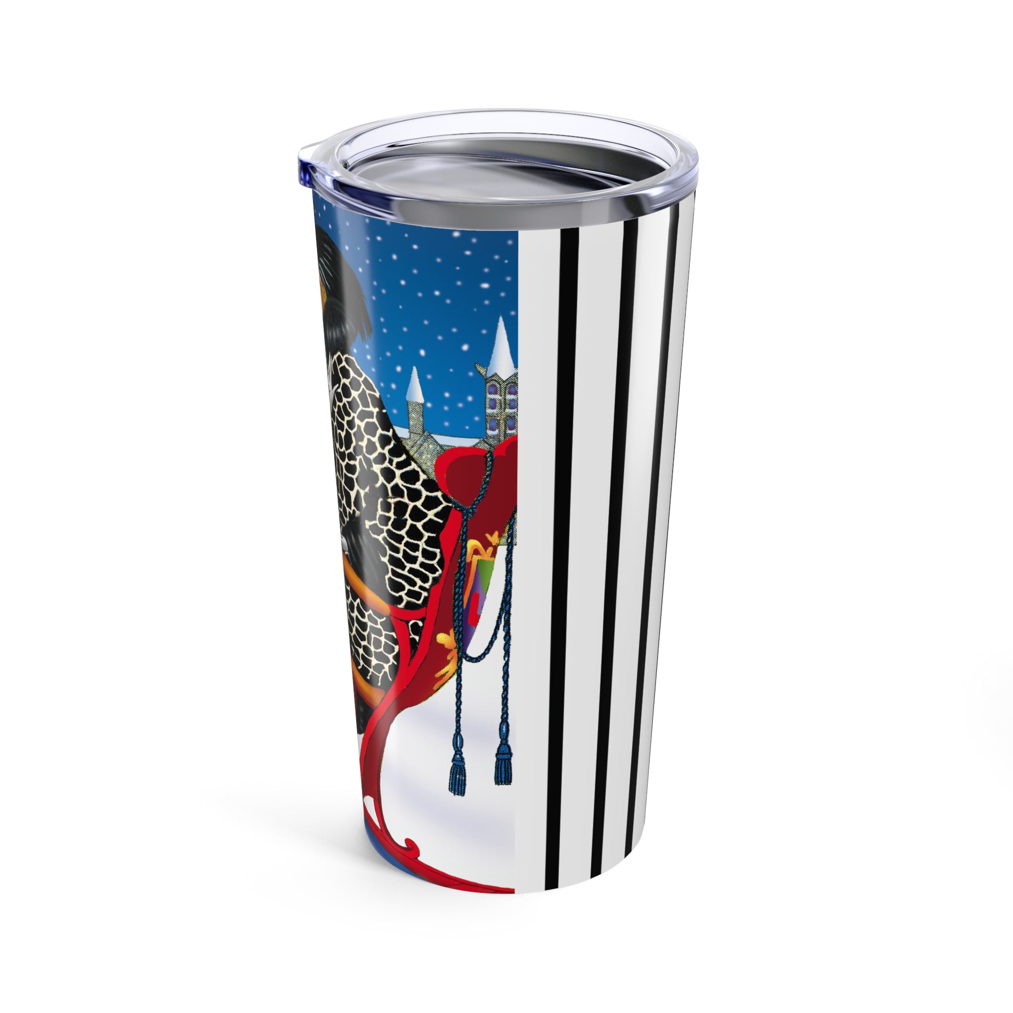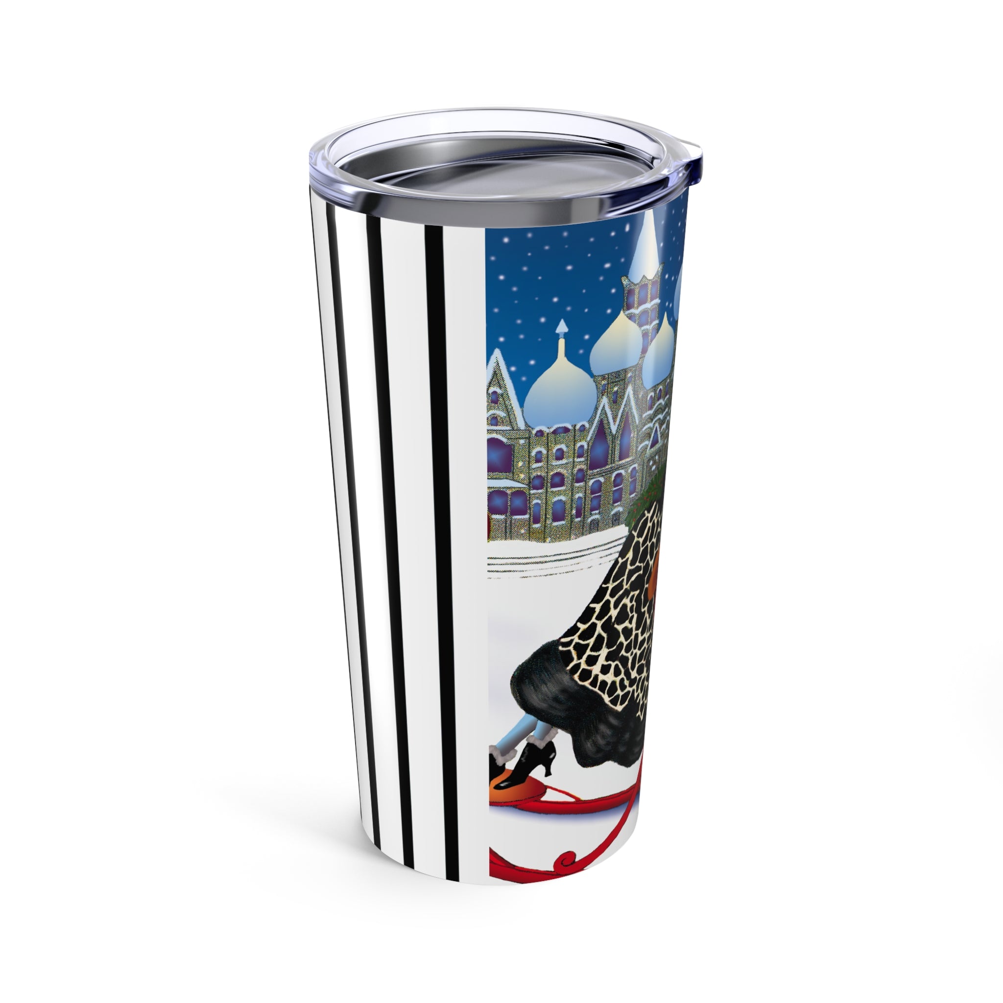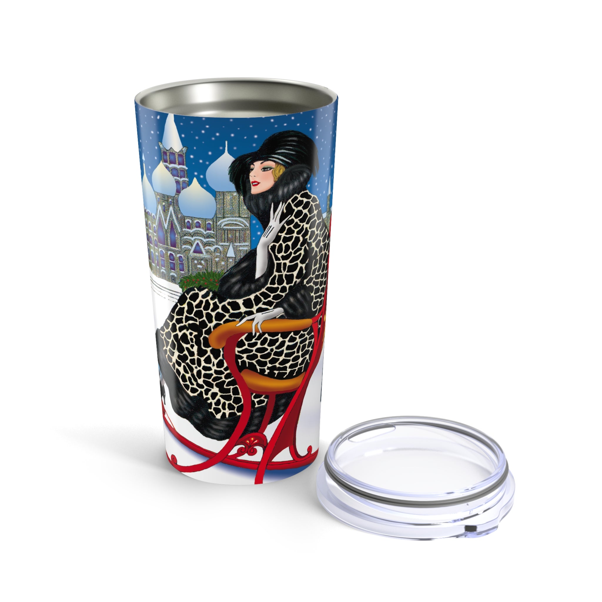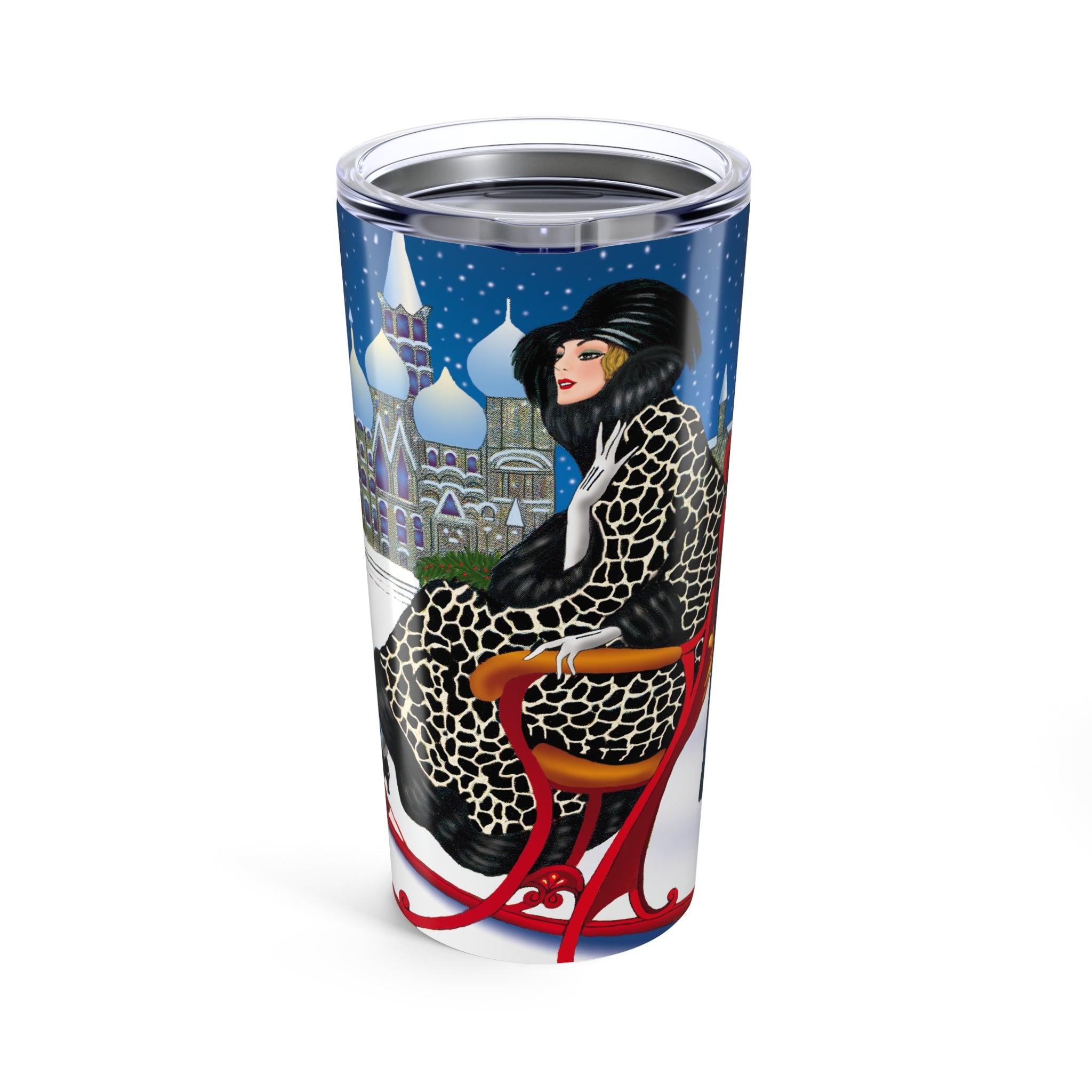 Carry winter elegance wherever you go with the Elegant Winter Woman in Sleigh Tumbler. This 20oz stainless steel tumbler keeps drinks hot or cold for hours with its double-wall insulation, while the glossy artwork transforms it into a statement piece.