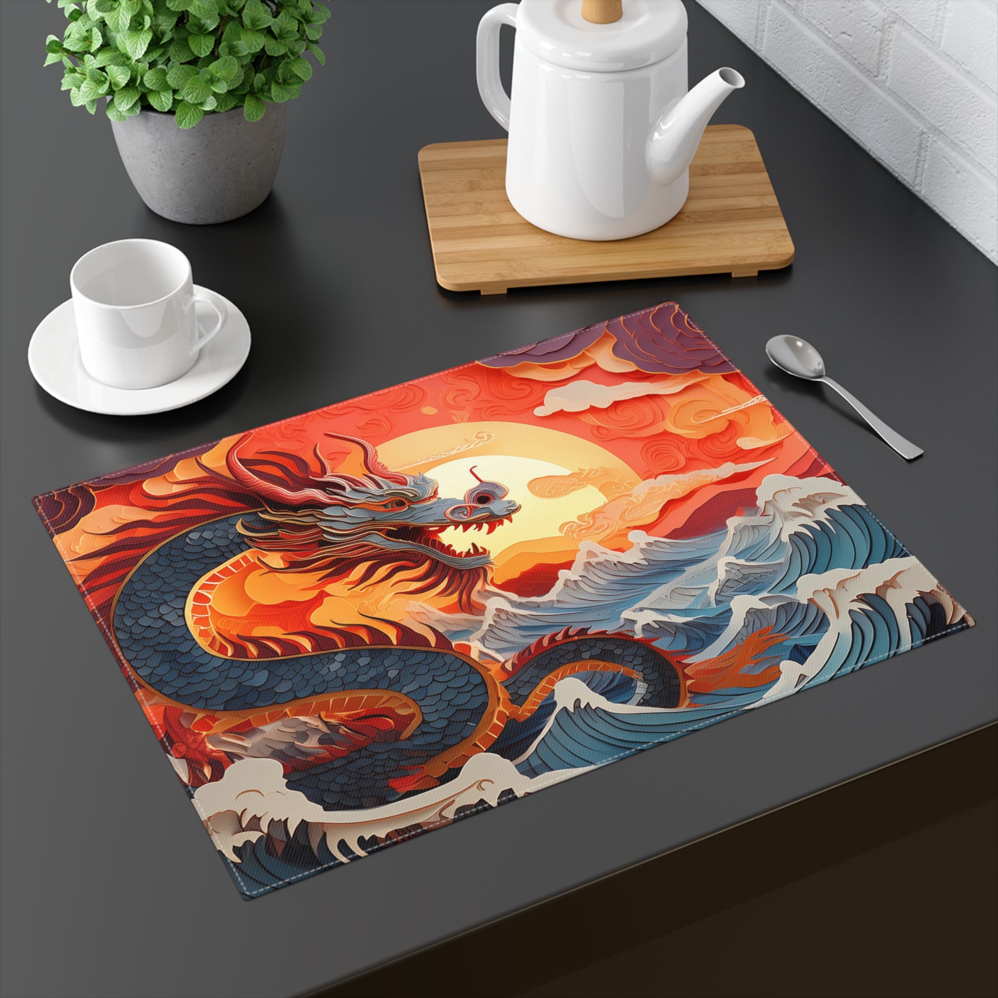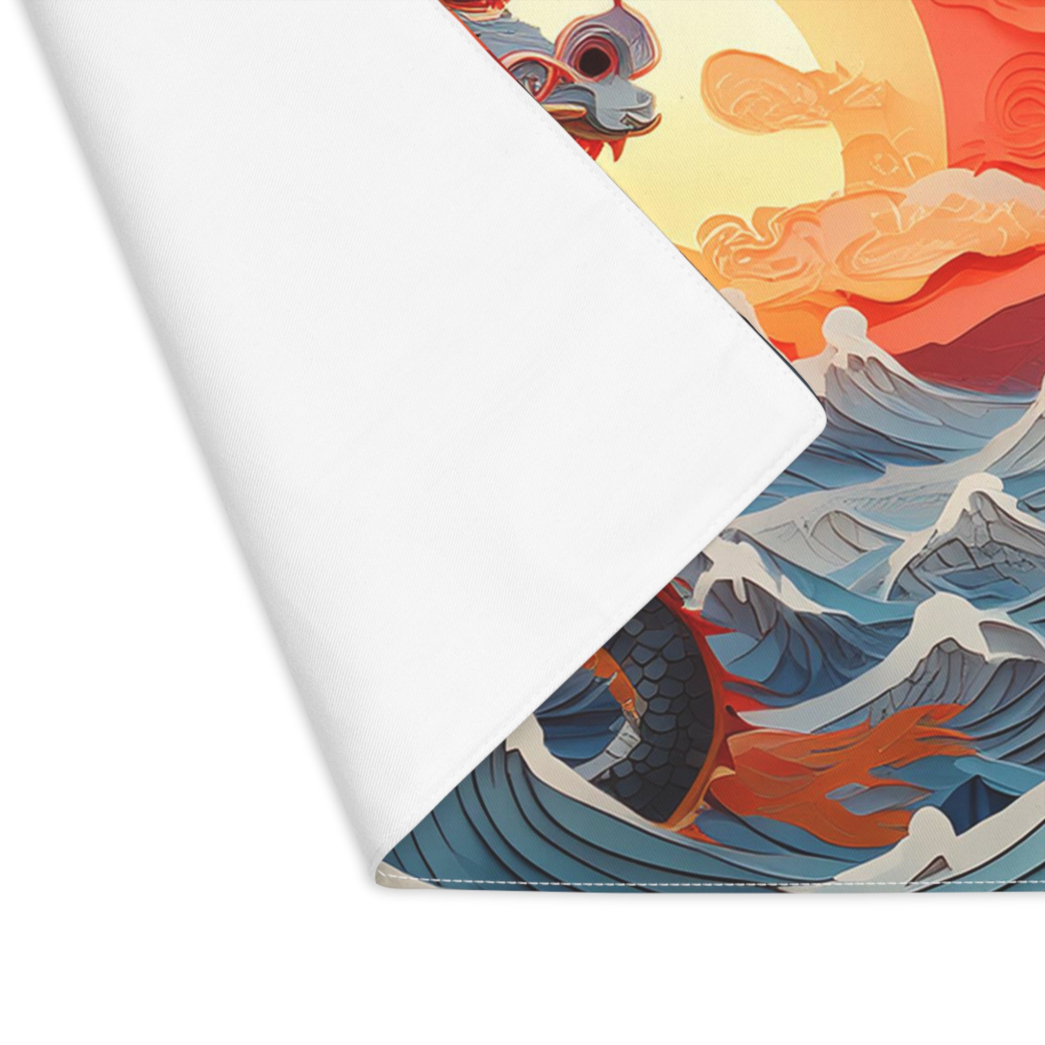 Artwork created, designed and digitally remastered by Sarasvati Designs. This artwork is a stunning depiction of the interplay between the elements and mythical lore, offering a dynamic and captivating scene that invites viewers into a world where nature and legend collide in a burst of color and energy. The dragon, as a symbol of strength, protection, and good fortune, emerges as the centerpiece of this dramatic seascape, embodying the spirit of ancient Asian mythology amidst the vibrant chaos of the natural world.