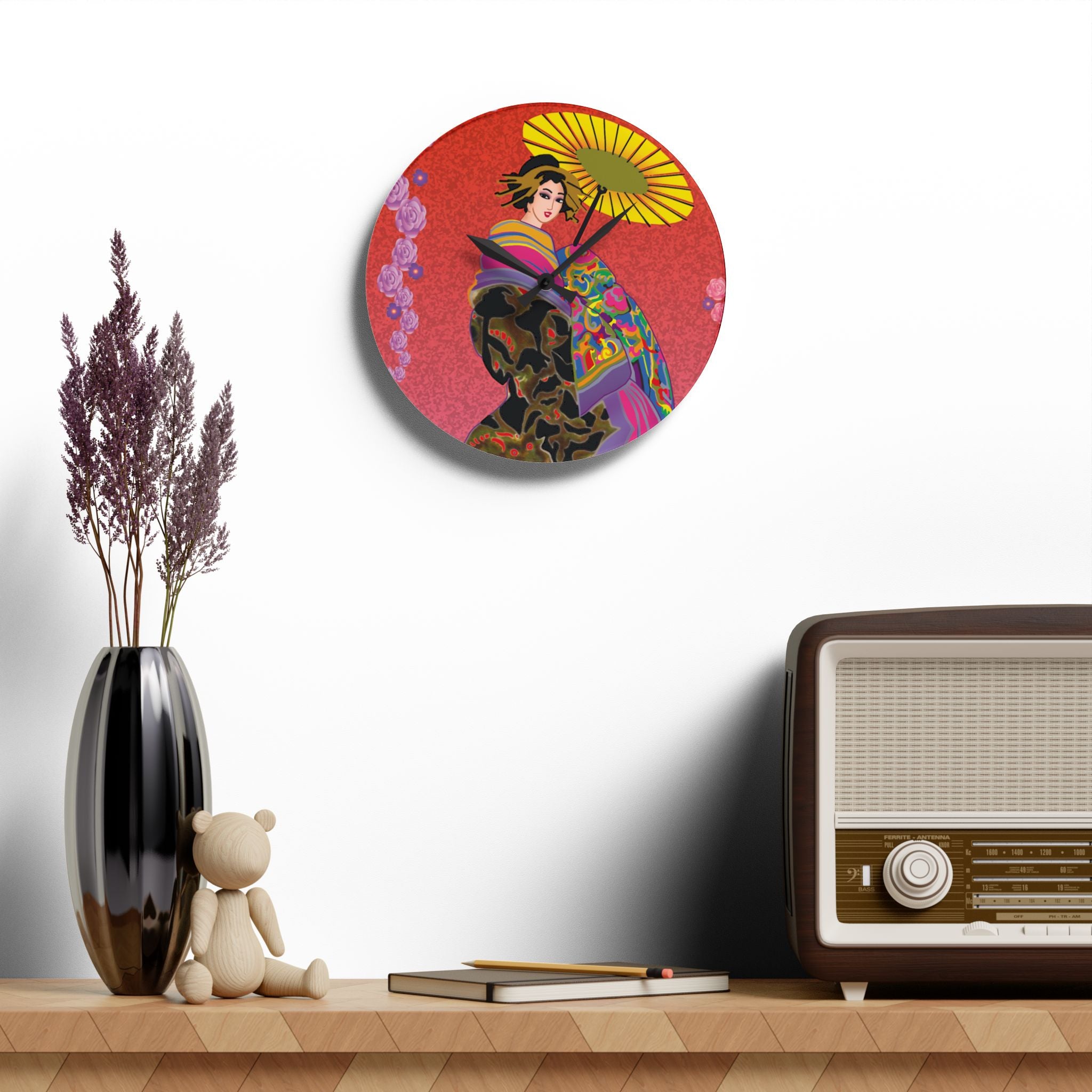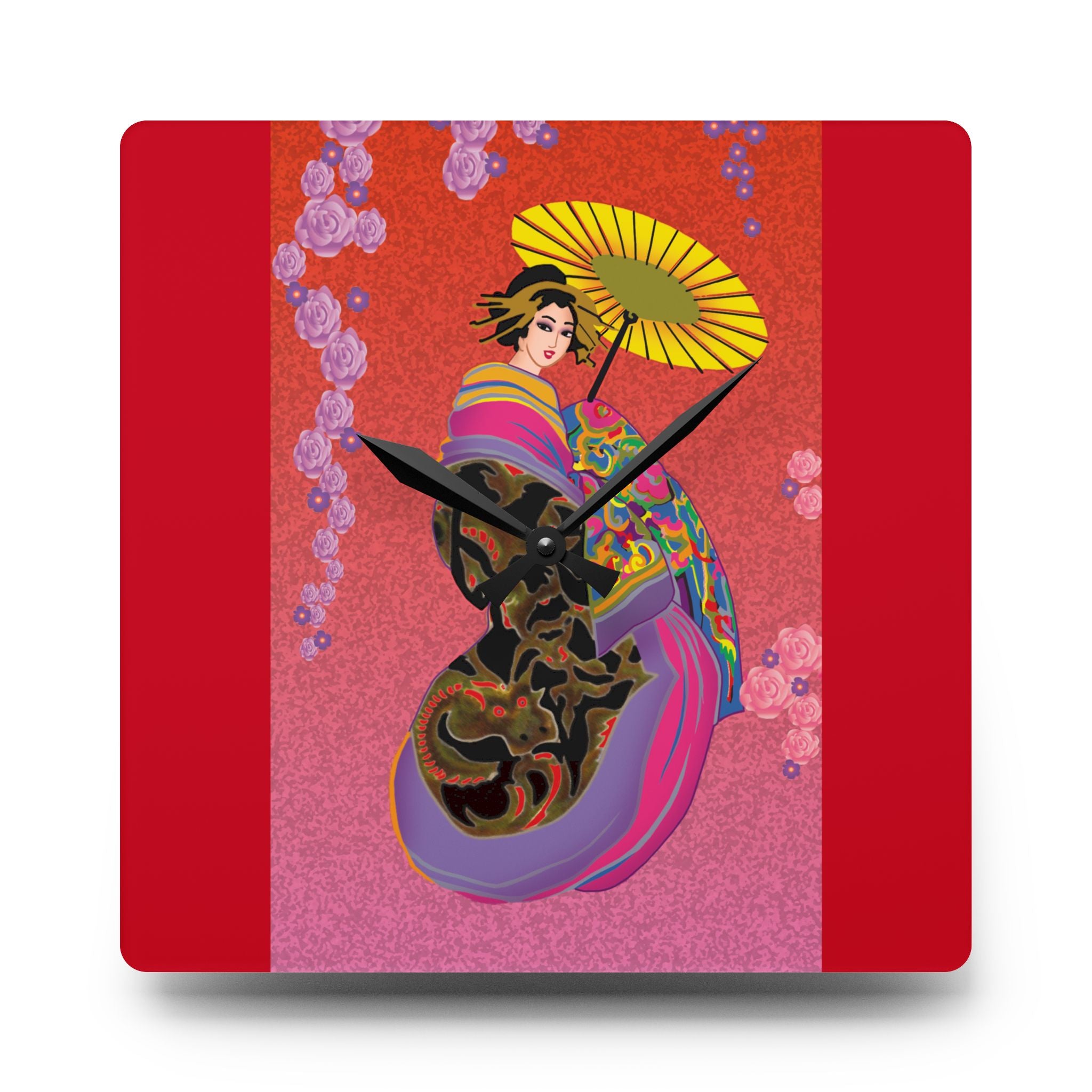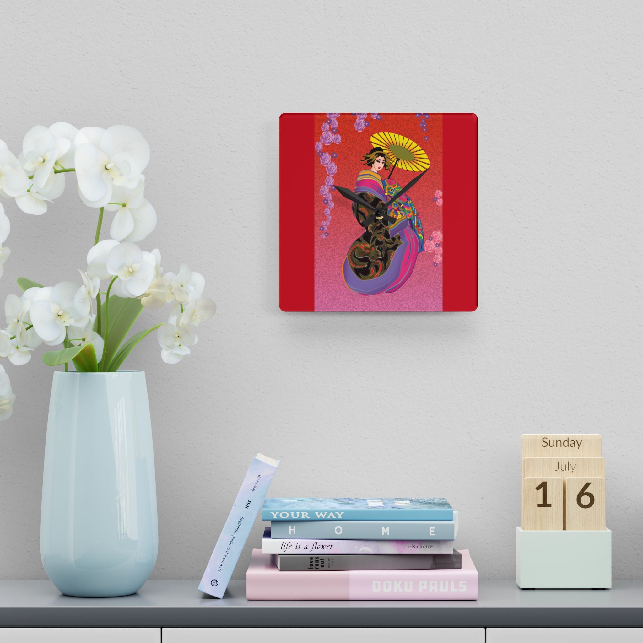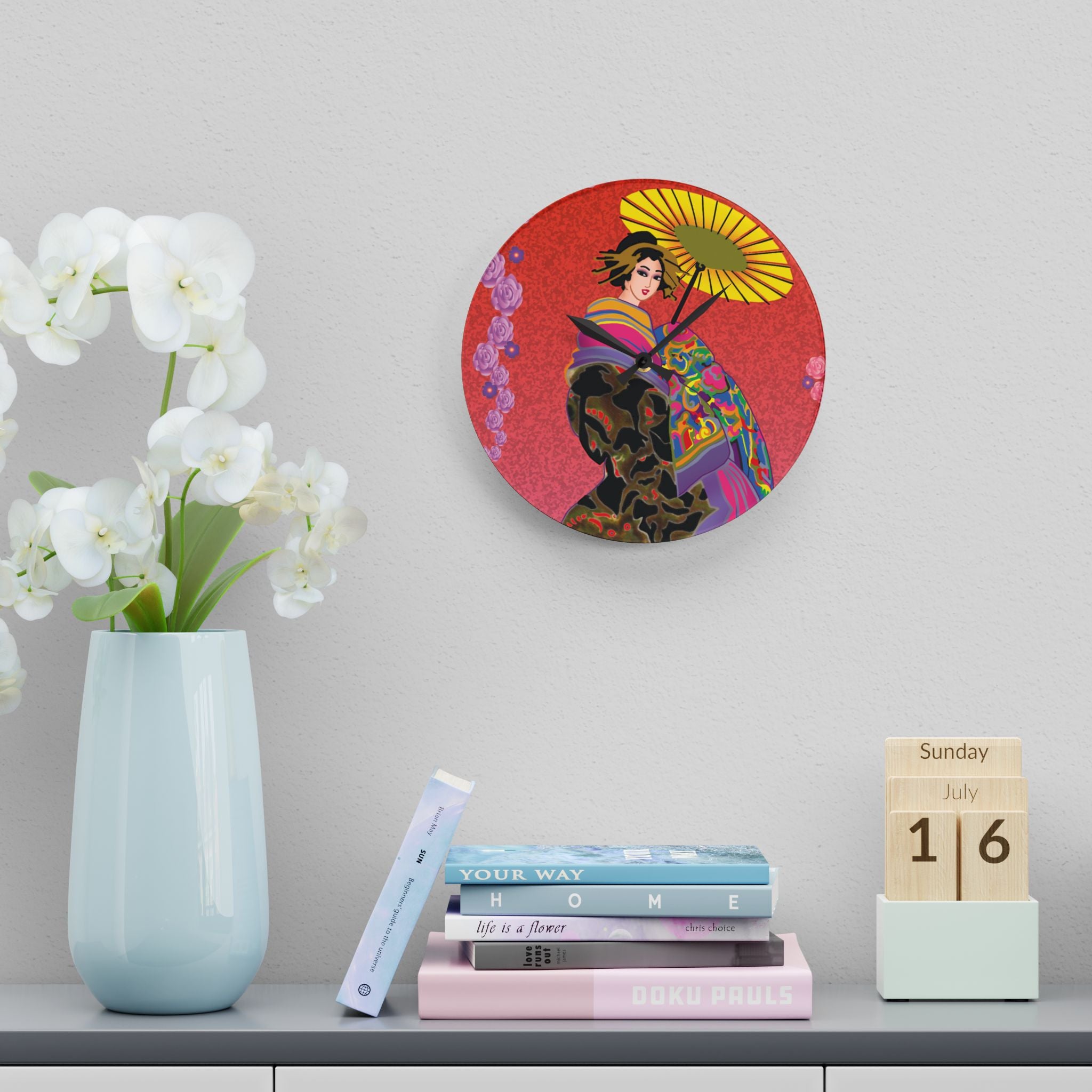 Enchanting Geisha Acrylic Wall Clock captures the allure and refinement of classic Art Deco artistry through the timeless beauty of Japanese elegance. Available in both round and square shapes, this striking wall clock features a captivating geisha set against a vivid red background—a color symbolic of vitality, grace, and passion. The piece merges Eastern tradition with Western Art Deco sophistication, creating a visually stunning accent for any stylish interior.