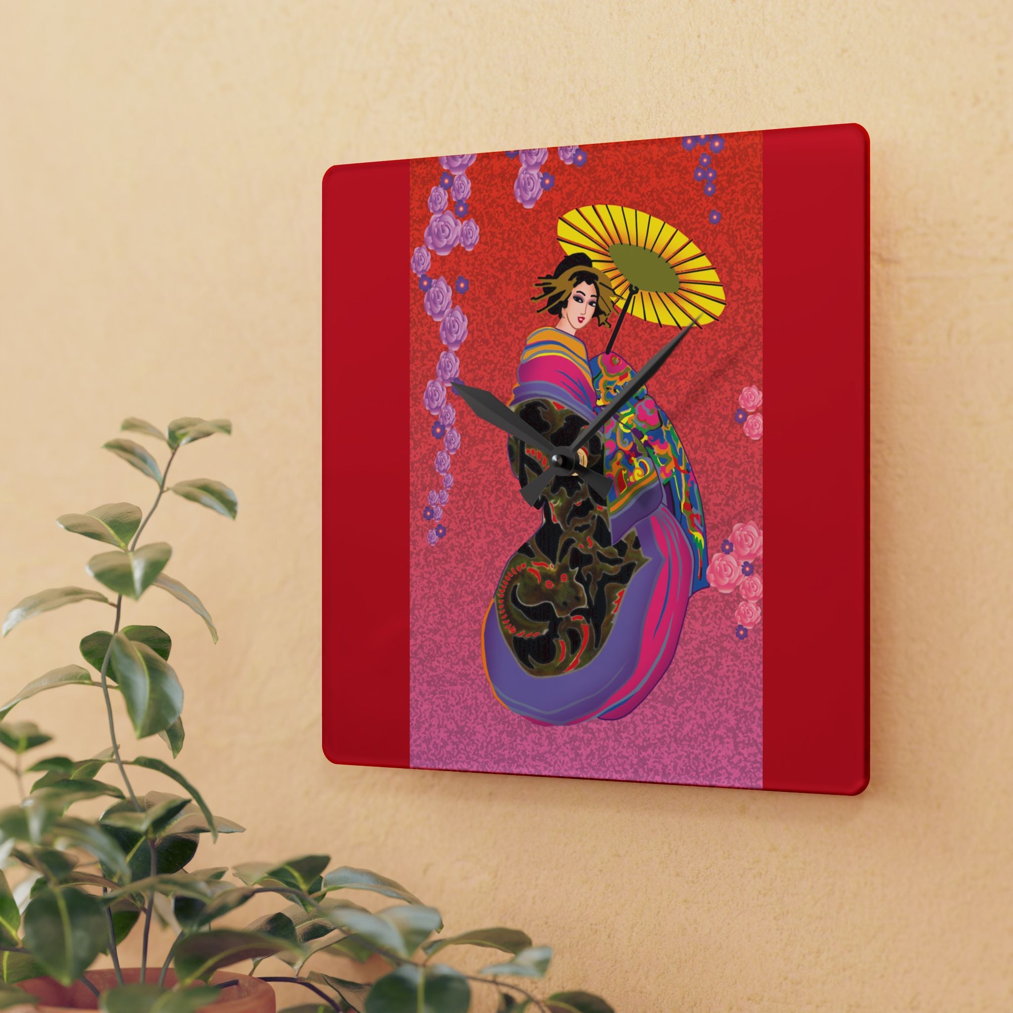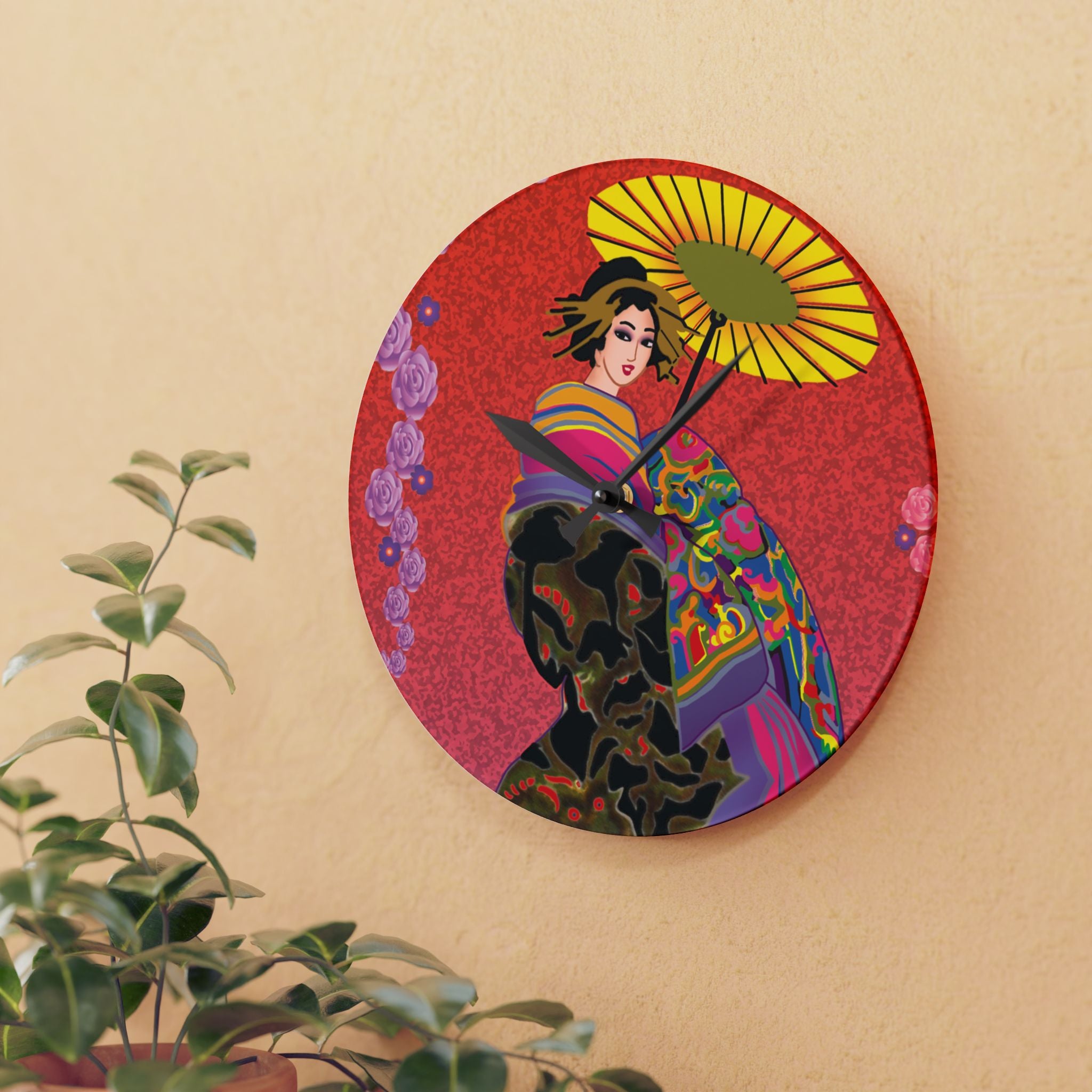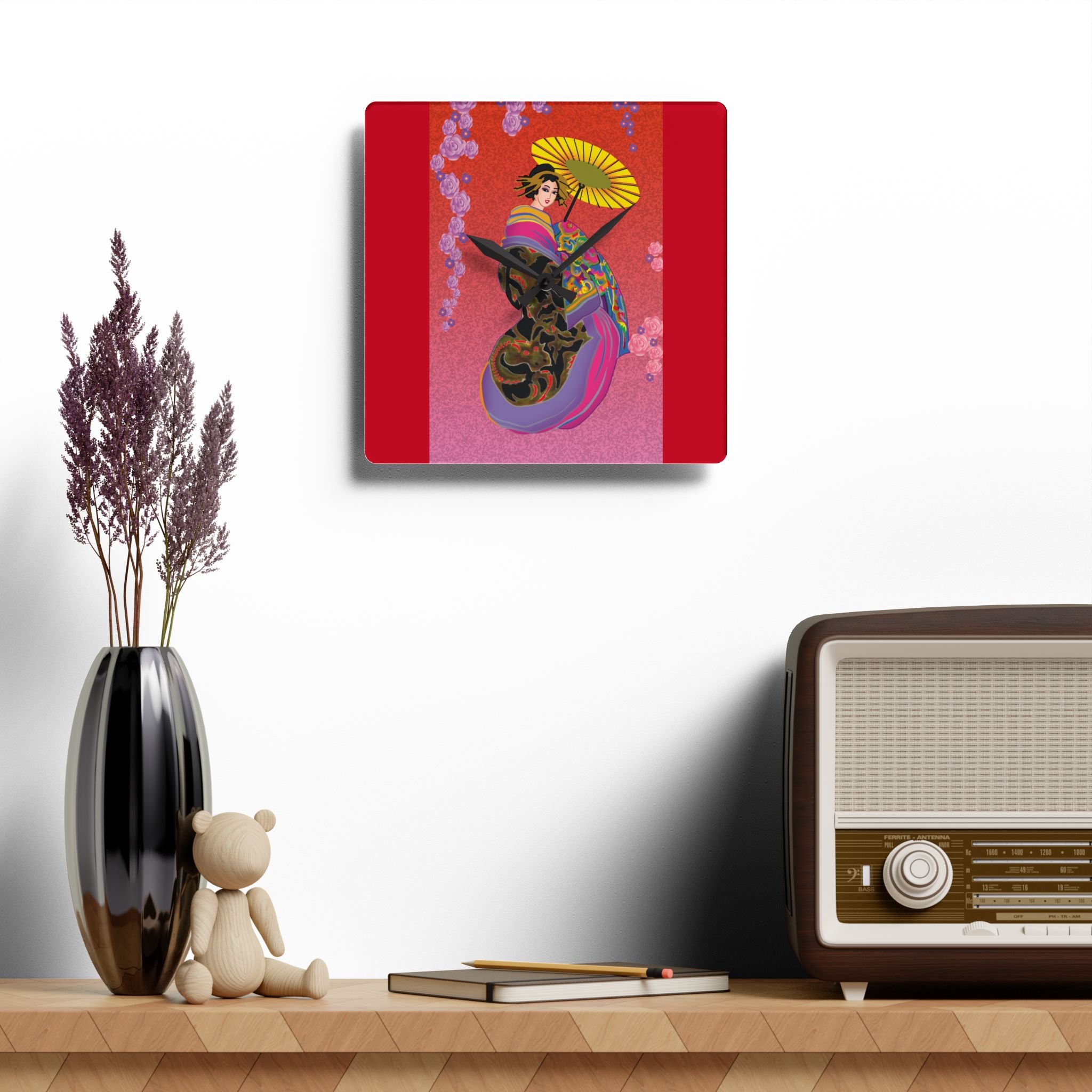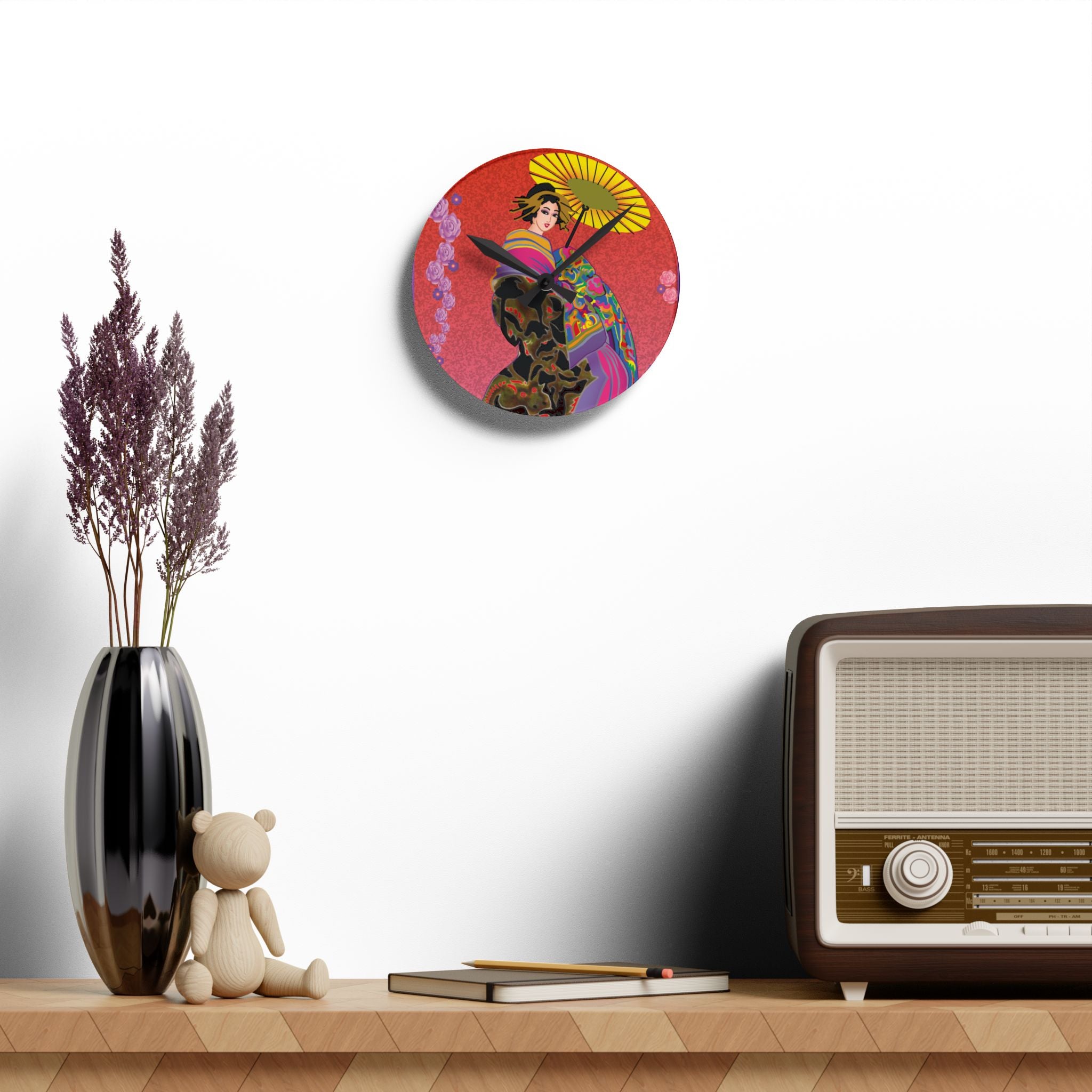 Enchanting Geisha Acrylic Wall Clock captures the allure and refinement of classic Art Deco artistry through the timeless beauty of Japanese elegance. Available in both round and square shapes, this striking wall clock features a captivating geisha set against a vivid red background—a color symbolic of vitality, grace, and passion. The piece merges Eastern tradition with Western Art Deco sophistication, creating a visually stunning accent for any stylish interior.