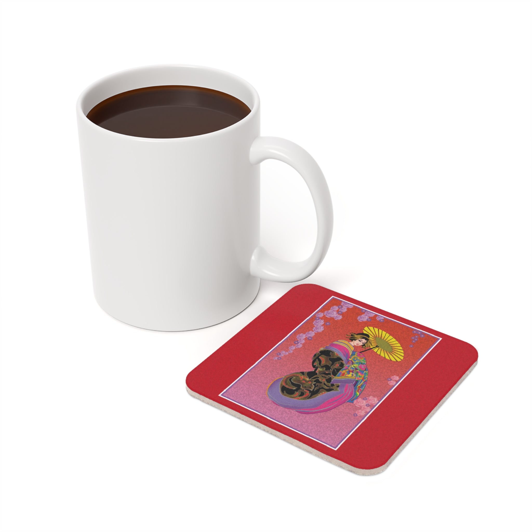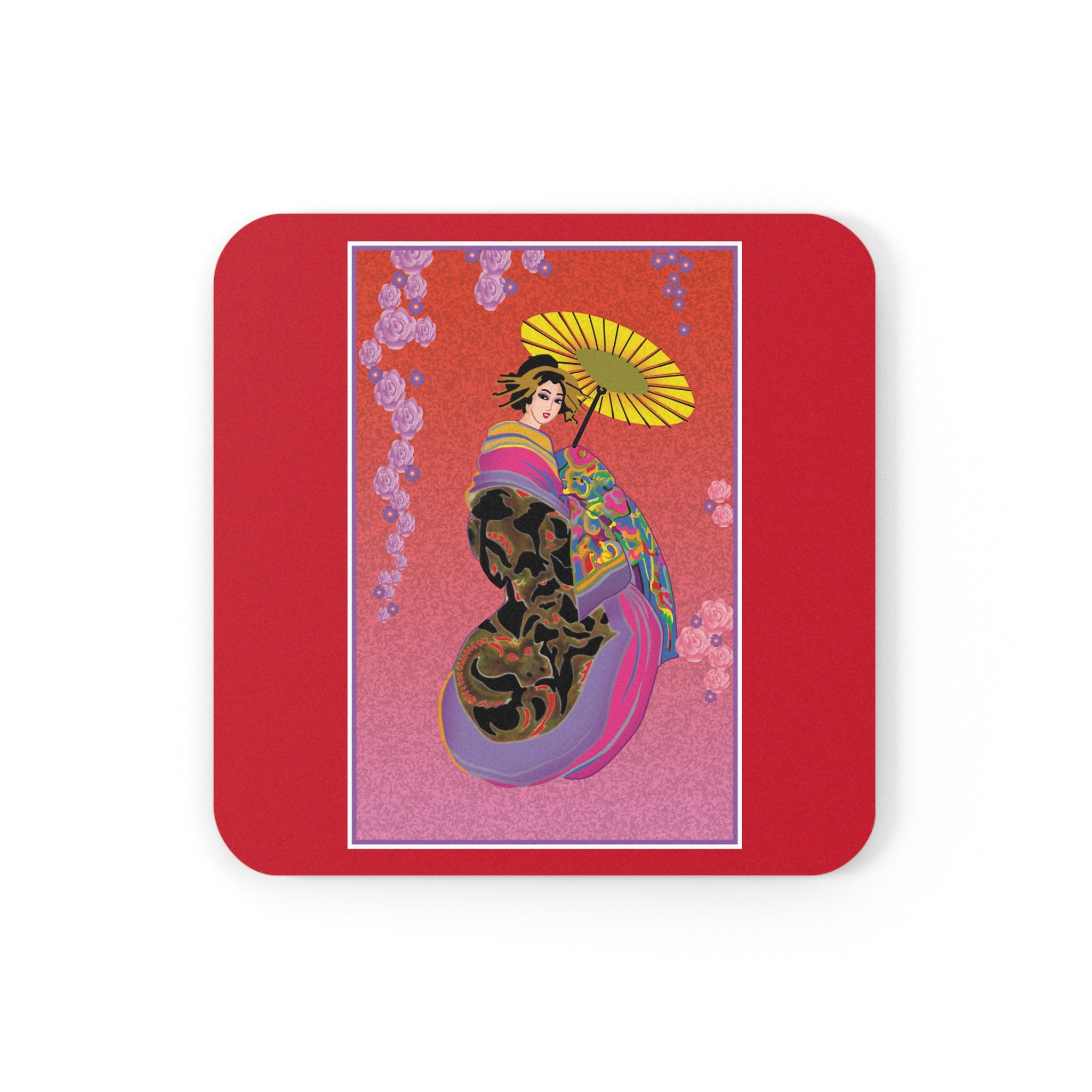 Enchanting Geisha | Cork Back Coaster captures the timeless beauty and grace of vintage Art Deco artistry. This exquisite design brings an air of refined elegance and cultural splendor to your tabletop, blending tradition with artistic sophistication.