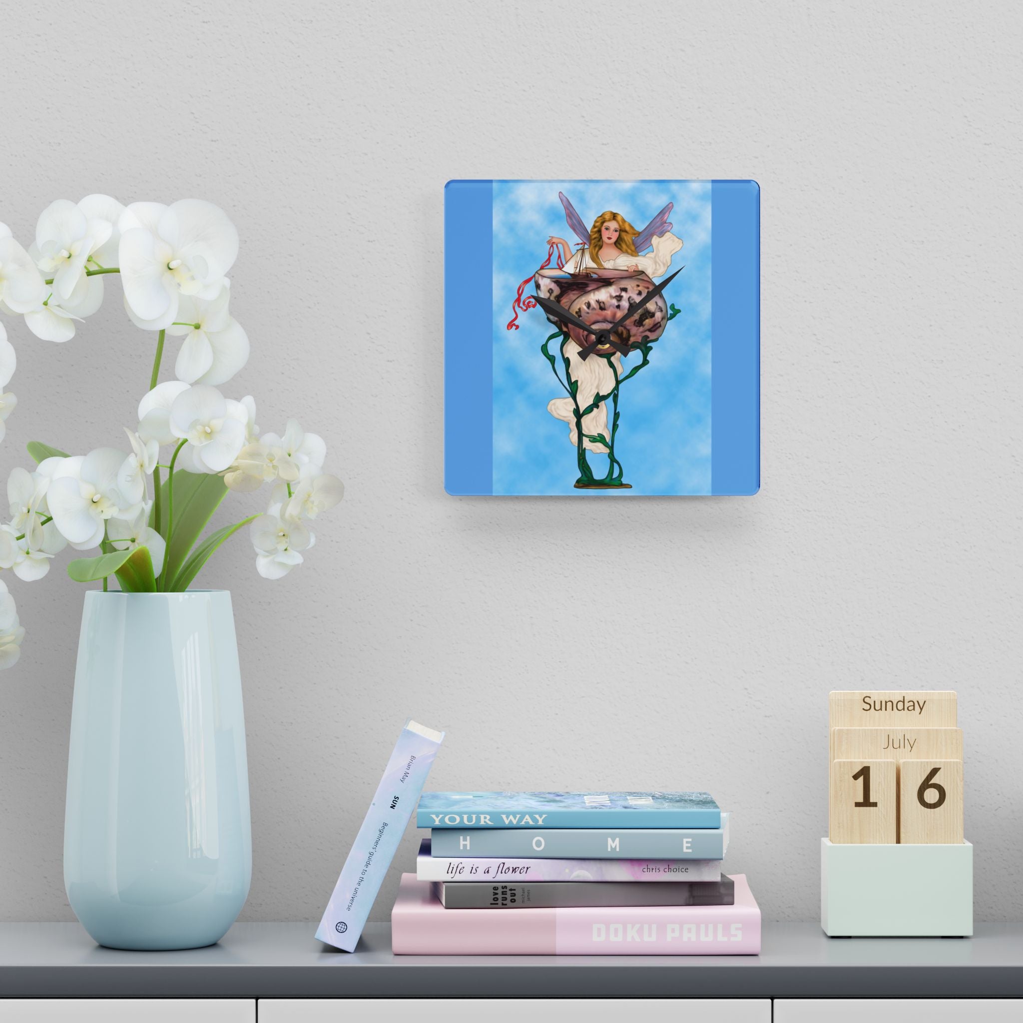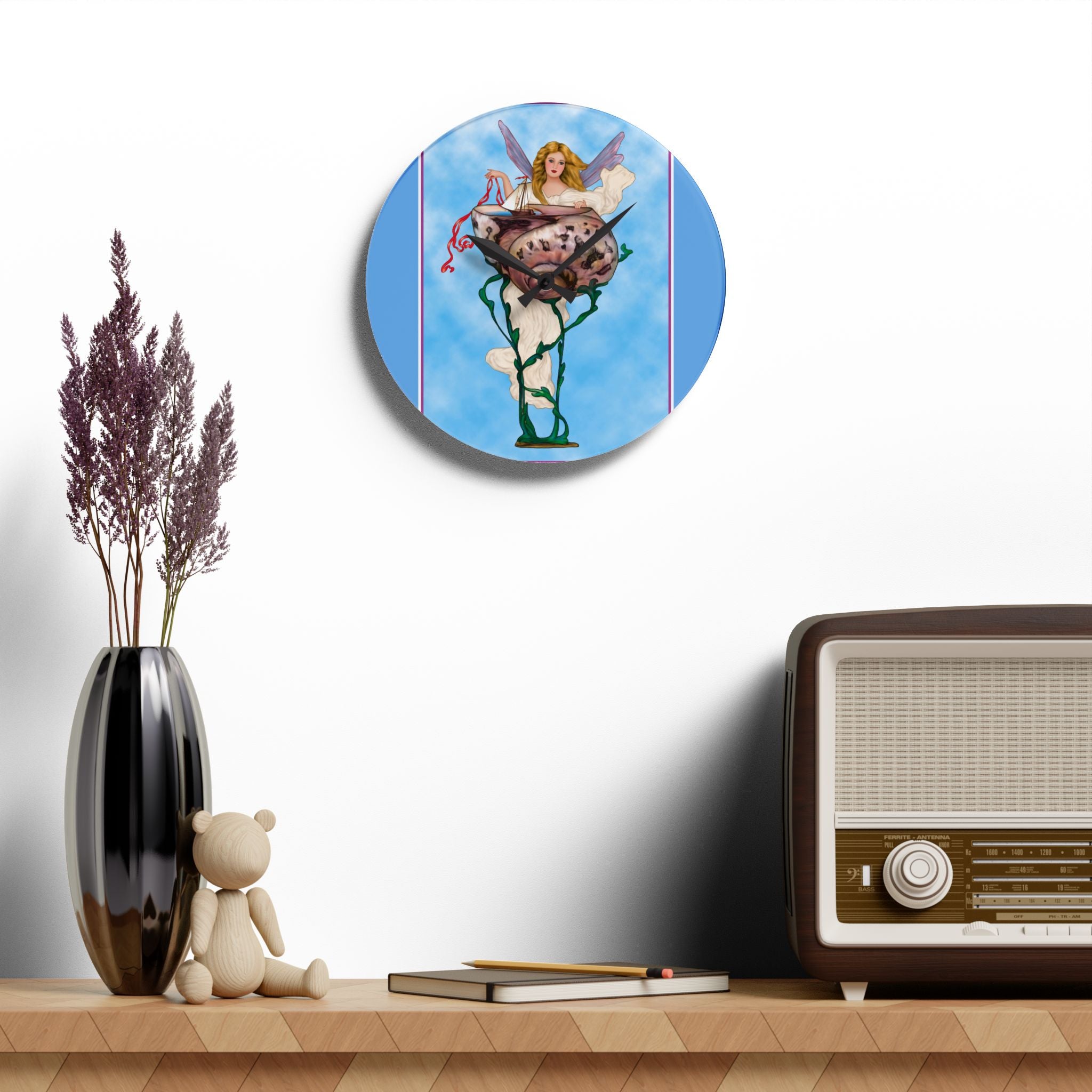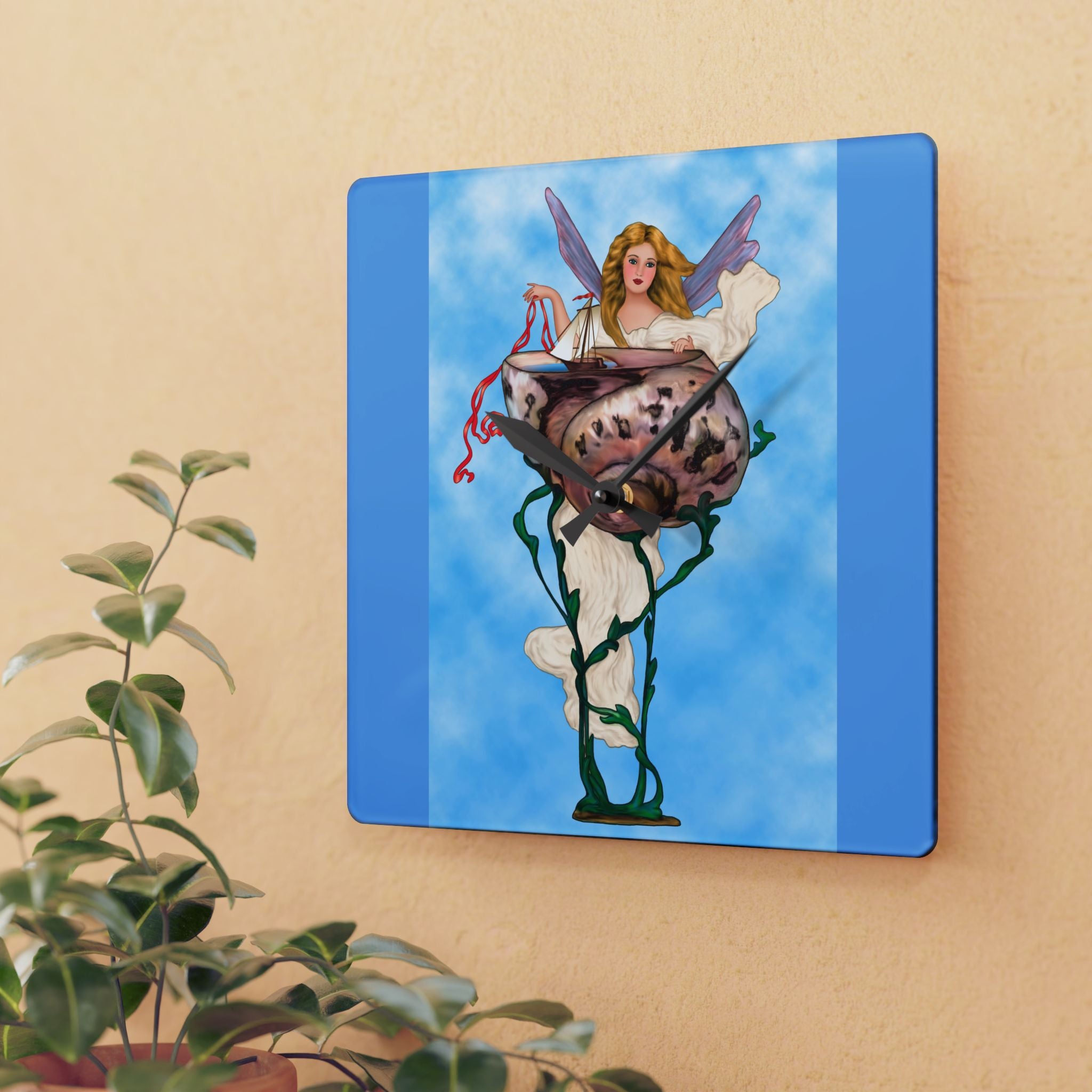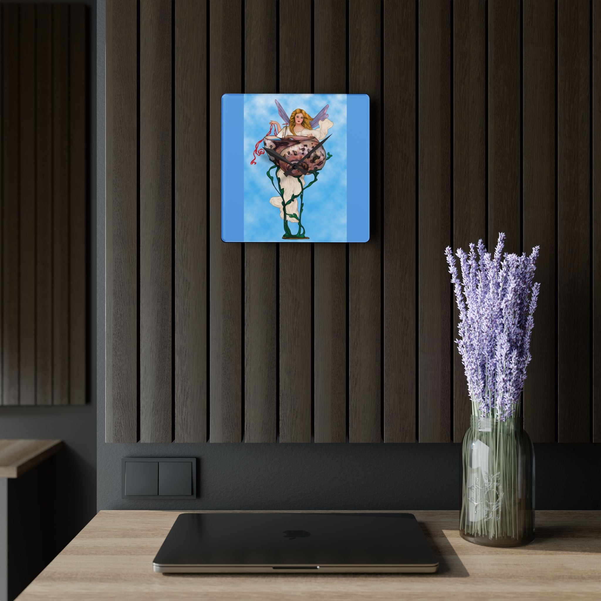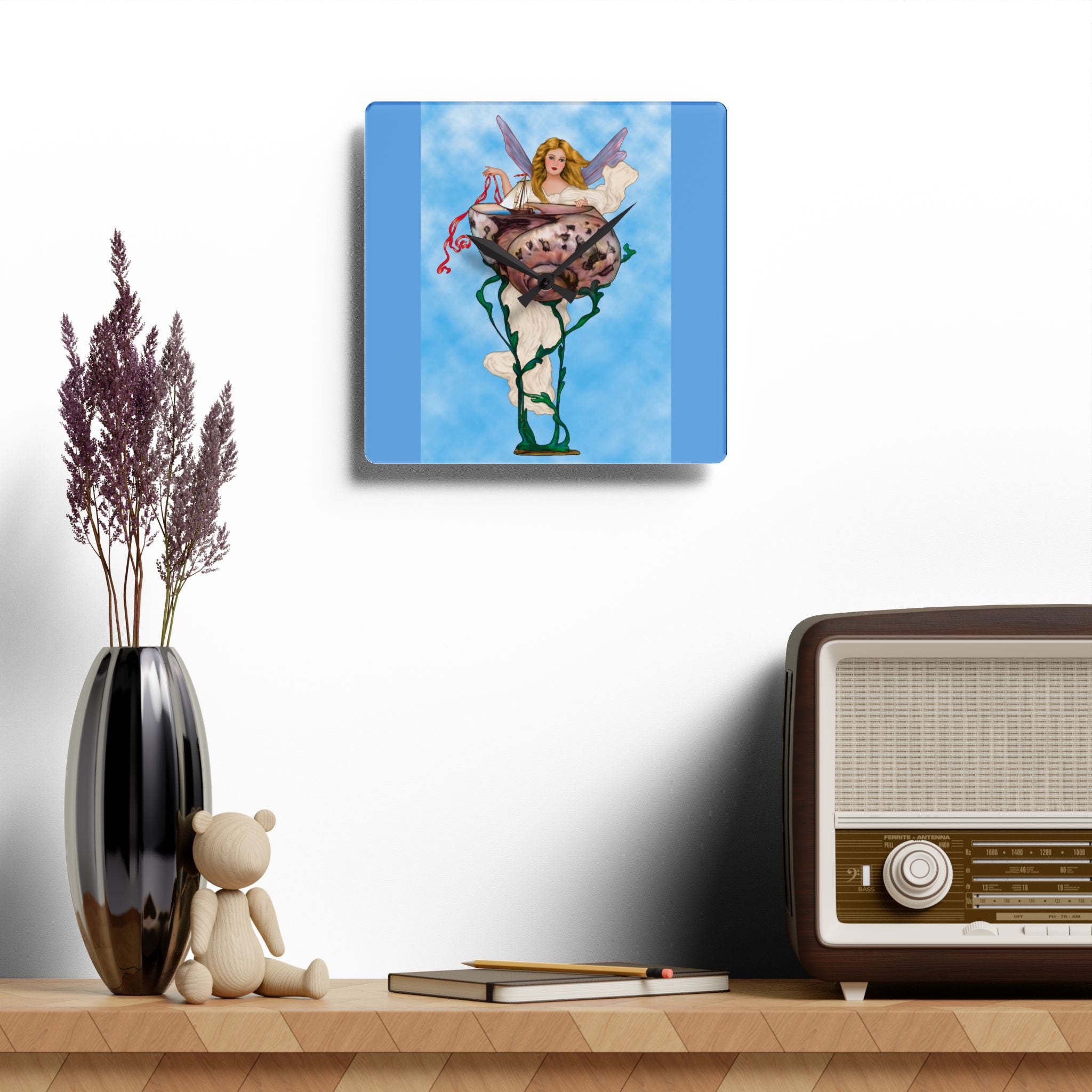 Enchanting Serenity Acrylic Wall Clock captures the calm sophistication of Art Deco design, brought to life through the soft beauty of an angelic figure set against a tranquil blue background. Available in both round and square formats, this timeless wall clock infuses elegance and grace into any space, harmonizing classic artistry with modern craftsmanship. The acrylic surface provides the clarity of glass with added durability, making it ideal for home, office, or gallery display.