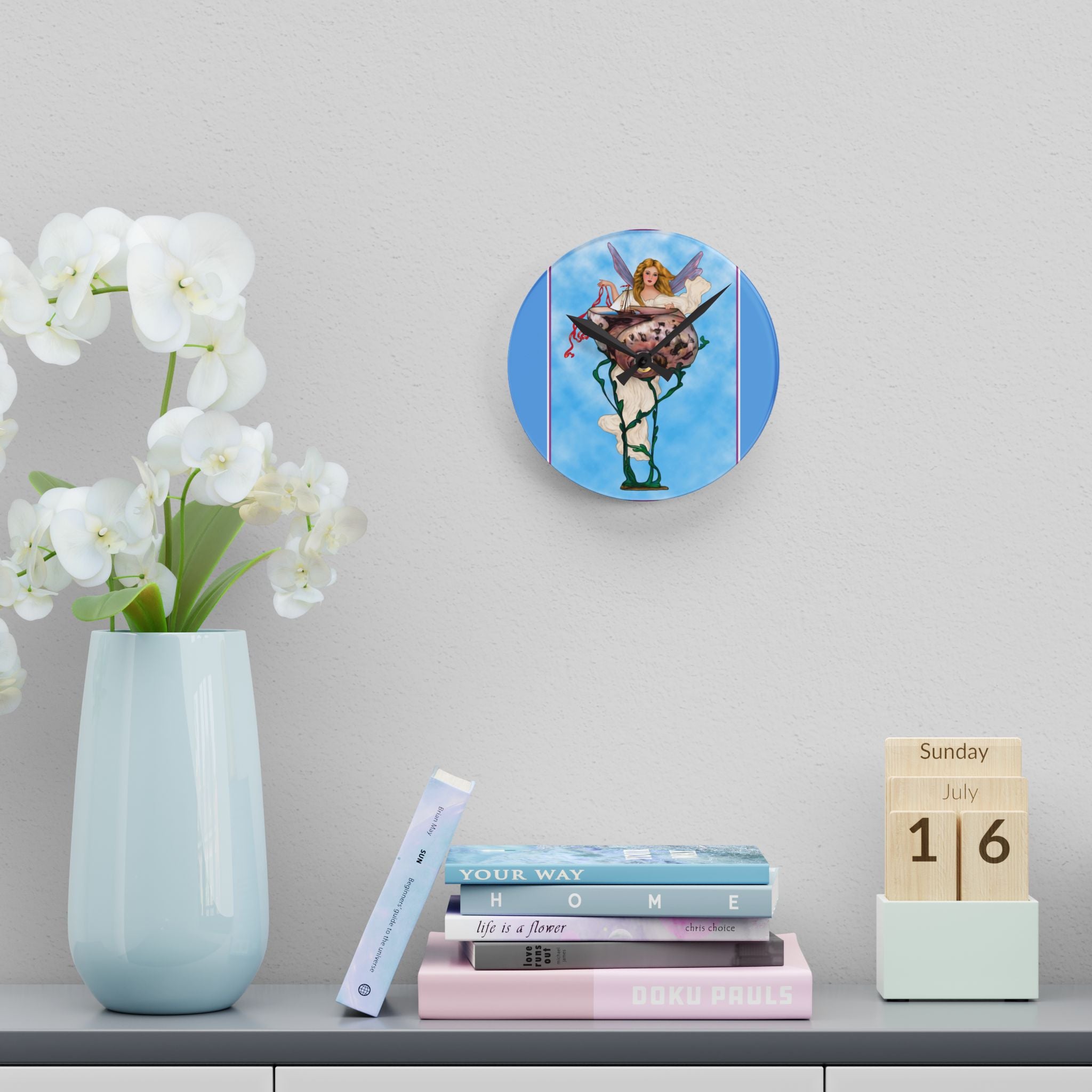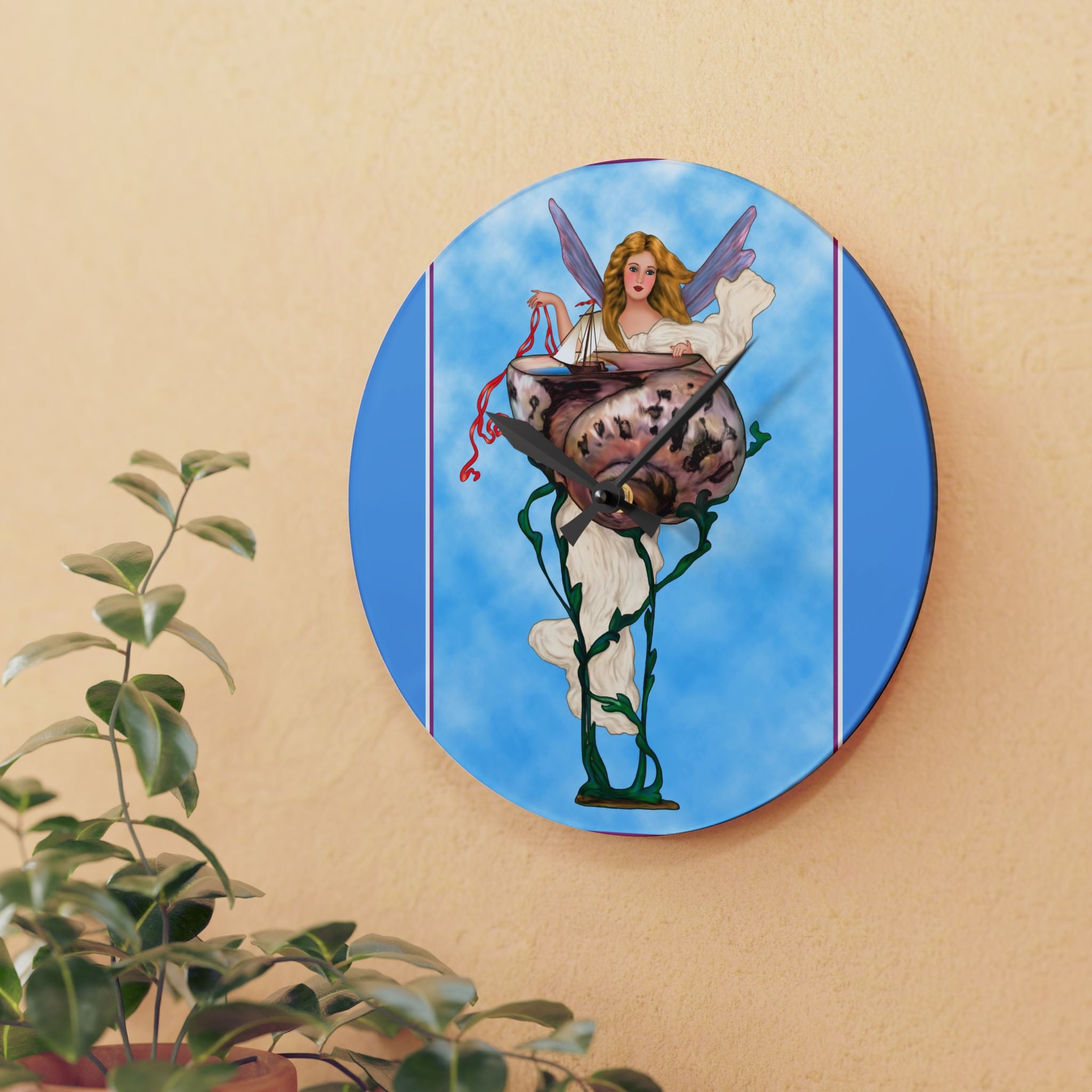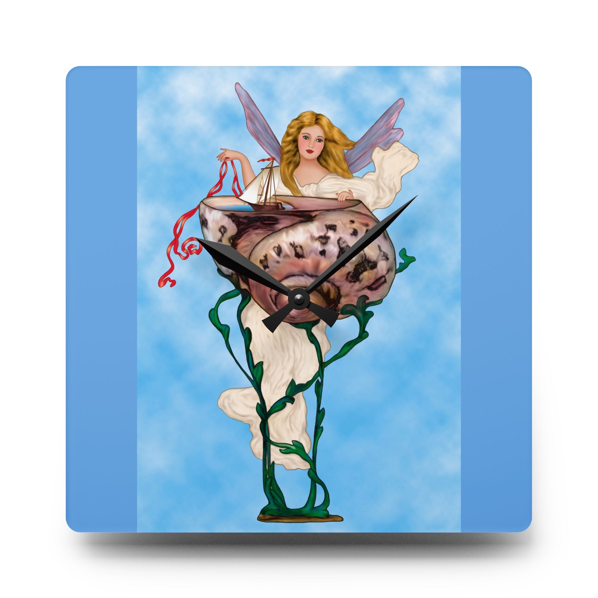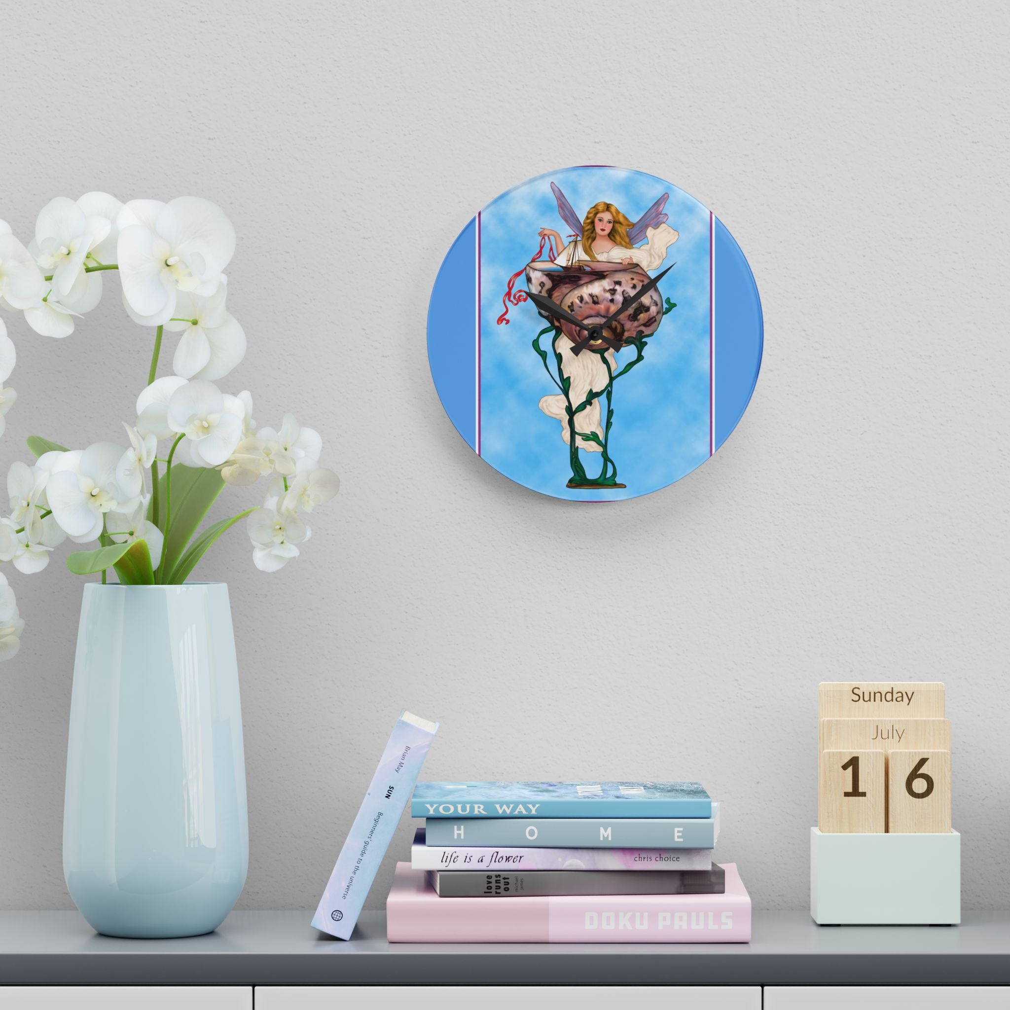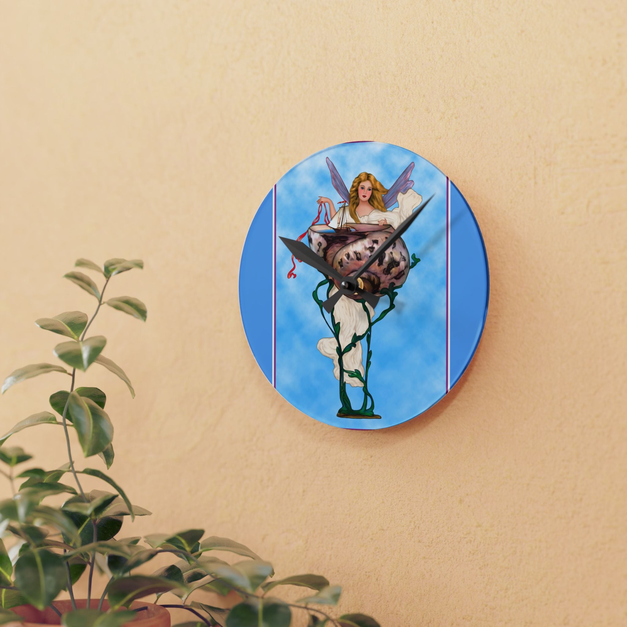 Enchanting Serenity Acrylic Wall Clock captures the calm sophistication of Art Deco design, brought to life through the soft beauty of an angelic figure set against a tranquil blue background. Available in both round and square formats, this timeless wall clock infuses elegance and grace into any space, harmonizing classic artistry with modern craftsmanship. The acrylic surface provides the clarity of glass with added durability, making it ideal for home, office, or gallery display.