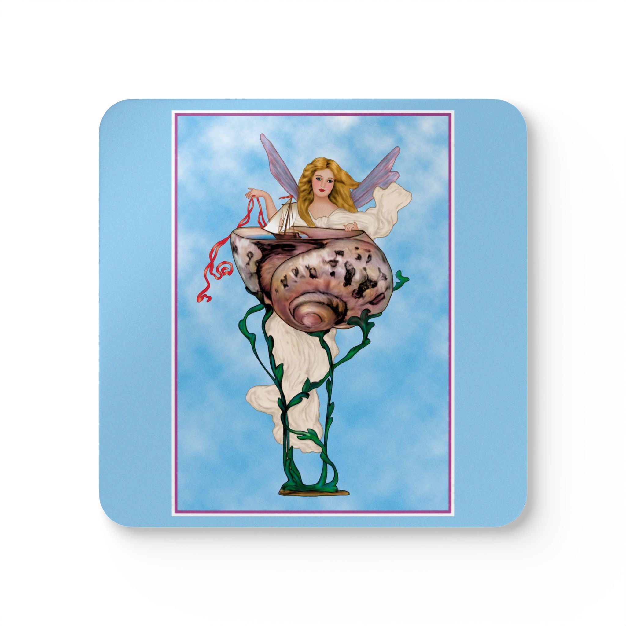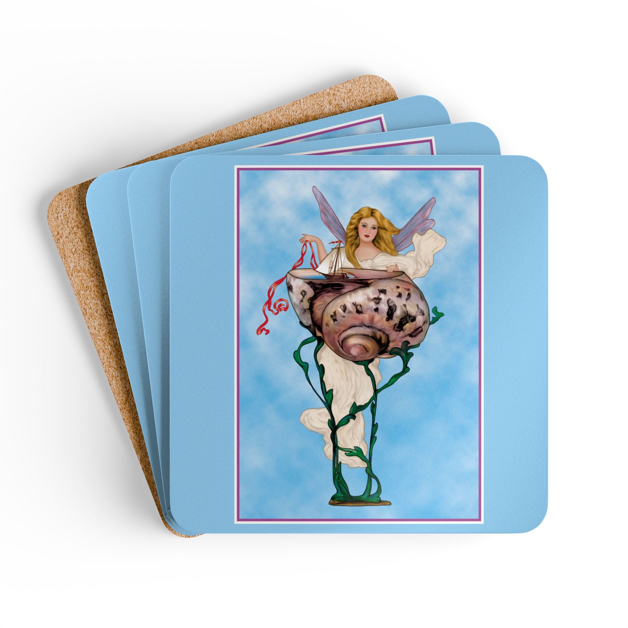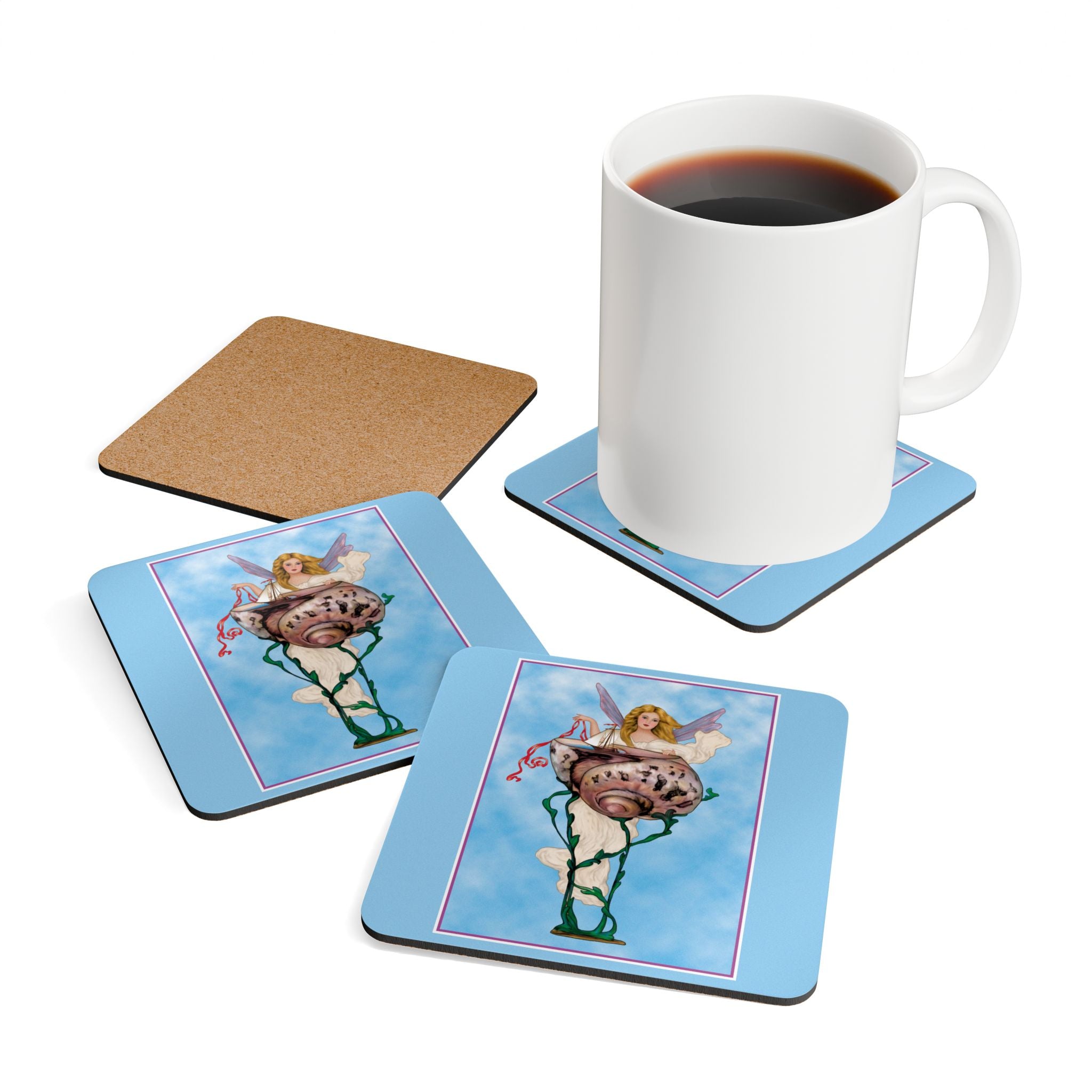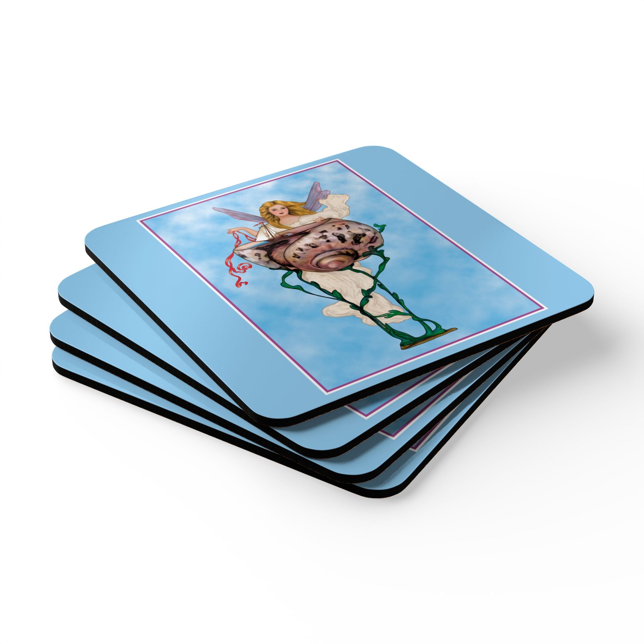 Enchanting Serenity | Corkwood Coaster Set brings the timeless grace of Art Deco design into your home. Perfect for collectors and lovers of elegant décor, this set of four coasters adds a touch of divine beauty to any table setting.