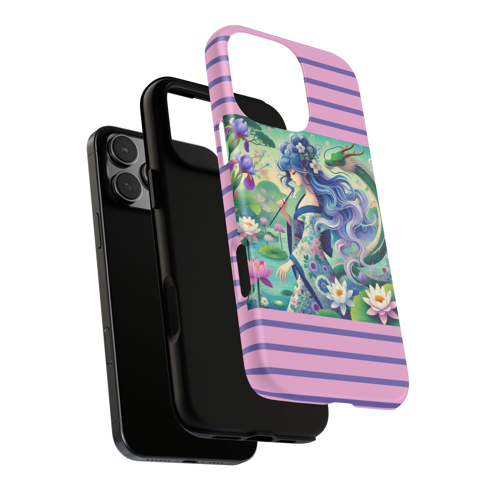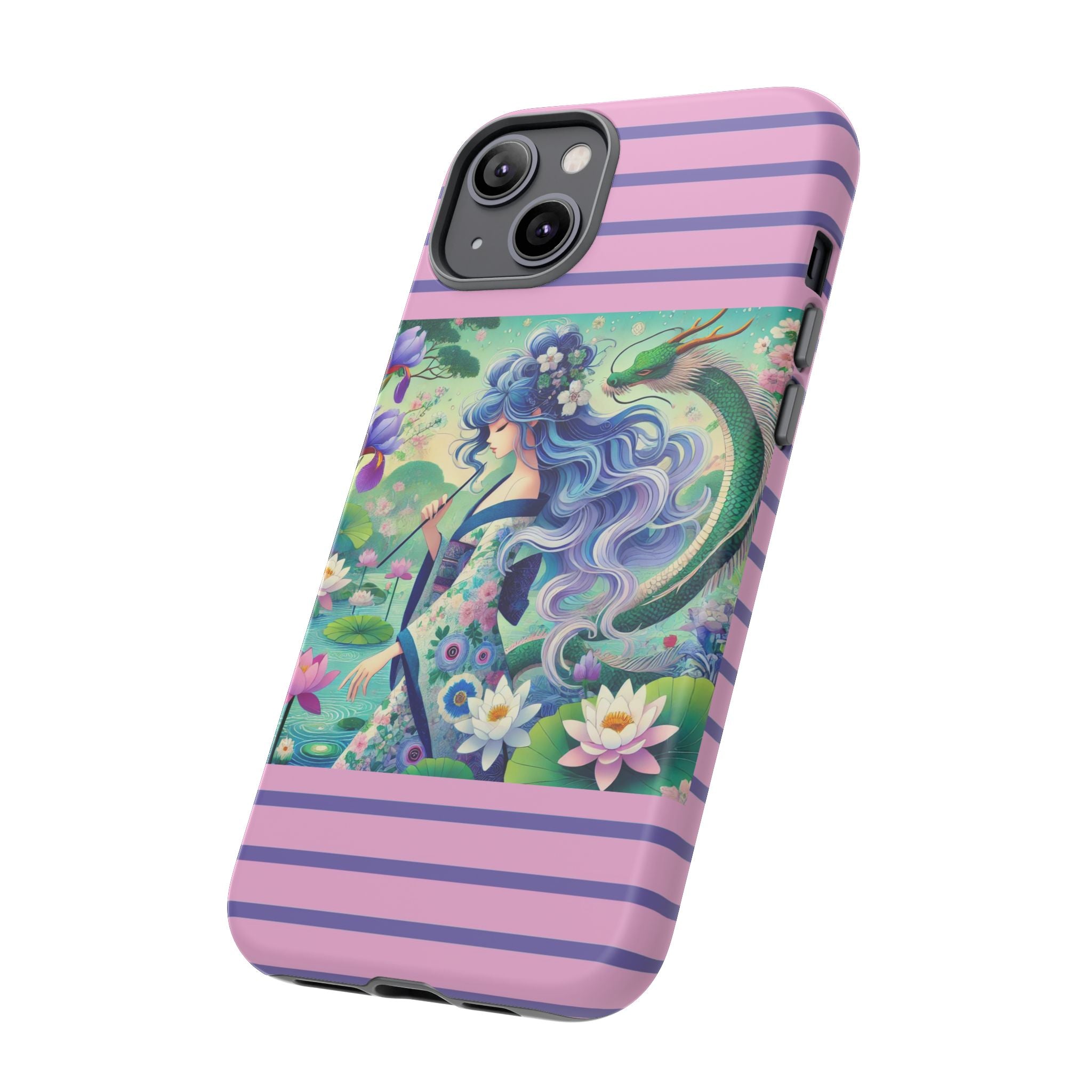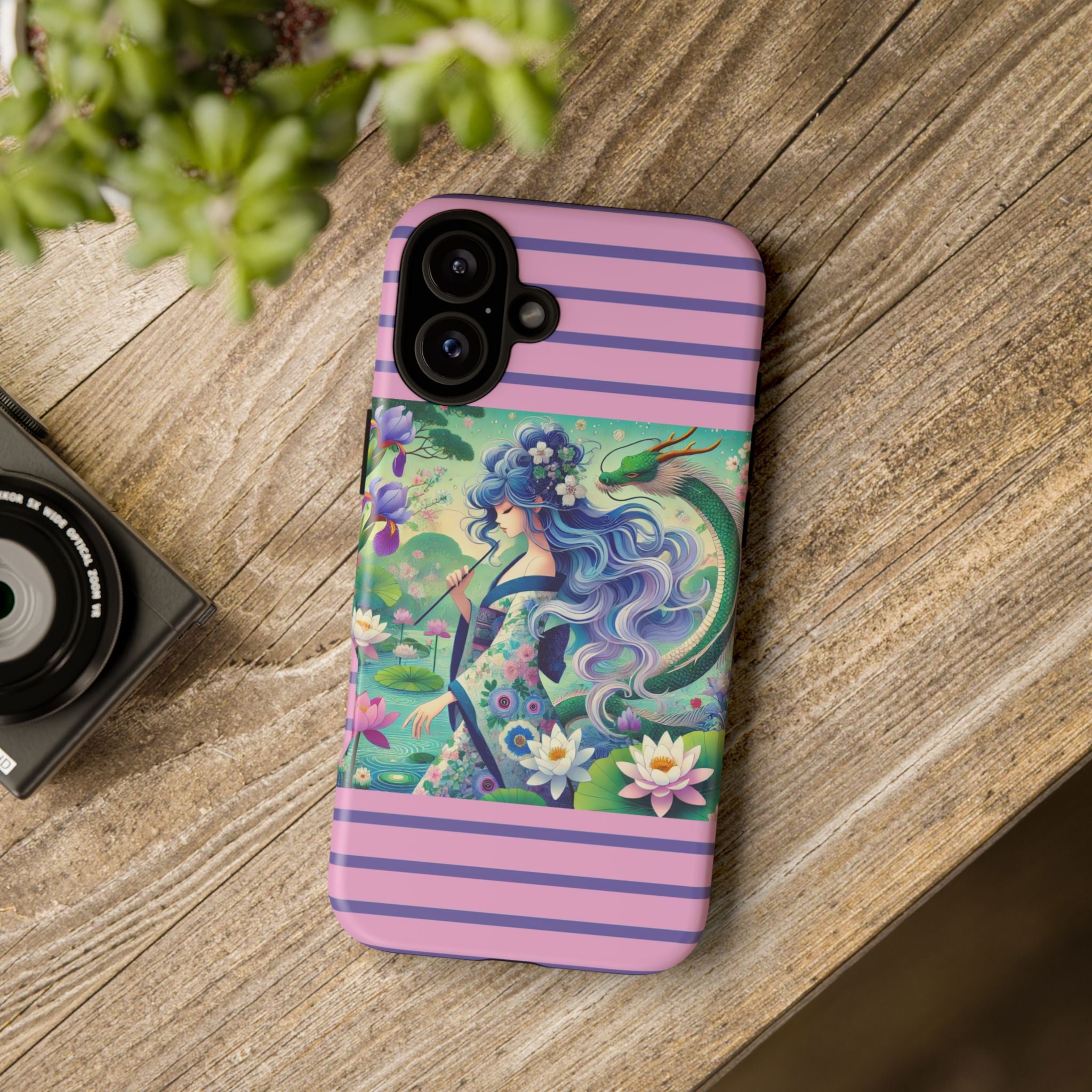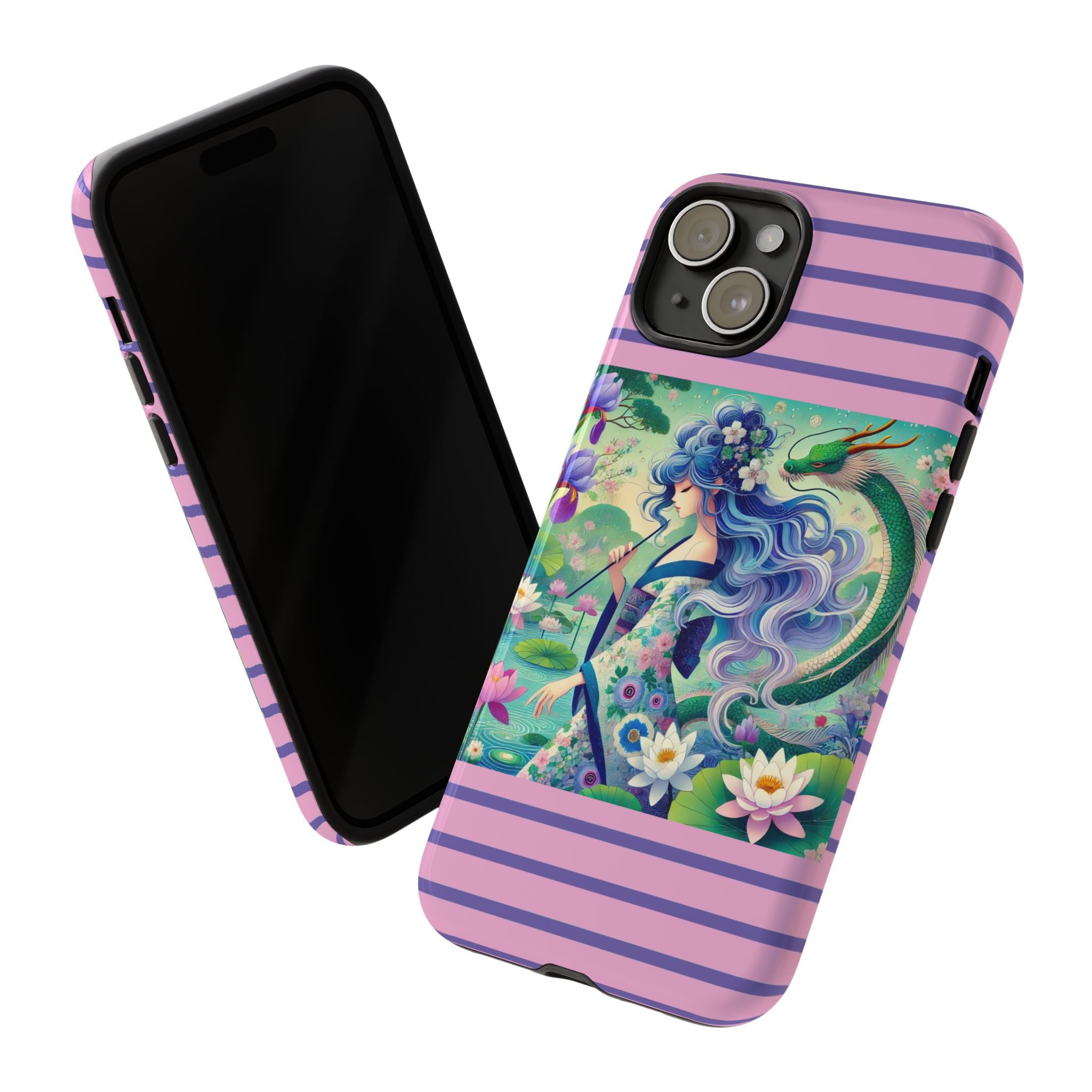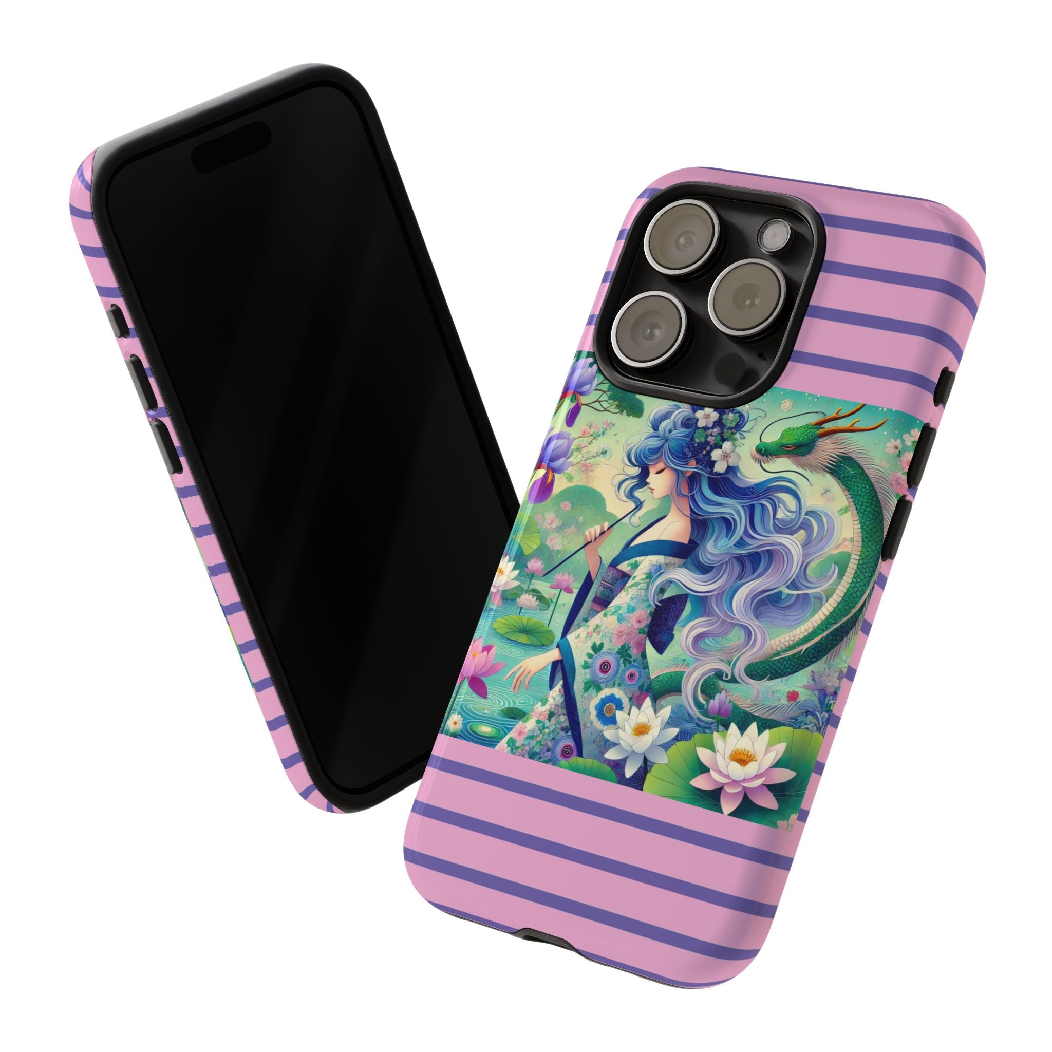 Bring a touch of magic and elegance to your everyday device with our Fairy of the Koi Pond Phone Cases. Designed for iPhone, Samsung Galaxy, and Google Pixel devices, each case combines premium-quality craftsmanship with enchanting artistic beauty. The design features a modern fairy with flowing blue hair standing gracefully beside a koi pond filled with irises and water lilies. A jade-green dragon curls nearby, adding a mystical presence that deepens the dreamlike atmosphere. Together, these elements create a serene and captivating composition that feels both ethereal and empowering.