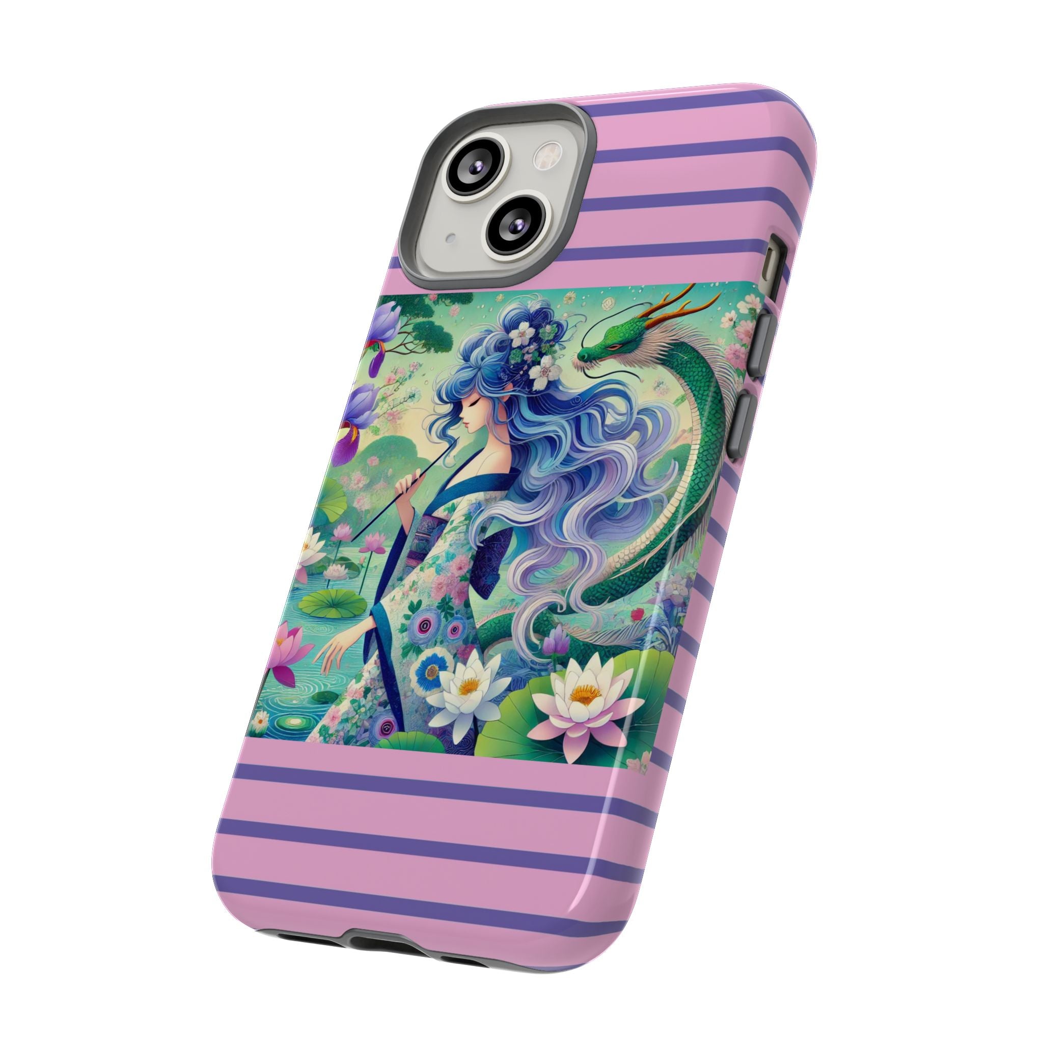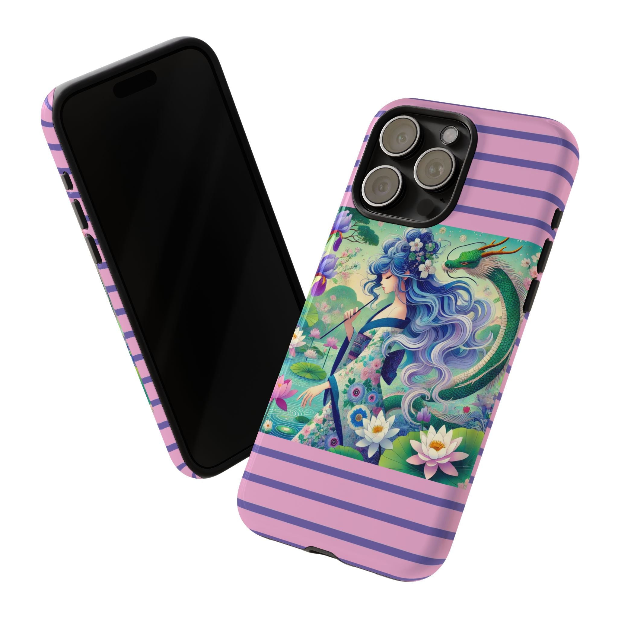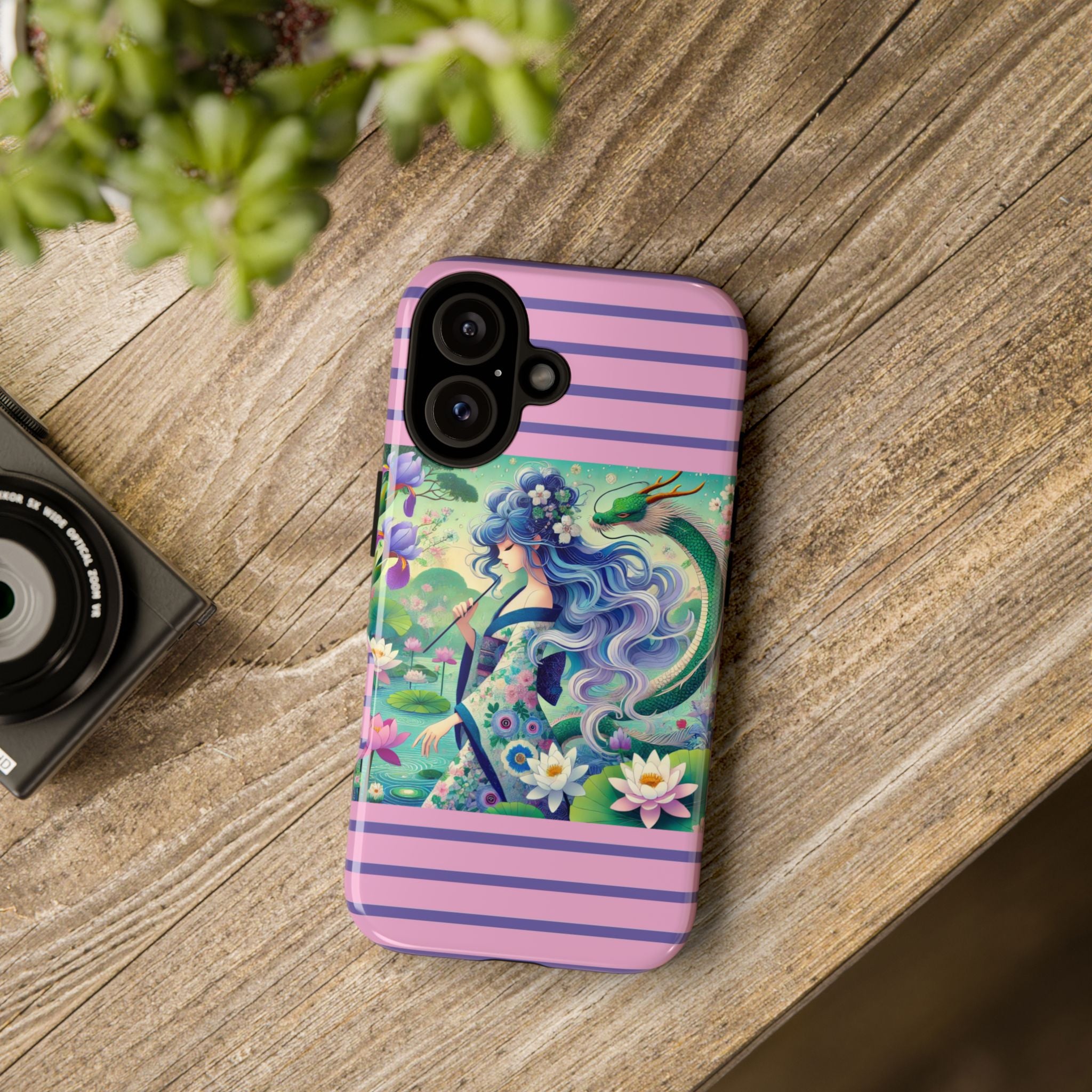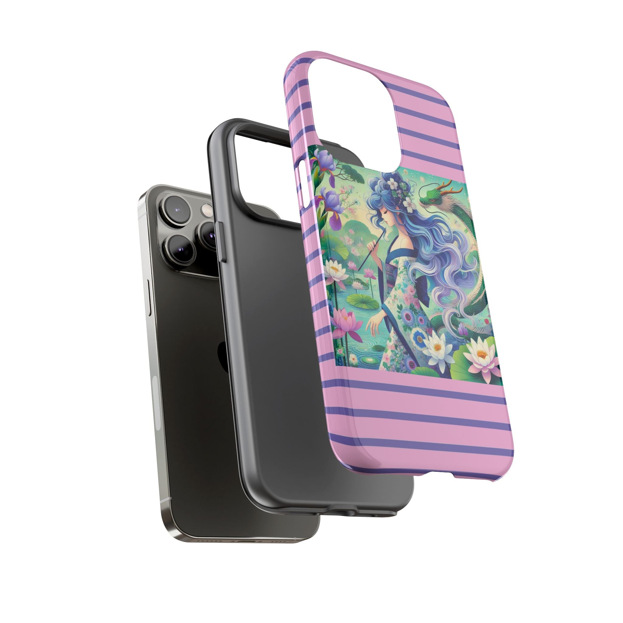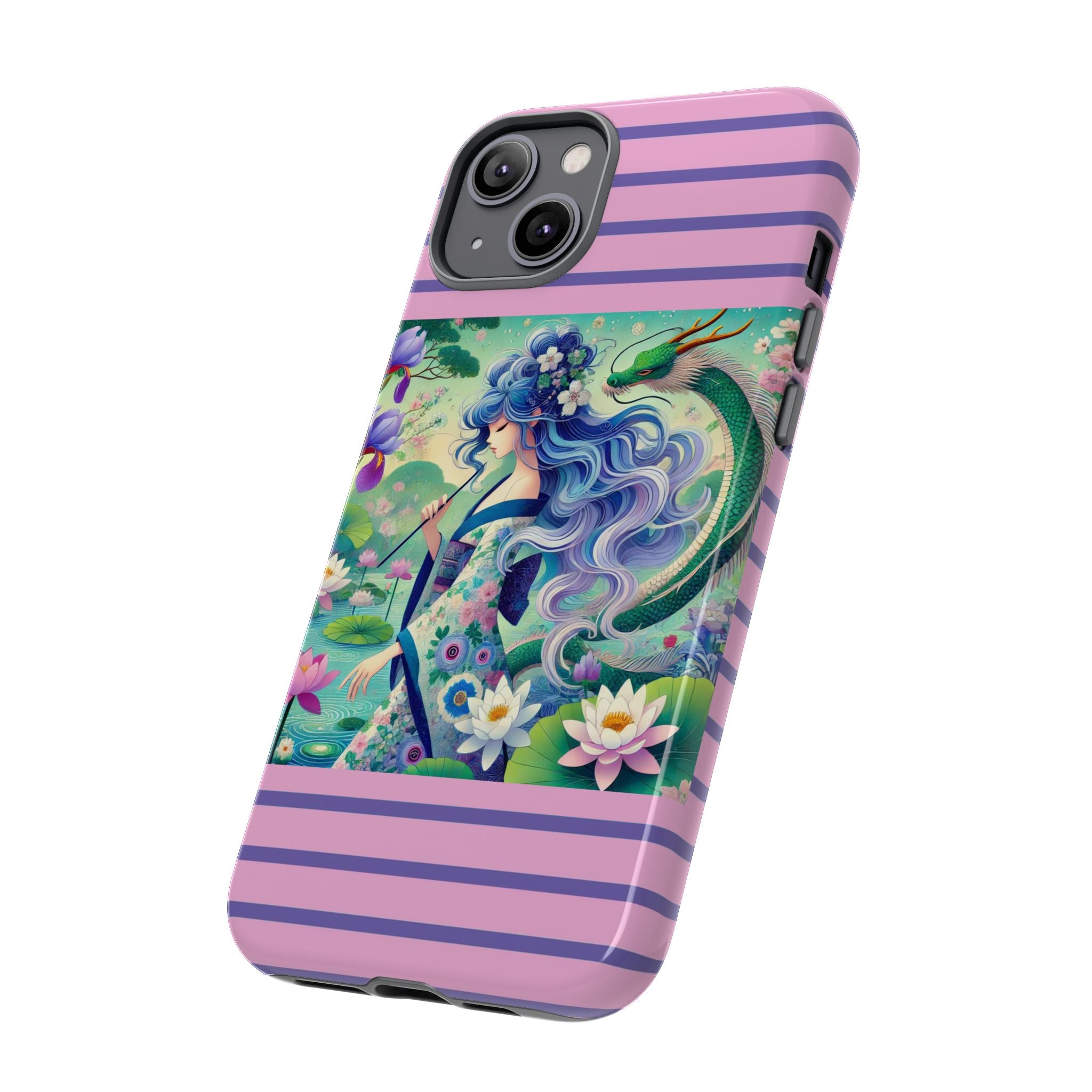Bring a touch of magic and elegance to your everyday device with our Fairy of the Koi Pond Phone Cases. Designed for iPhone, Samsung Galaxy, and Google Pixel devices, each case combines premium-quality craftsmanship with enchanting artistic beauty. The design features a modern fairy with flowing blue hair standing gracefully beside a koi pond filled with irises and water lilies. A jade-green dragon curls nearby, adding a mystical presence that deepens the dreamlike atmosphere. Together, these elements create a serene and captivating composition that feels both ethereal and empowering.