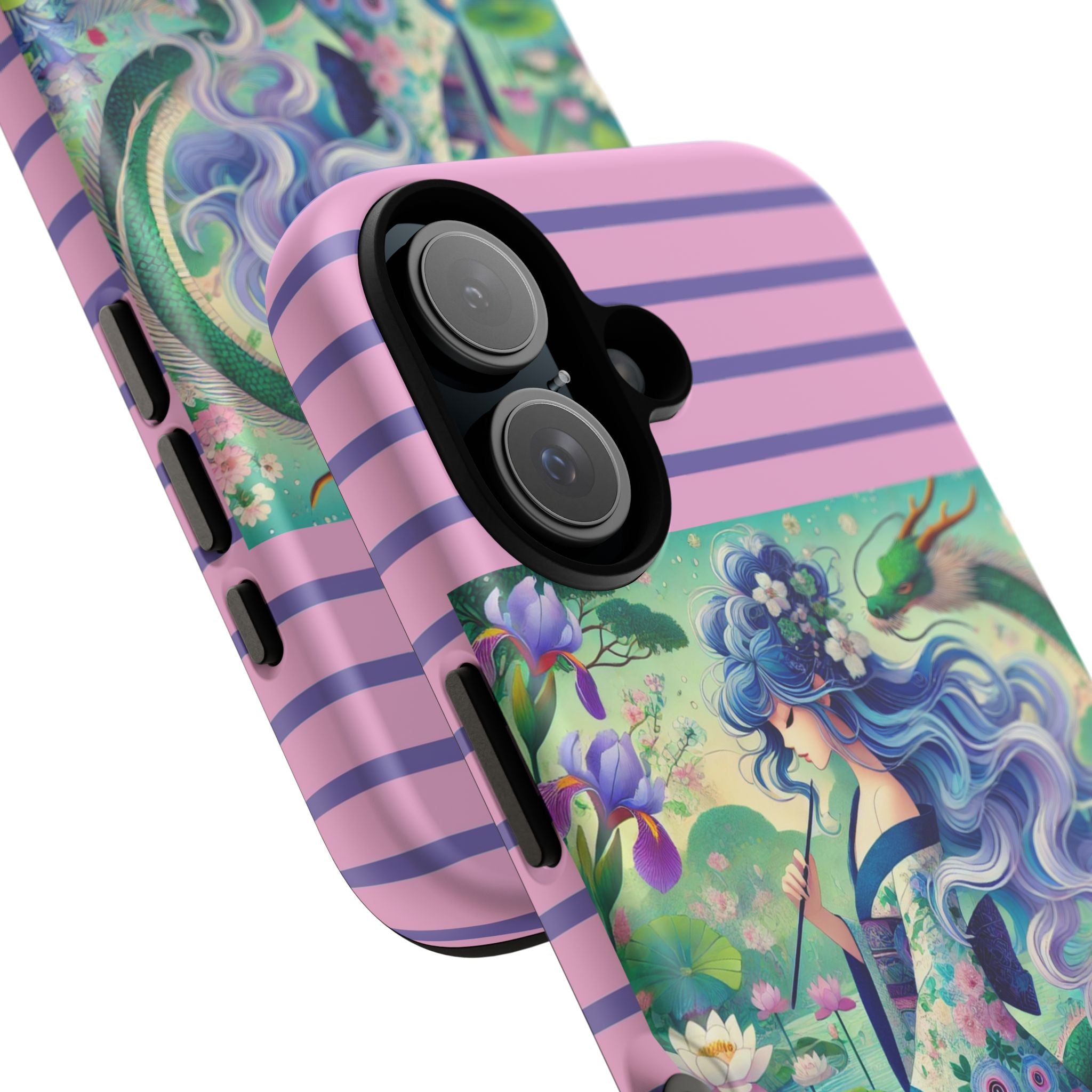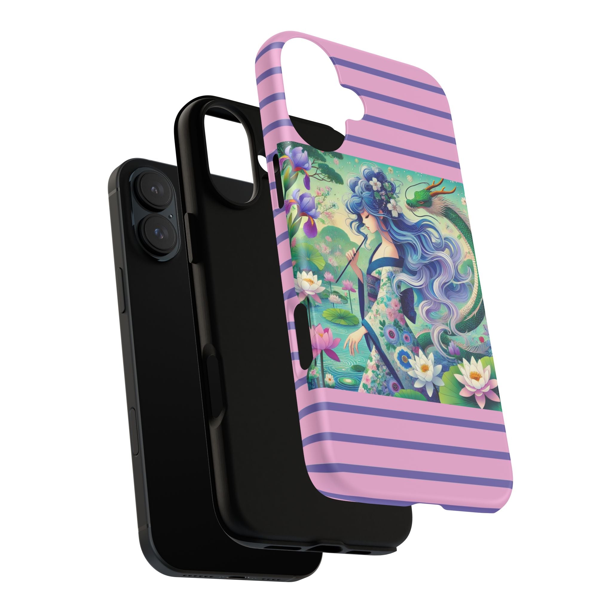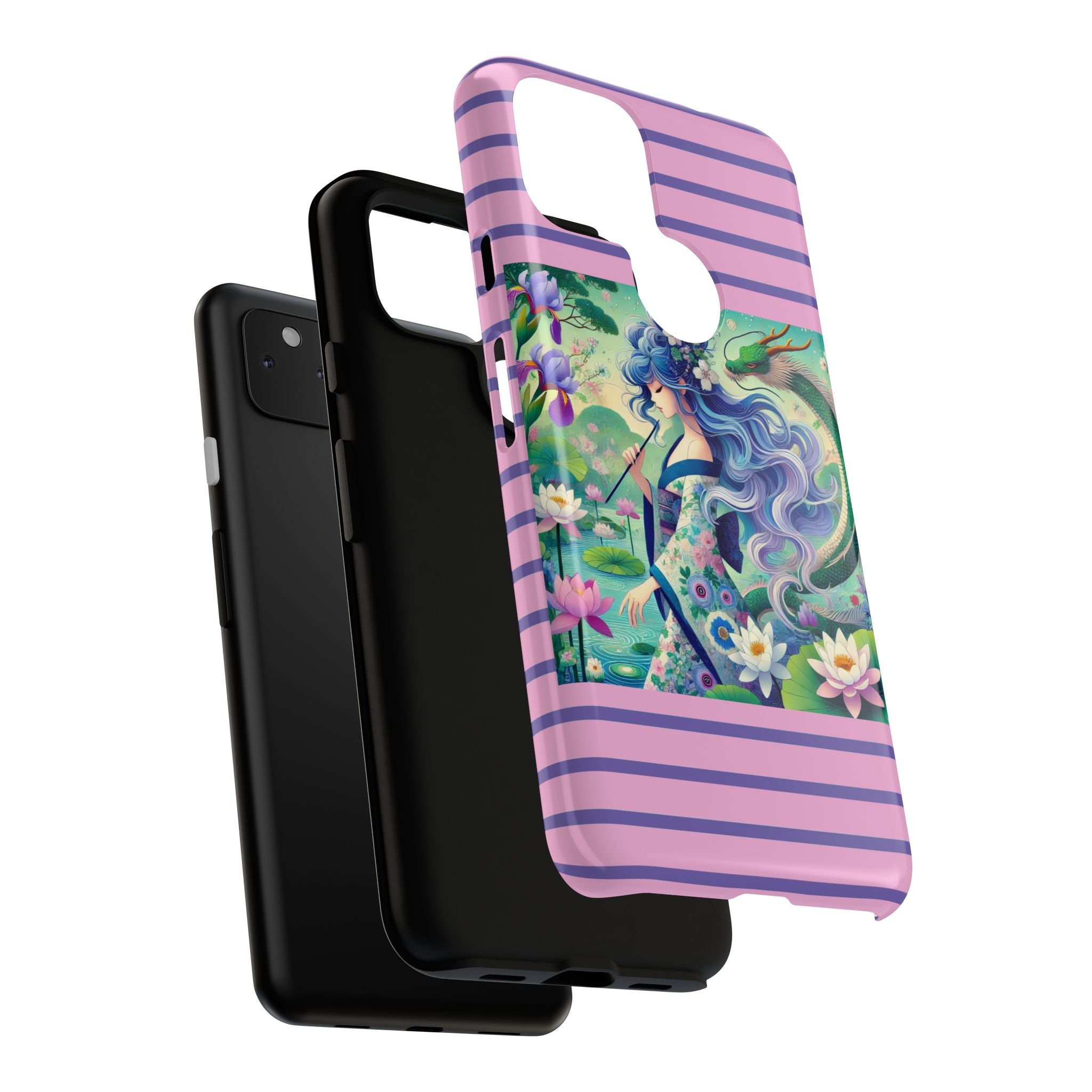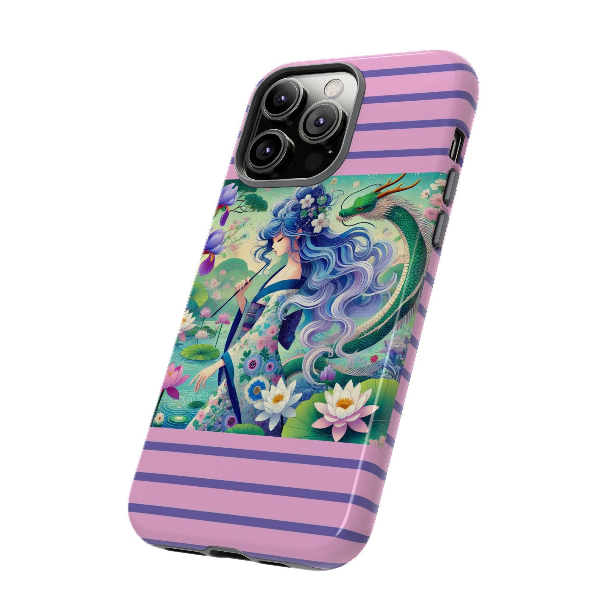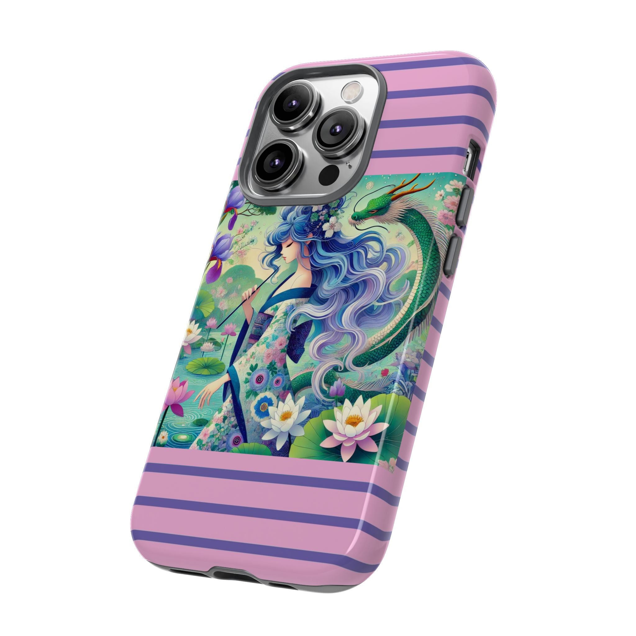 Bring a touch of magic and elegance to your everyday device with our Fairy of the Koi Pond Phone Cases. Designed for iPhone, Samsung Galaxy, and Google Pixel devices, each case combines premium-quality craftsmanship with enchanting artistic beauty. The design features a modern fairy with flowing blue hair standing gracefully beside a koi pond filled with irises and water lilies. A jade-green dragon curls nearby, adding a mystical presence that deepens the dreamlike atmosphere. Together, these elements create a serene and captivating composition that feels both ethereal and empowering.