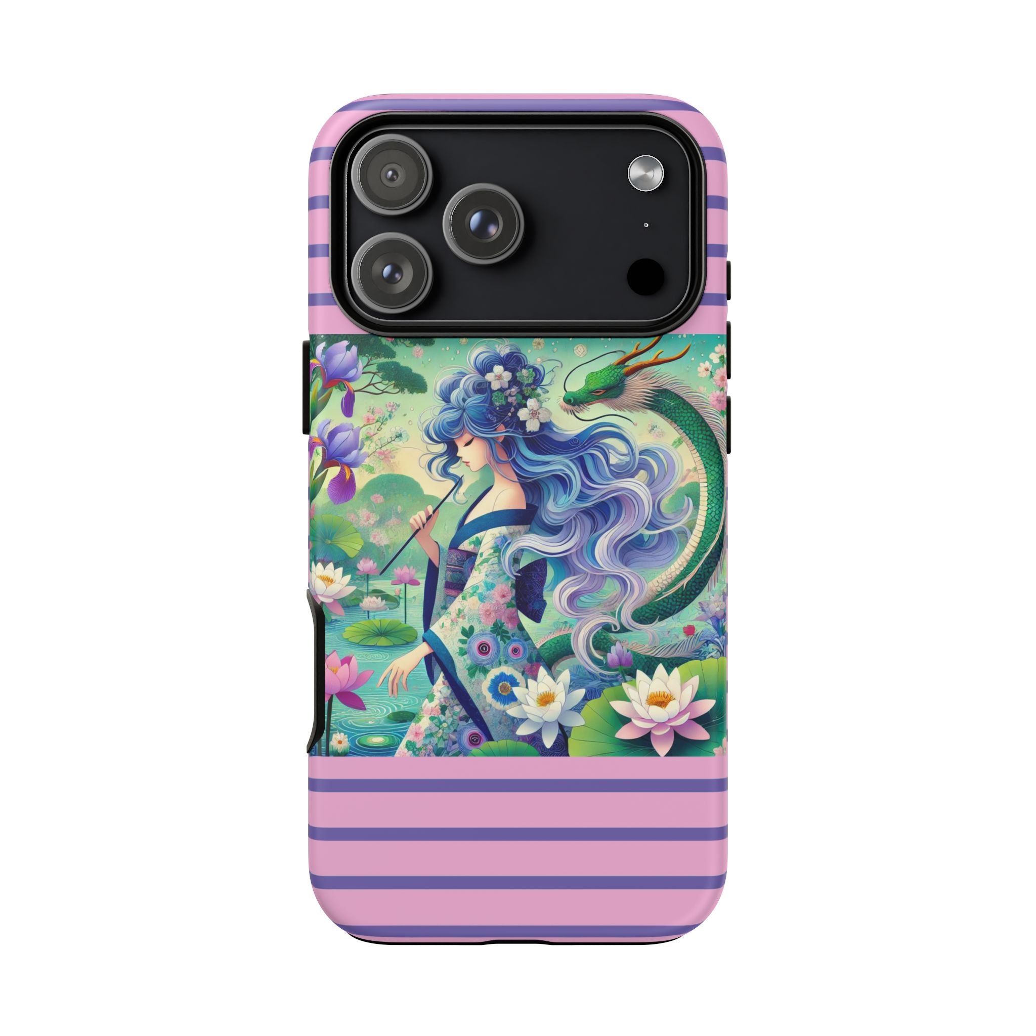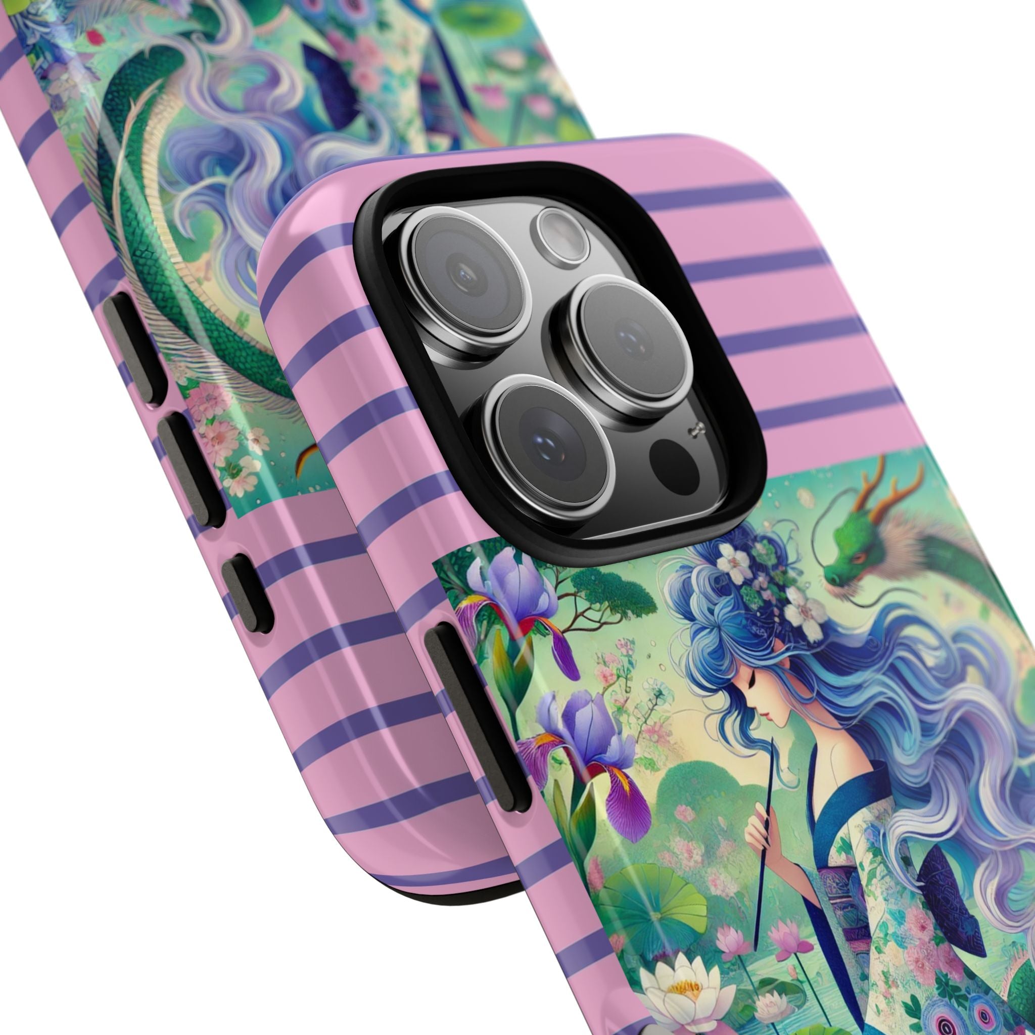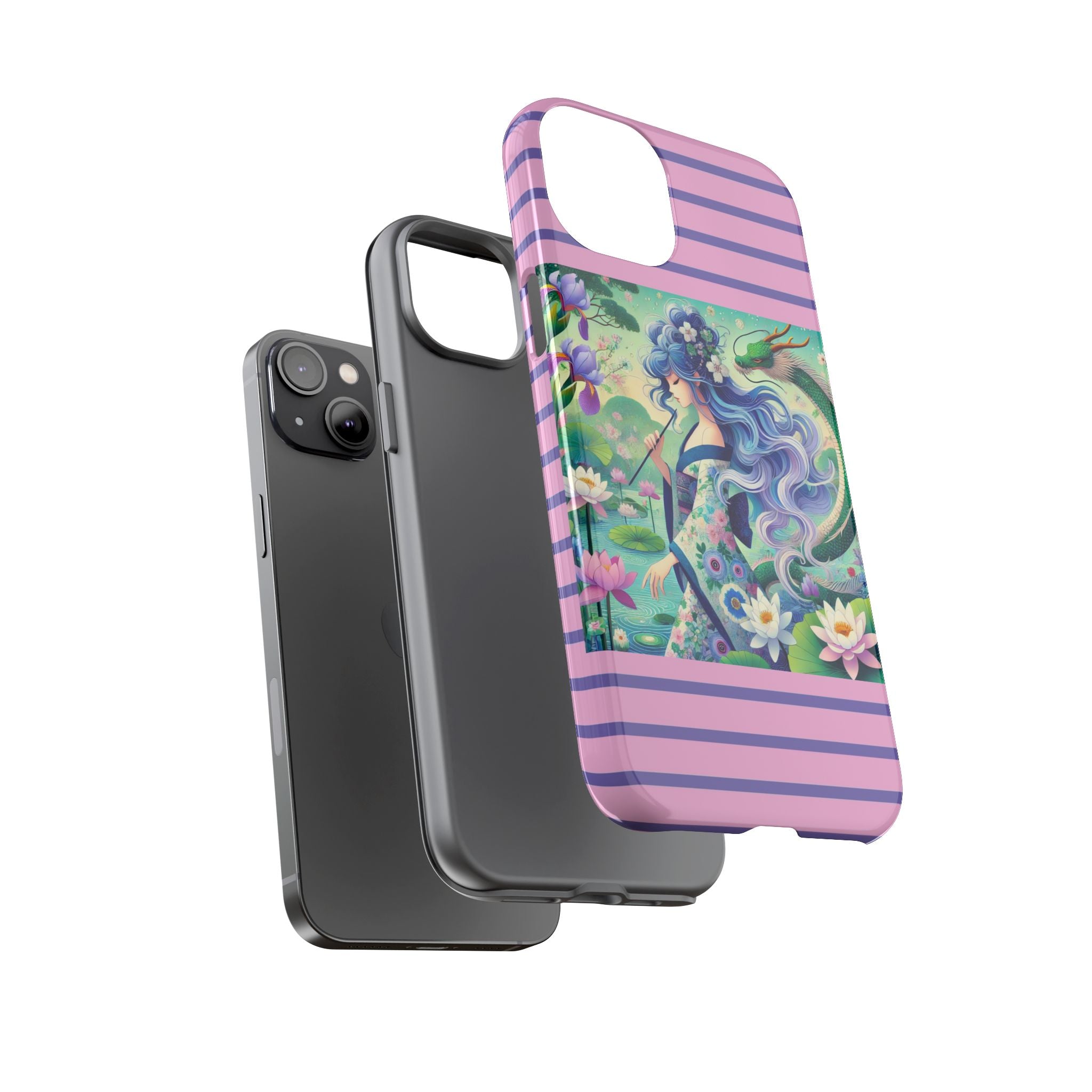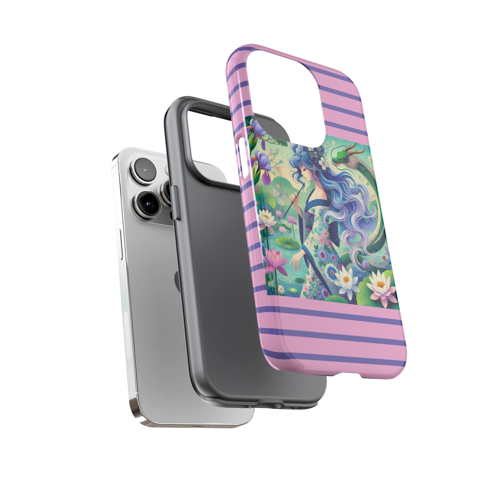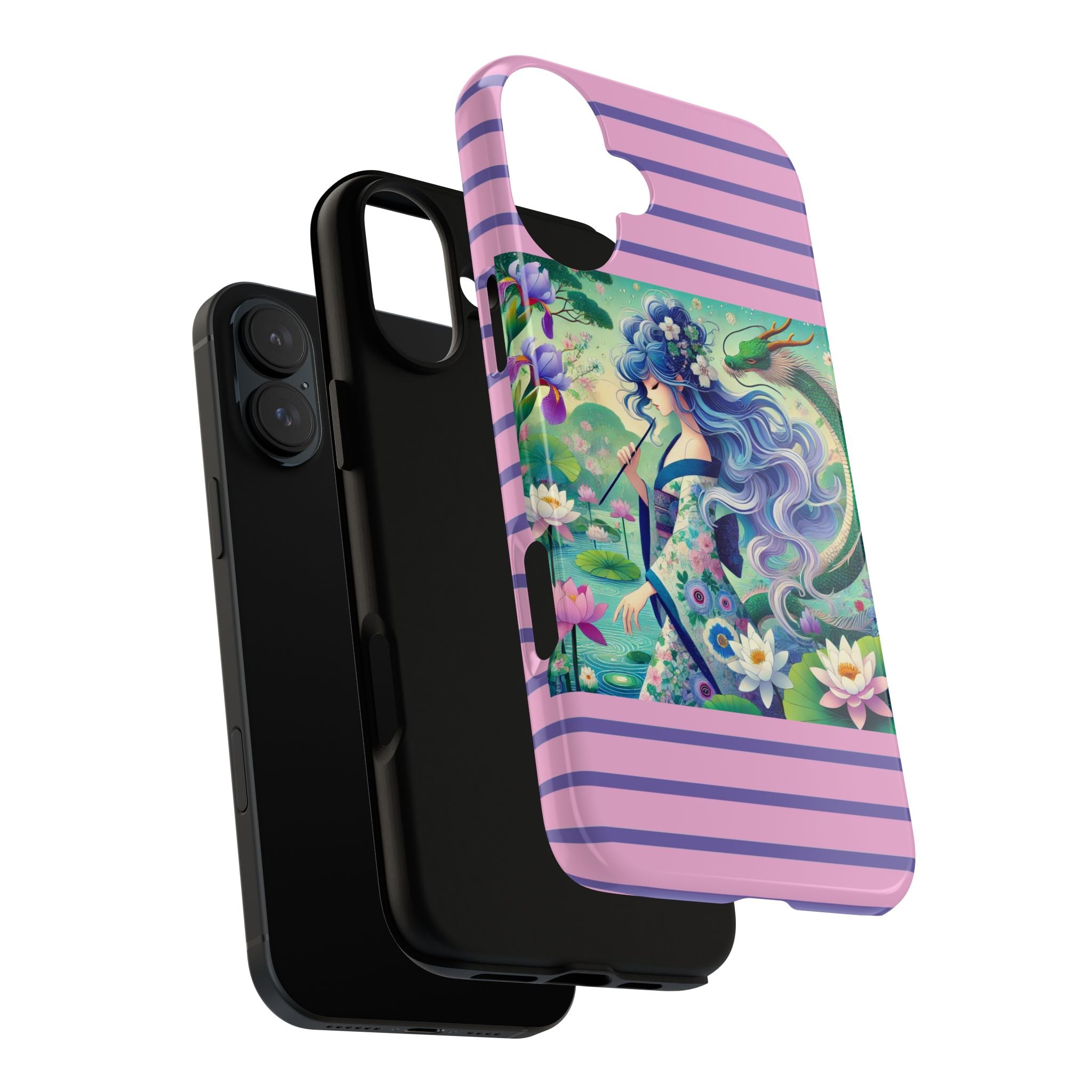 Bring a touch of magic and elegance to your everyday device with our Fairy of the Koi Pond Phone Cases. Designed for iPhone, Samsung Galaxy, and Google Pixel devices, each case combines premium-quality craftsmanship with enchanting artistic beauty. The design features a modern fairy with flowing blue hair standing gracefully beside a koi pond filled with irises and water lilies. A jade-green dragon curls nearby, adding a mystical presence that deepens the dreamlike atmosphere. Together, these elements create a serene and captivating composition that feels both ethereal and empowering.
