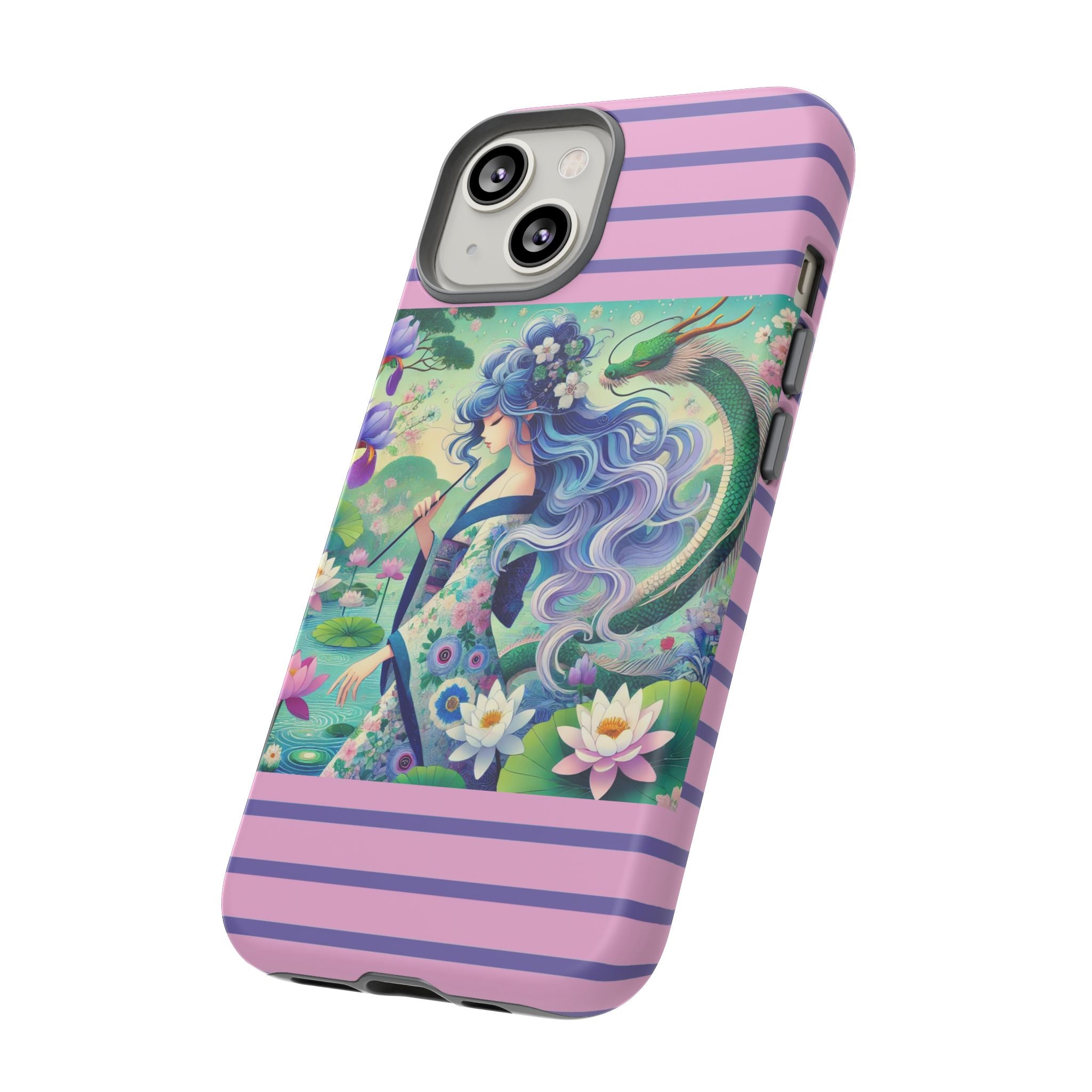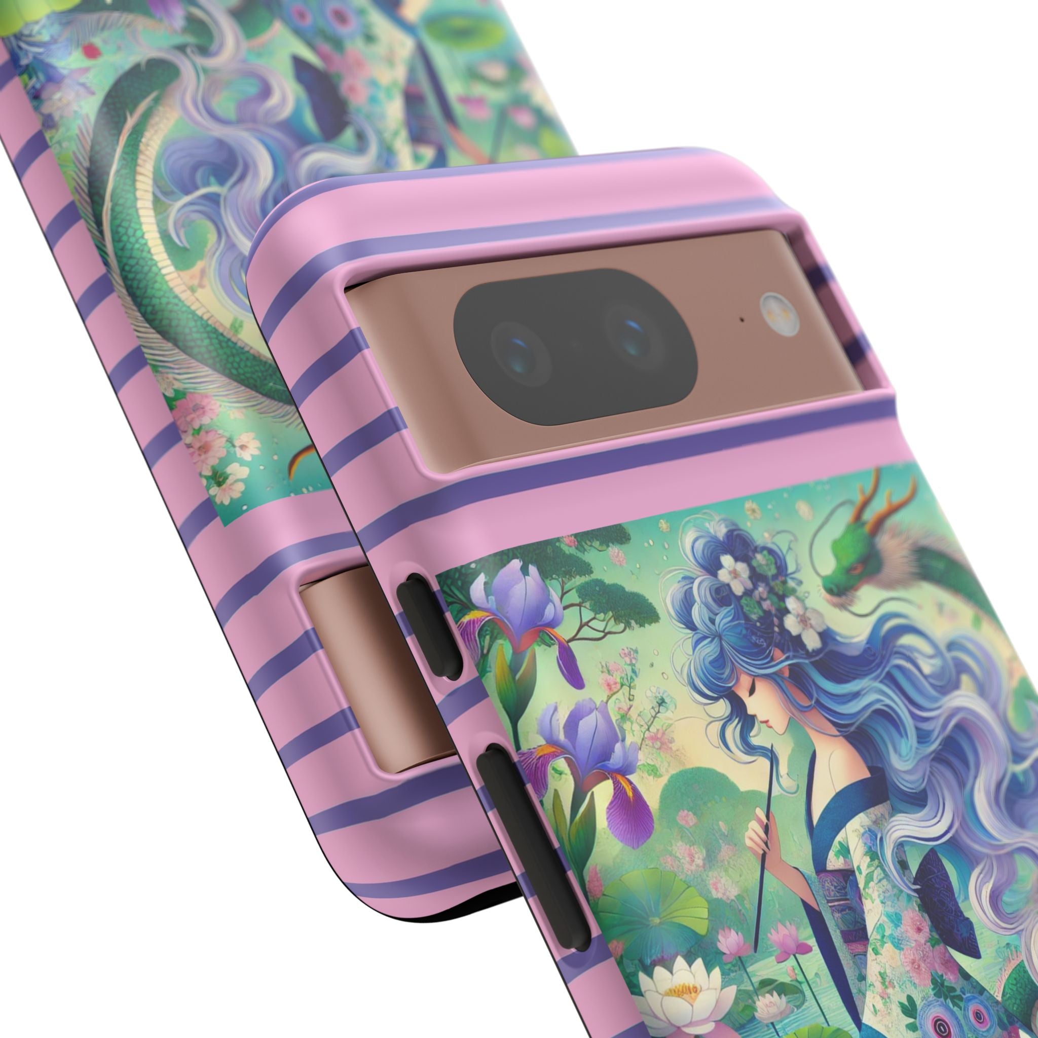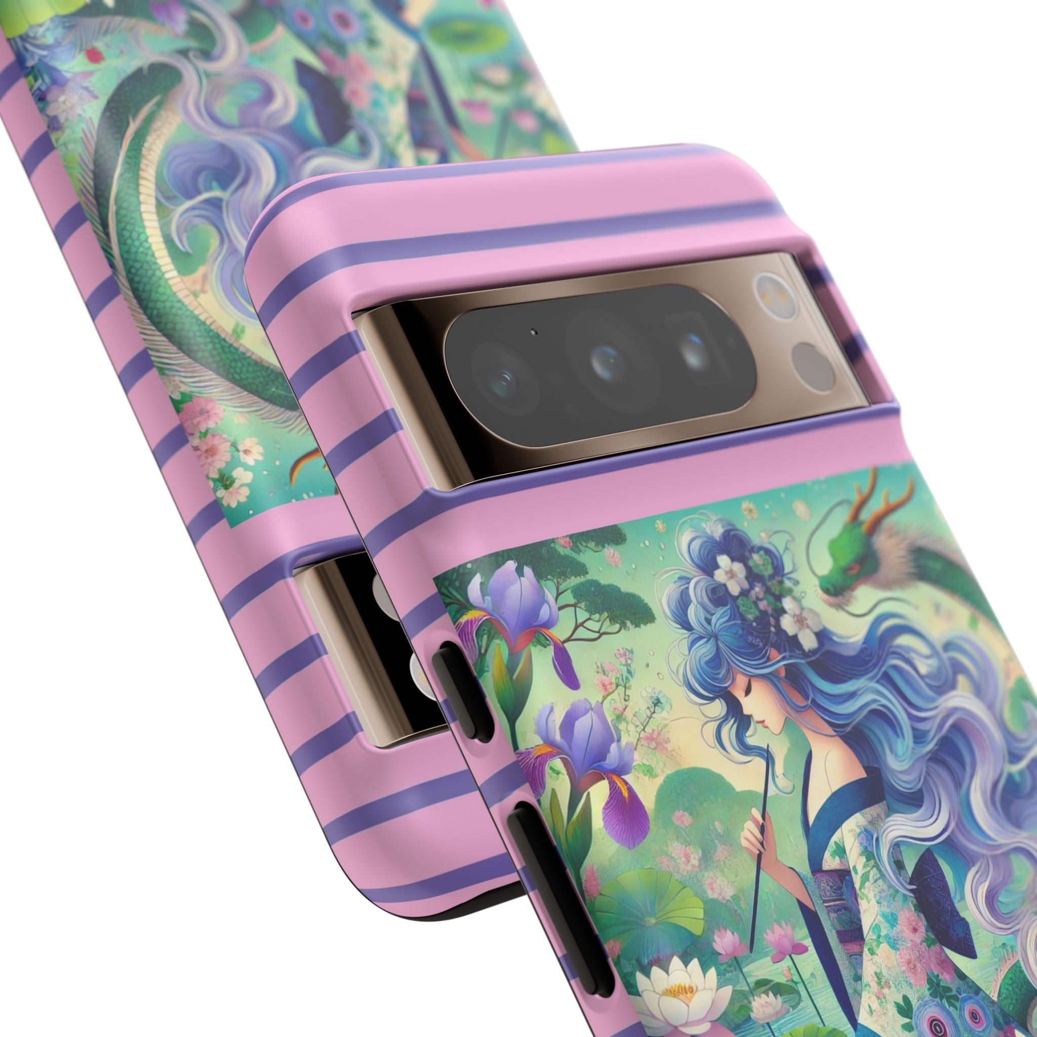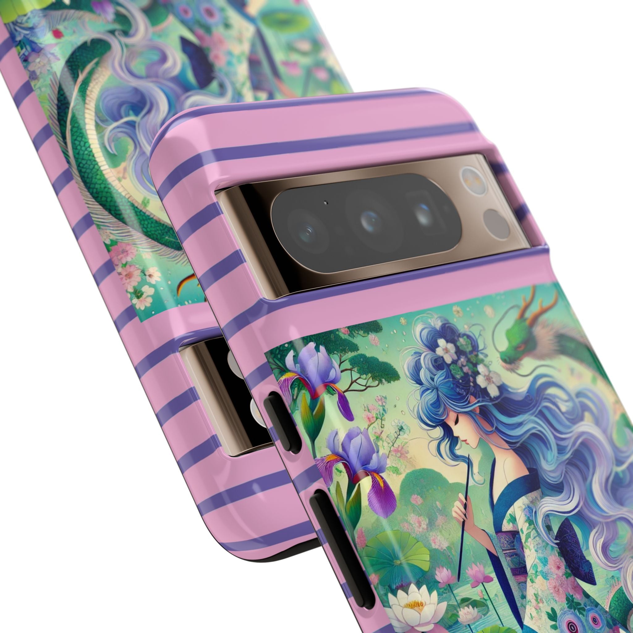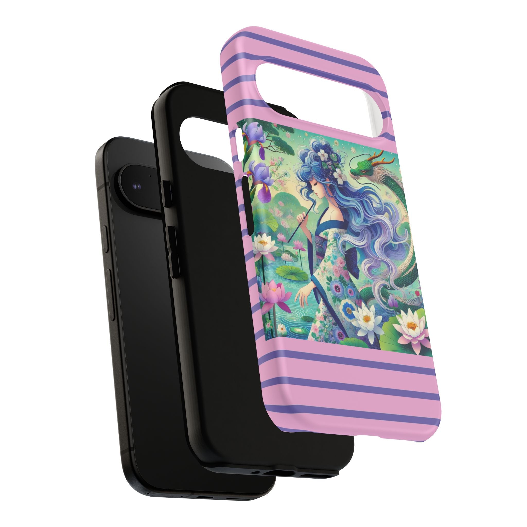 Bring a touch of magic and elegance to your everyday device with our Fairy of the Koi Pond Phone Cases. Designed for iPhone, Samsung Galaxy, and Google Pixel devices, each case combines premium-quality craftsmanship with enchanting artistic beauty. The design features a modern fairy with flowing blue hair standing gracefully beside a koi pond filled with irises and water lilies. A jade-green dragon curls nearby, adding a mystical presence that deepens the dreamlike atmosphere. Together, these elements create a serene and captivating composition that feels both ethereal and empowering.