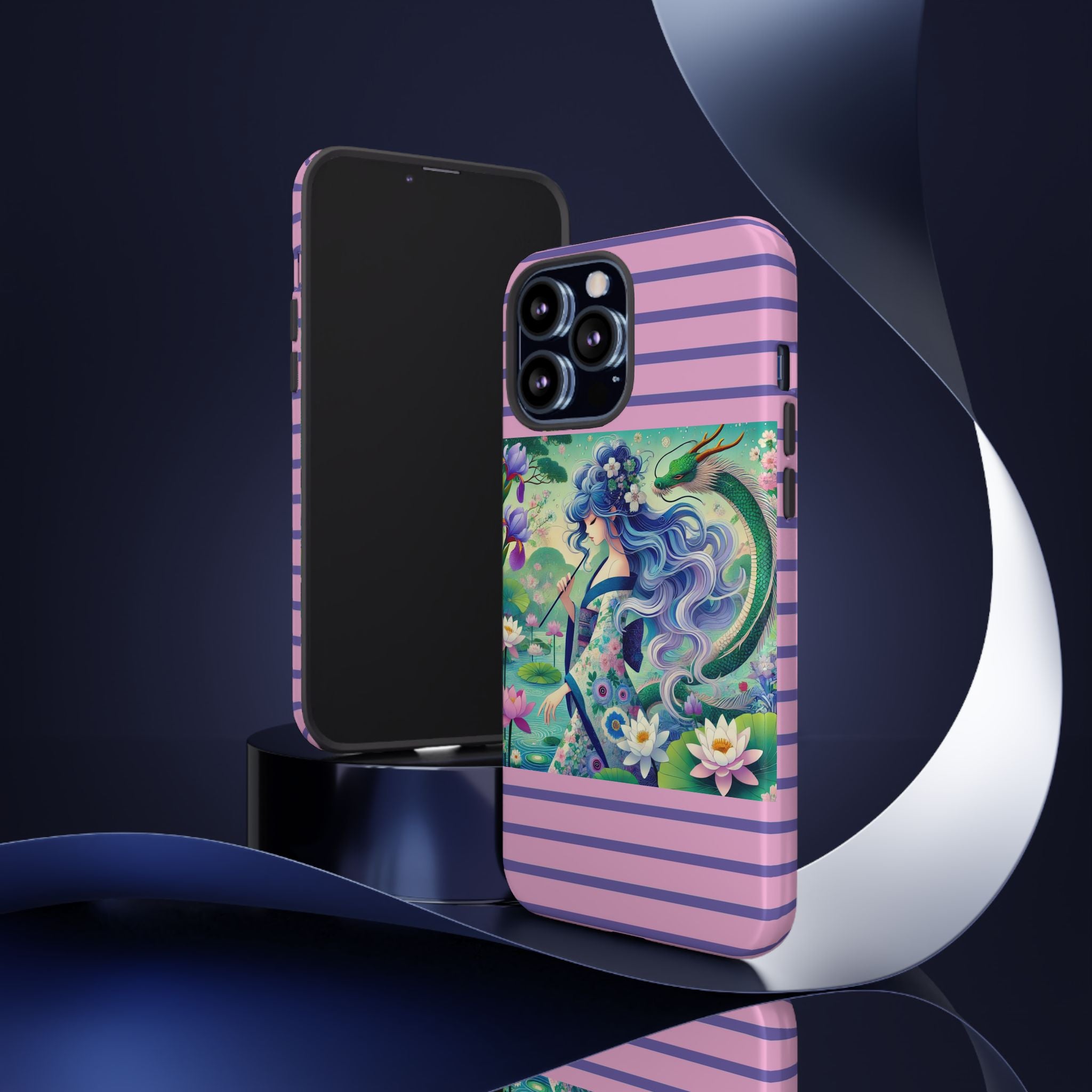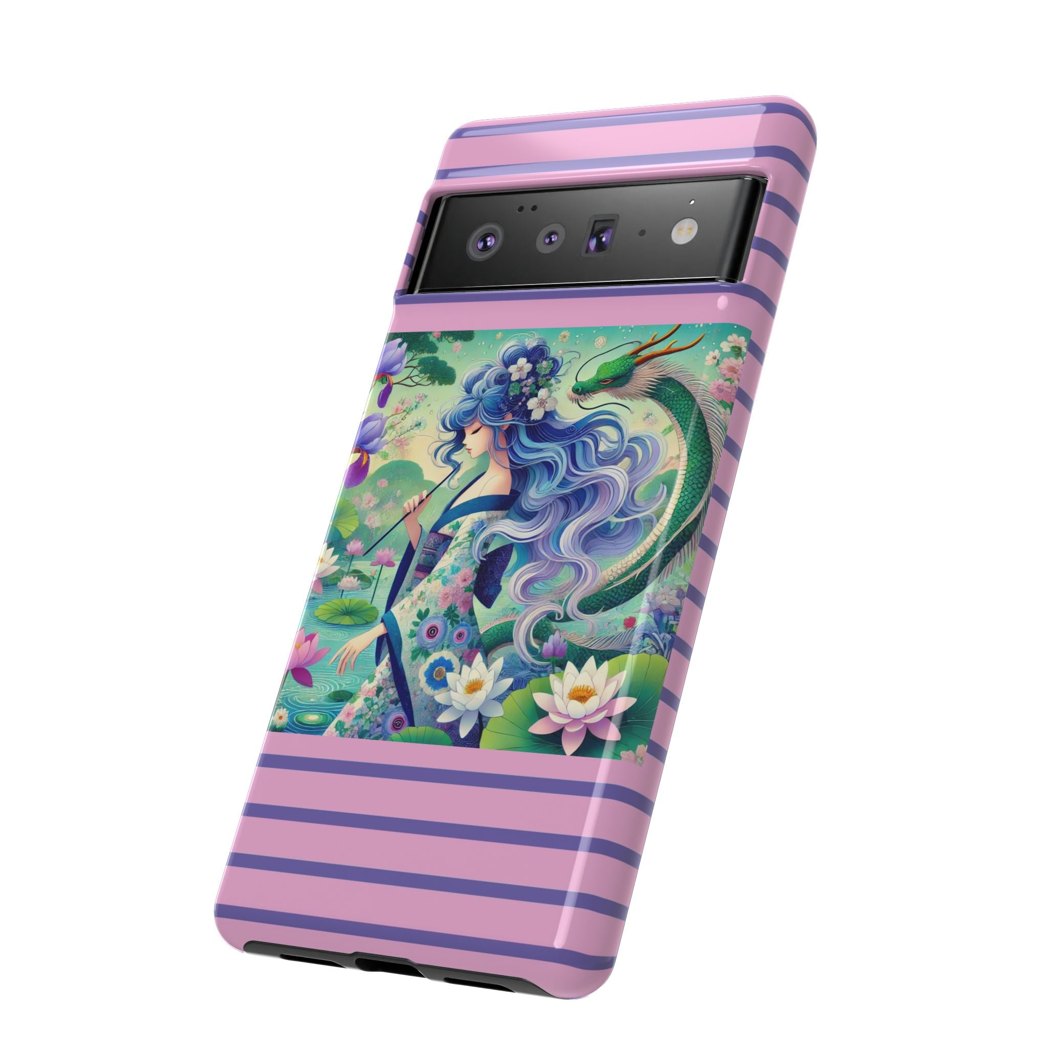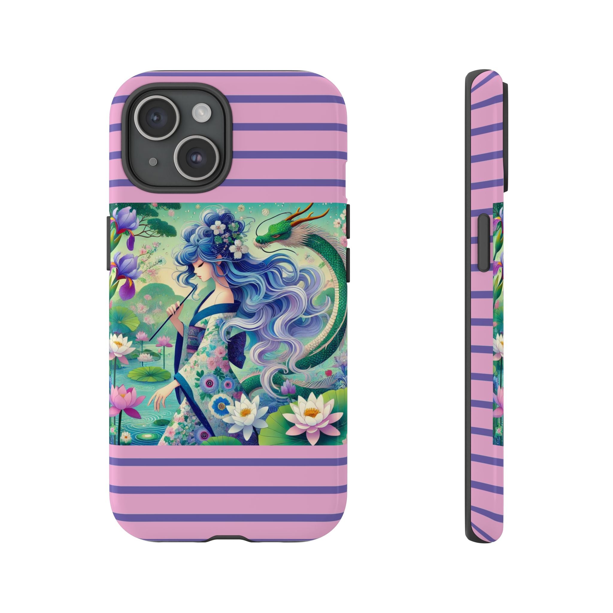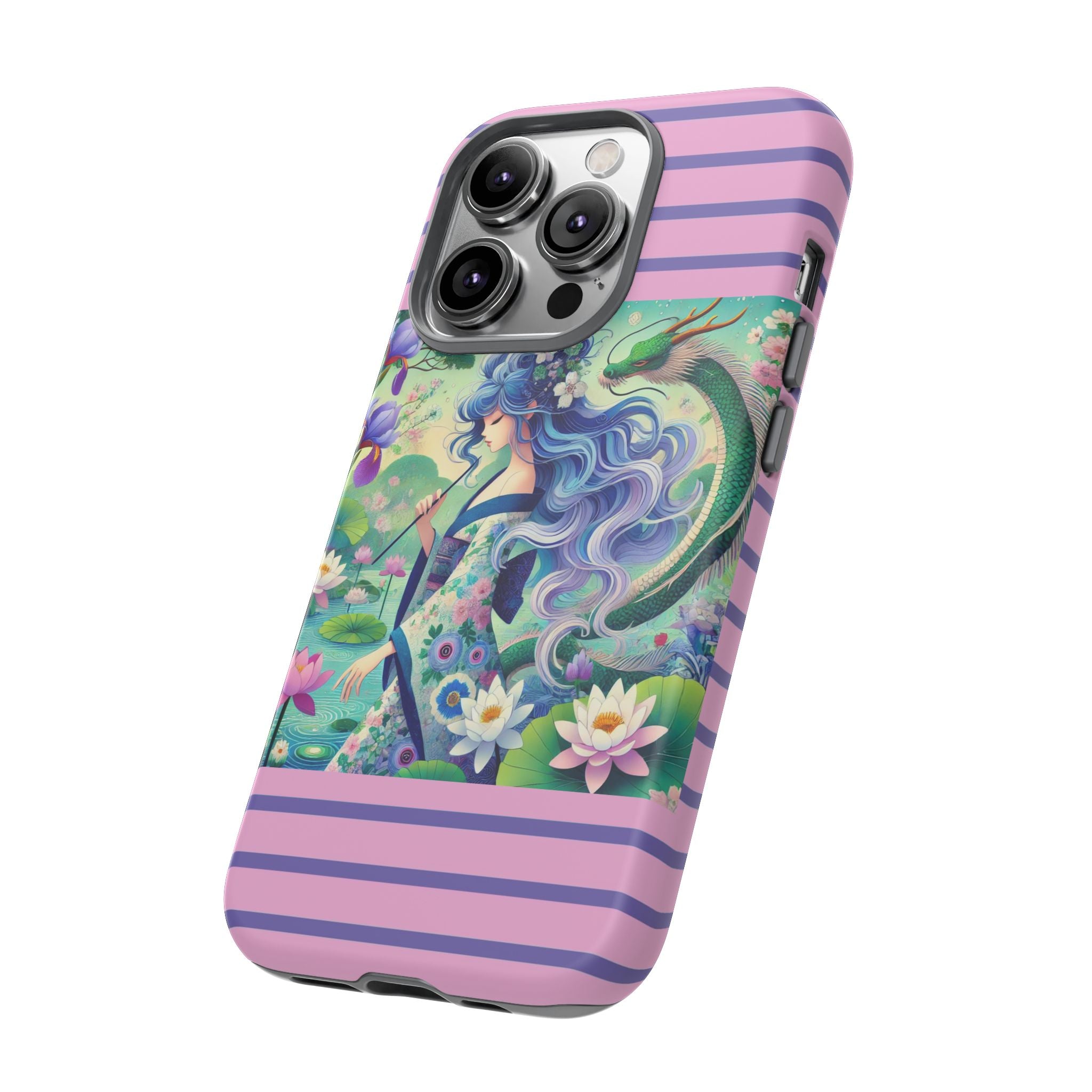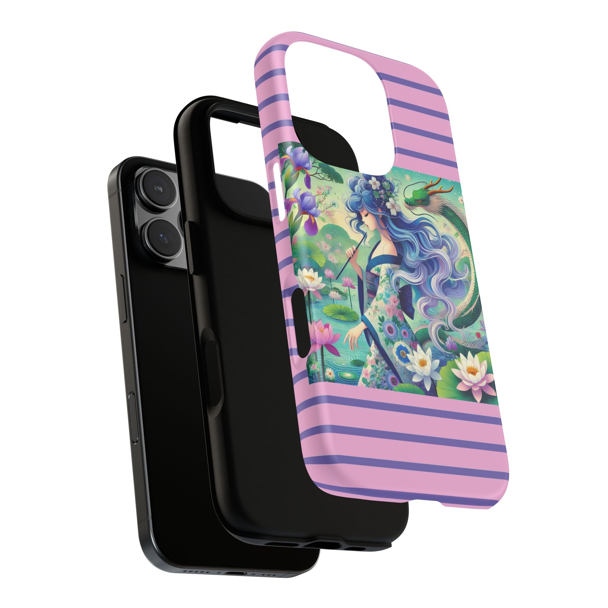 Bring a touch of magic and elegance to your everyday device with our Fairy of the Koi Pond Phone Cases. Designed for iPhone, Samsung Galaxy, and Google Pixel devices, each case combines premium-quality craftsmanship with enchanting artistic beauty. The design features a modern fairy with flowing blue hair standing gracefully beside a koi pond filled with irises and water lilies. A jade-green dragon curls nearby, adding a mystical presence that deepens the dreamlike atmosphere. Together, these elements create a serene and captivating composition that feels both ethereal and empowering.