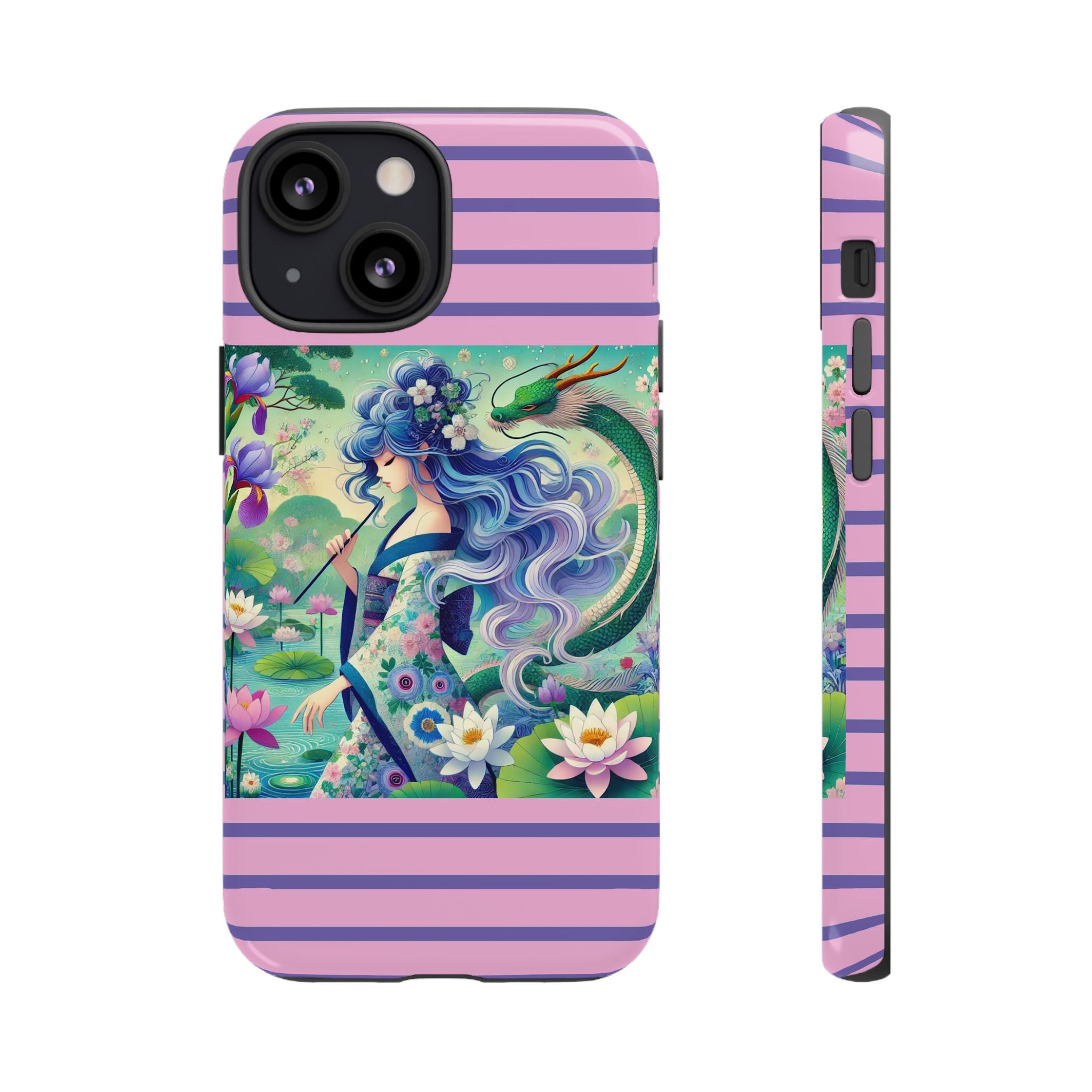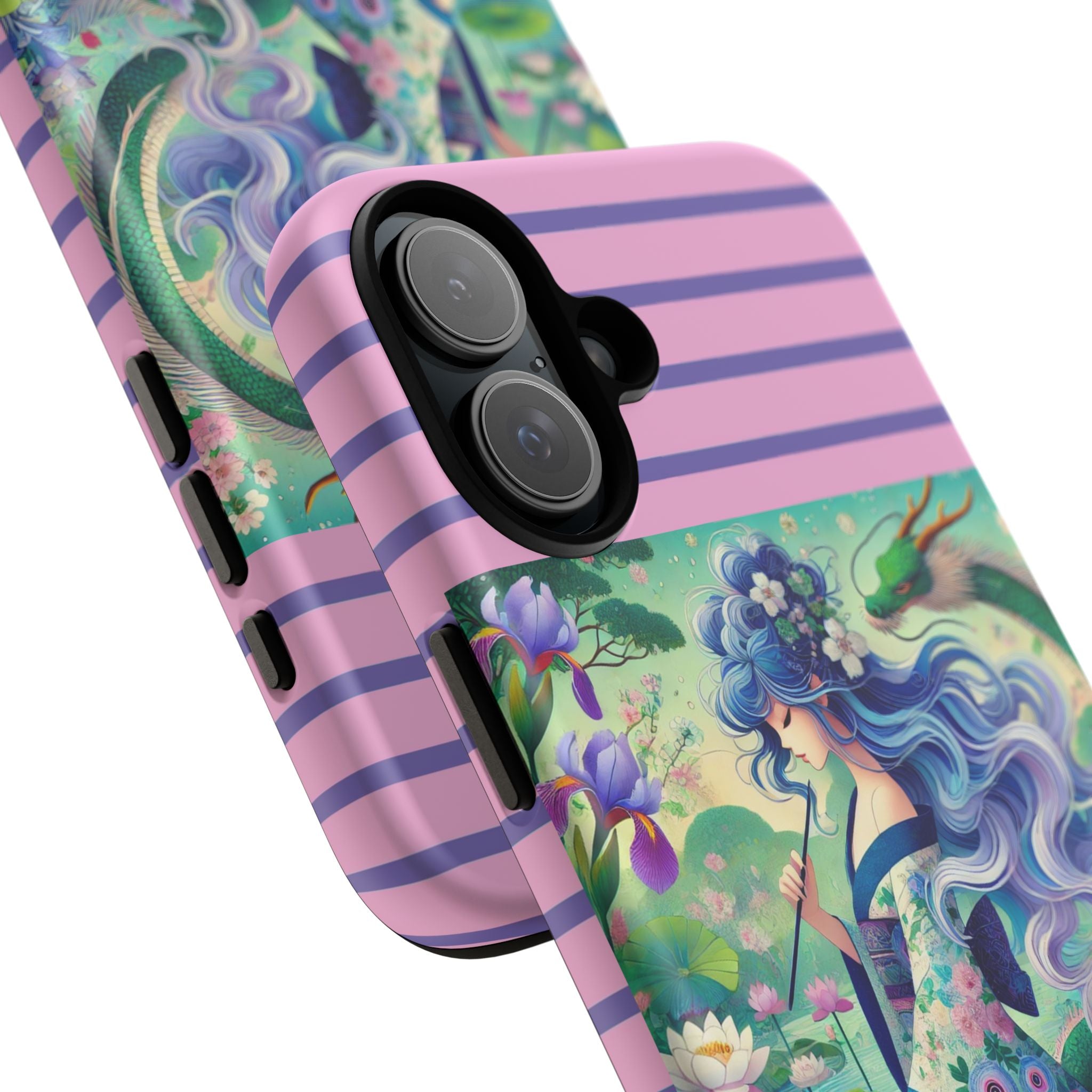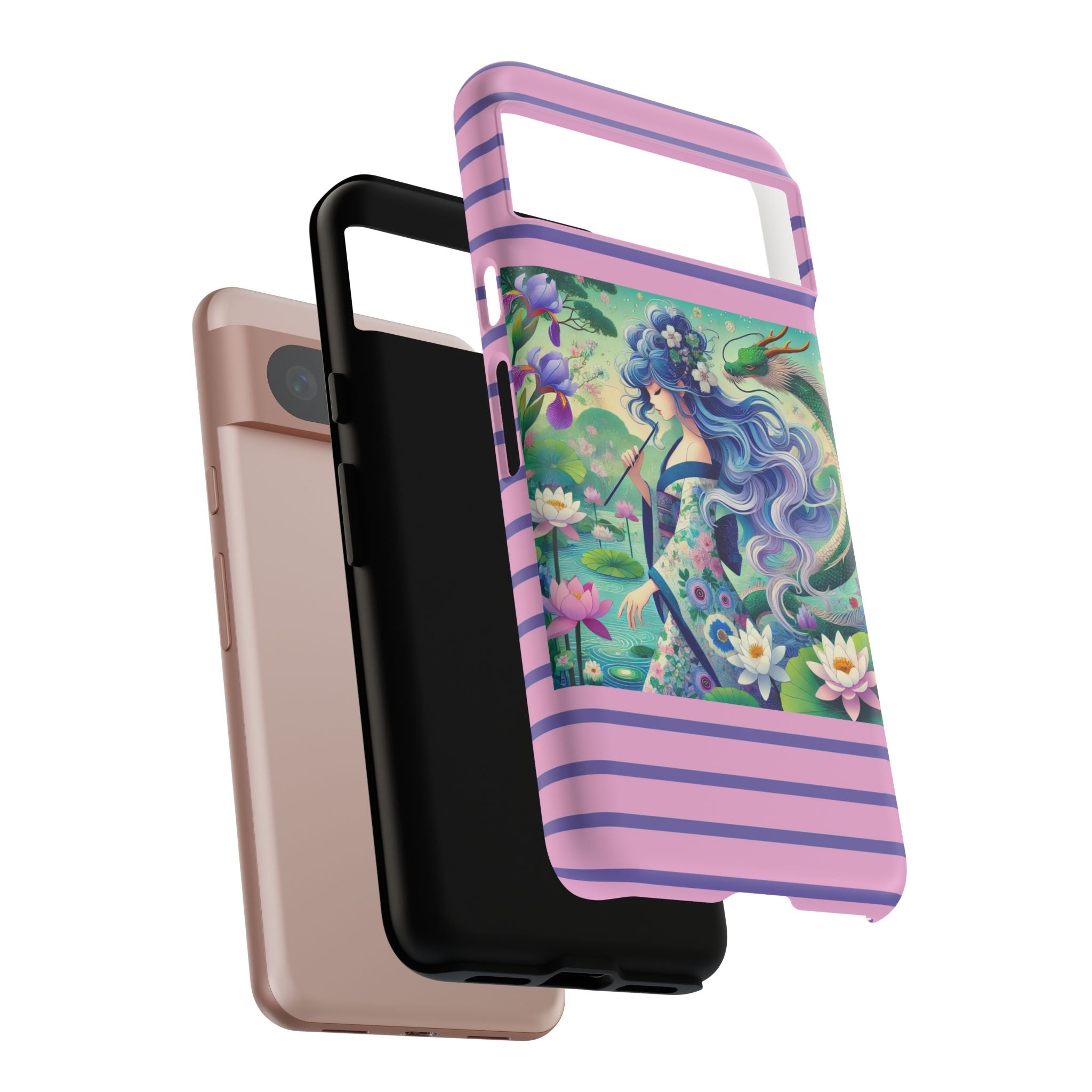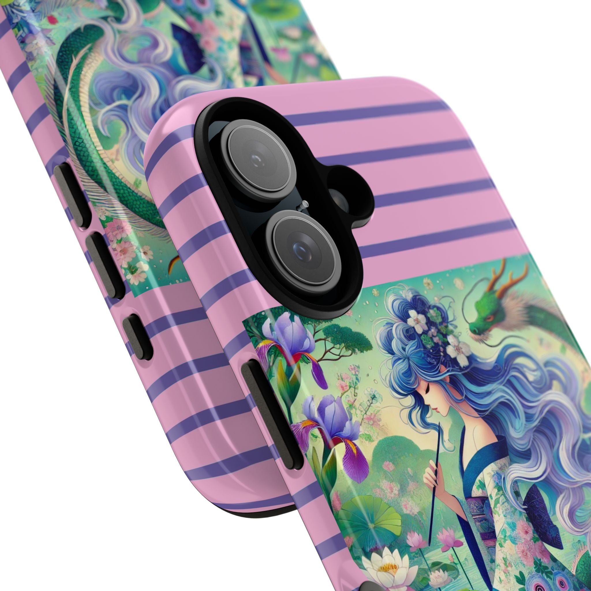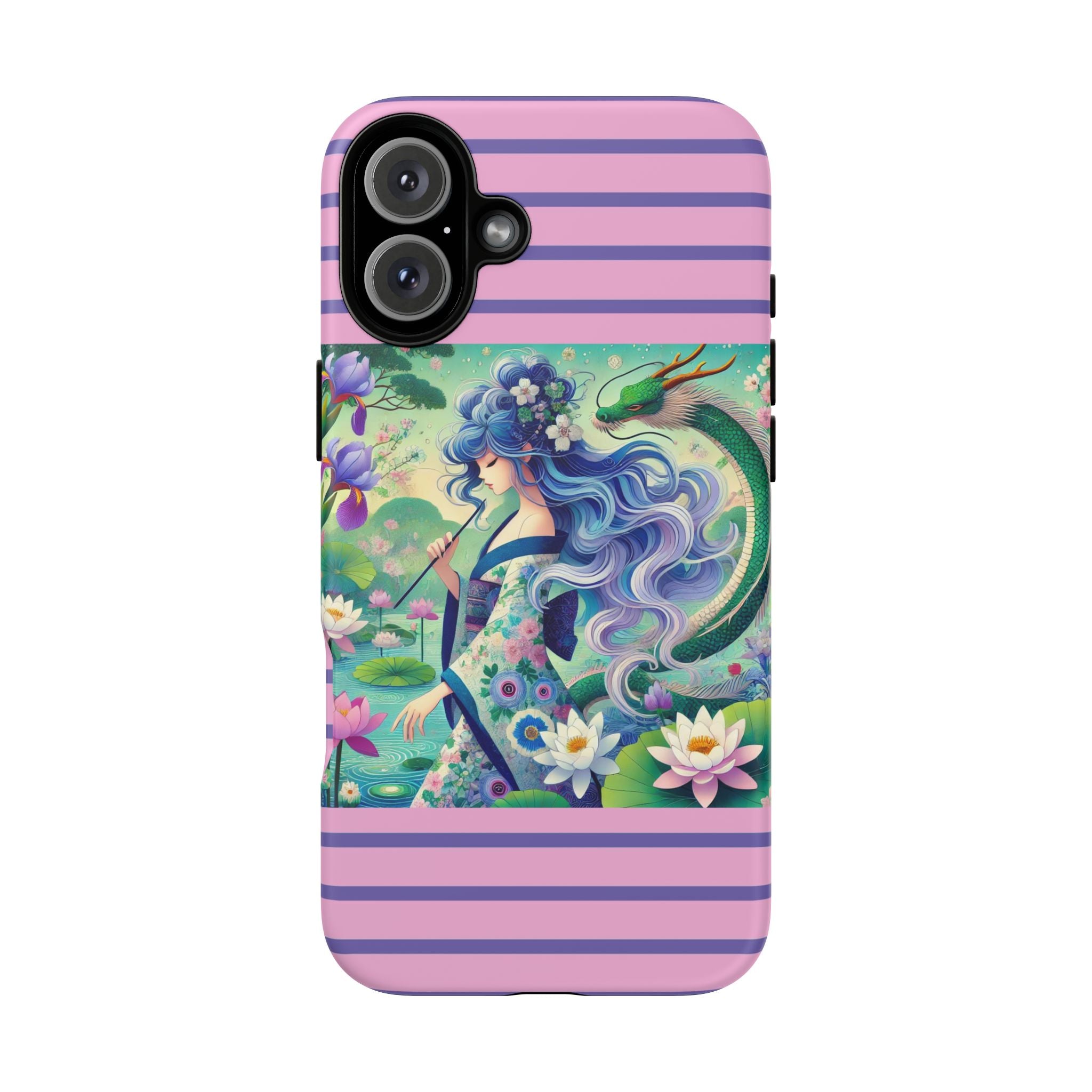 Bring a touch of magic and elegance to your everyday device with our Fairy of the Koi Pond Phone Cases. Designed for iPhone, Samsung Galaxy, and Google Pixel devices, each case combines premium-quality craftsmanship with enchanting artistic beauty. The design features a modern fairy with flowing blue hair standing gracefully beside a koi pond filled with irises and water lilies. A jade-green dragon curls nearby, adding a mystical presence that deepens the dreamlike atmosphere. Together, these elements create a serene and captivating composition that feels both ethereal and empowering.