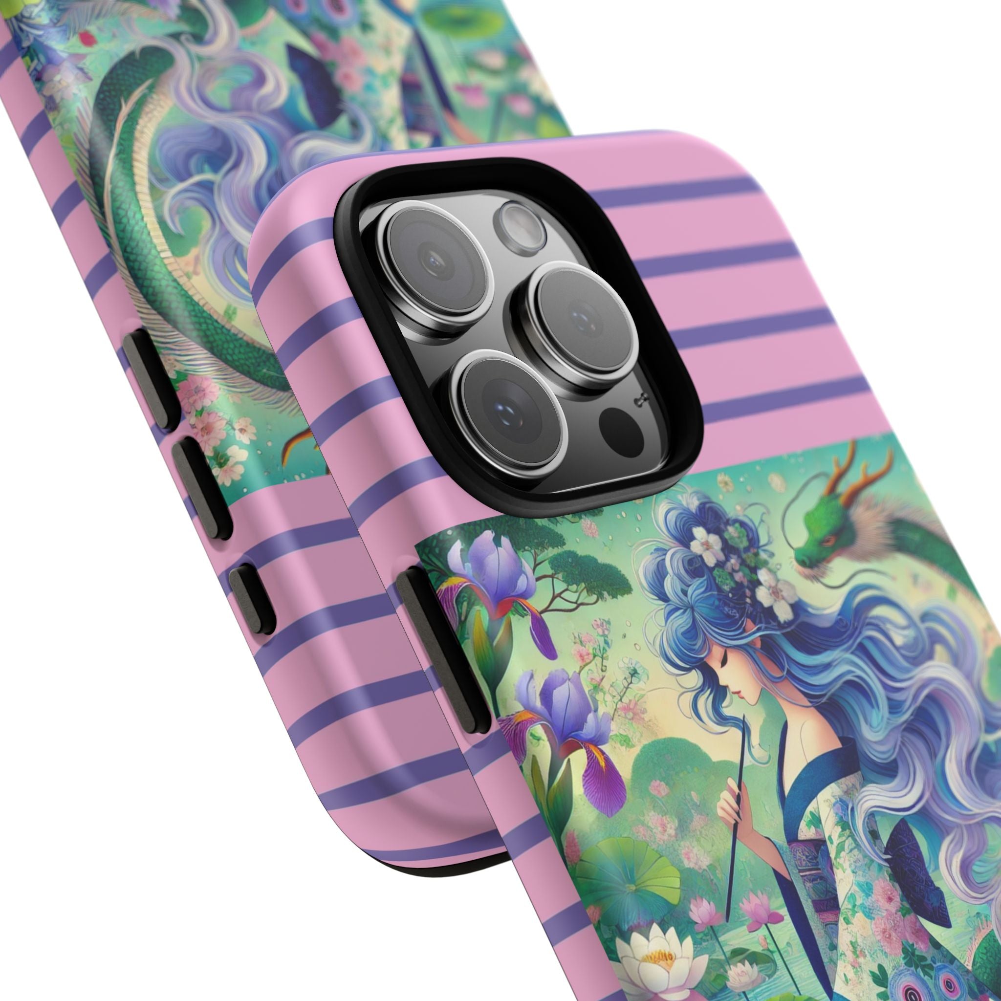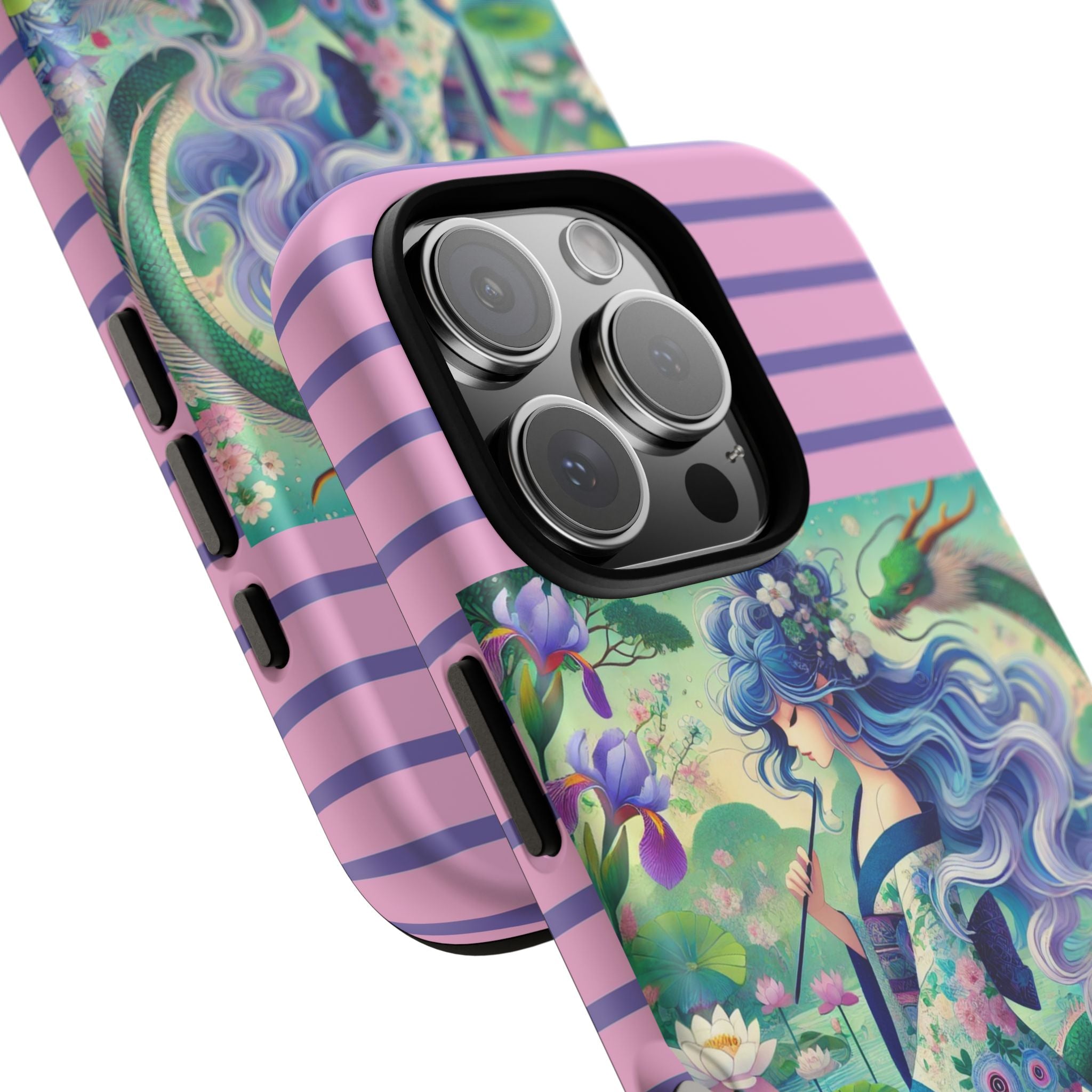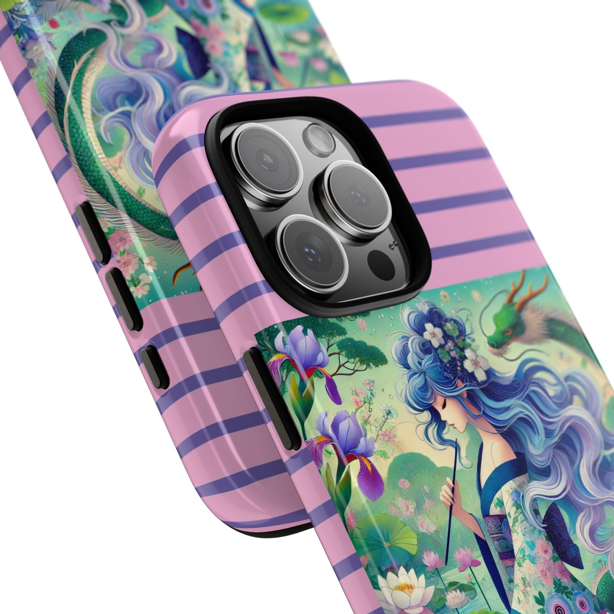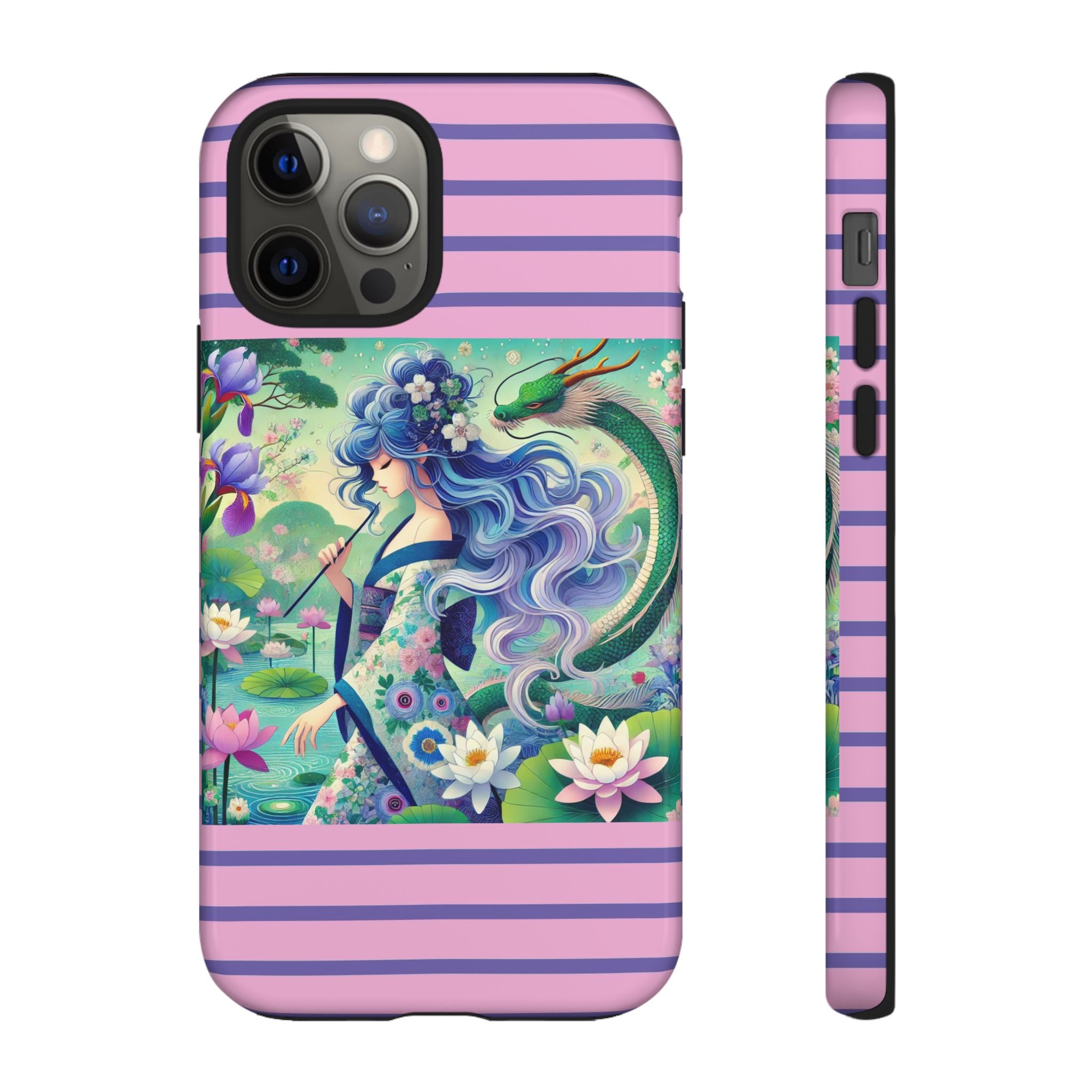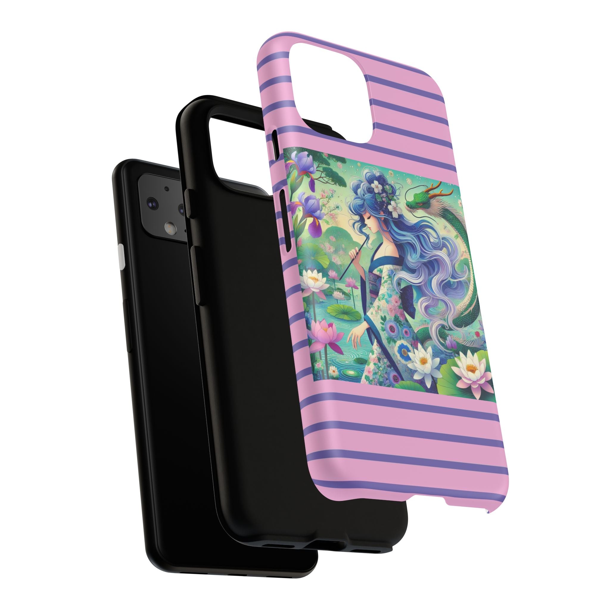 Bring a touch of magic and elegance to your everyday device with our Fairy of the Koi Pond Phone Cases. Designed for iPhone, Samsung Galaxy, and Google Pixel devices, each case combines premium-quality craftsmanship with enchanting artistic beauty. The design features a modern fairy with flowing blue hair standing gracefully beside a koi pond filled with irises and water lilies. A jade-green dragon curls nearby, adding a mystical presence that deepens the dreamlike atmosphere. Together, these elements create a serene and captivating composition that feels both ethereal and empowering.