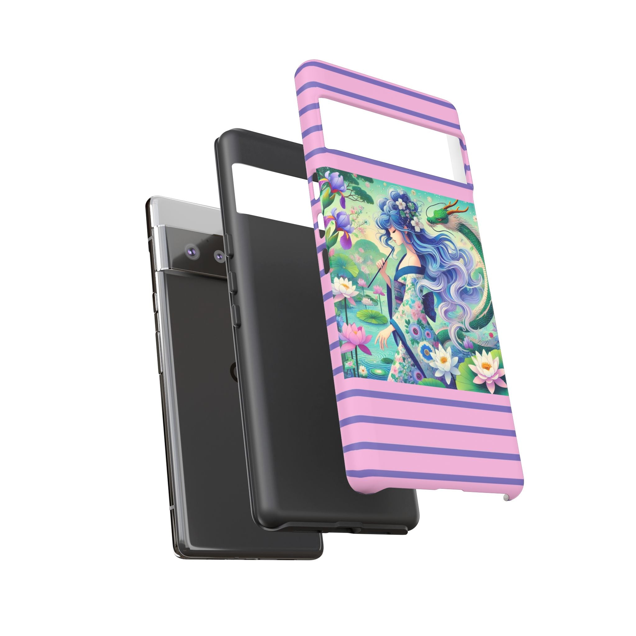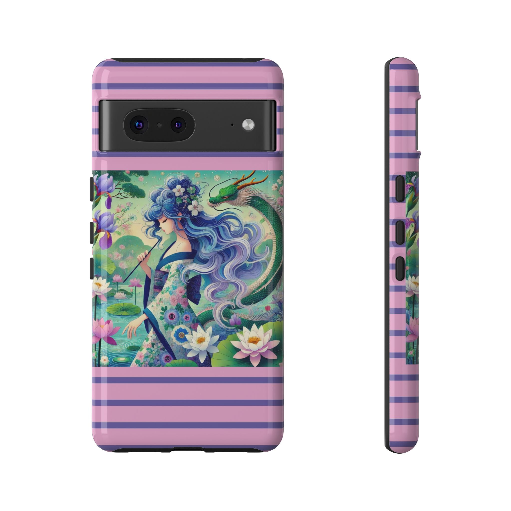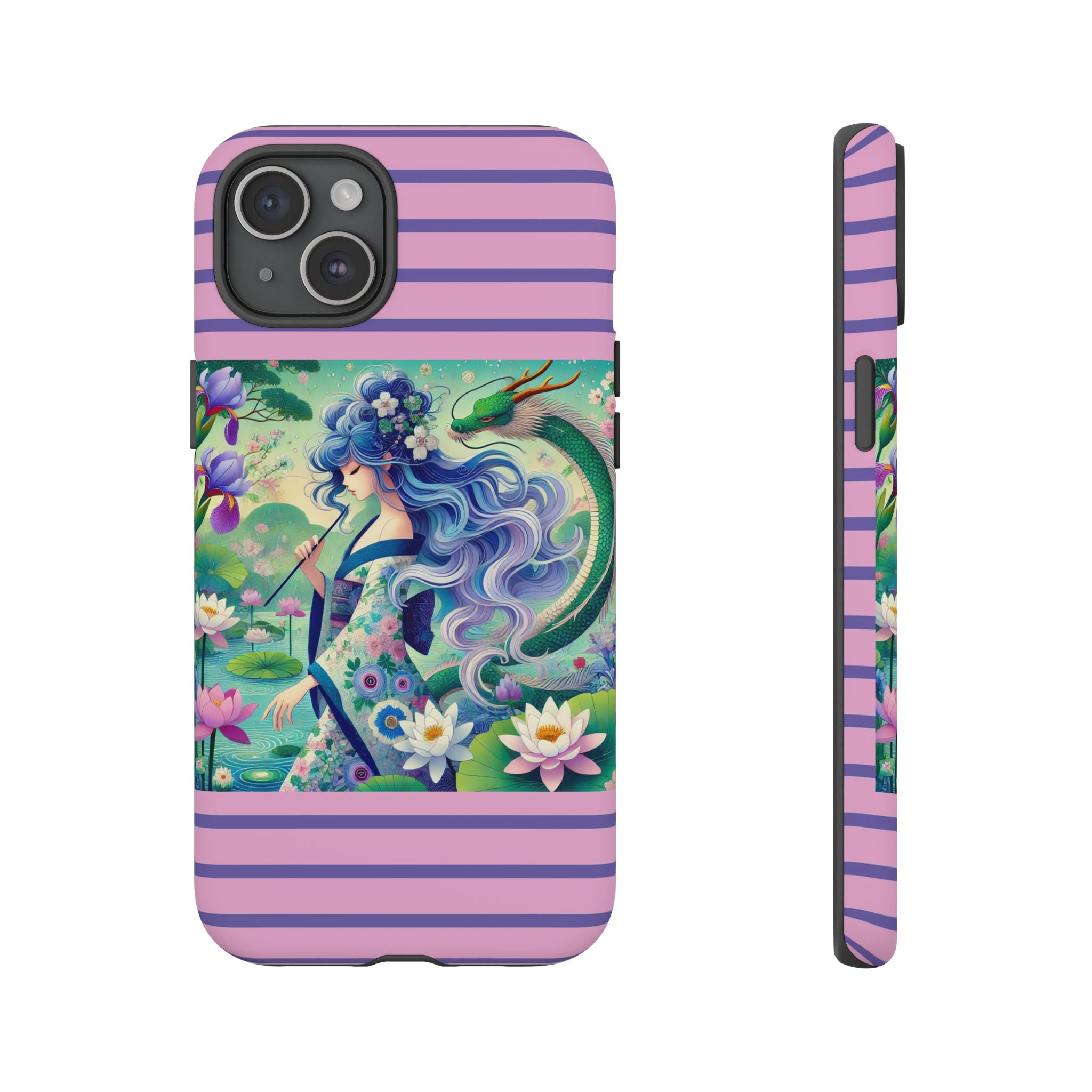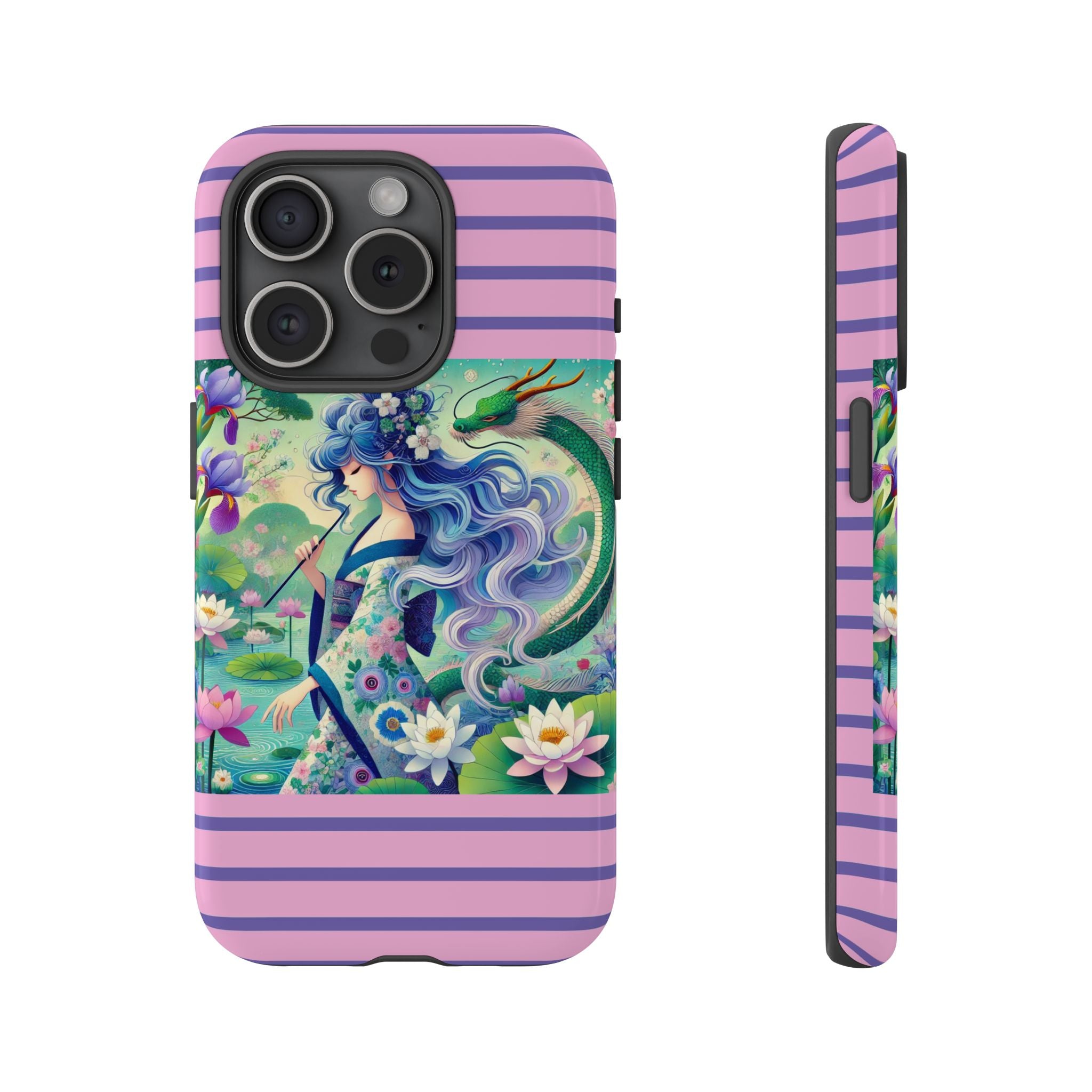 Bring a touch of magic and elegance to your everyday device with our Fairy of the Koi Pond Phone Cases. Designed for iPhone, Samsung Galaxy, and Google Pixel devices, each case combines premium-quality craftsmanship with enchanting artistic beauty. The design features a modern fairy with flowing blue hair standing gracefully beside a koi pond filled with irises and water lilies. A jade-green dragon curls nearby, adding a mystical presence that deepens the dreamlike atmosphere. Together, these elements create a serene and captivating composition that feels both ethereal and empowering.