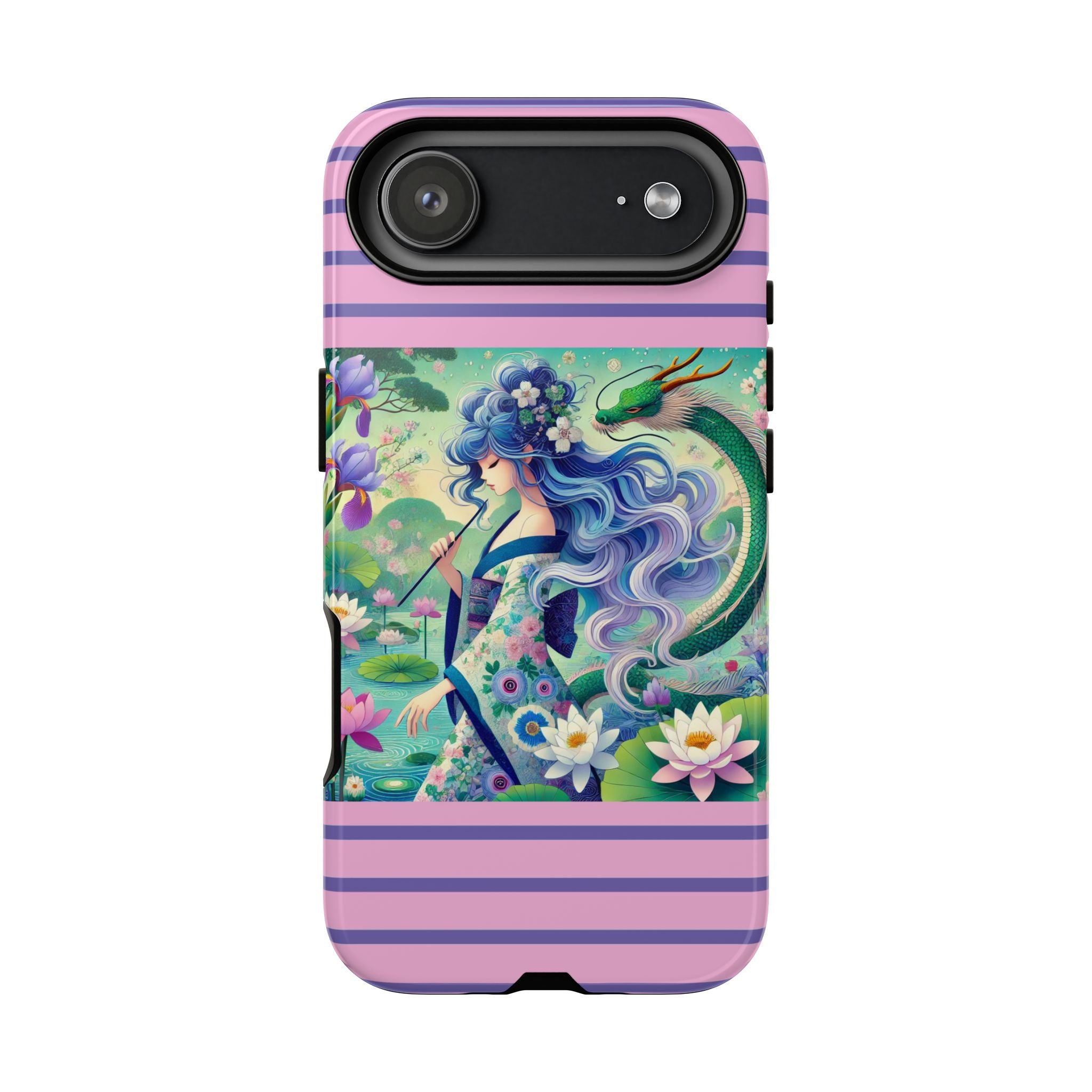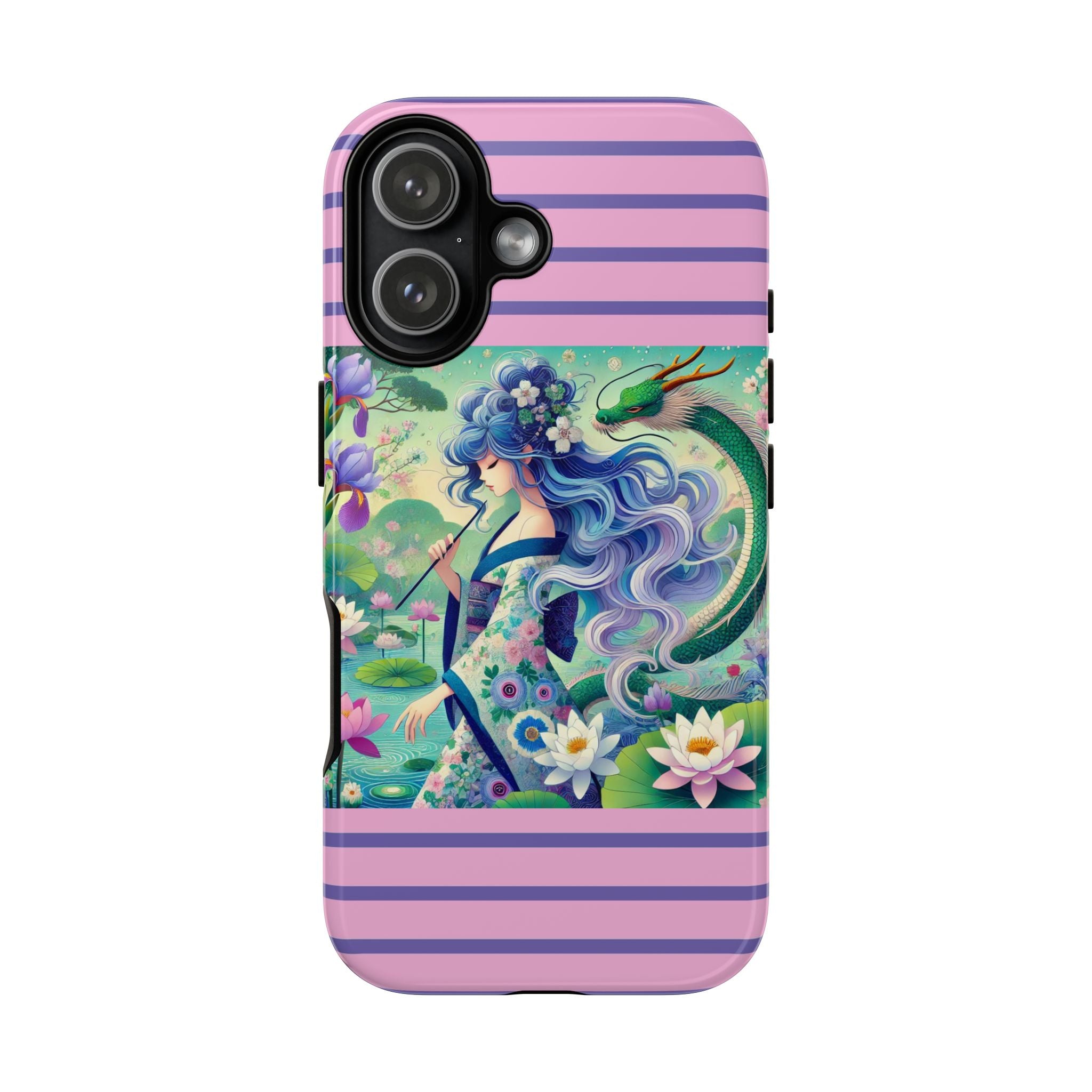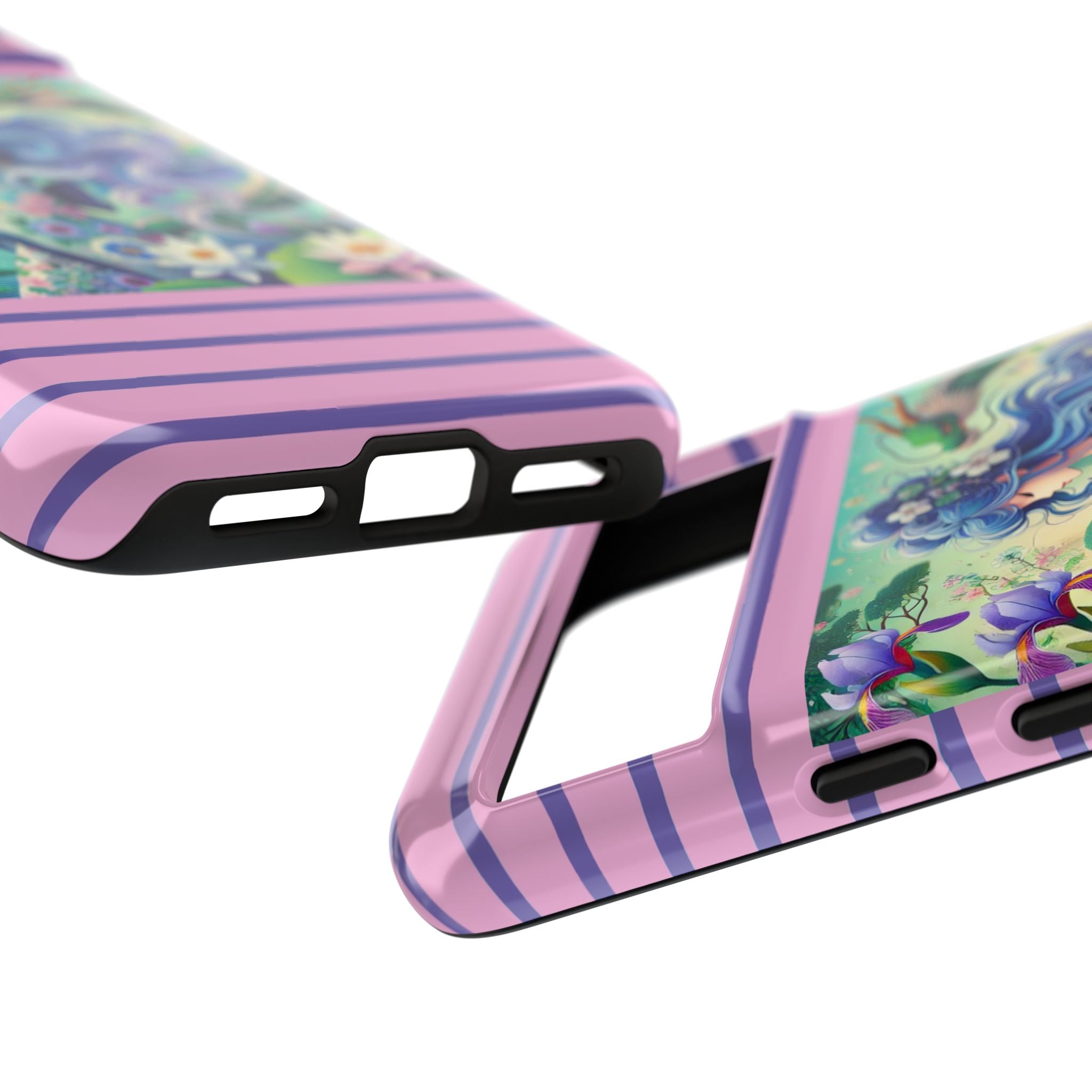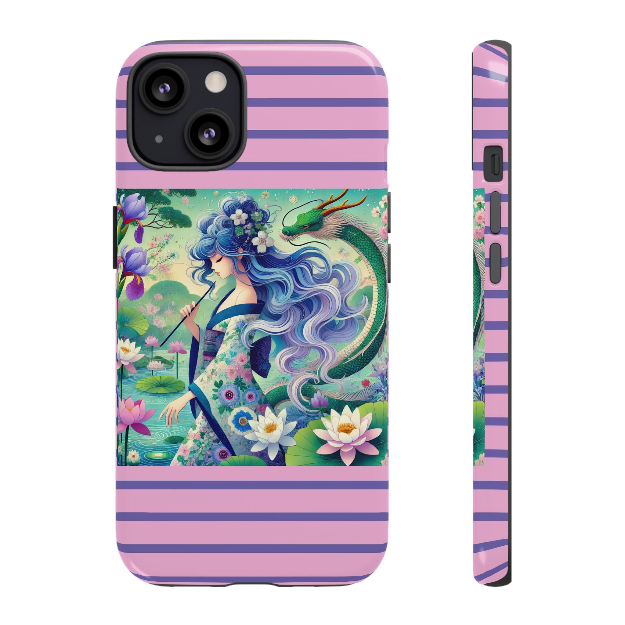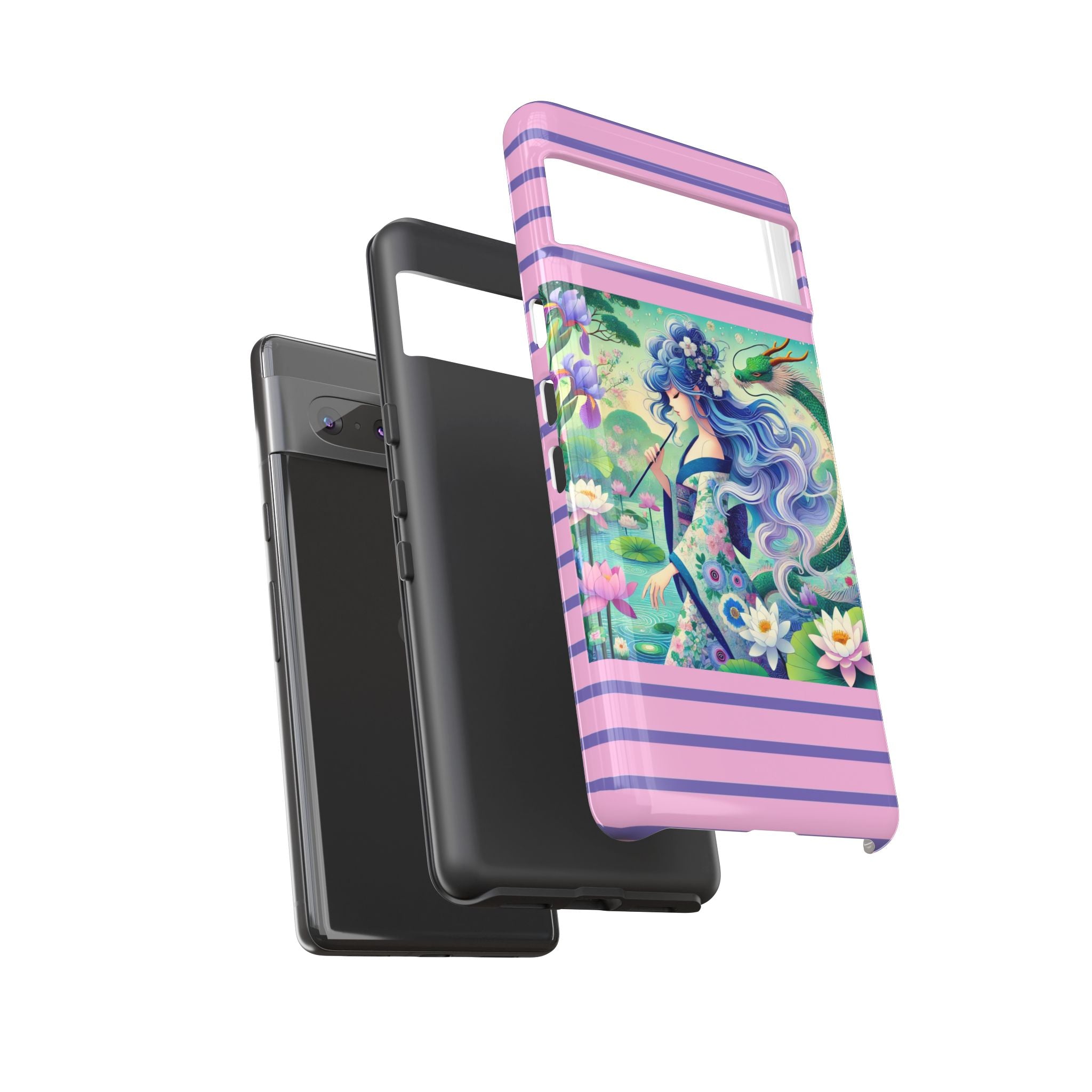 Bring a touch of magic and elegance to your everyday device with our Fairy of the Koi Pond Phone Cases. Designed for iPhone, Samsung Galaxy, and Google Pixel devices, each case combines premium-quality craftsmanship with enchanting artistic beauty. The design features a modern fairy with flowing blue hair standing gracefully beside a koi pond filled with irises and water lilies. A jade-green dragon curls nearby, adding a mystical presence that deepens the dreamlike atmosphere. Together, these elements create a serene and captivating composition that feels both ethereal and empowering.