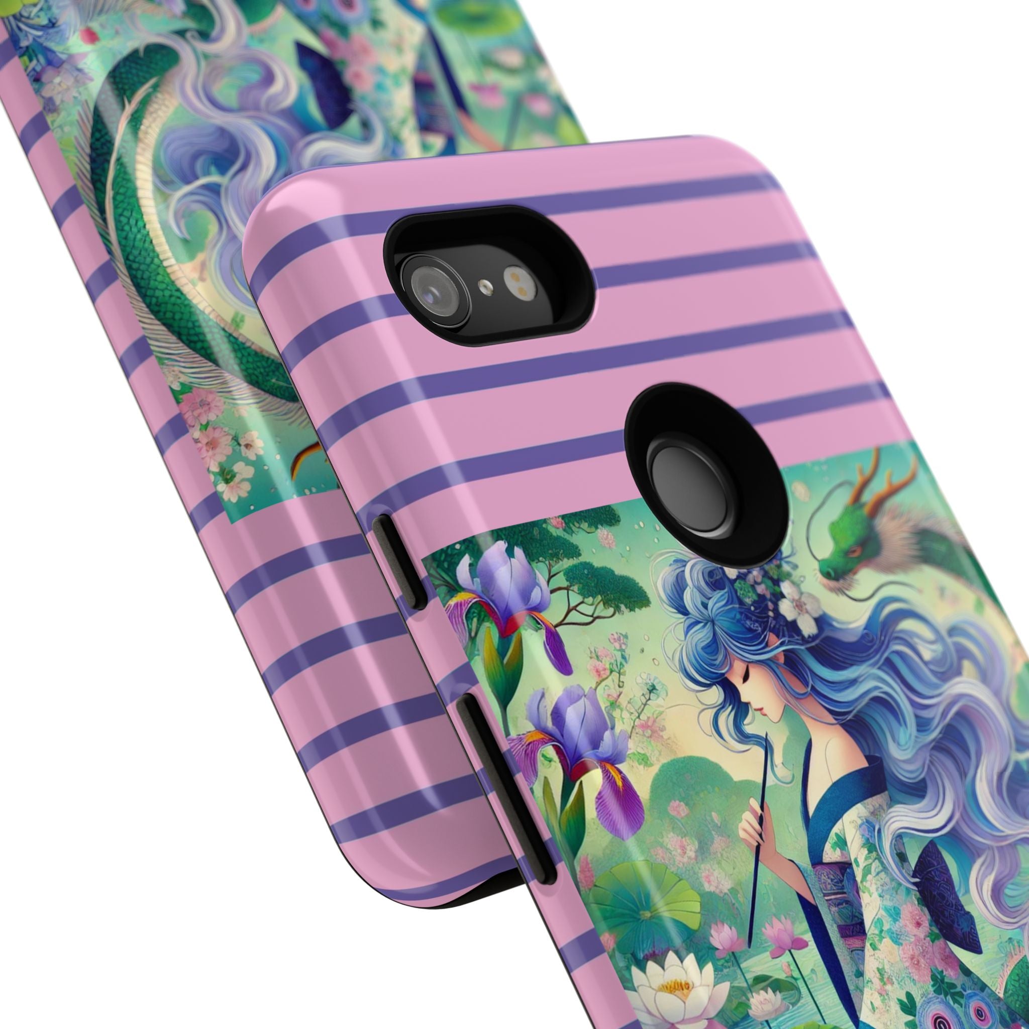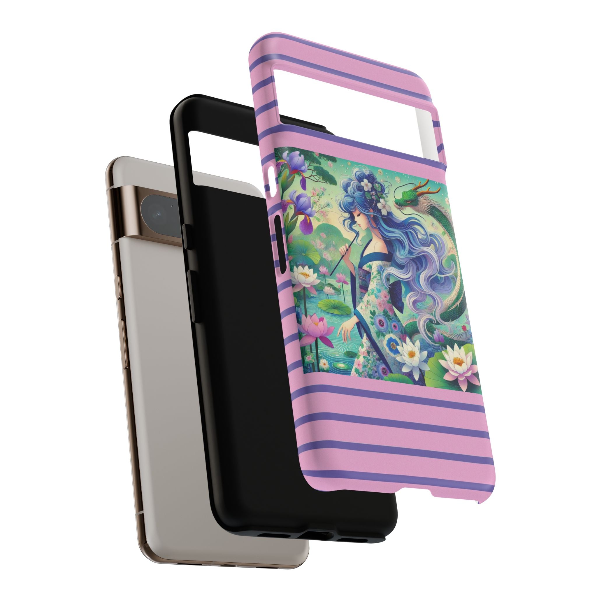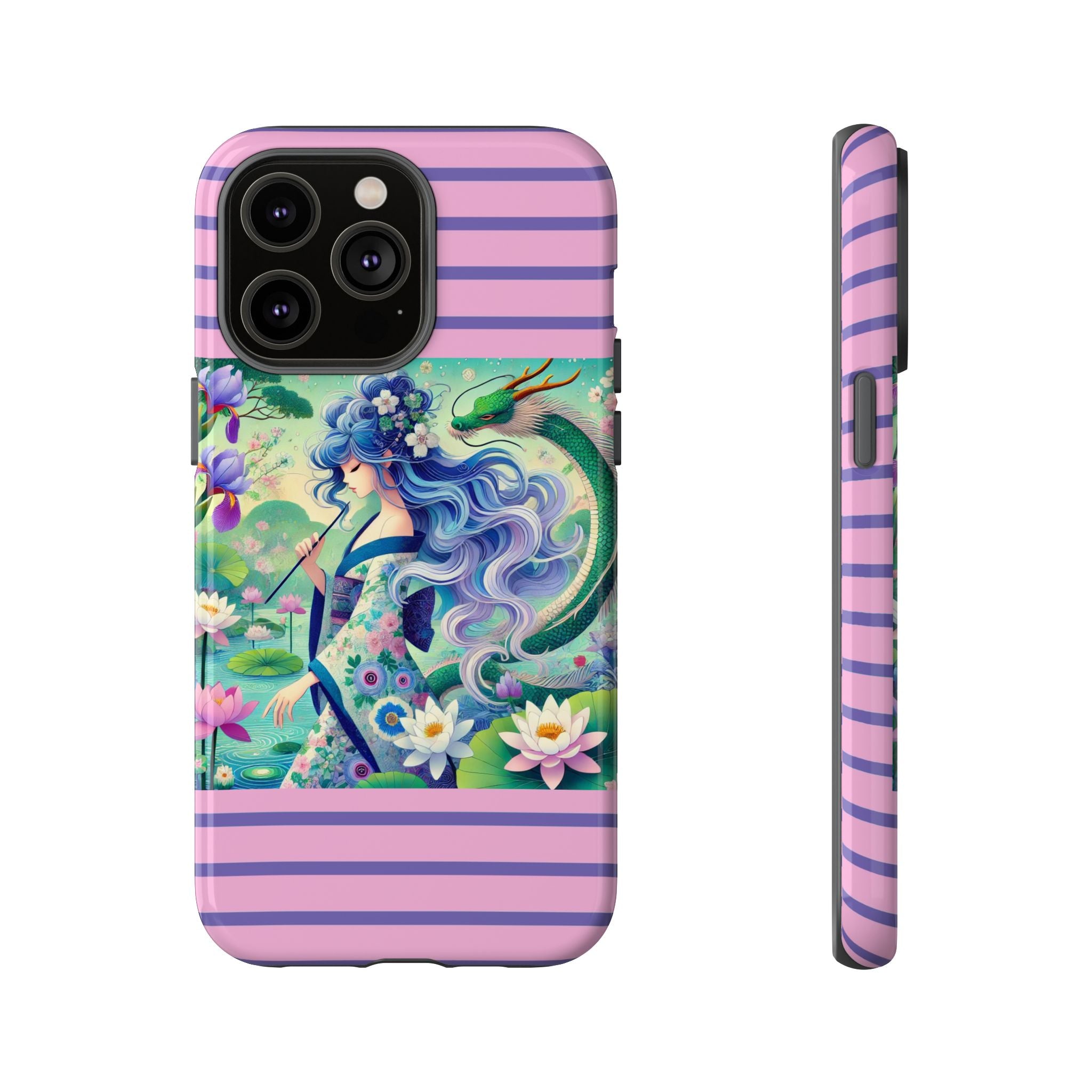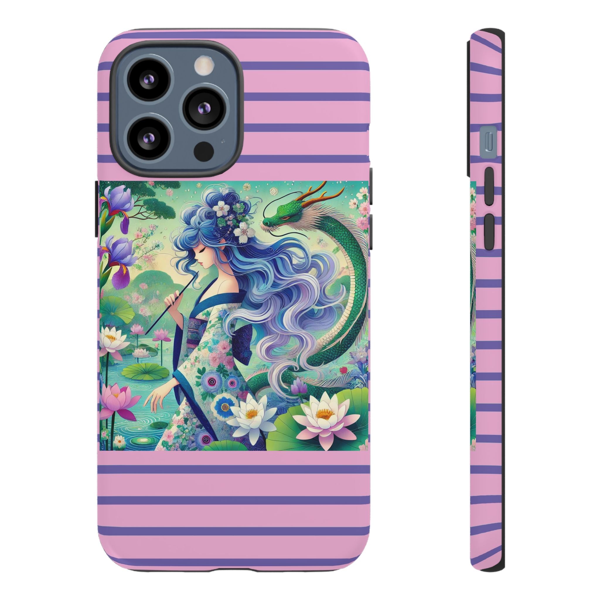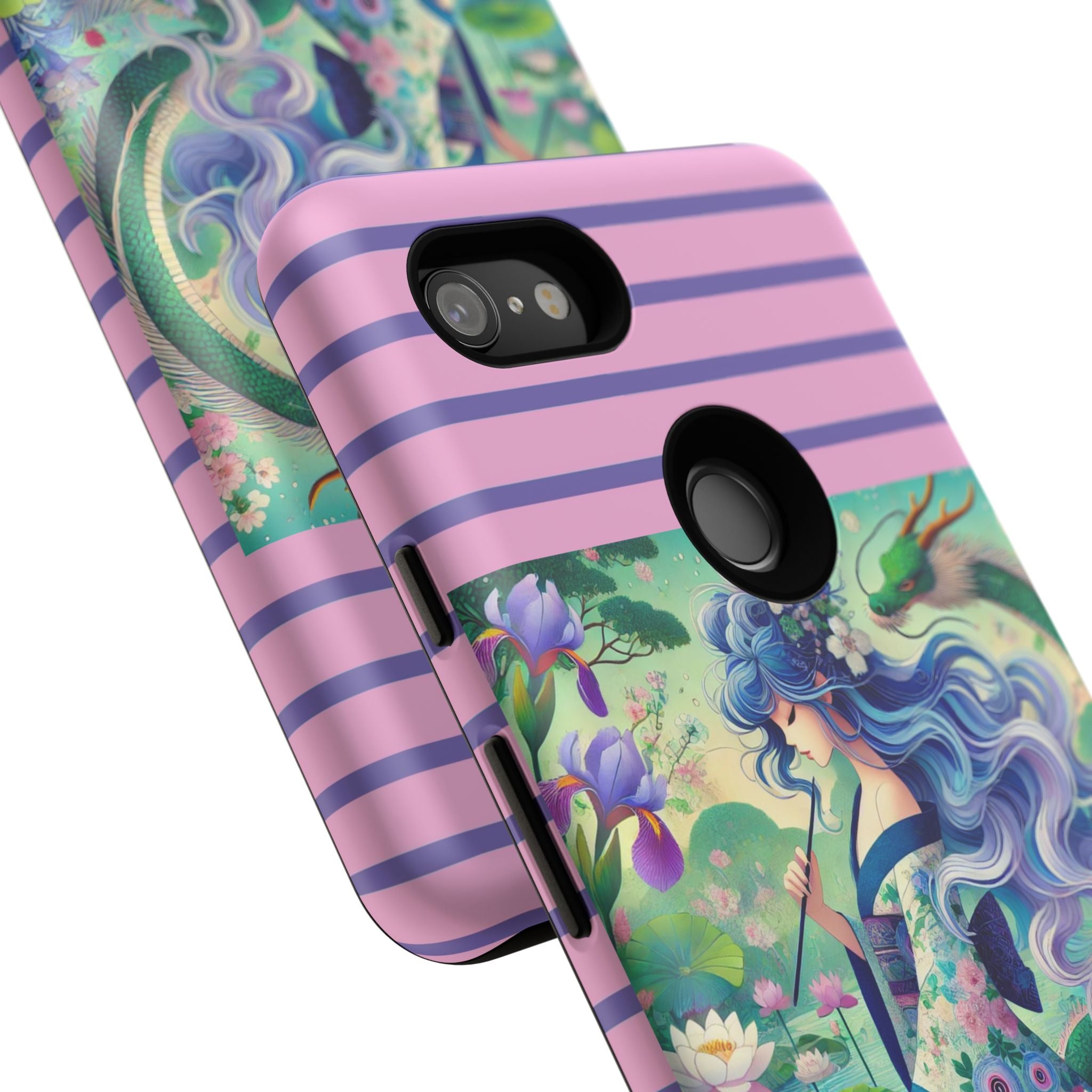 Bring a touch of magic and elegance to your everyday device with our Fairy of the Koi Pond Phone Cases. Designed for iPhone, Samsung Galaxy, and Google Pixel devices, each case combines premium-quality craftsmanship with enchanting artistic beauty. The design features a modern fairy with flowing blue hair standing gracefully beside a koi pond filled with irises and water lilies. A jade-green dragon curls nearby, adding a mystical presence that deepens the dreamlike atmosphere. Together, these elements create a serene and captivating composition that feels both ethereal and empowering.