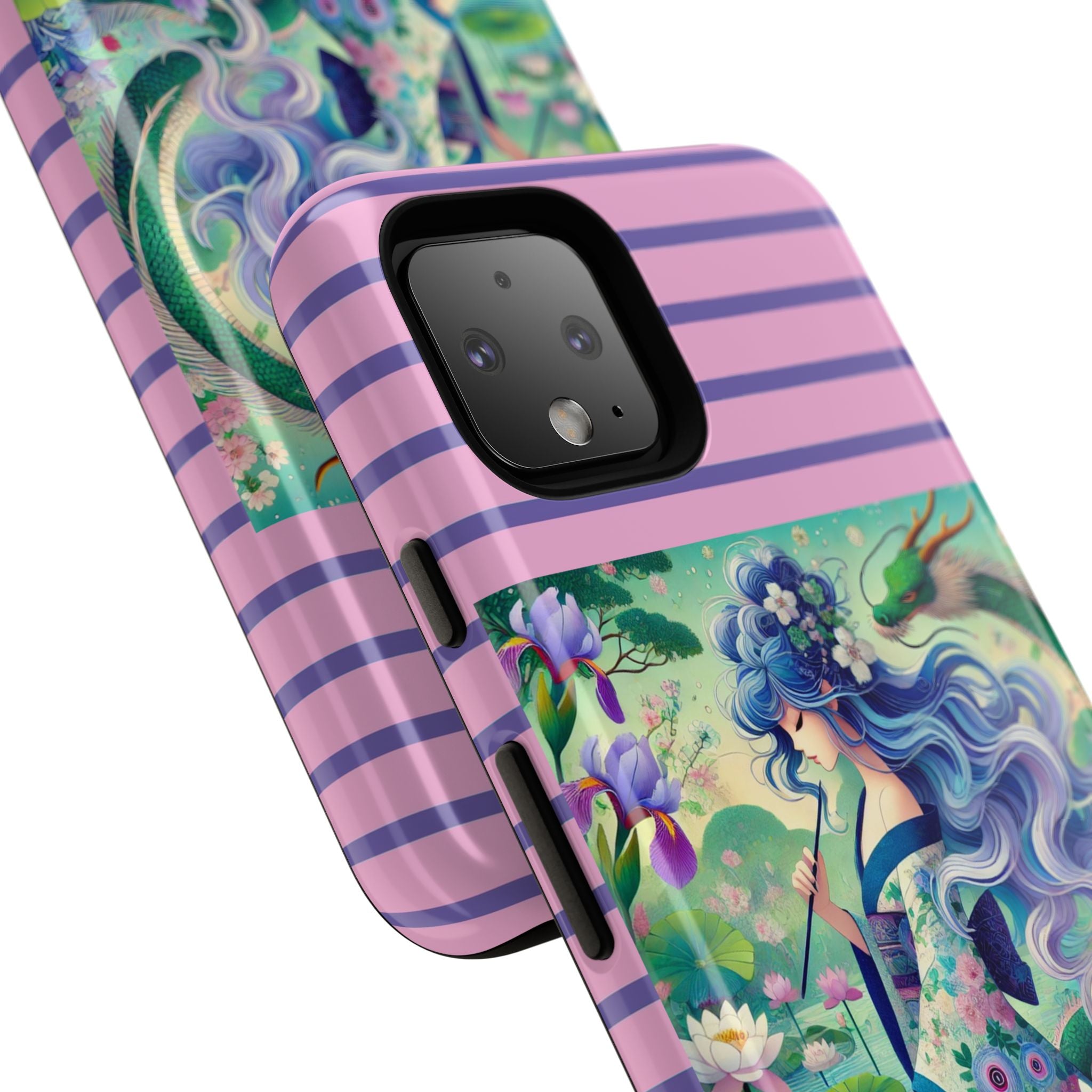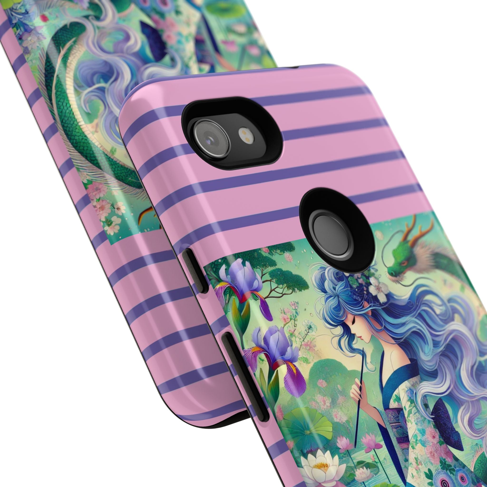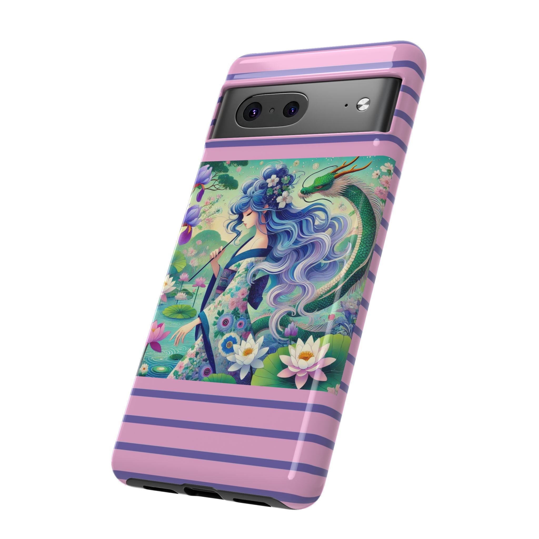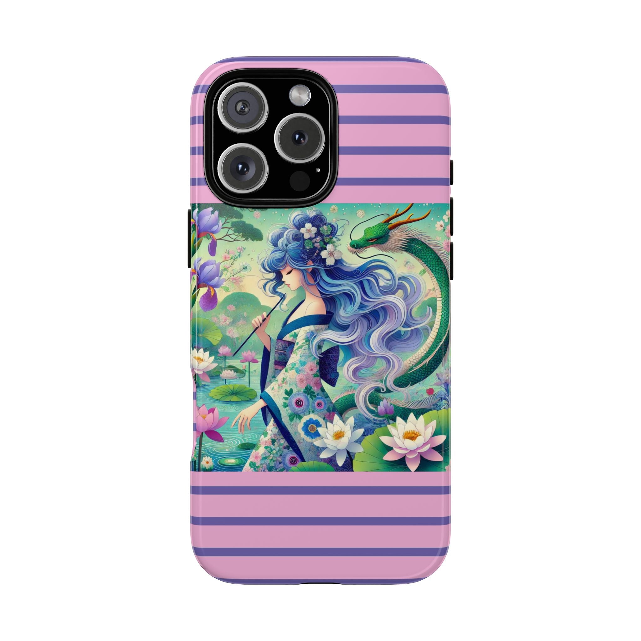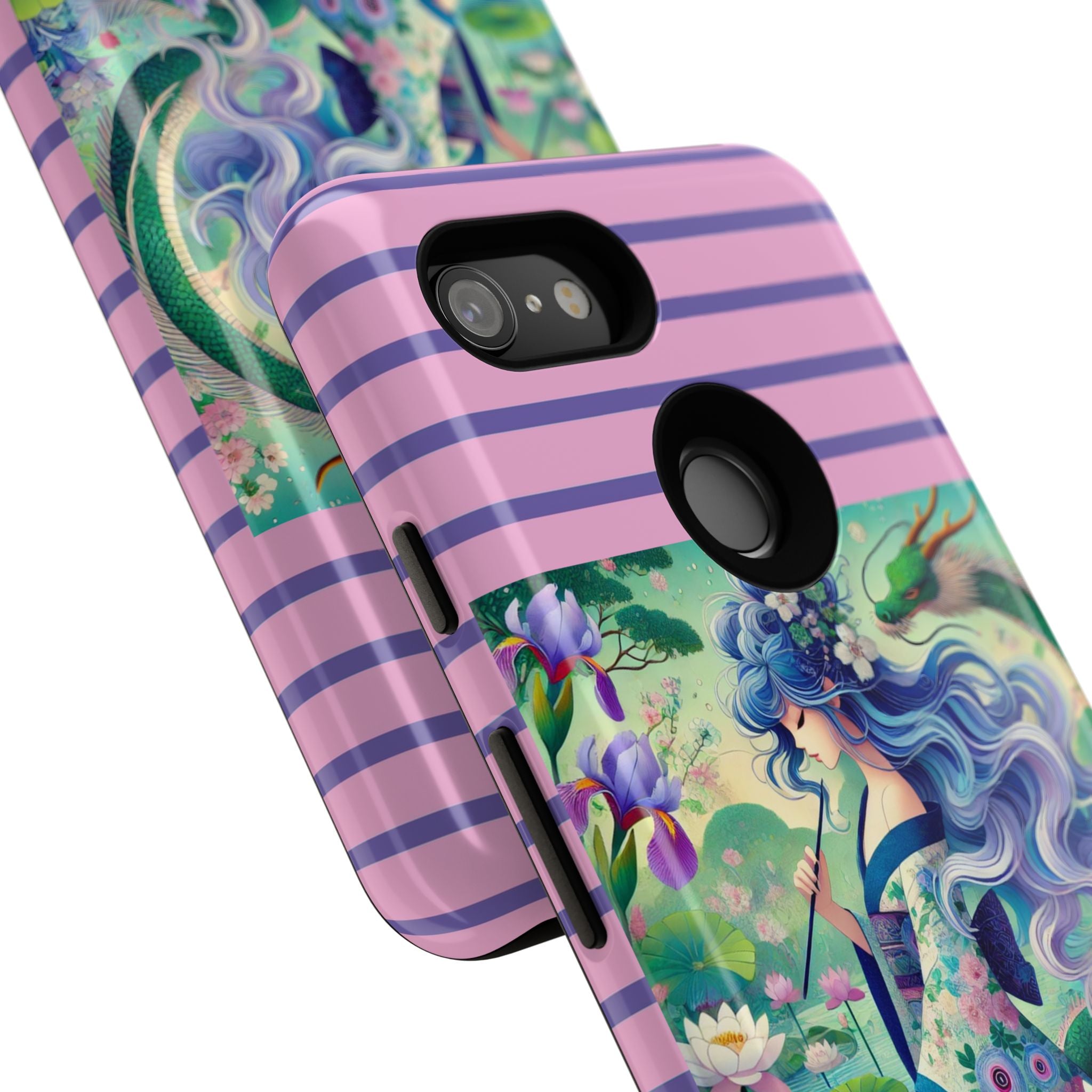 Bring a touch of magic and elegance to your everyday device with our Fairy of the Koi Pond Phone Cases. Designed for iPhone, Samsung Galaxy, and Google Pixel devices, each case combines premium-quality craftsmanship with enchanting artistic beauty. The design features a modern fairy with flowing blue hair standing gracefully beside a koi pond filled with irises and water lilies. A jade-green dragon curls nearby, adding a mystical presence that deepens the dreamlike atmosphere. Together, these elements create a serene and captivating composition that feels both ethereal and empowering.