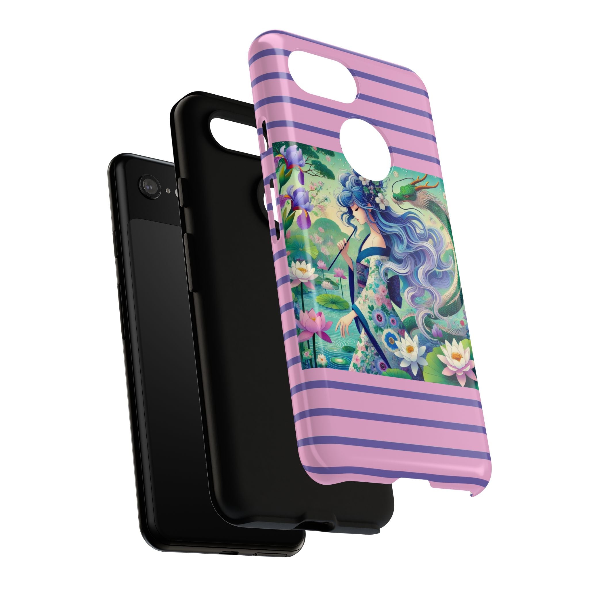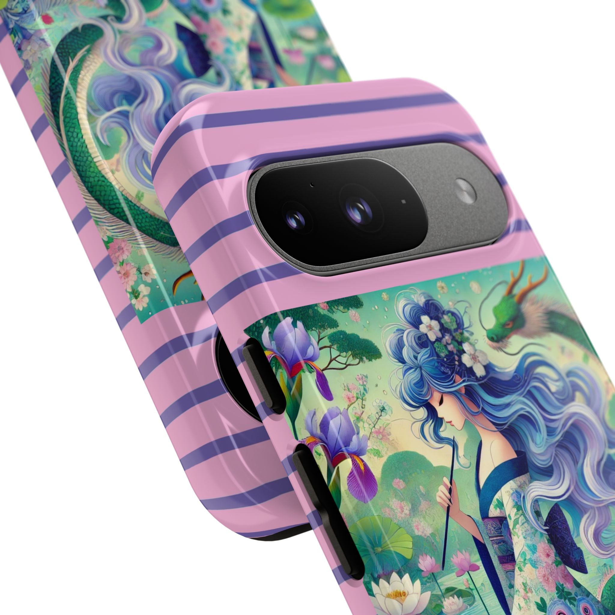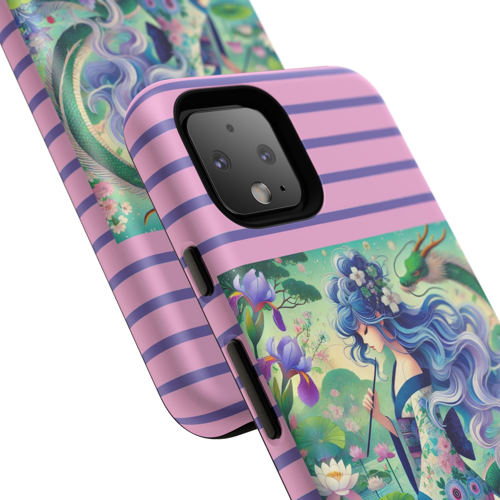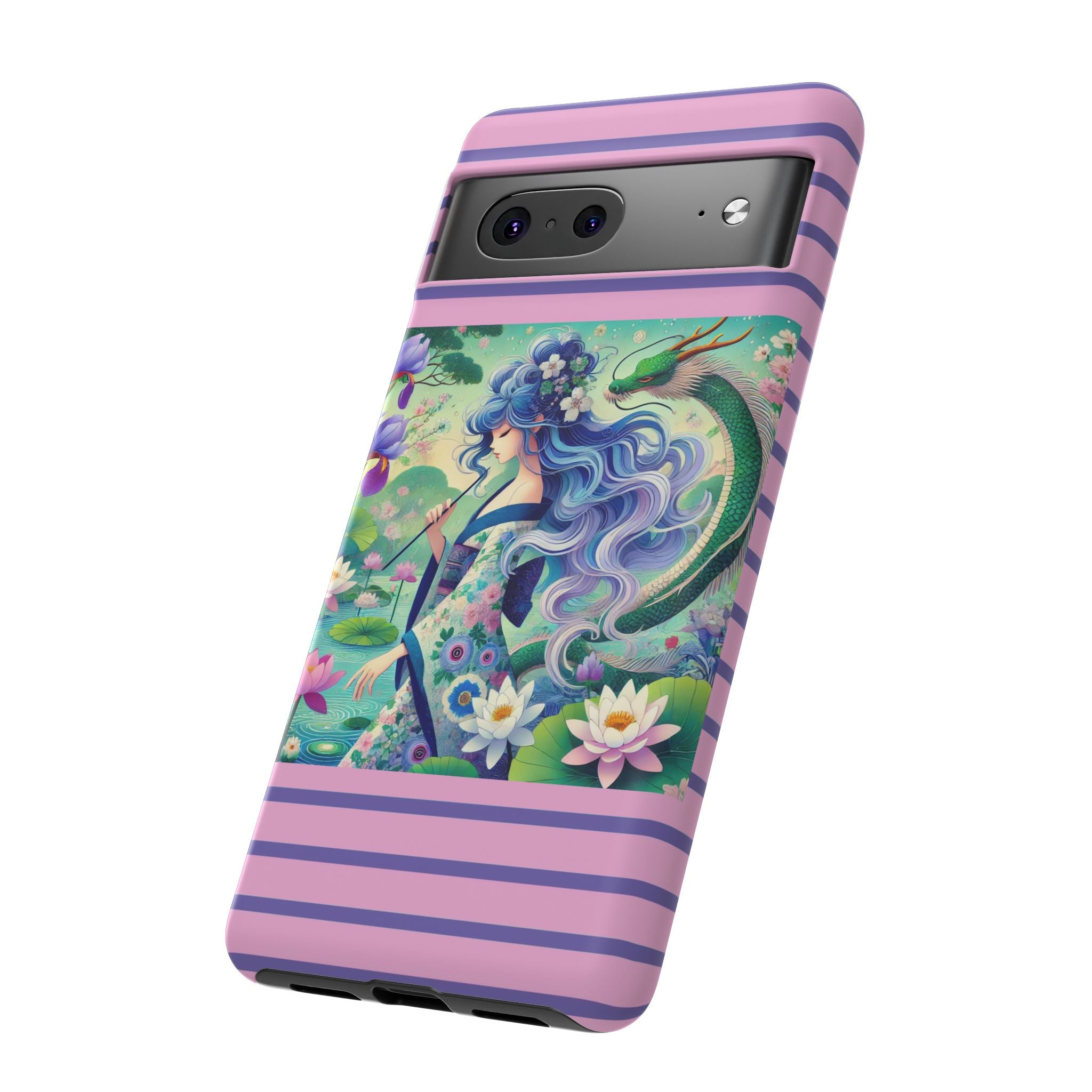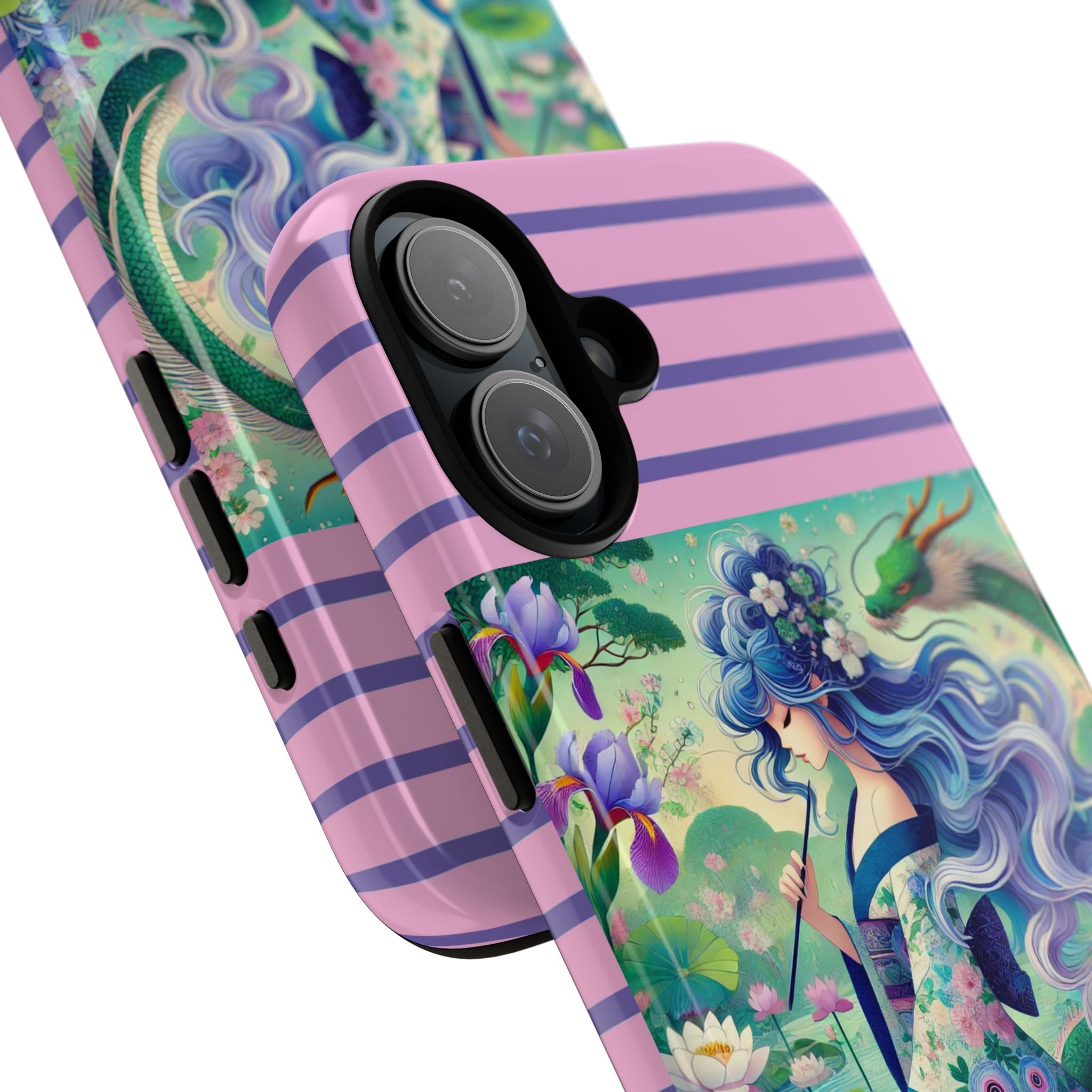Bring a touch of magic and elegance to your everyday device with our Fairy of the Koi Pond Phone Cases. Designed for iPhone, Samsung Galaxy, and Google Pixel devices, each case combines premium-quality craftsmanship with enchanting artistic beauty. The design features a modern fairy with flowing blue hair standing gracefully beside a koi pond filled with irises and water lilies. A jade-green dragon curls nearby, adding a mystical presence that deepens the dreamlike atmosphere. Together, these elements create a serene and captivating composition that feels both ethereal and empowering.