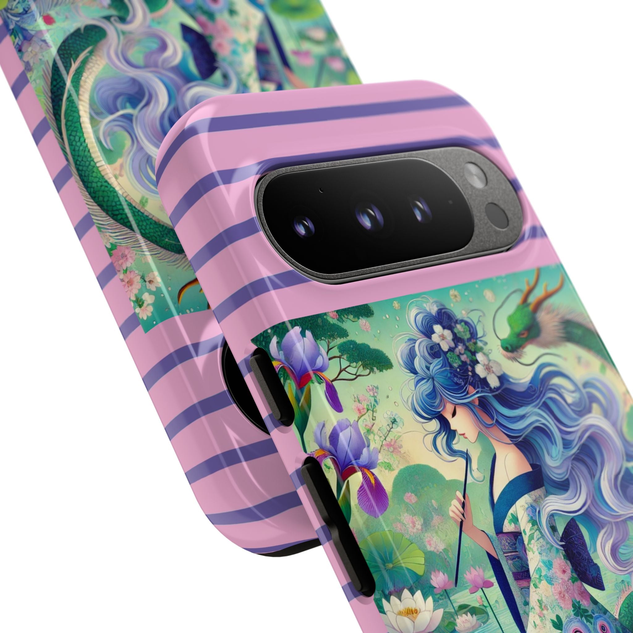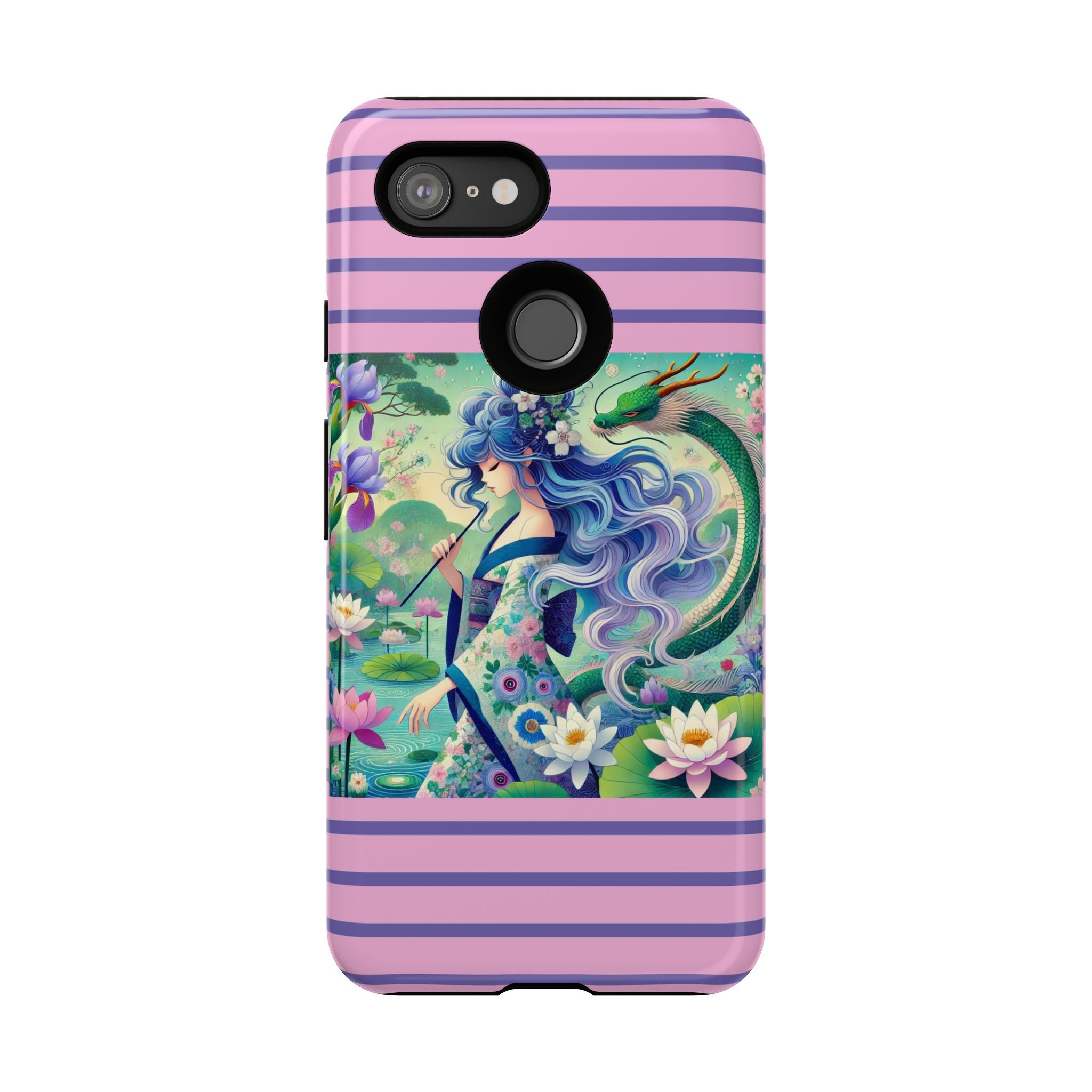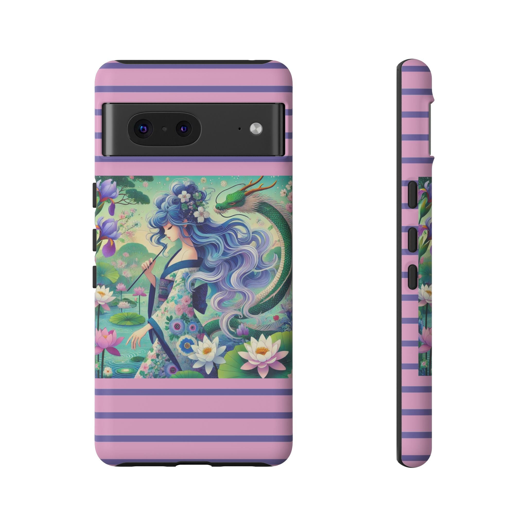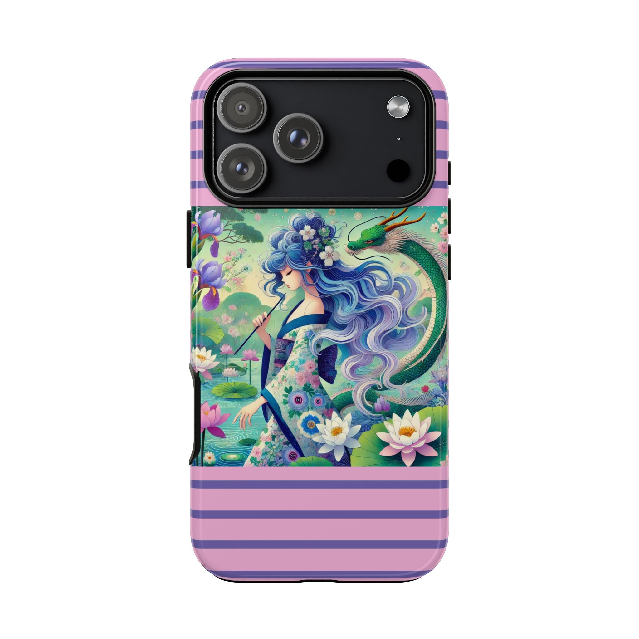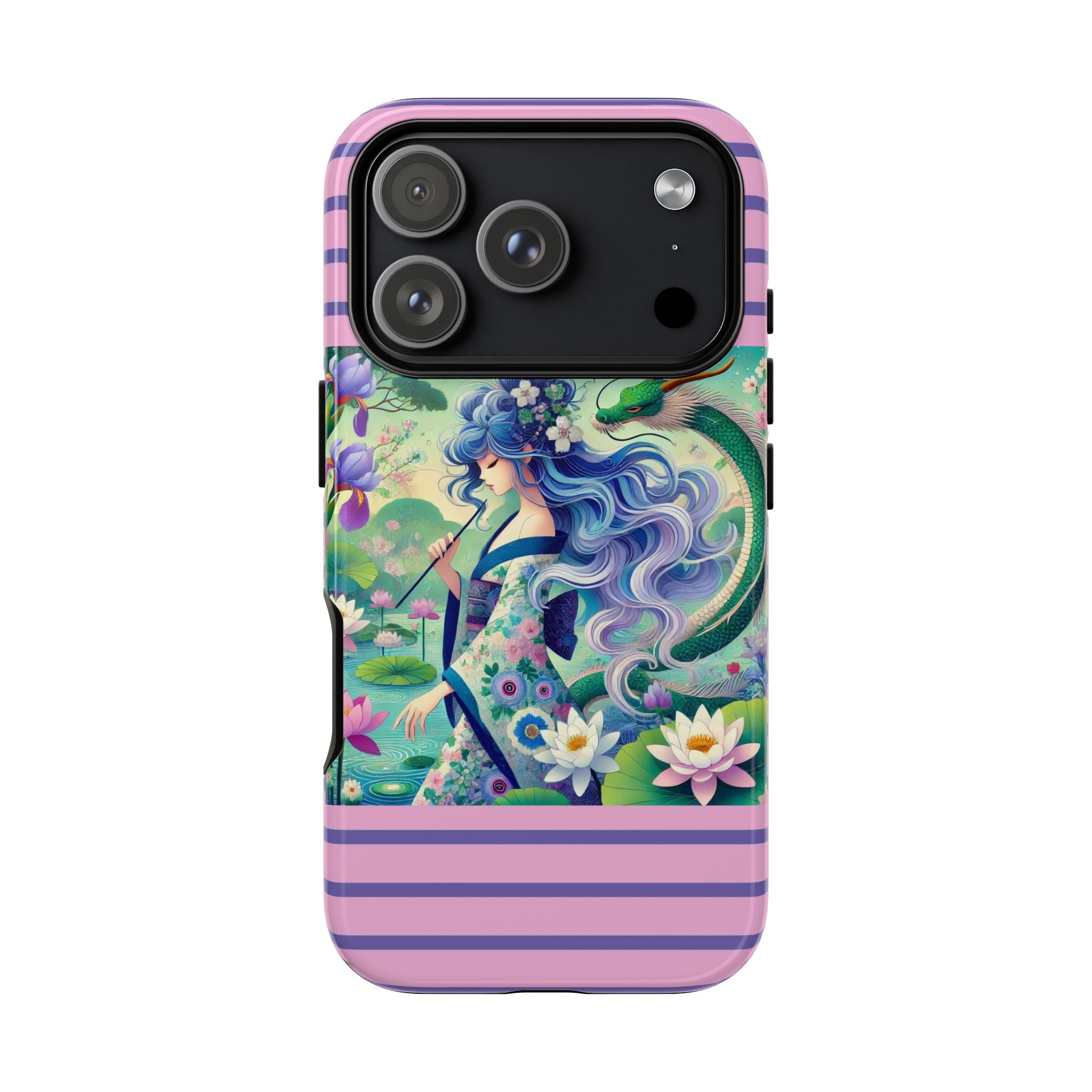Bring a touch of magic and elegance to your everyday device with our Fairy of the Koi Pond Phone Cases. Designed for iPhone, Samsung Galaxy, and Google Pixel devices, each case combines premium-quality craftsmanship with enchanting artistic beauty. The design features a modern fairy with flowing blue hair standing gracefully beside a koi pond filled with irises and water lilies. A jade-green dragon curls nearby, adding a mystical presence that deepens the dreamlike atmosphere. Together, these elements create a serene and captivating composition that feels both ethereal and empowering.