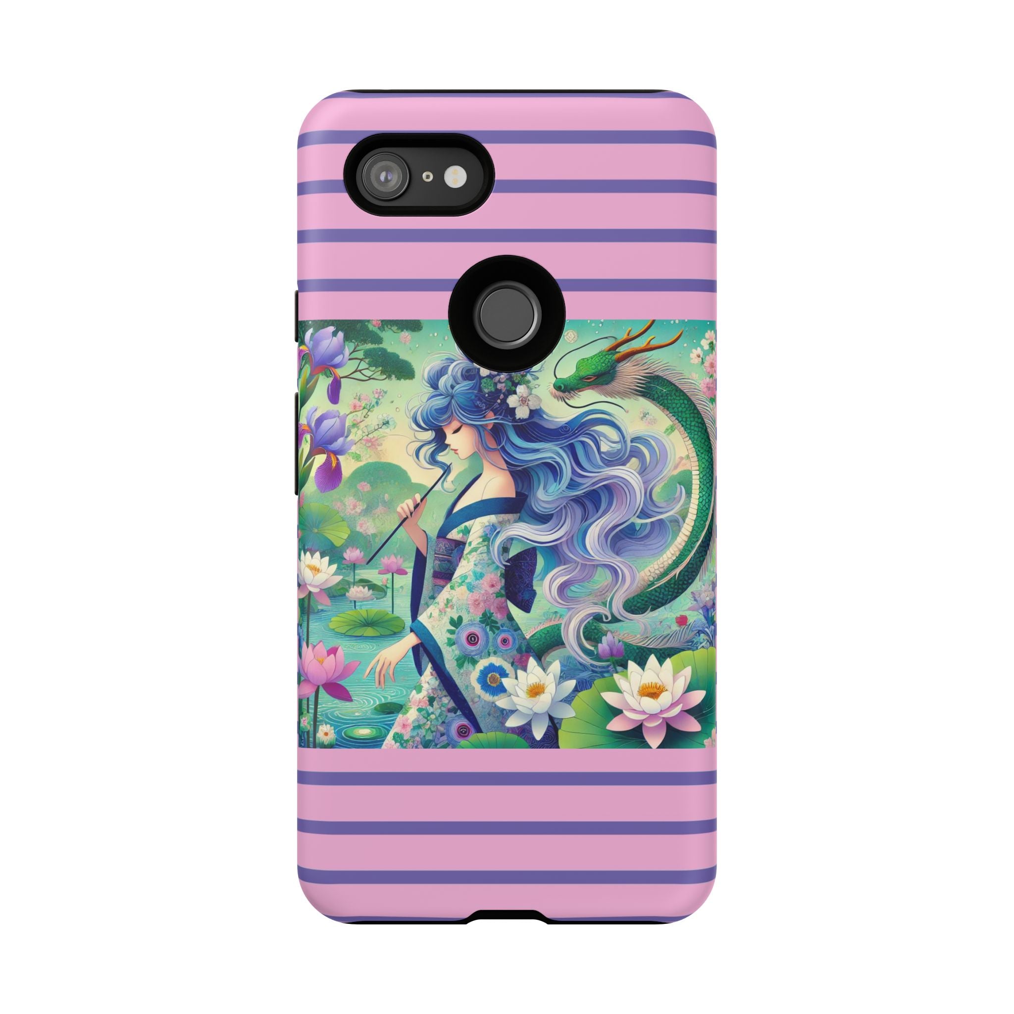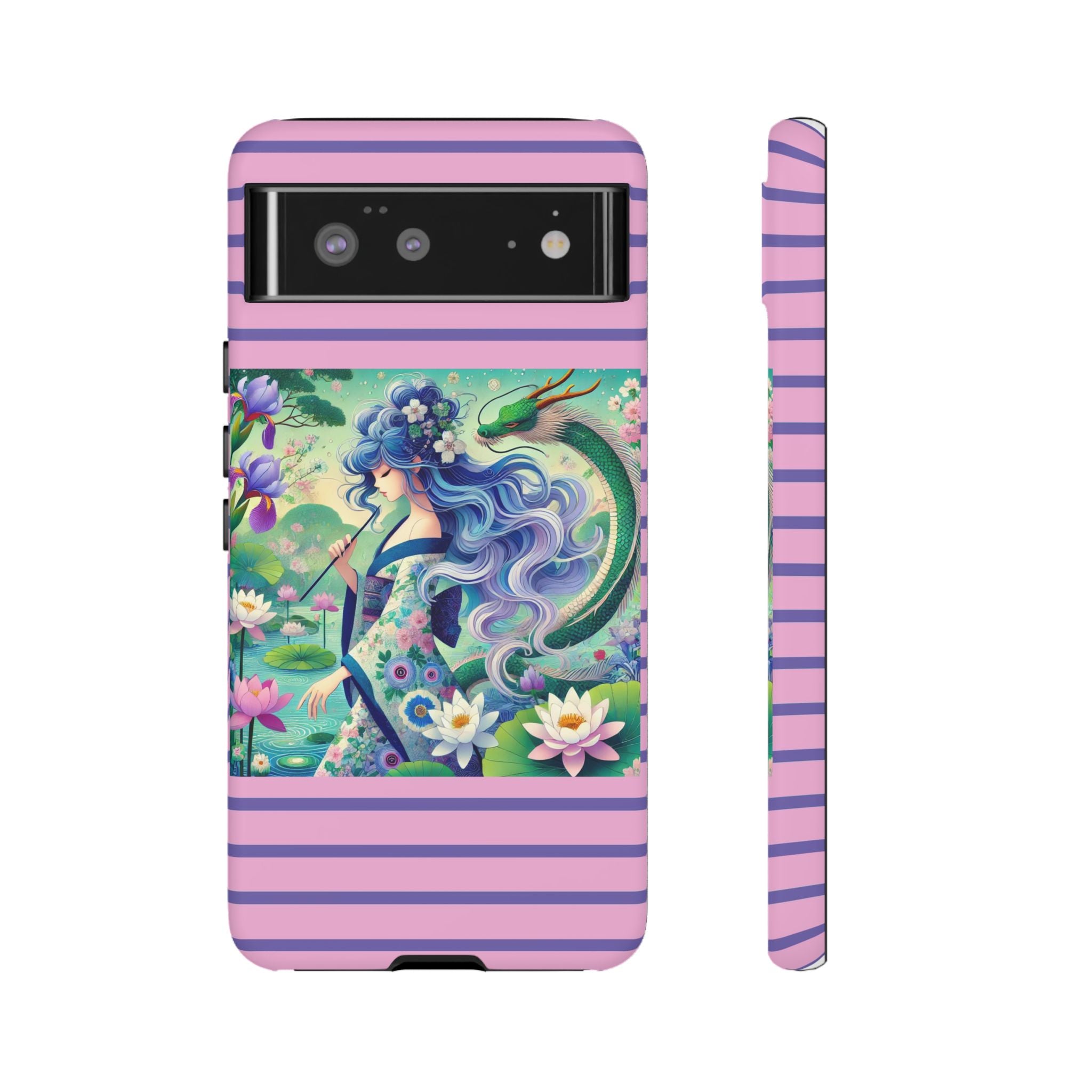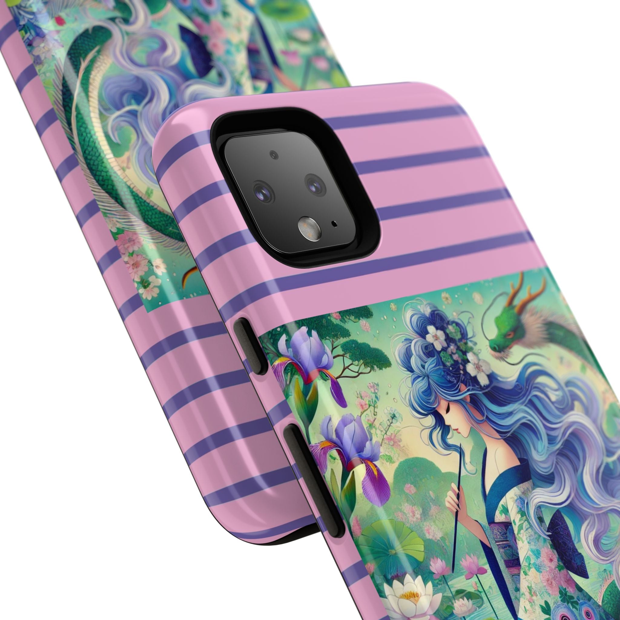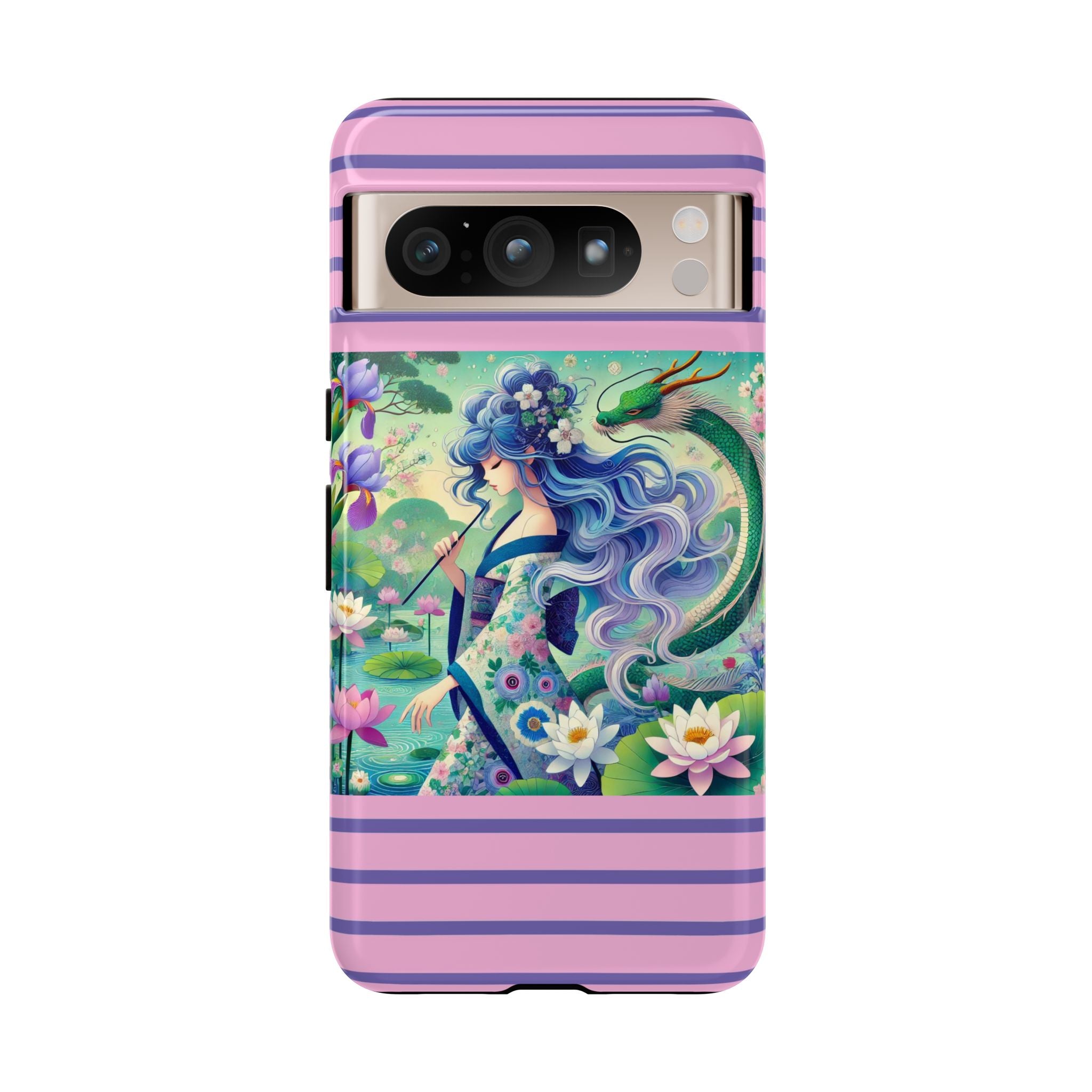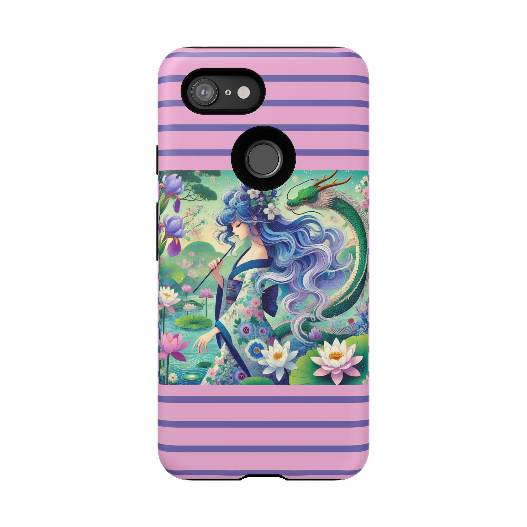 Bring a touch of magic and elegance to your everyday device with our Fairy of the Koi Pond Phone Cases. Designed for iPhone, Samsung Galaxy, and Google Pixel devices, each case combines premium-quality craftsmanship with enchanting artistic beauty. The design features a modern fairy with flowing blue hair standing gracefully beside a koi pond filled with irises and water lilies. A jade-green dragon curls nearby, adding a mystical presence that deepens the dreamlike atmosphere. Together, these elements create a serene and captivating composition that feels both ethereal and empowering.