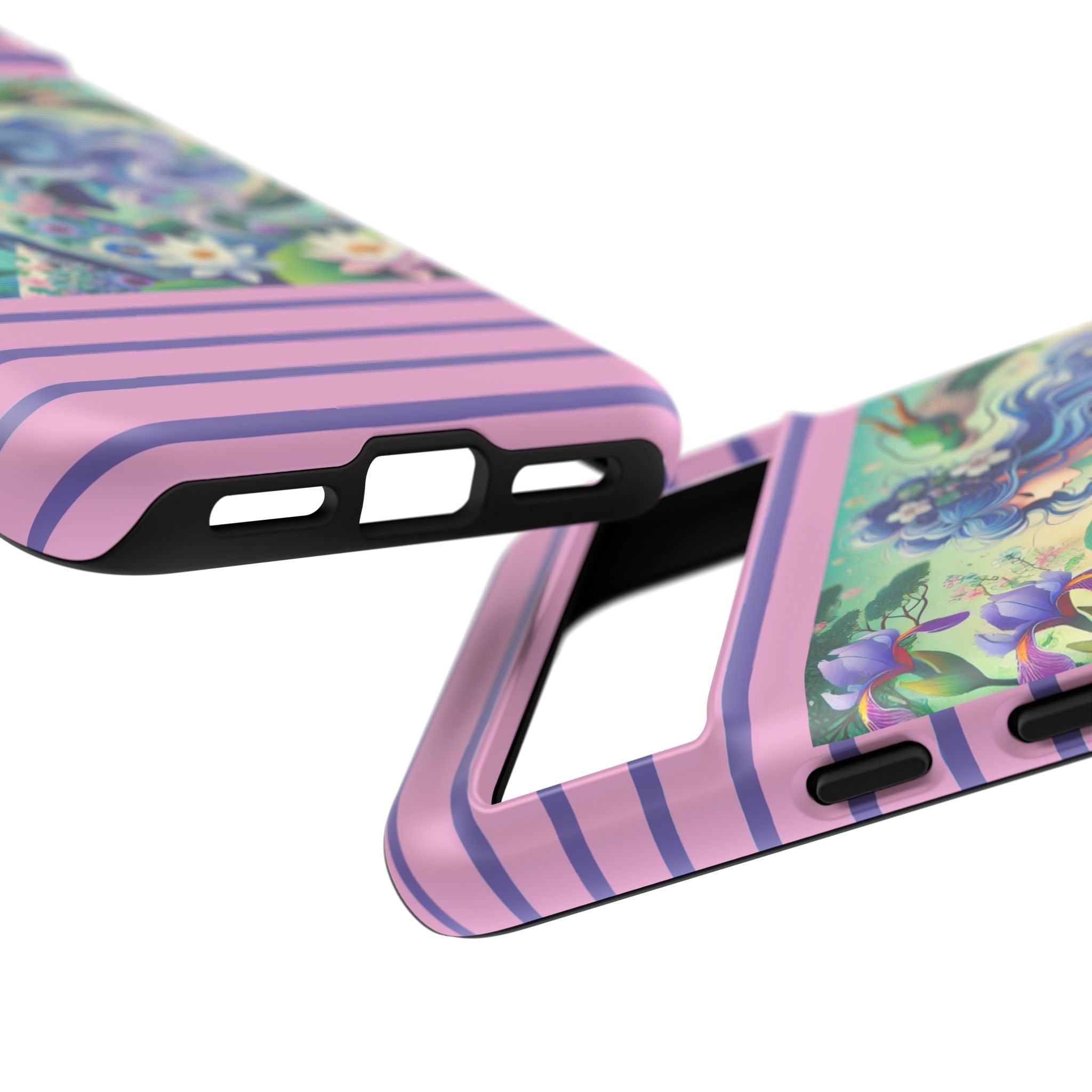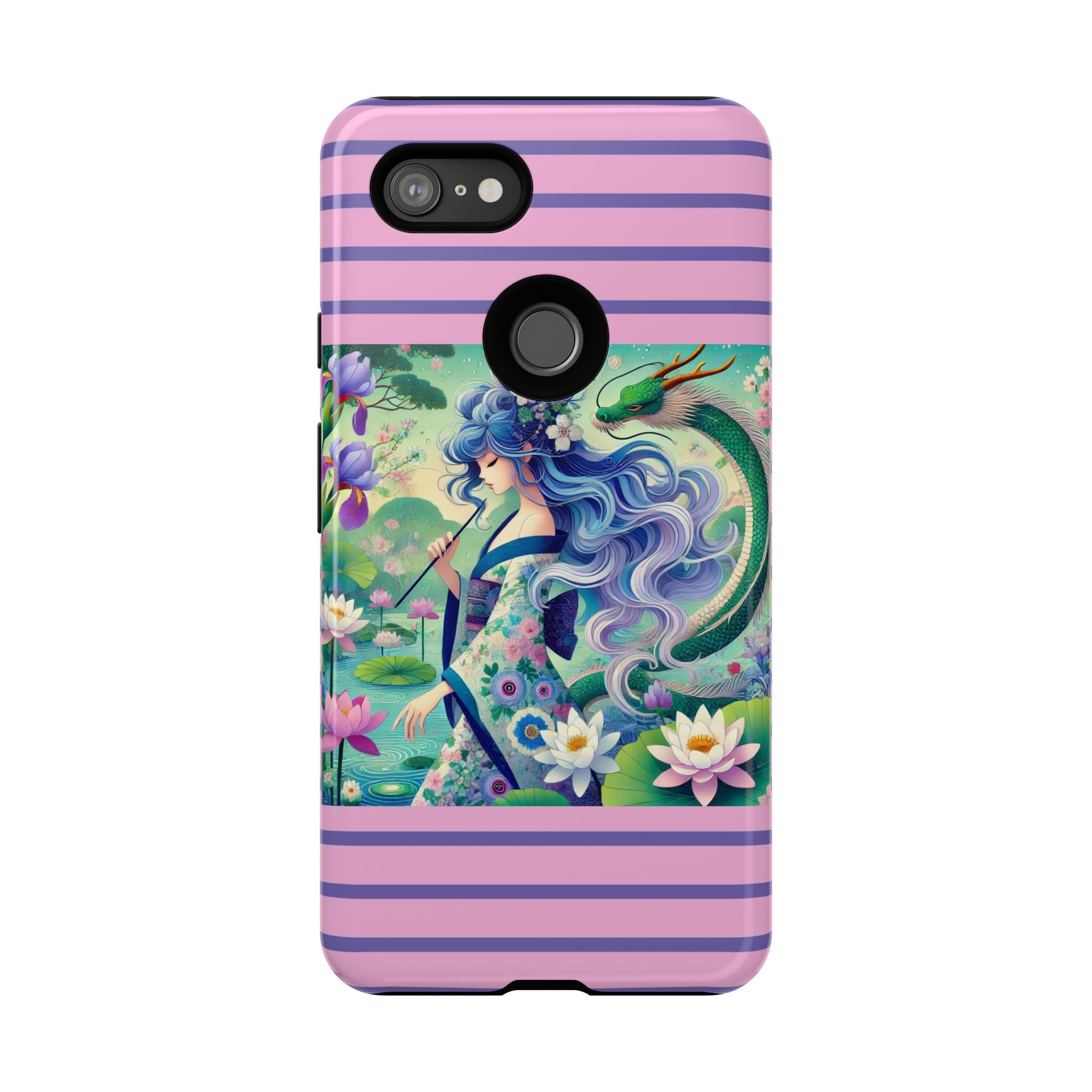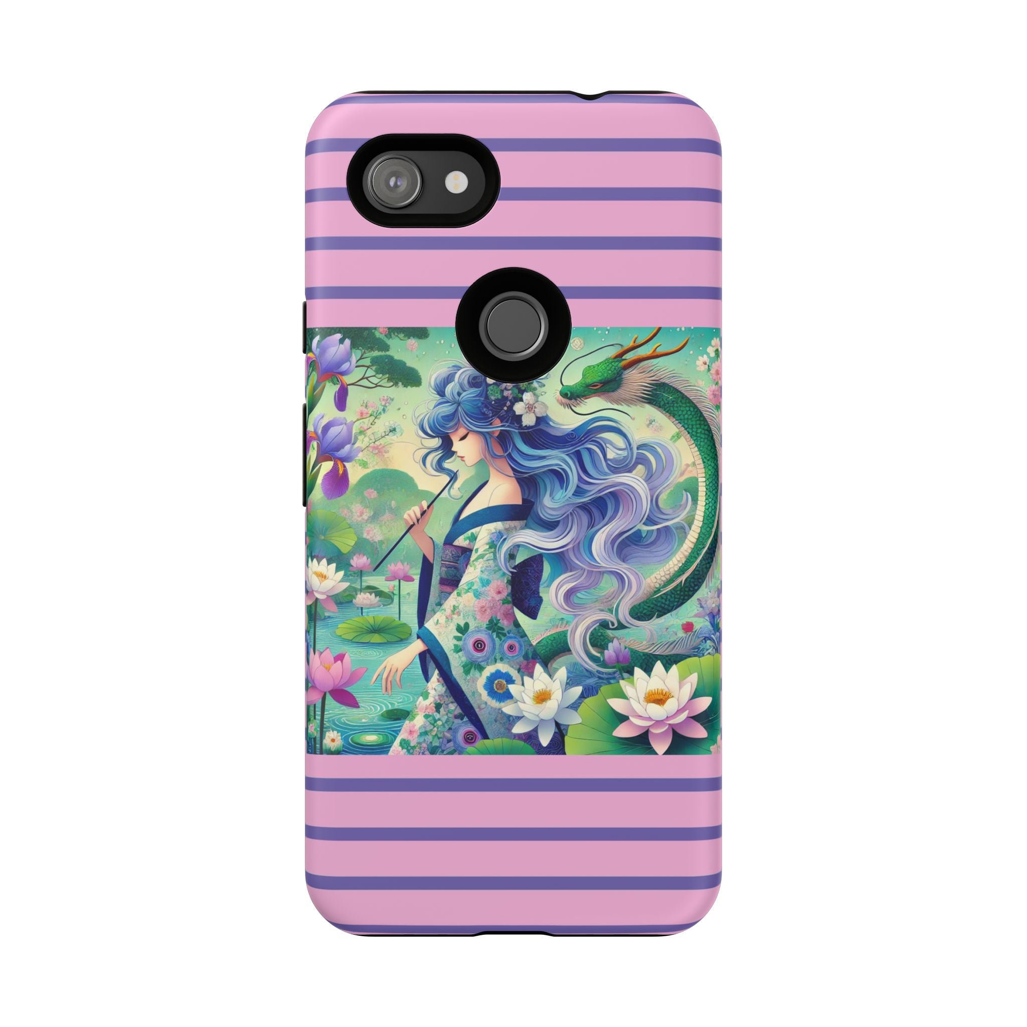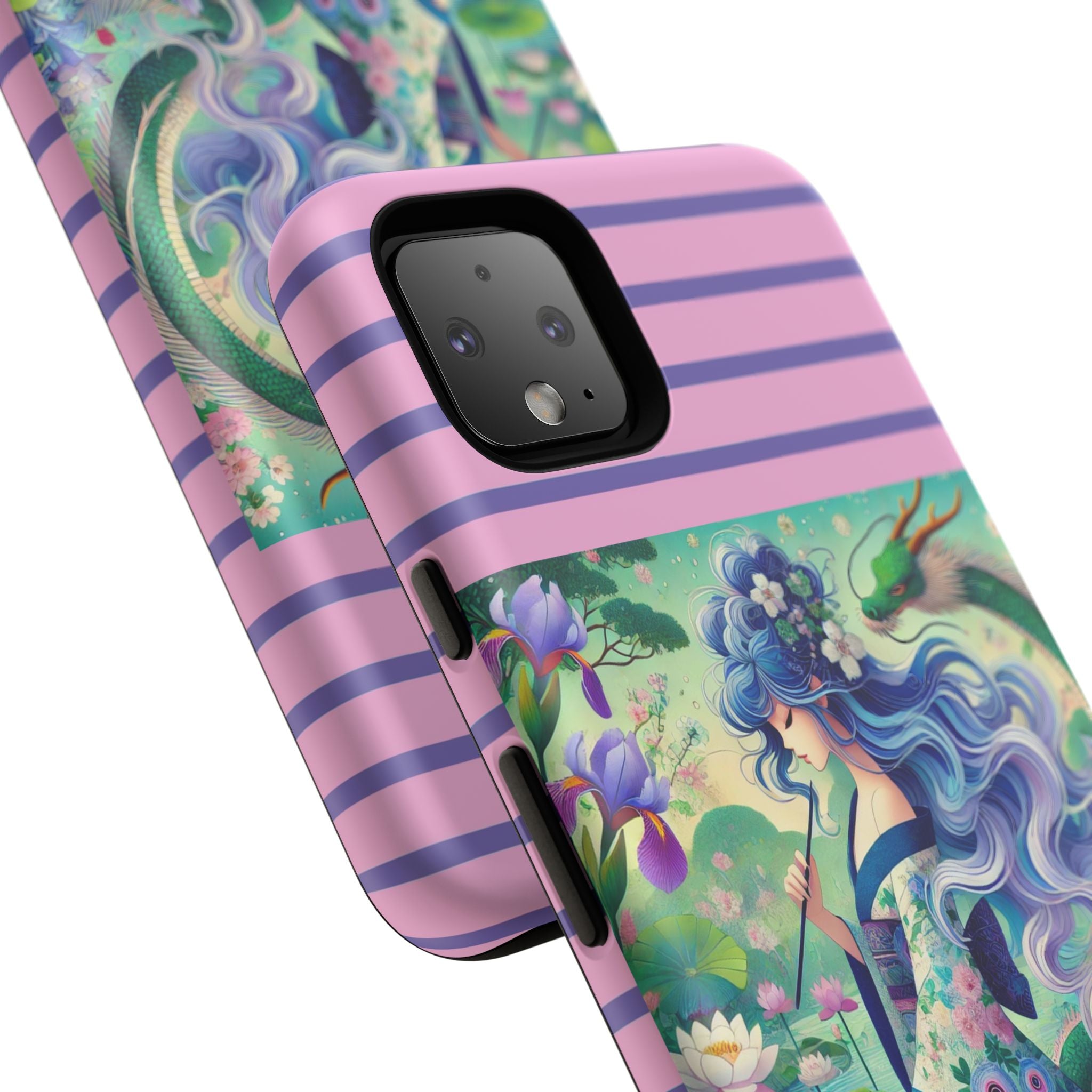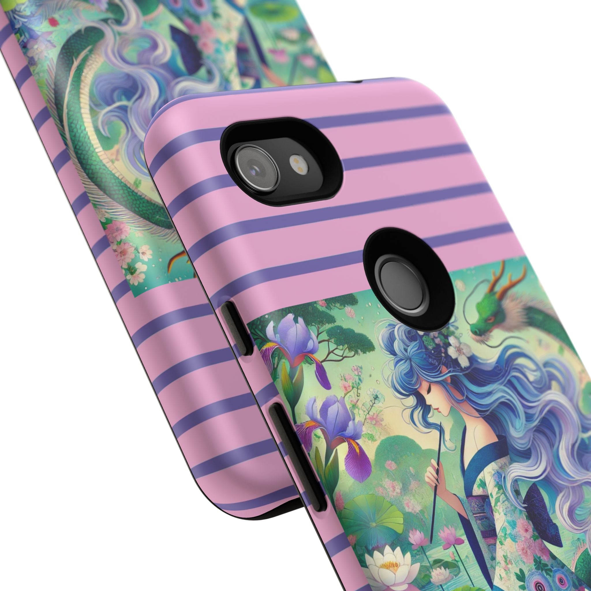 Bring a touch of magic and elegance to your everyday device with our Fairy of the Koi Pond Phone Cases. Designed for iPhone, Samsung Galaxy, and Google Pixel devices, each case combines premium-quality craftsmanship with enchanting artistic beauty. The design features a modern fairy with flowing blue hair standing gracefully beside a koi pond filled with irises and water lilies. A jade-green dragon curls nearby, adding a mystical presence that deepens the dreamlike atmosphere. Together, these elements create a serene and captivating composition that feels both ethereal and empowering.