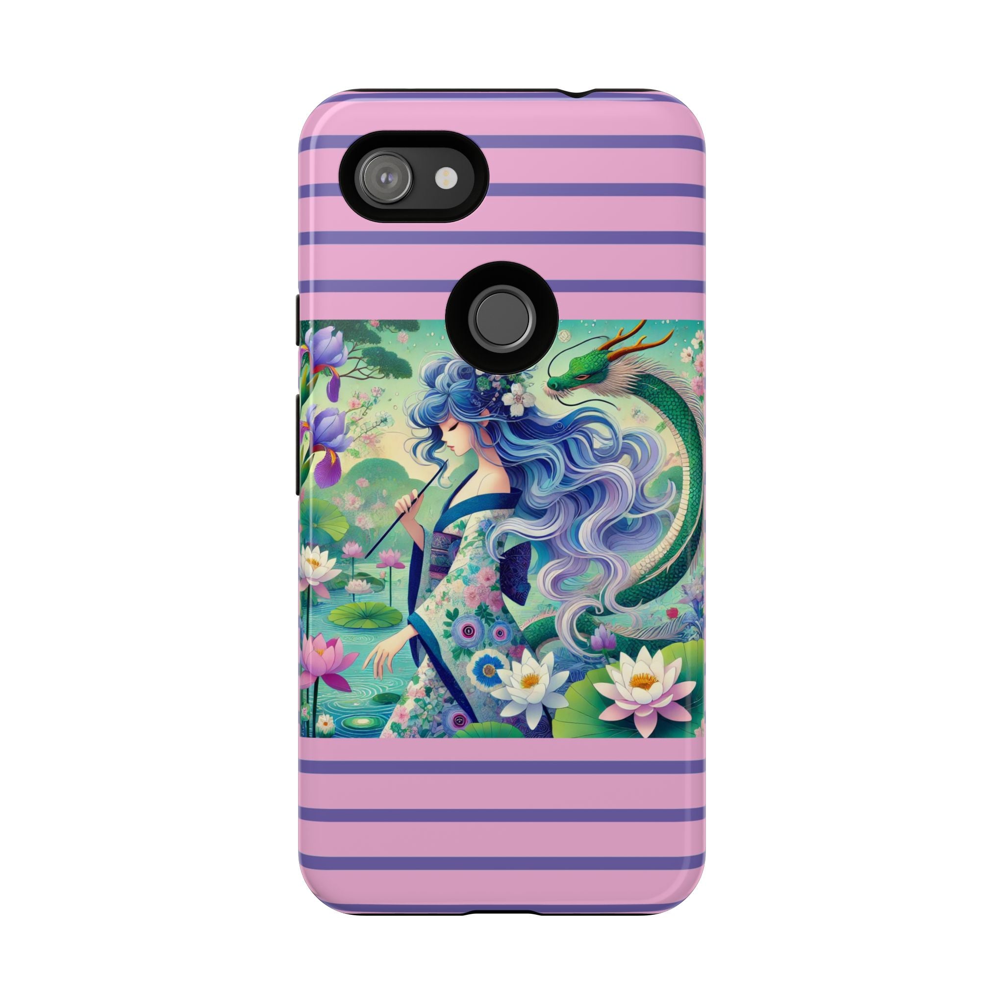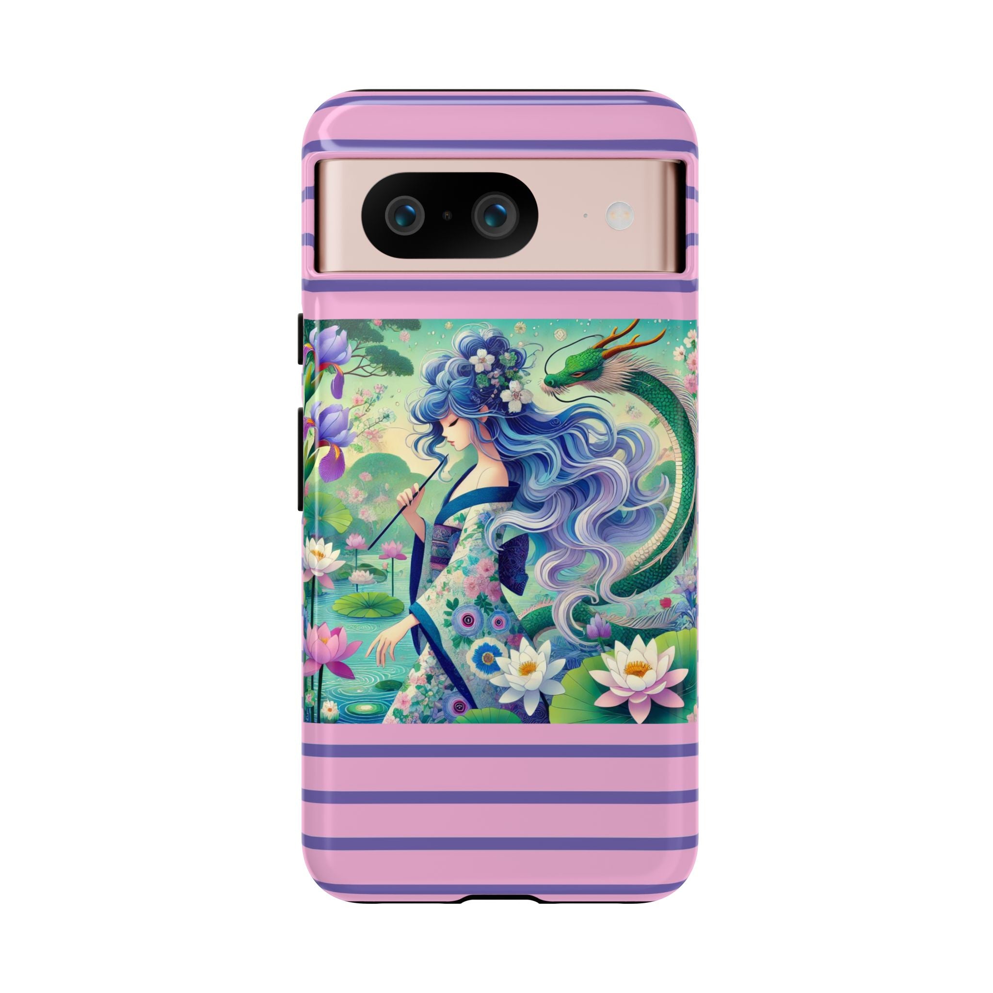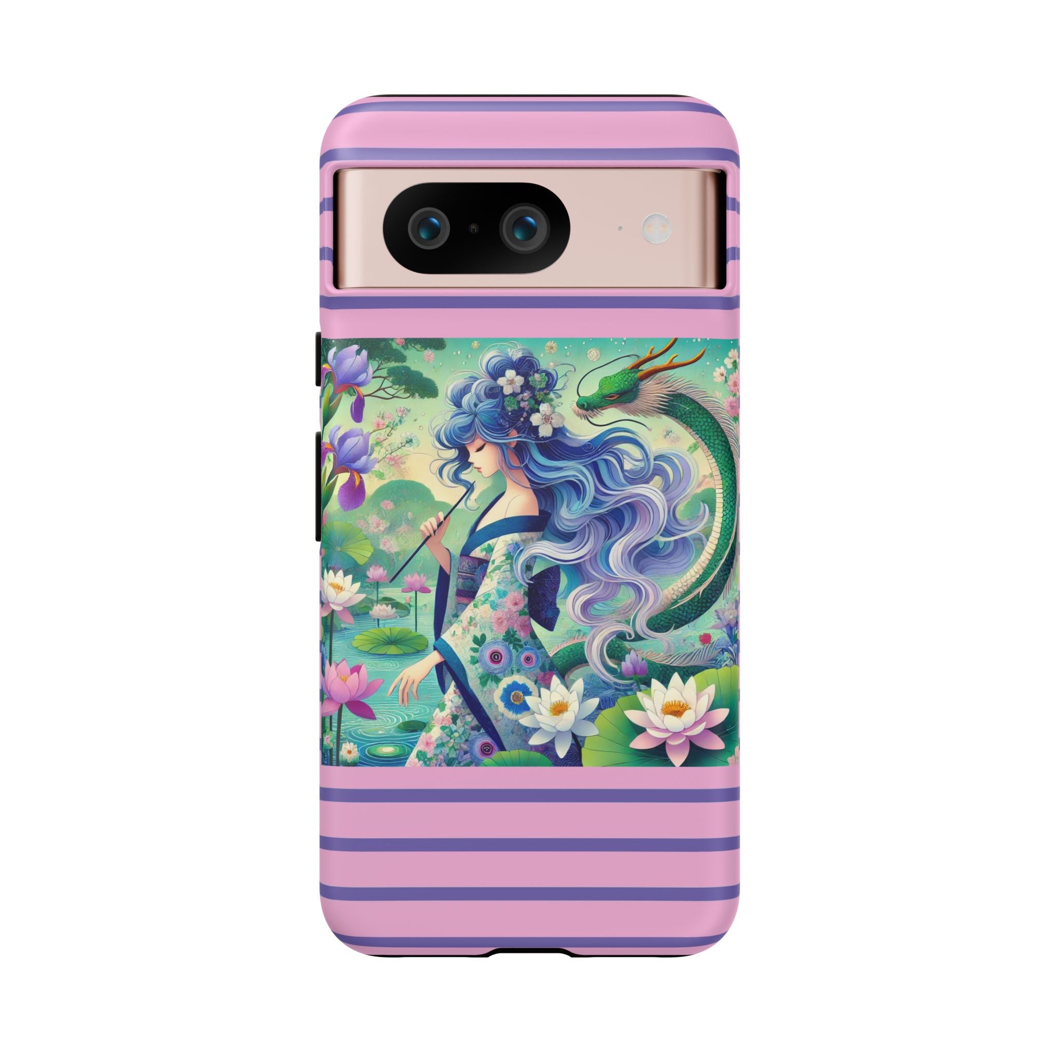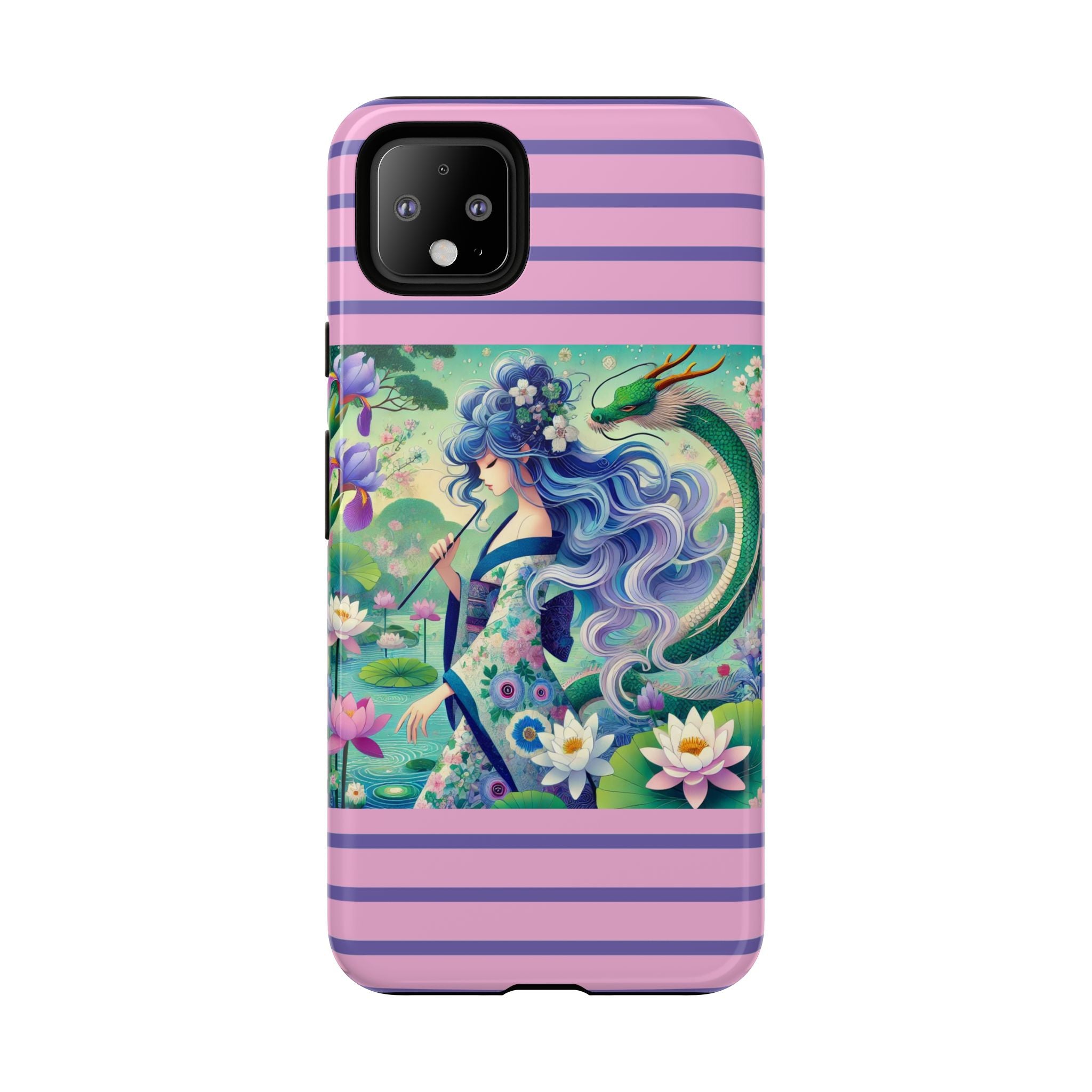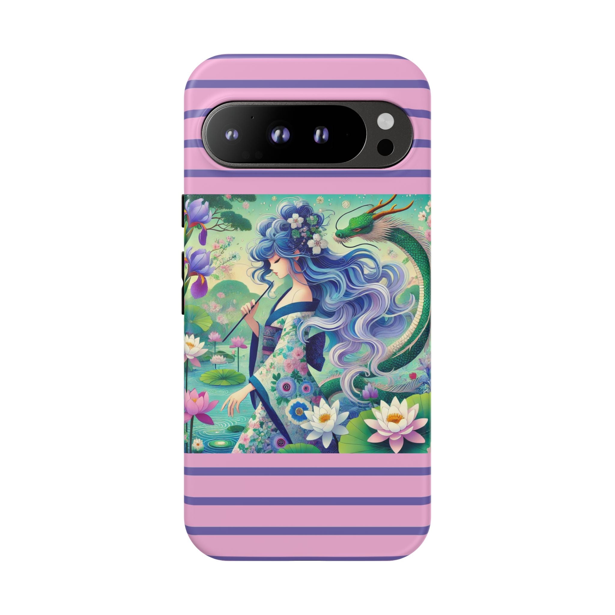 Bring a touch of magic and elegance to your everyday device with our Fairy of the Koi Pond Phone Cases. Designed for iPhone, Samsung Galaxy, and Google Pixel devices, each case combines premium-quality craftsmanship with enchanting artistic beauty. The design features a modern fairy with flowing blue hair standing gracefully beside a koi pond filled with irises and water lilies. A jade-green dragon curls nearby, adding a mystical presence that deepens the dreamlike atmosphere. Together, these elements create a serene and captivating composition that feels both ethereal and empowering.